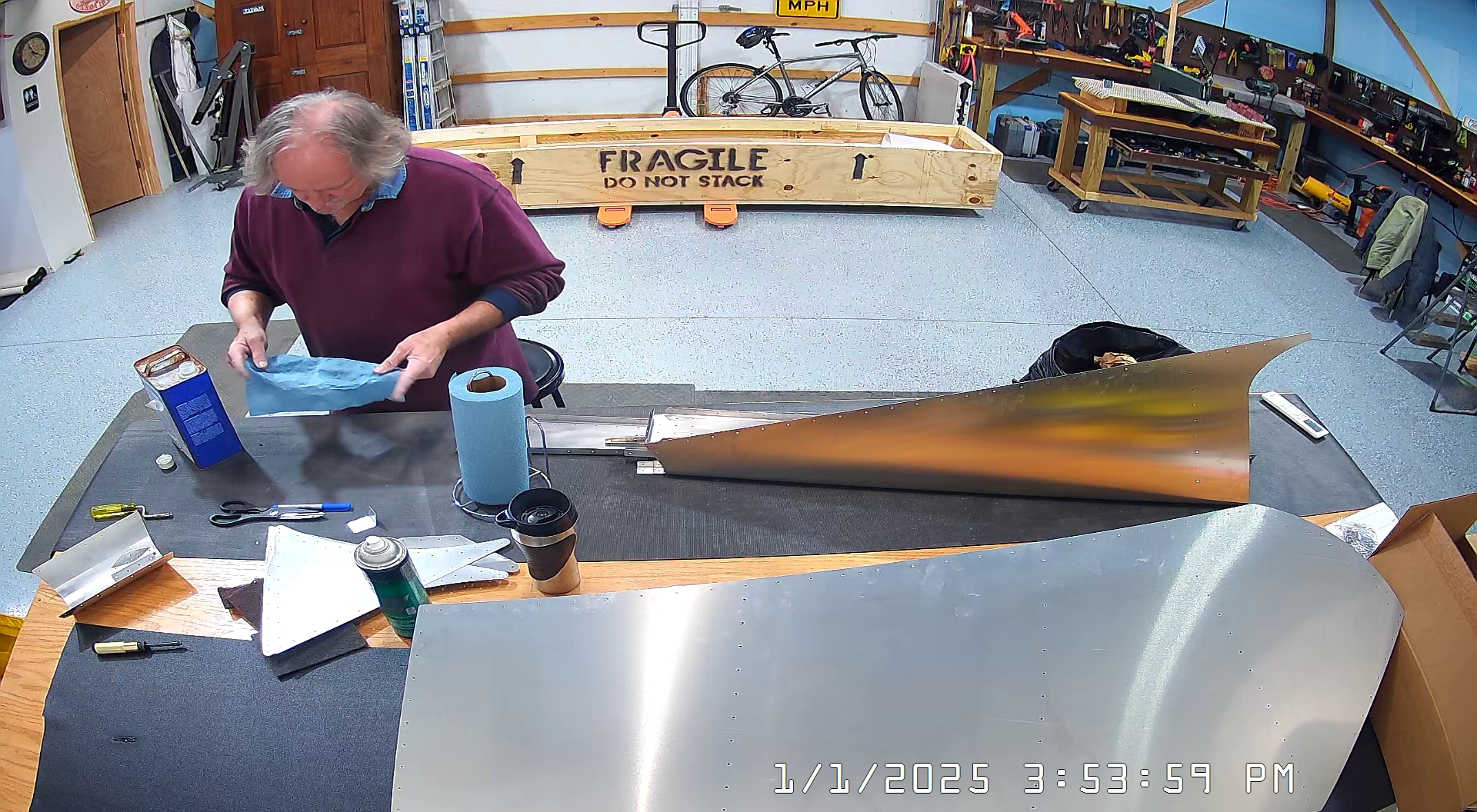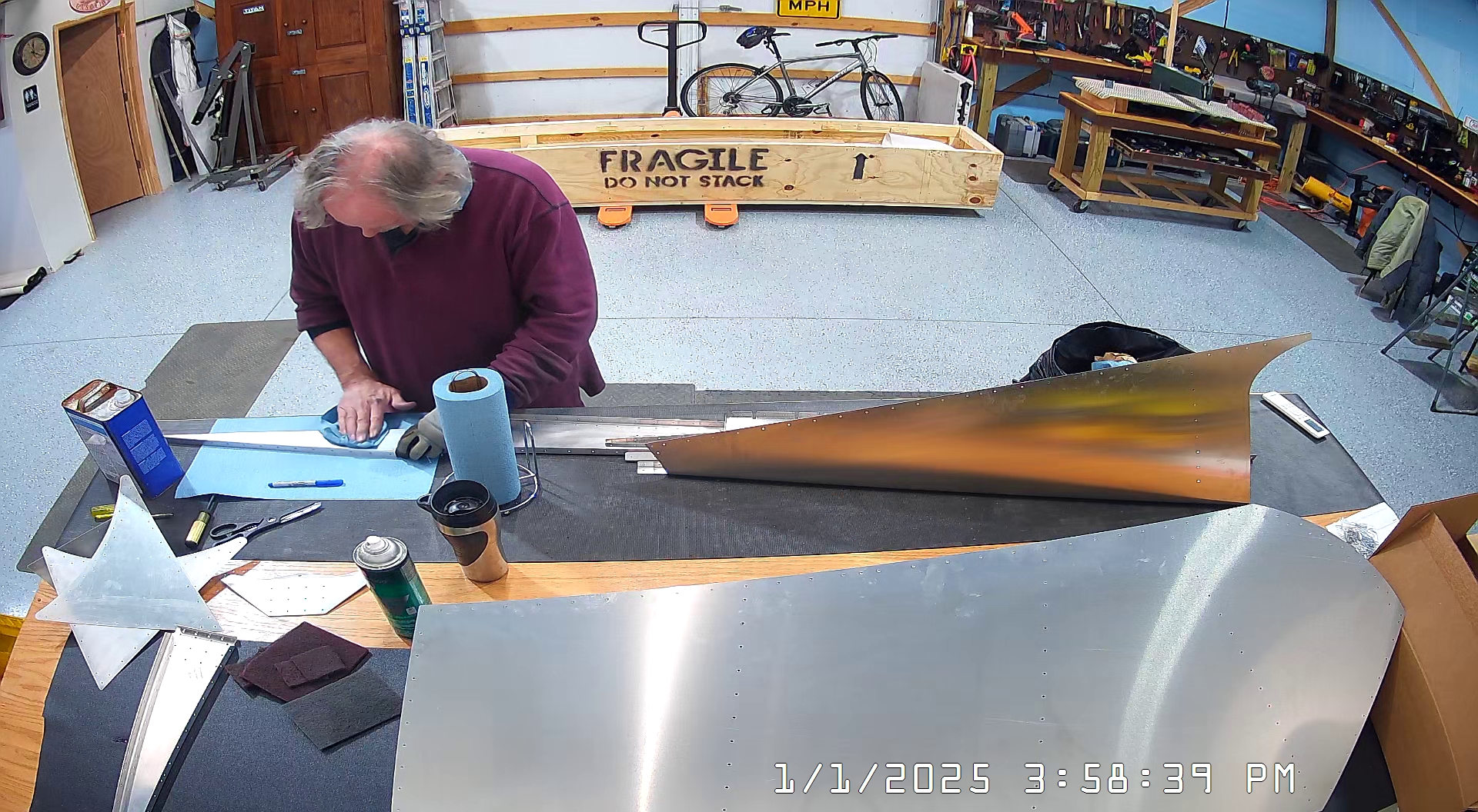 Given that it was New Years day I had a few other responsibilities but managed to sneak out into the workshop for a little while to get the scuffing and cleaning done in preparation for priming all the parts prior to assembly and riveting.