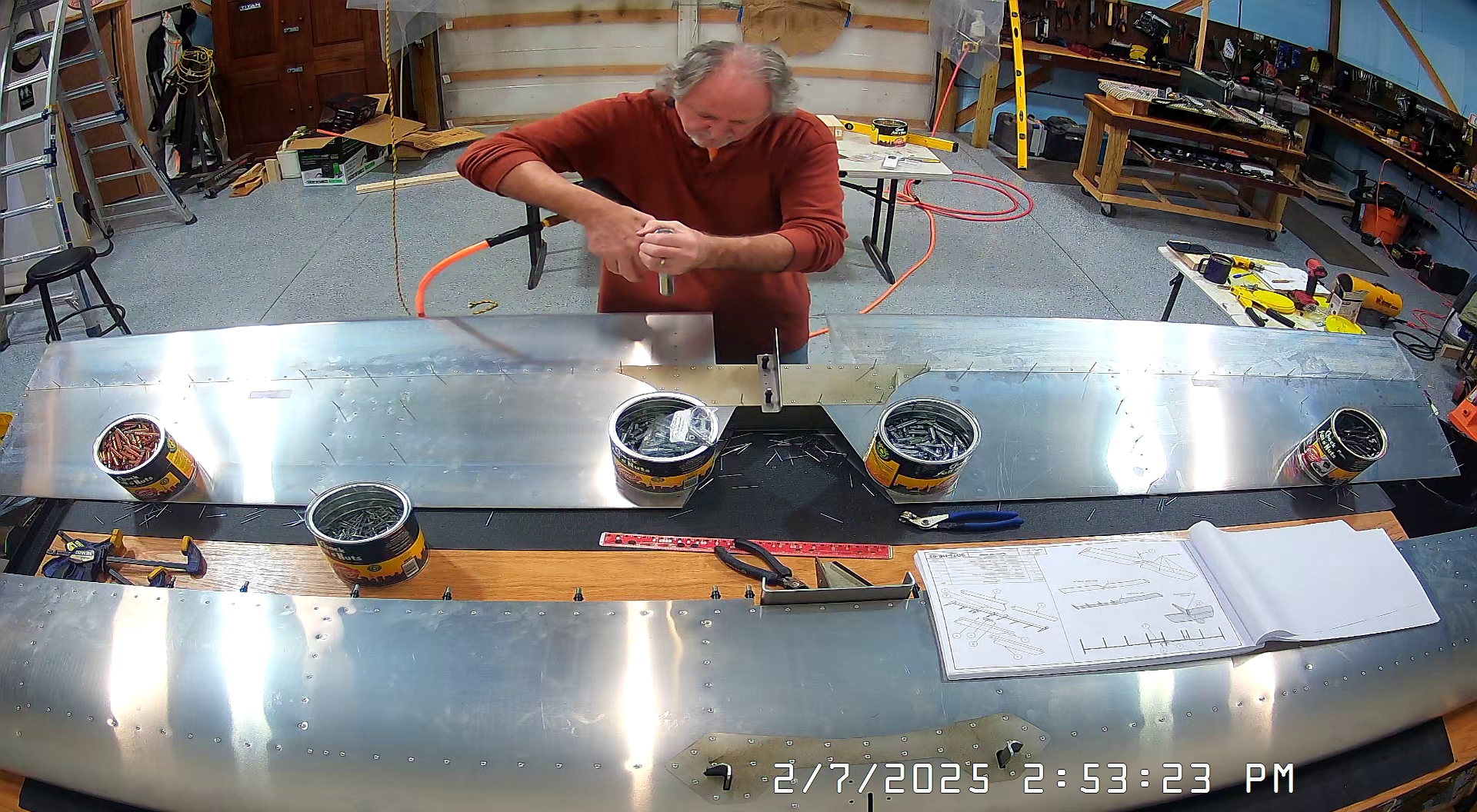 I clecod the left and right skins to the frame and then, per the instructions, the leading edge / nose skin. The photos of the whole process are below.
