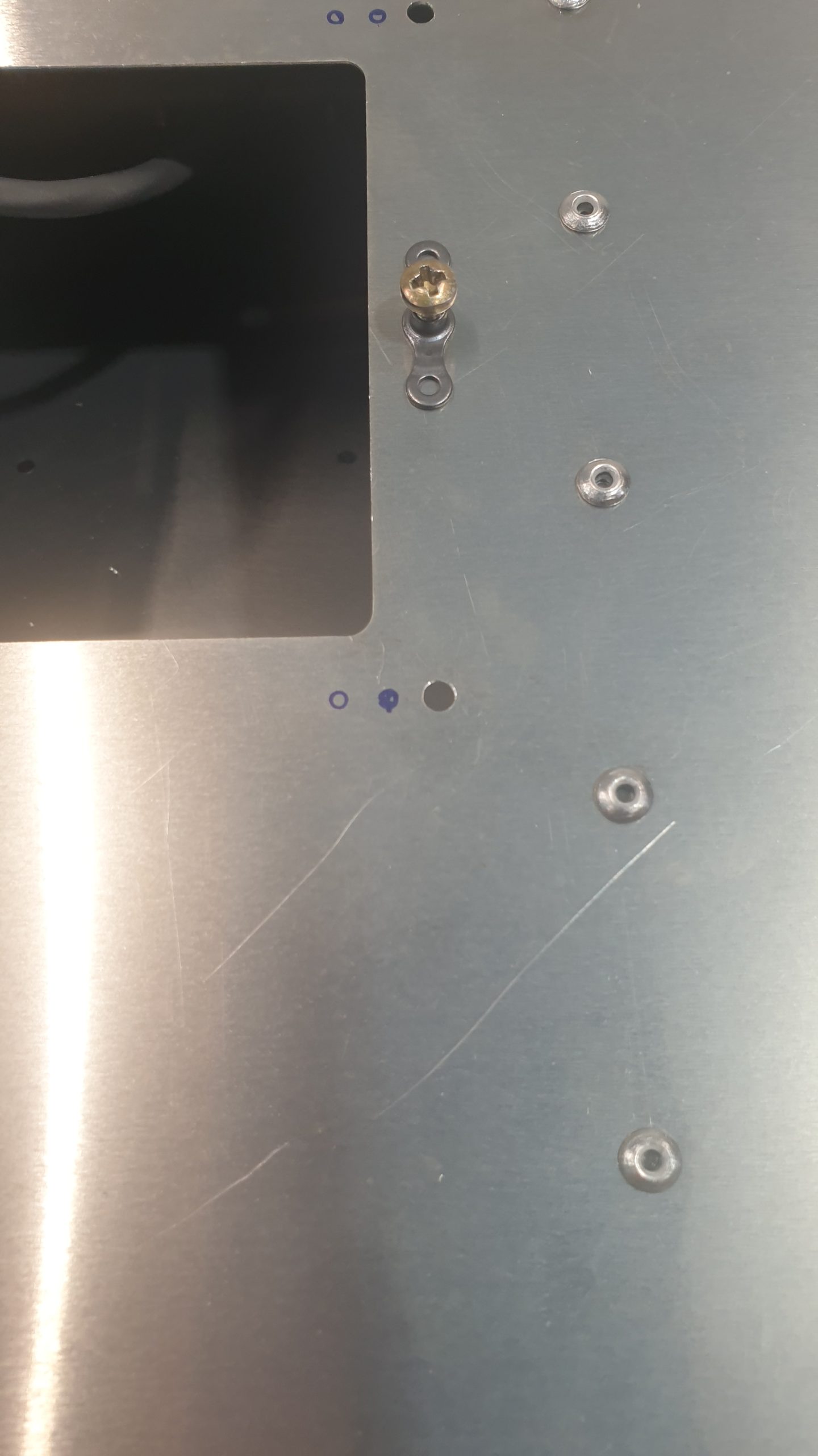 This comprised drilling the rivet holes in the skin with a #28 drill bit so that I can fit a 6-32 machine screw through the hole instead of the A4 rivet. I bought K1000-6 (MS21047L06 Anchor Nut 6-32), and K2000-6 (One Lug Anchor MS21051L06) nutplates. I was initially going to just use the K1000 for all six fastener locations of the cover plate but decided to use the one lug K2000 nutplates in the corners. I think this worked out better.