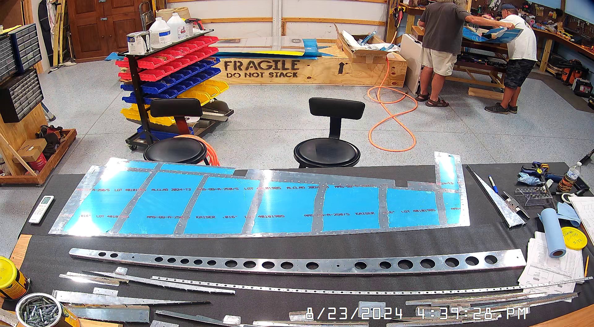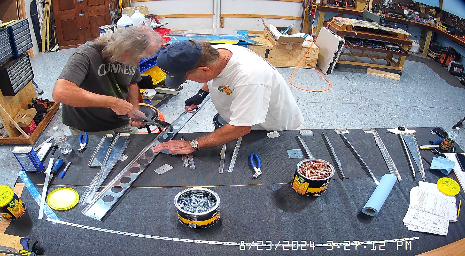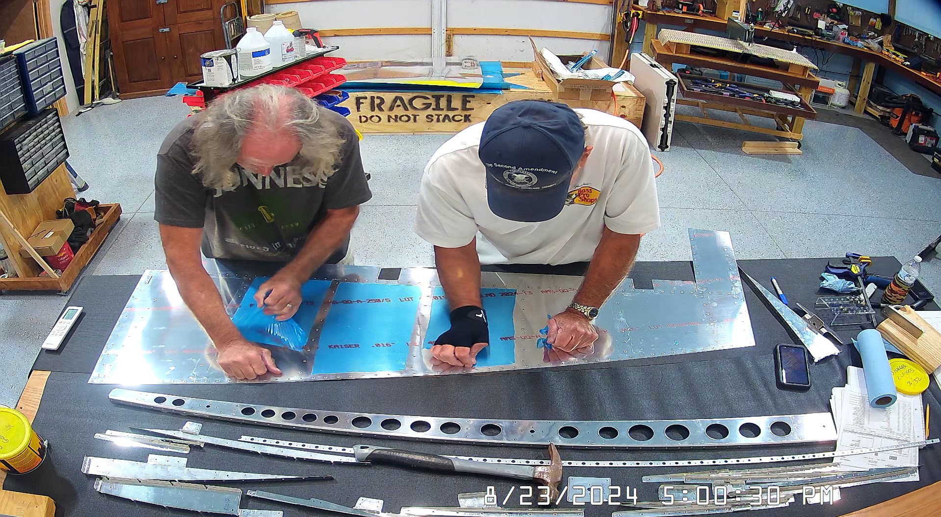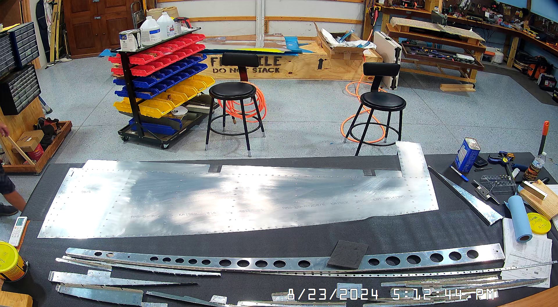 Picking up where we left off yesterday with the rudder assembly. Started by deburring the sking and then attaching the left skin to the rudder skeleton with clecos.