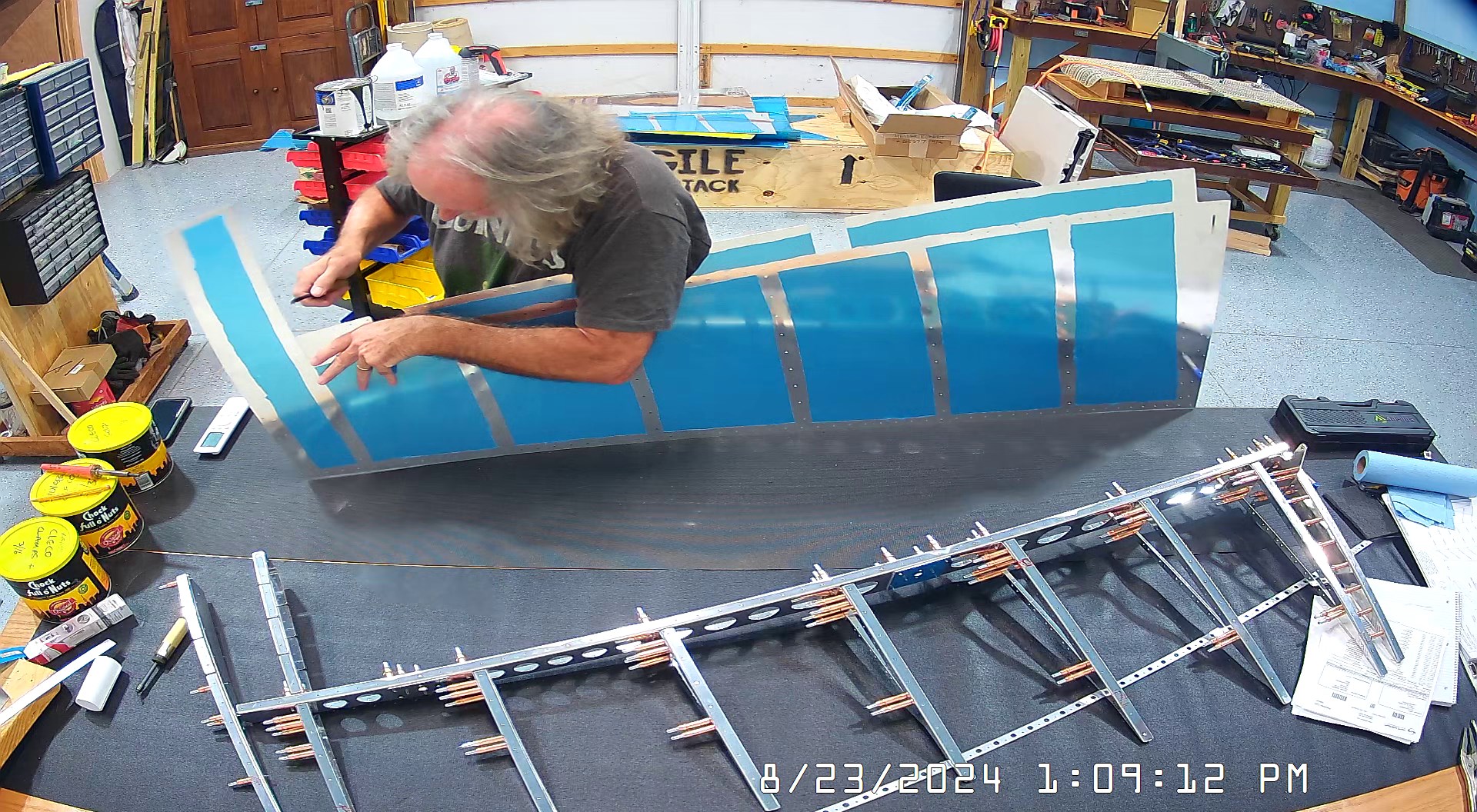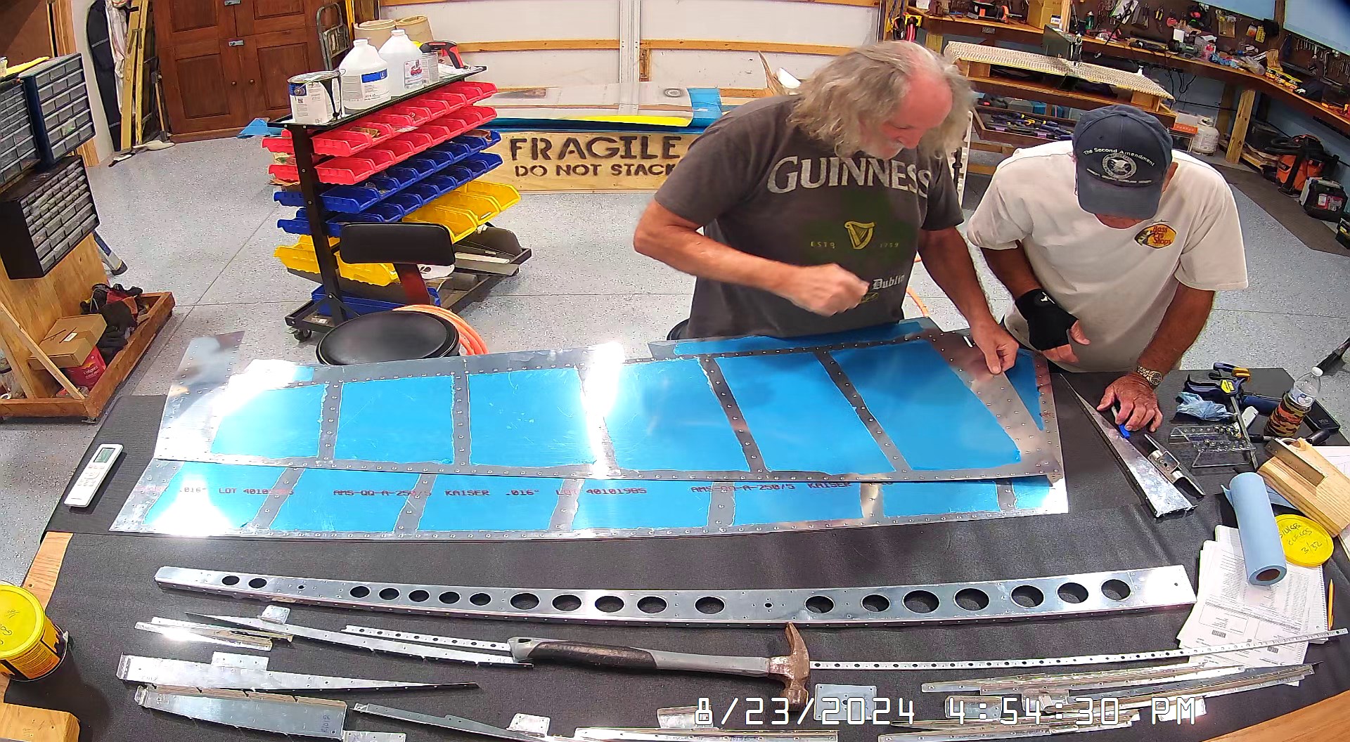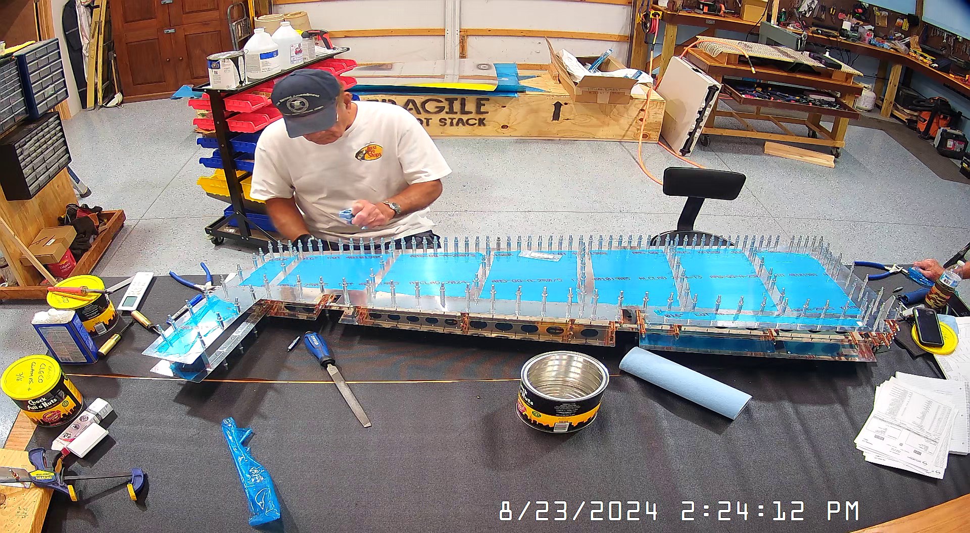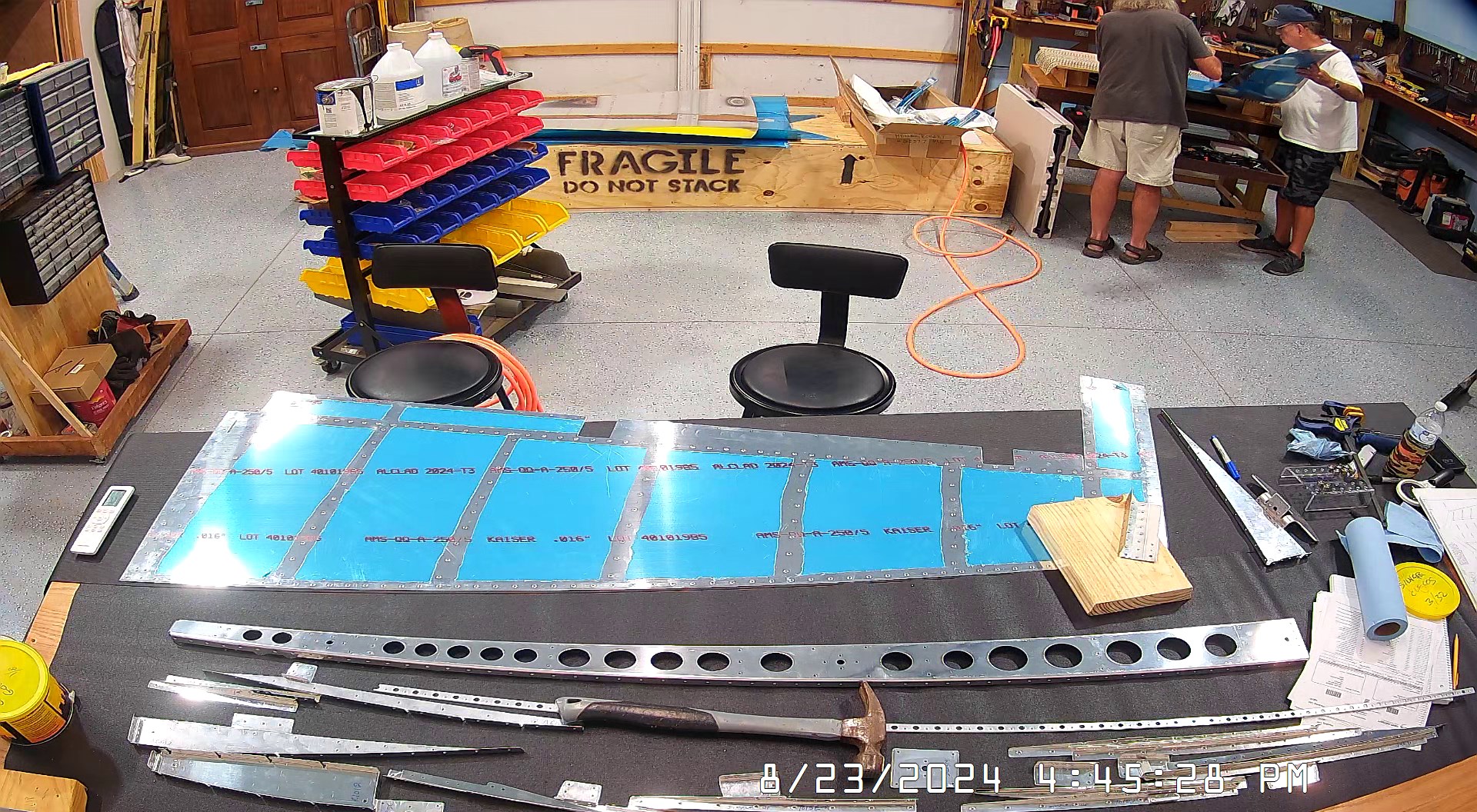 Picking up where we left off yesterday with the rudder assembly. Started by deburring the sking and then attaching the left skin to the rudder skeleton with clecos.
