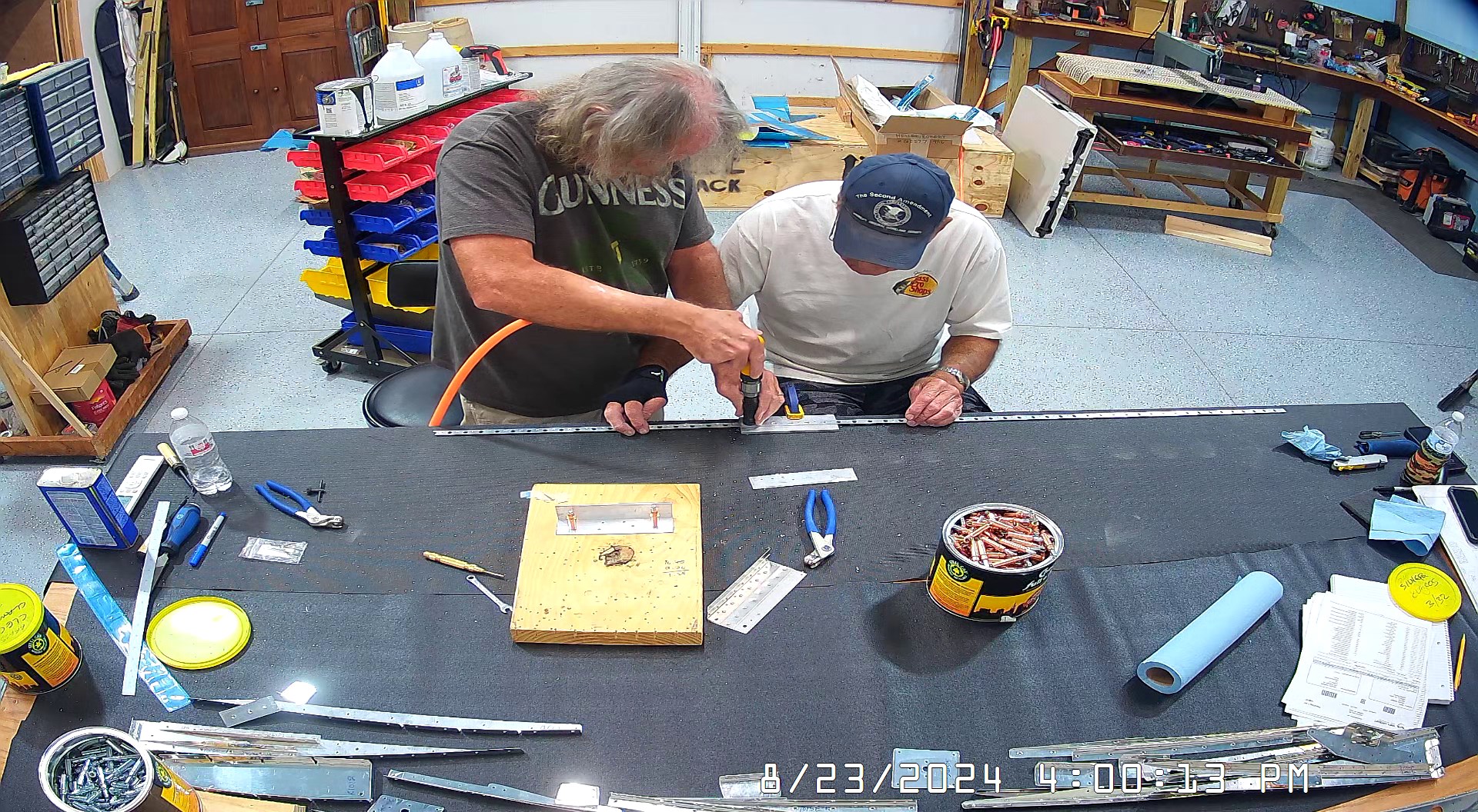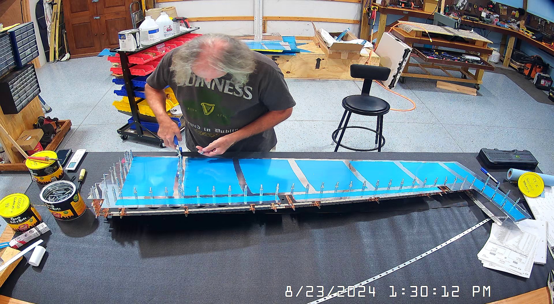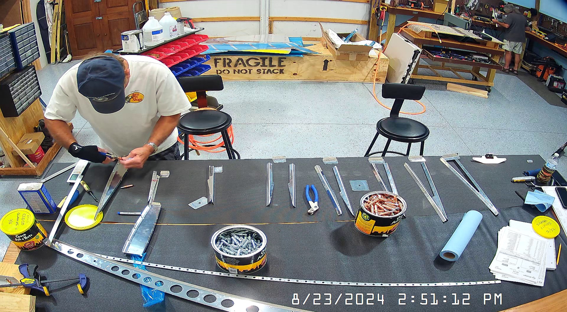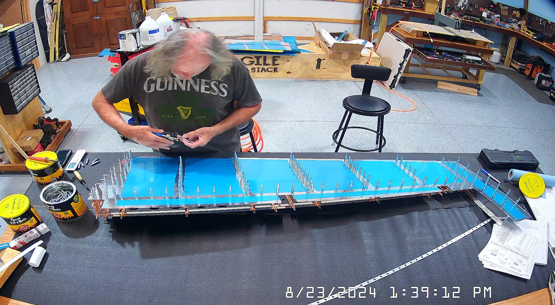 Picking up where we left off yesterday with the rudder assembly. Started by deburring the sking and then attaching the left skin to the rudder skeleton with clecos.