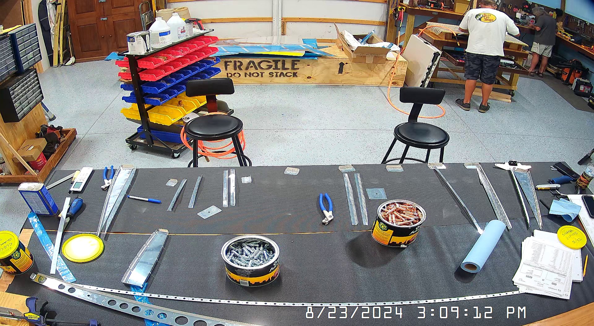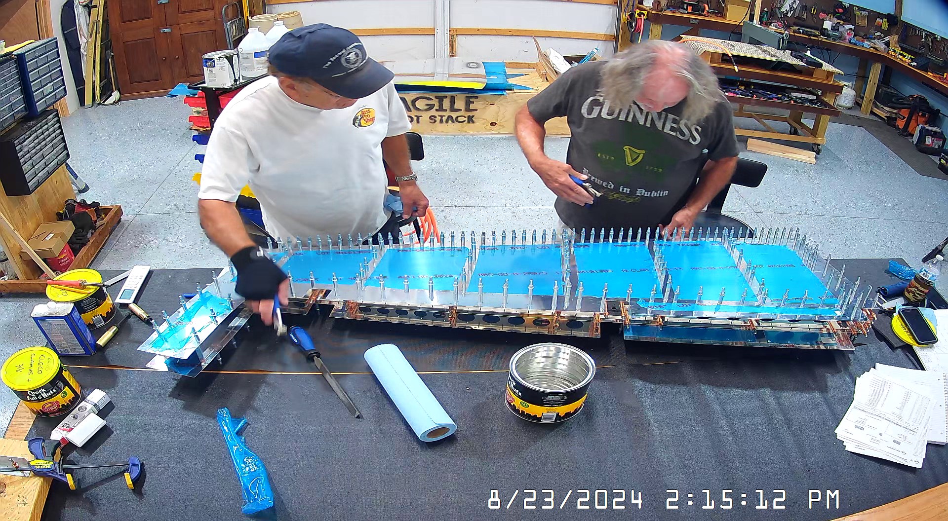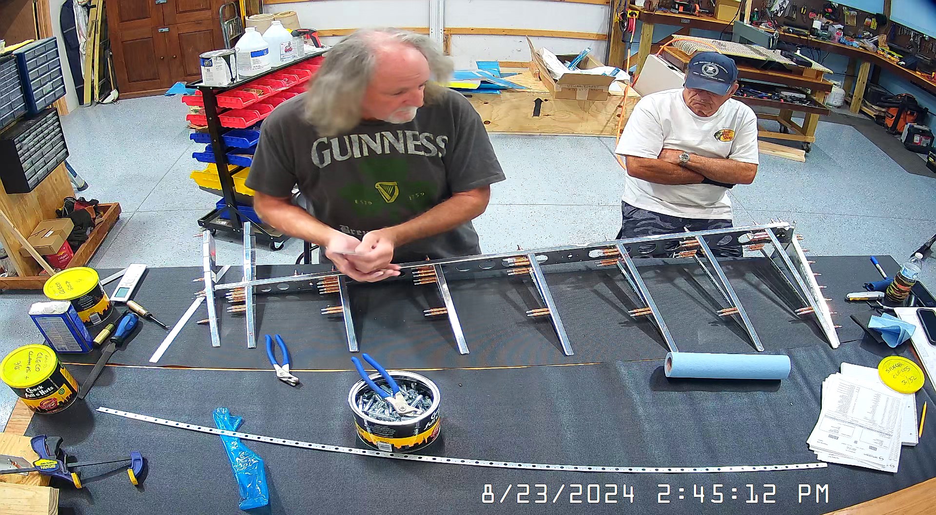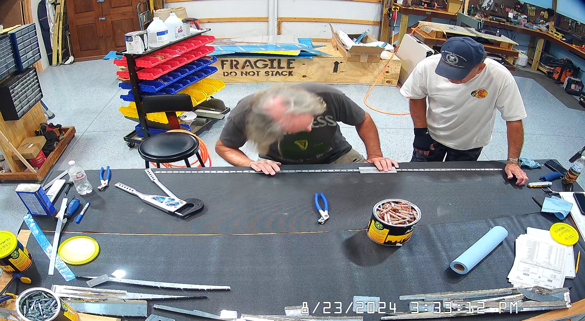 Picking up where we left off yesterday with the rudder assembly. Started by deburring the sking and then attaching the left skin to the rudder skeleton with clecos.