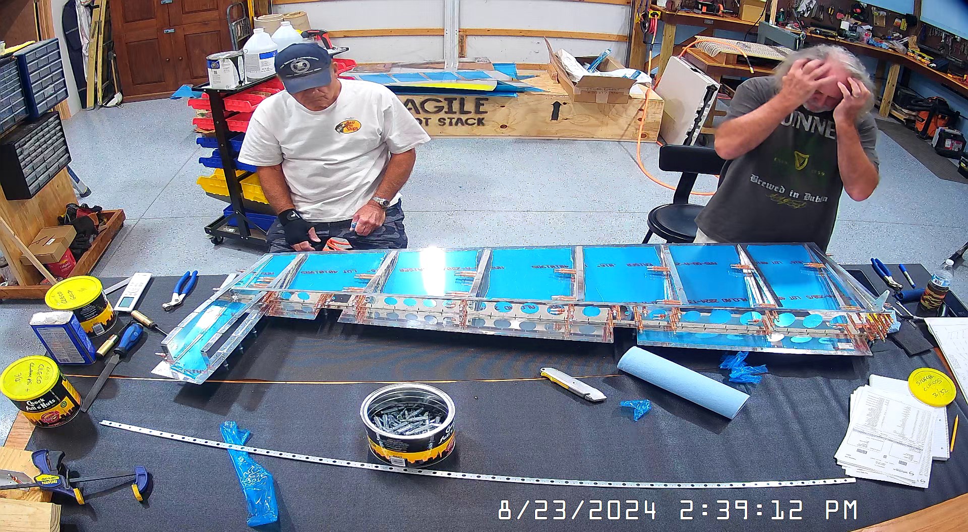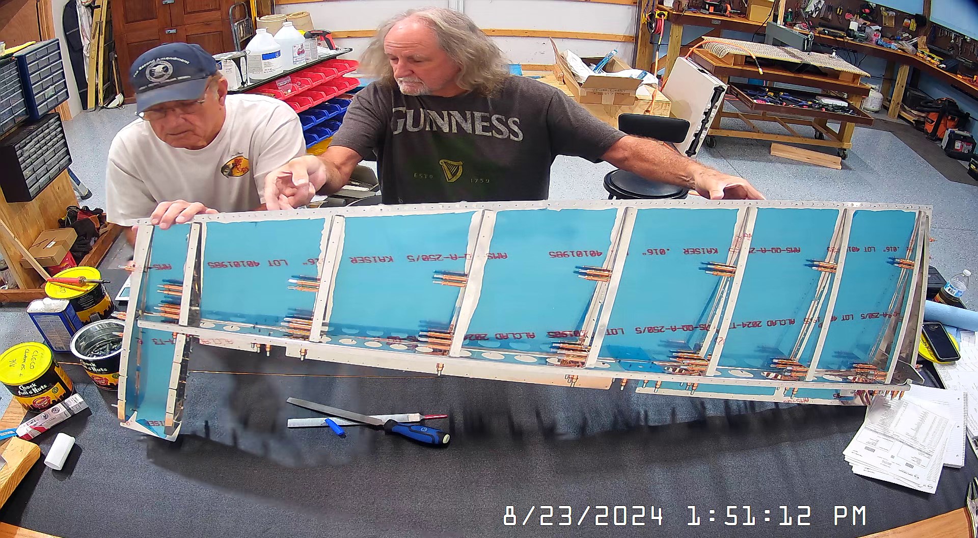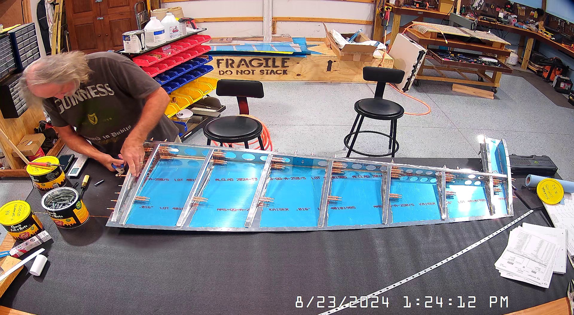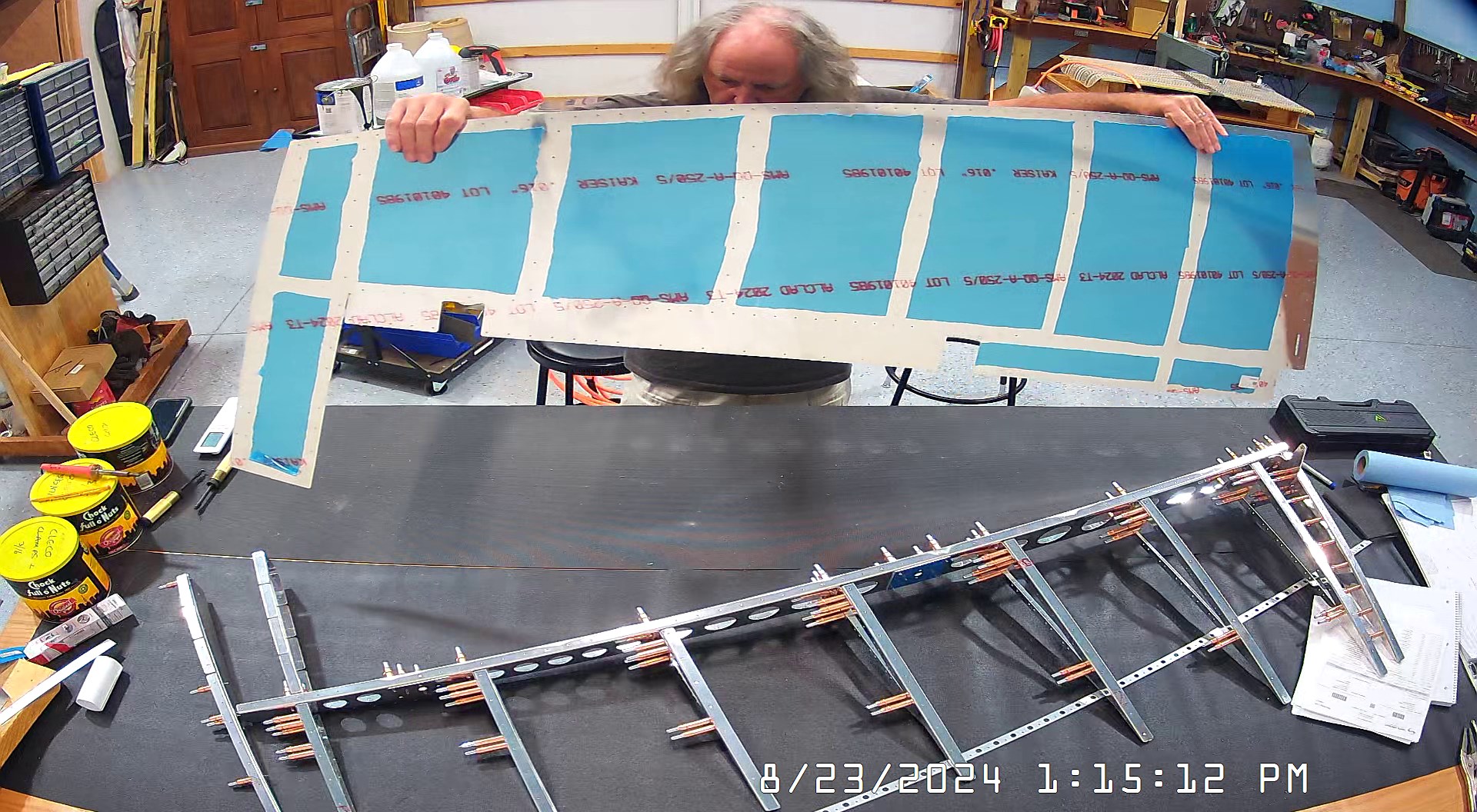 Then lined up and attached the trailing edge wedge followed by the left skin. After checking all the holes were final sized, the parts were final sized during manufacture so we had nothing to do there, the whole assembly was then disassembled again.