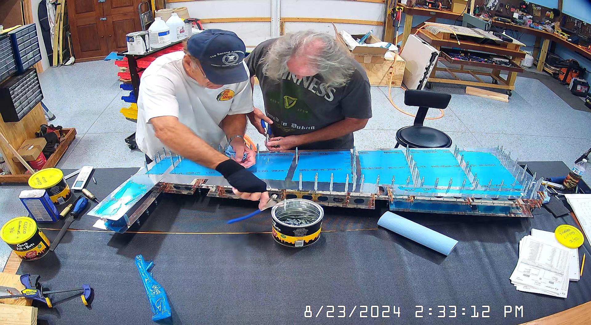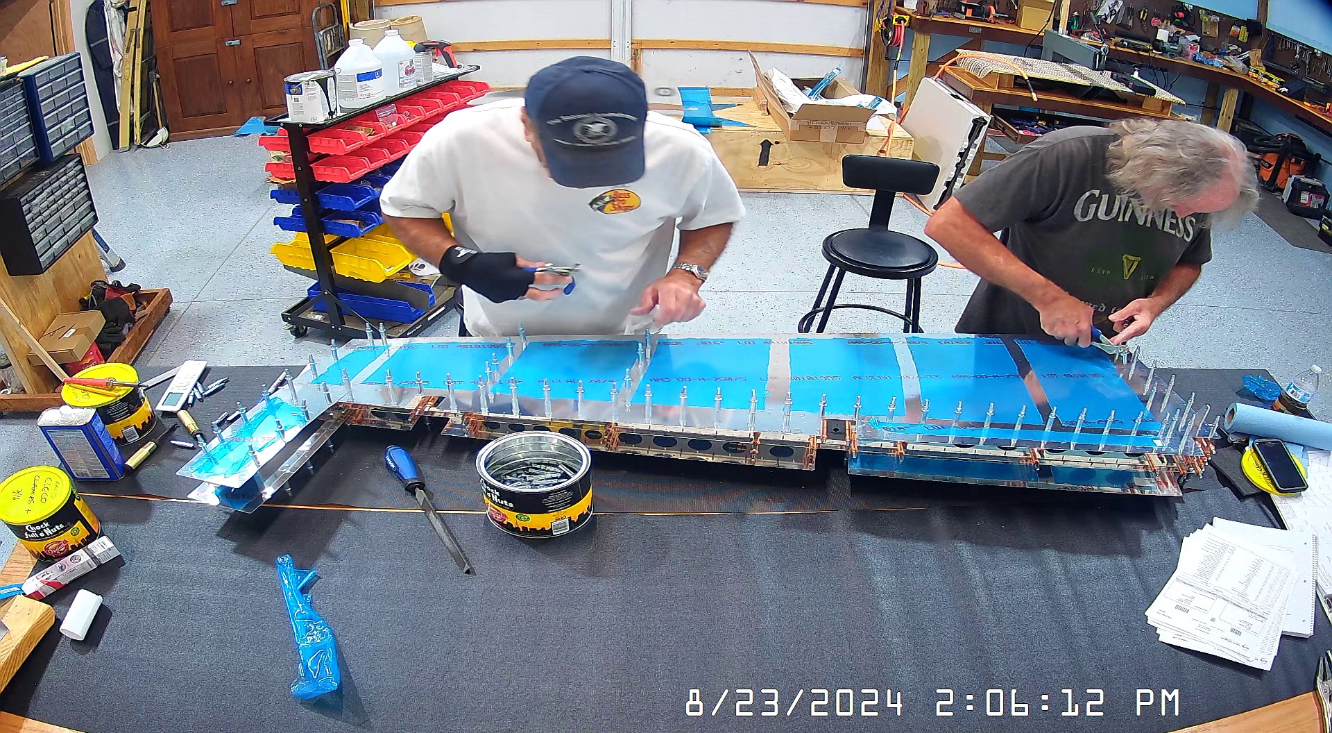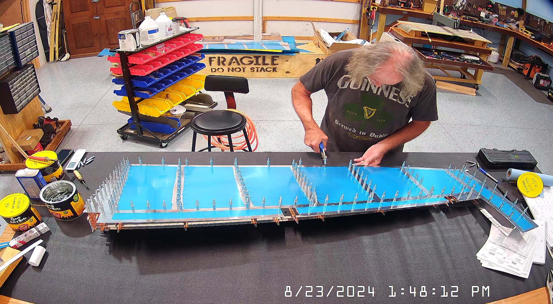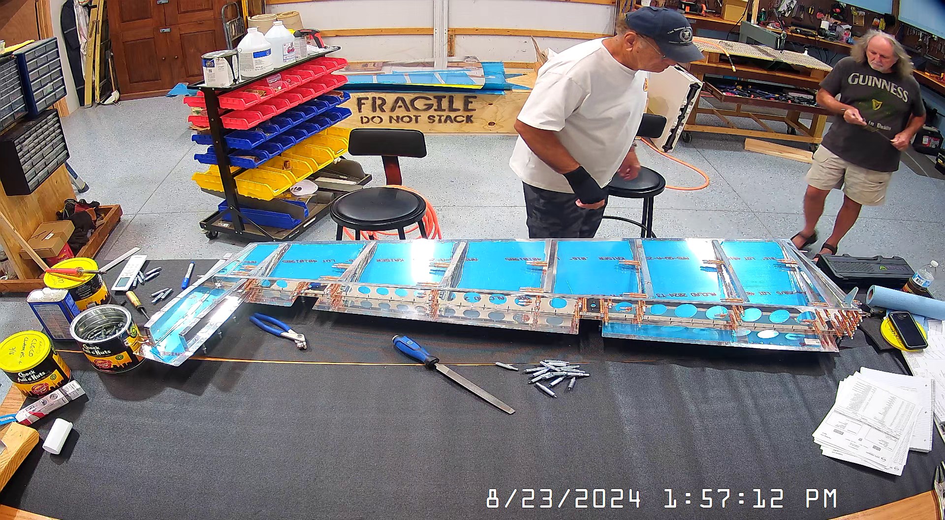 Then lined up and attached the trailing edge wedge followed by the left skin. After checking all the holes were final sized, the parts were final sized during manufacture so we had nothing to do there, the whole assembly was then disassembled again.