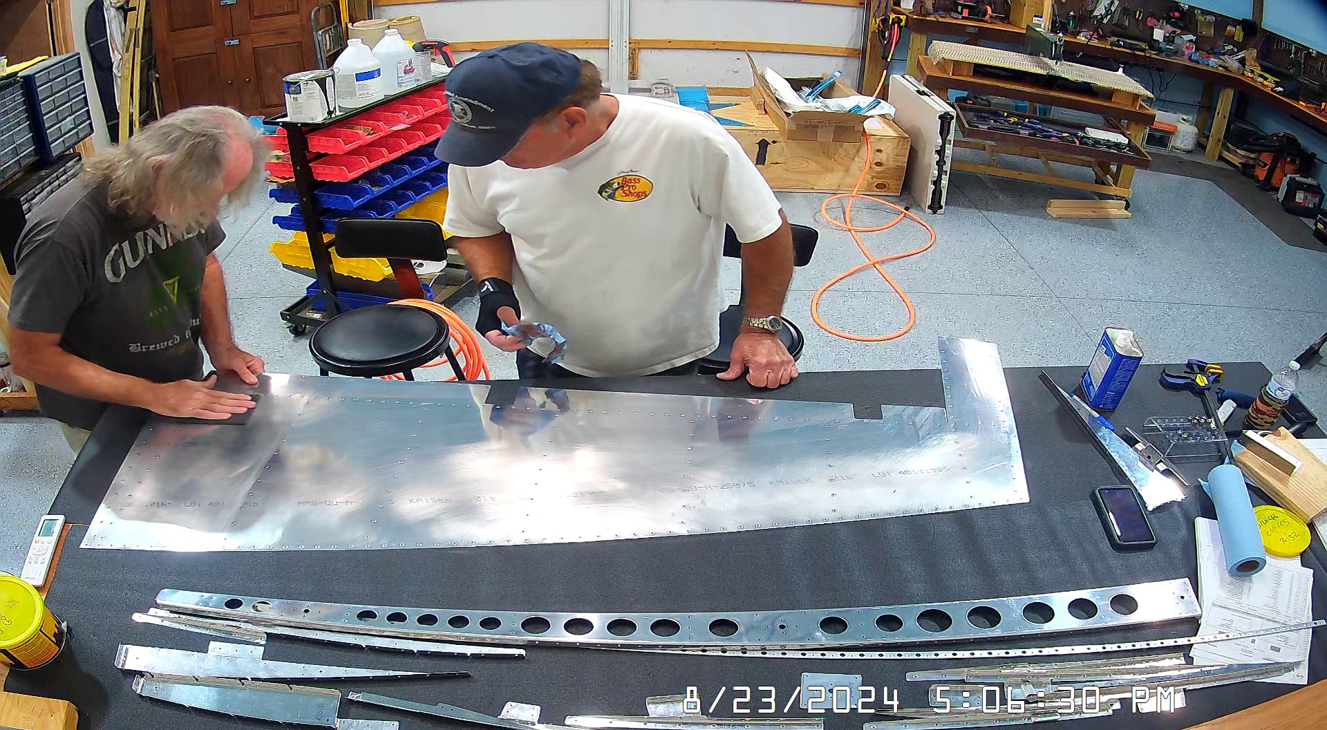 Both sides of the wedge have to be machine countersinked, careful to not countersink too deeply and widen the holes, because the trailing edge is double-flush riveted.