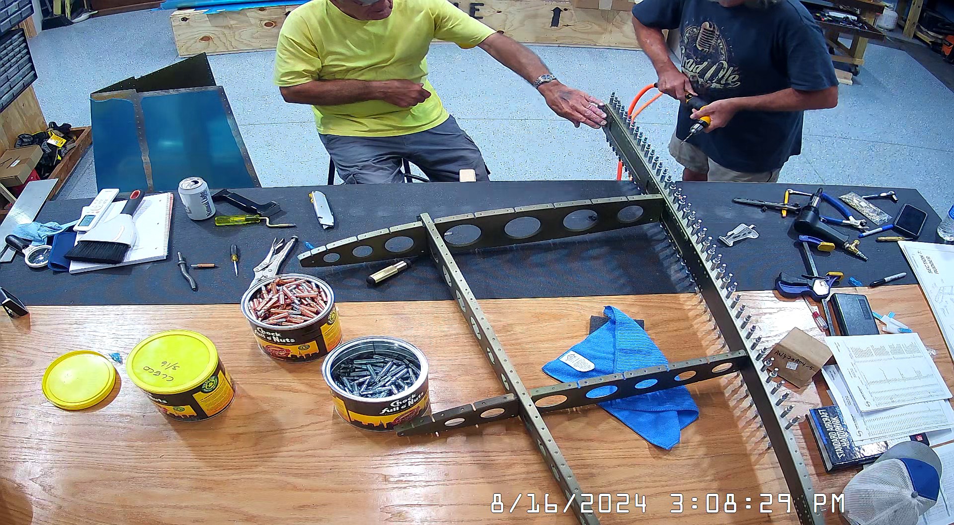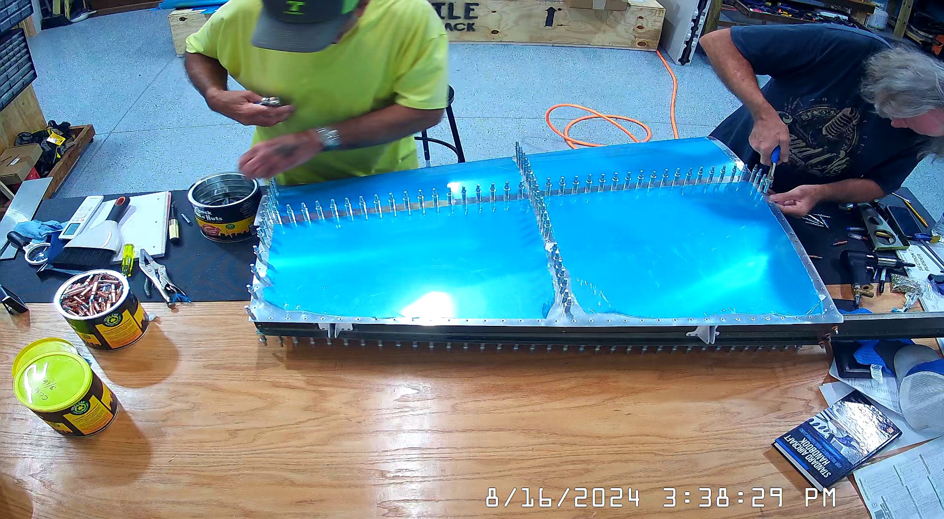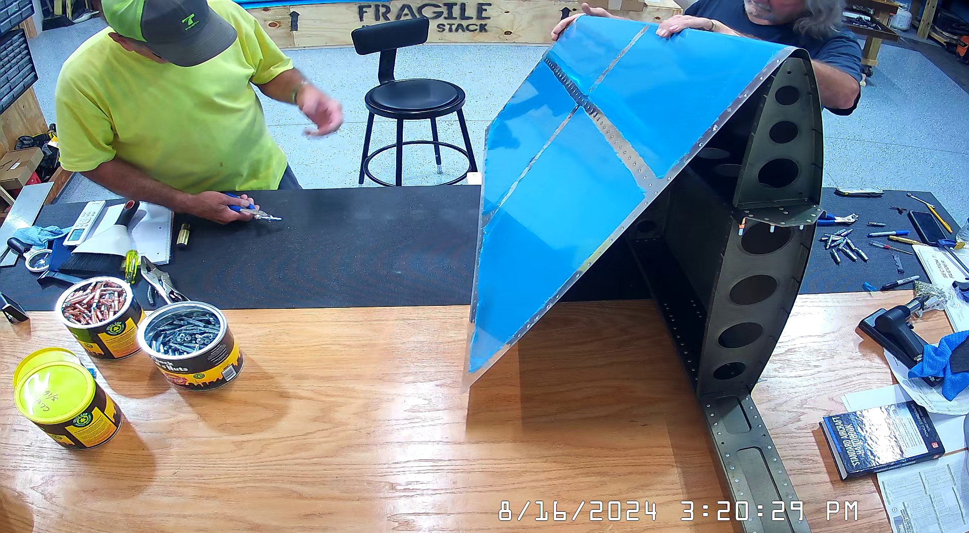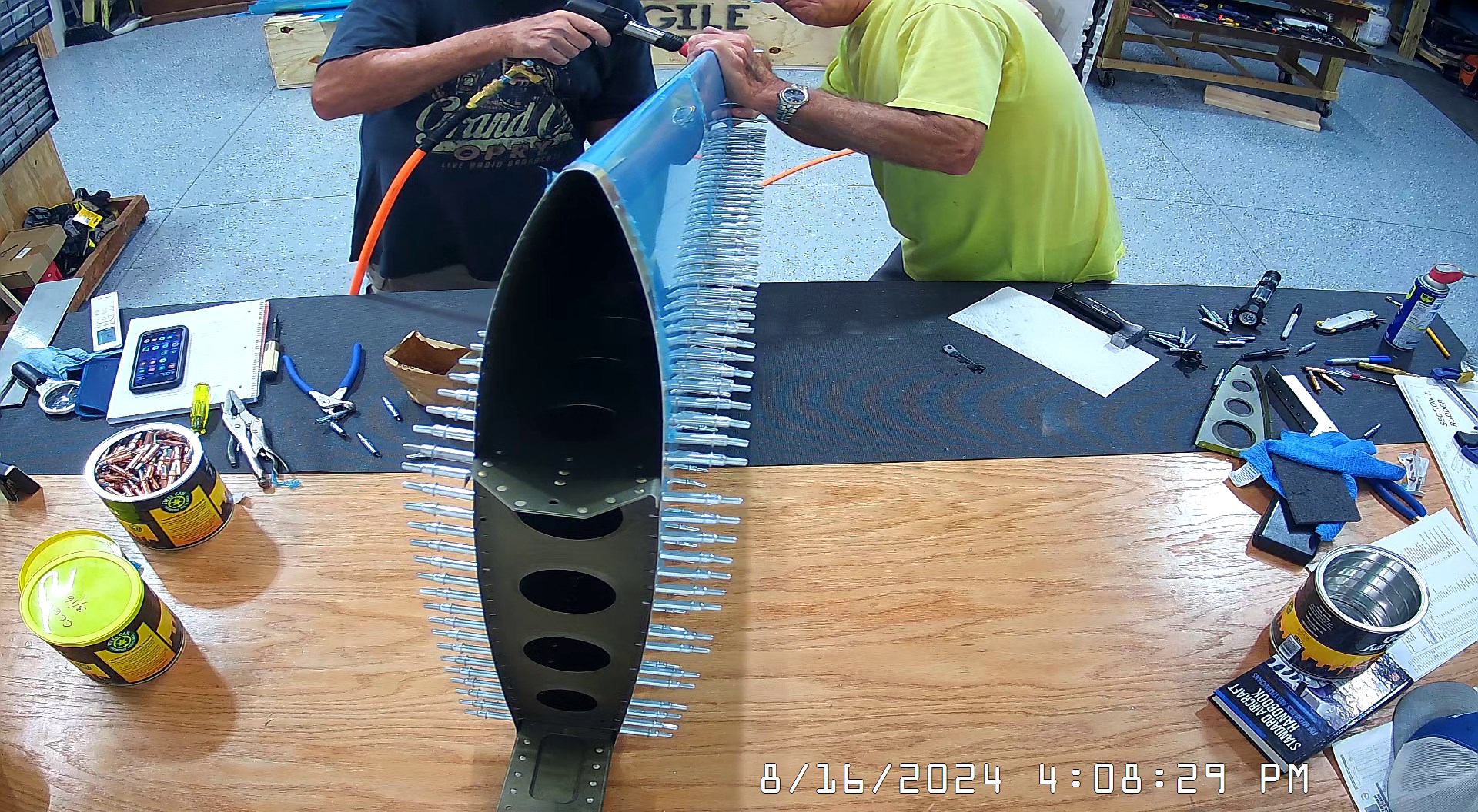 EJ came to help today so we completed the assembly of the VS skeleton and then cleco attached the skin ready to start riveting. No question the work goes faster when there are 2 people, particularly with the rivet bucking.