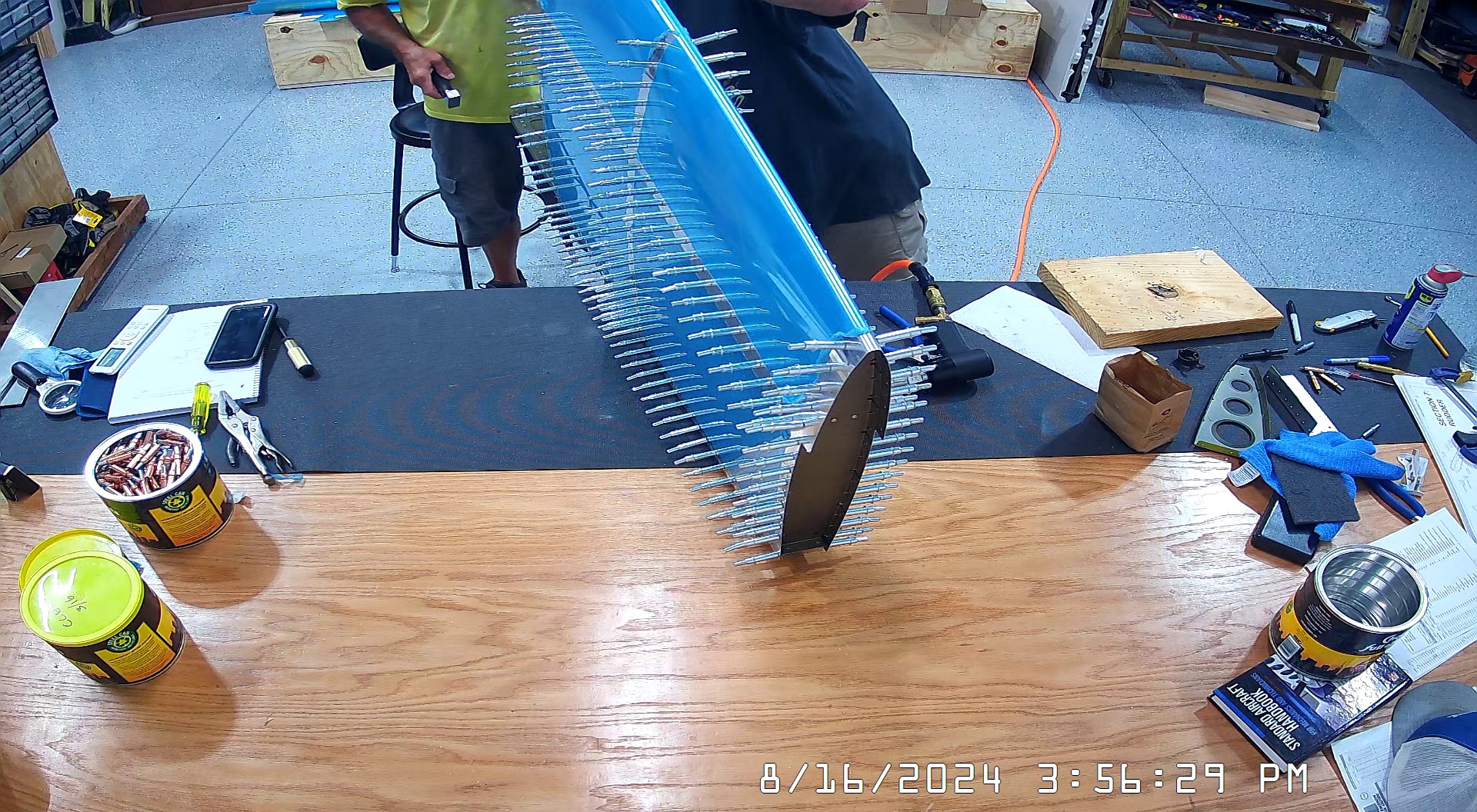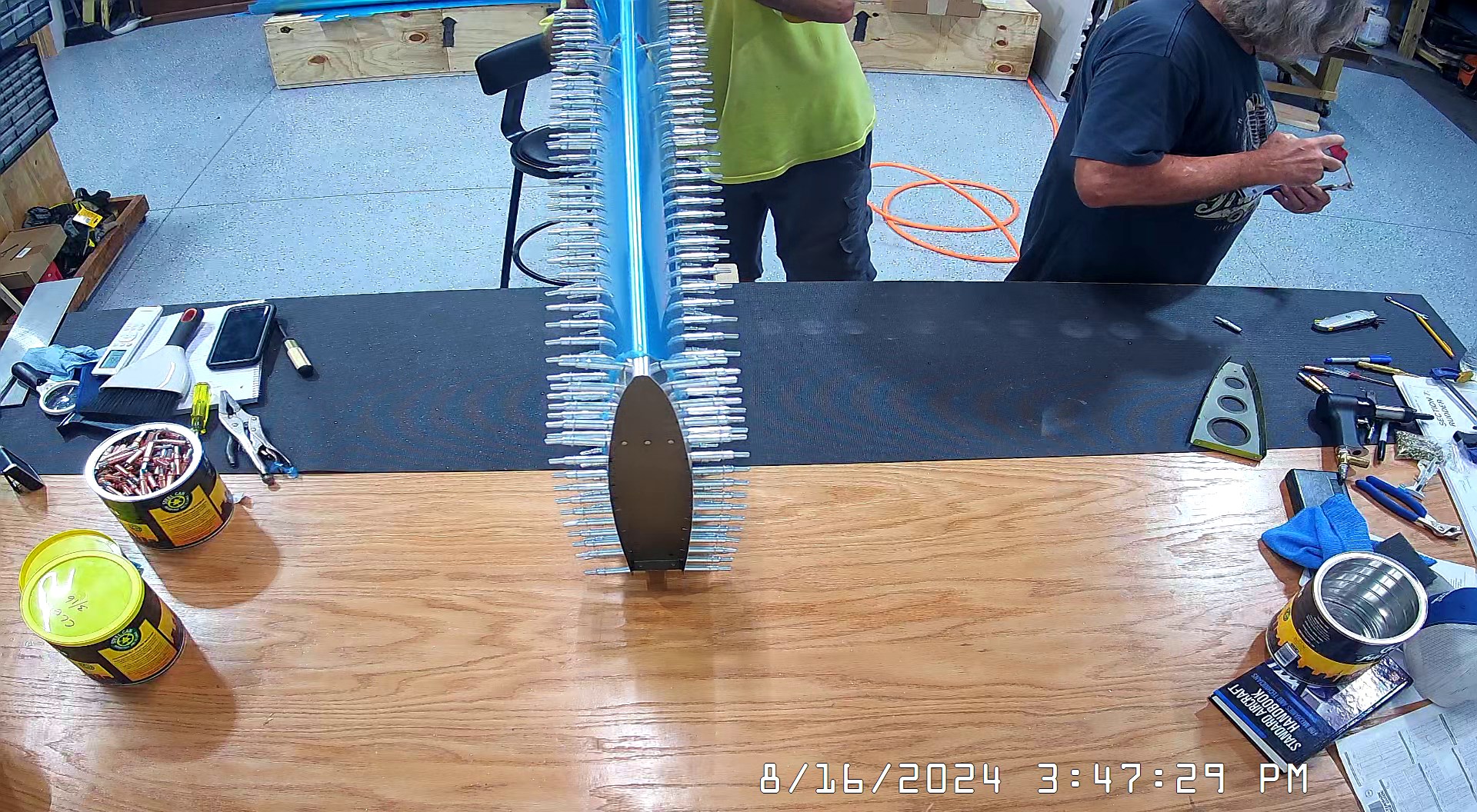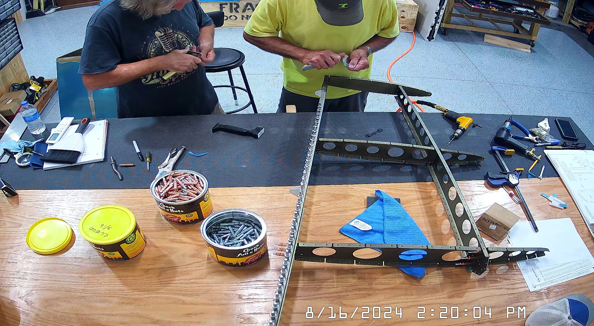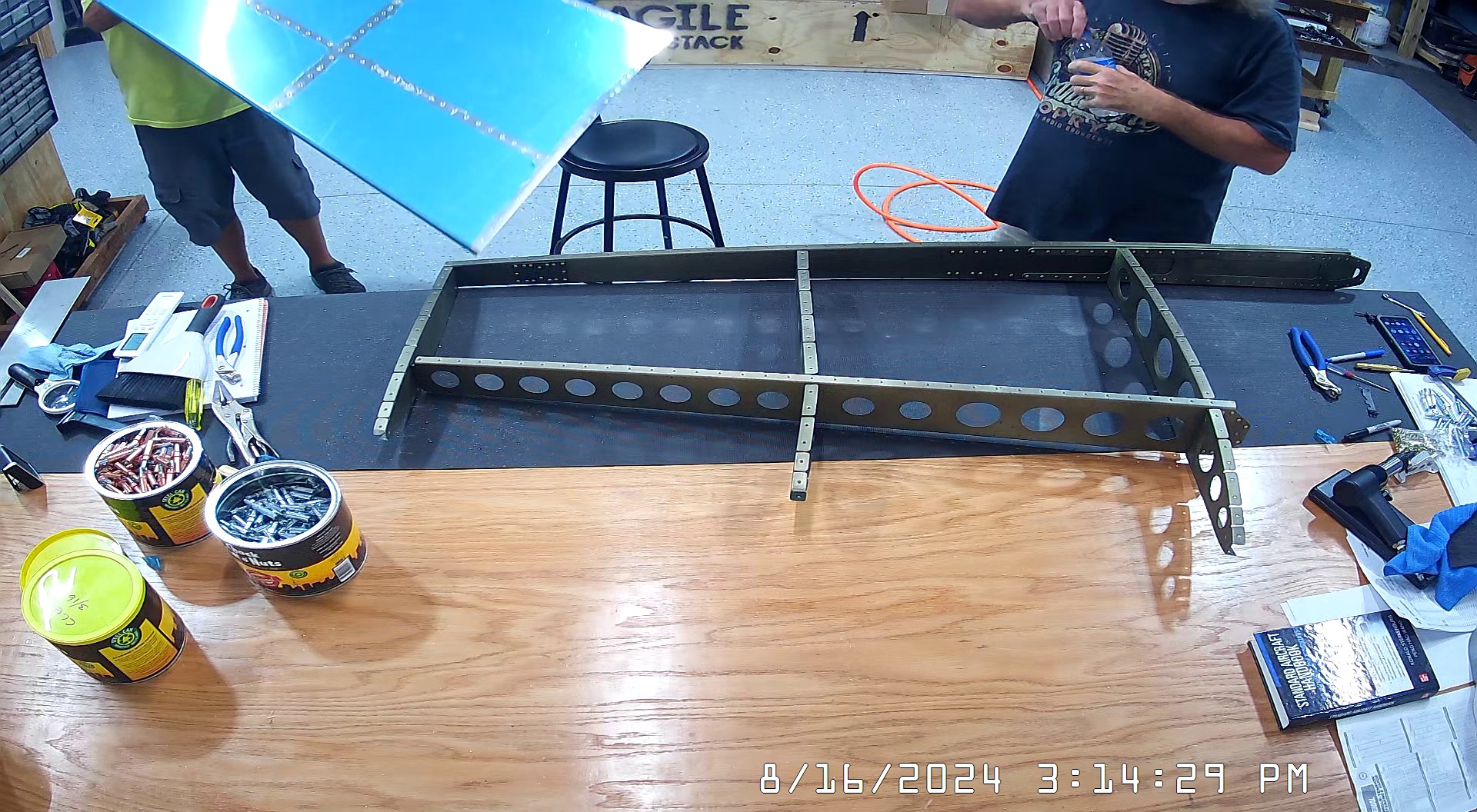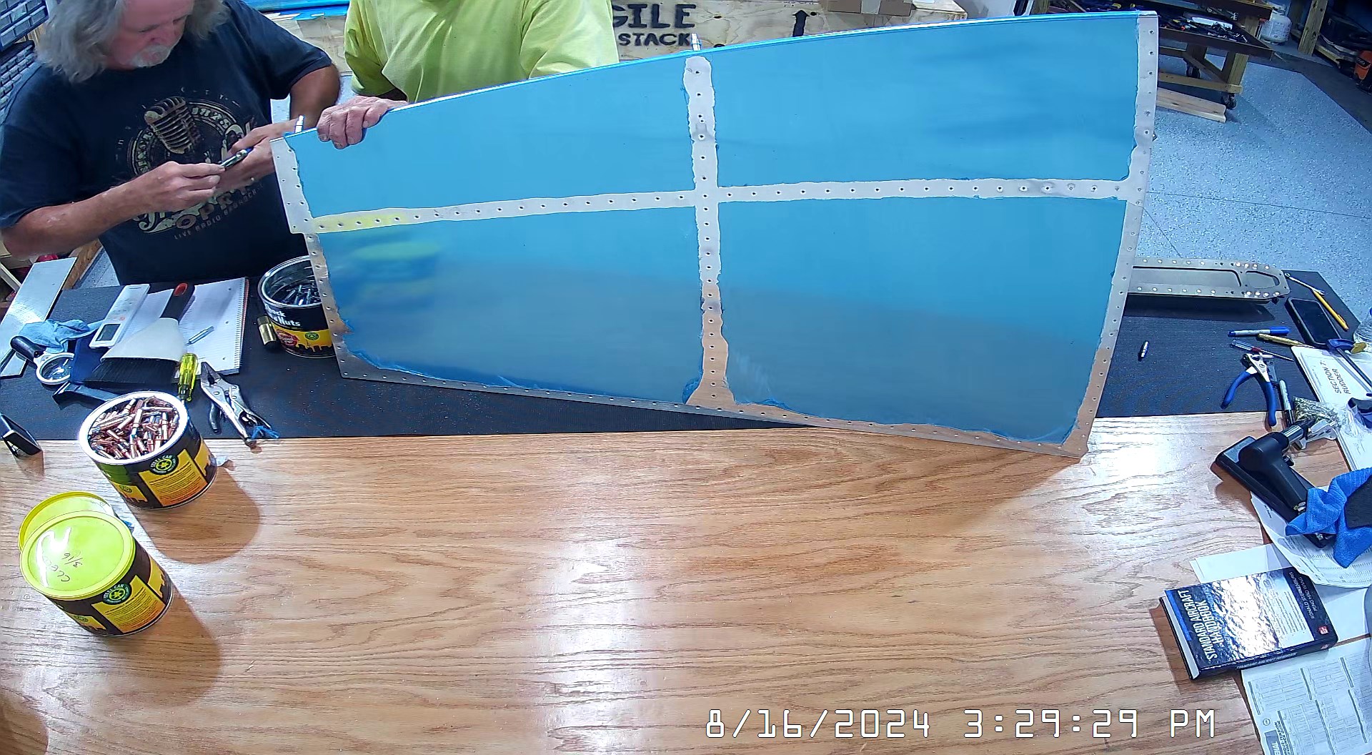 EJ came to help today so we completed the assembly of the VS skeleton and then cleco attached the skin ready to start riveting. No question the work goes faster when there are 2 people, particularly with the rivet bucking.