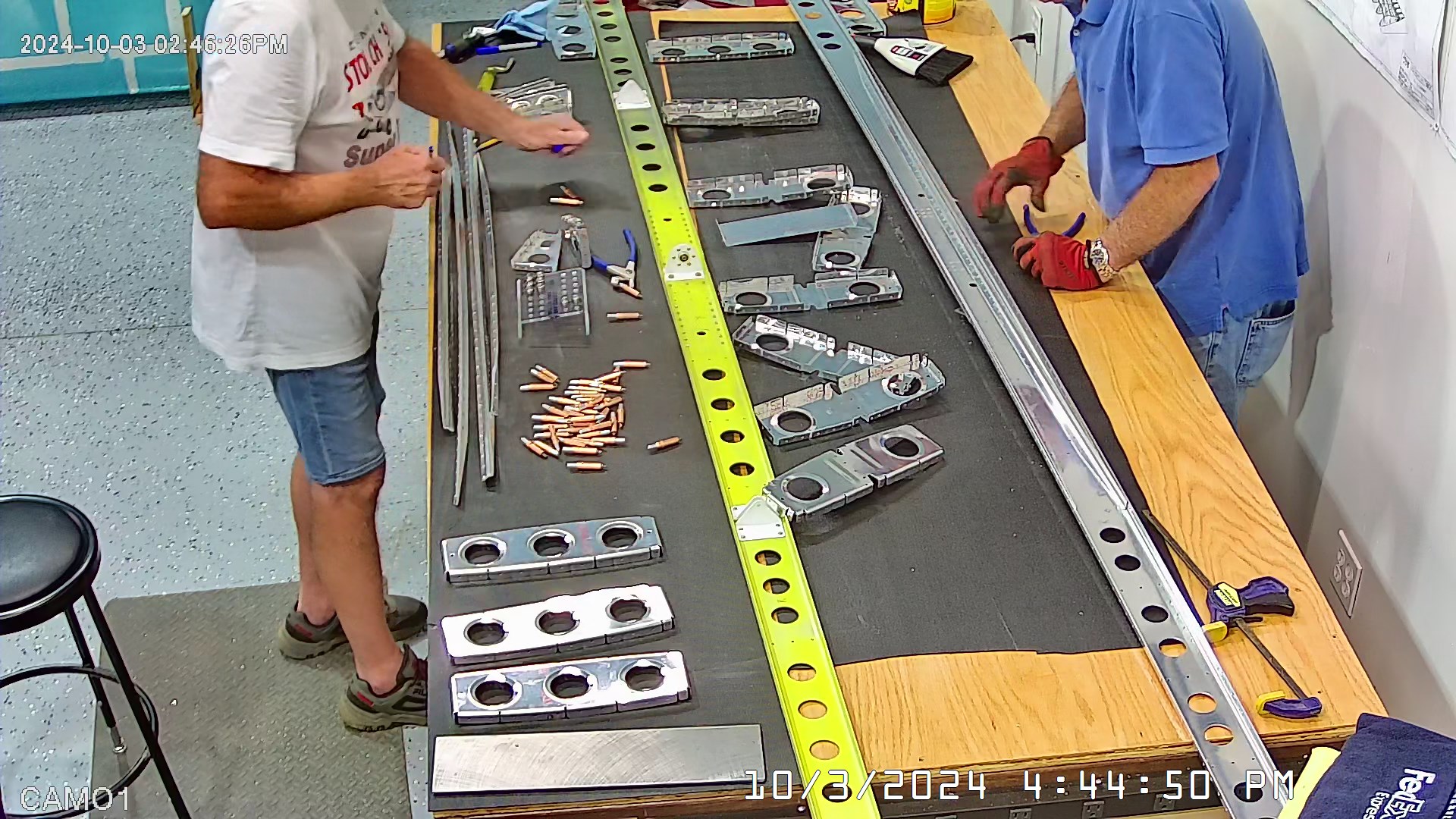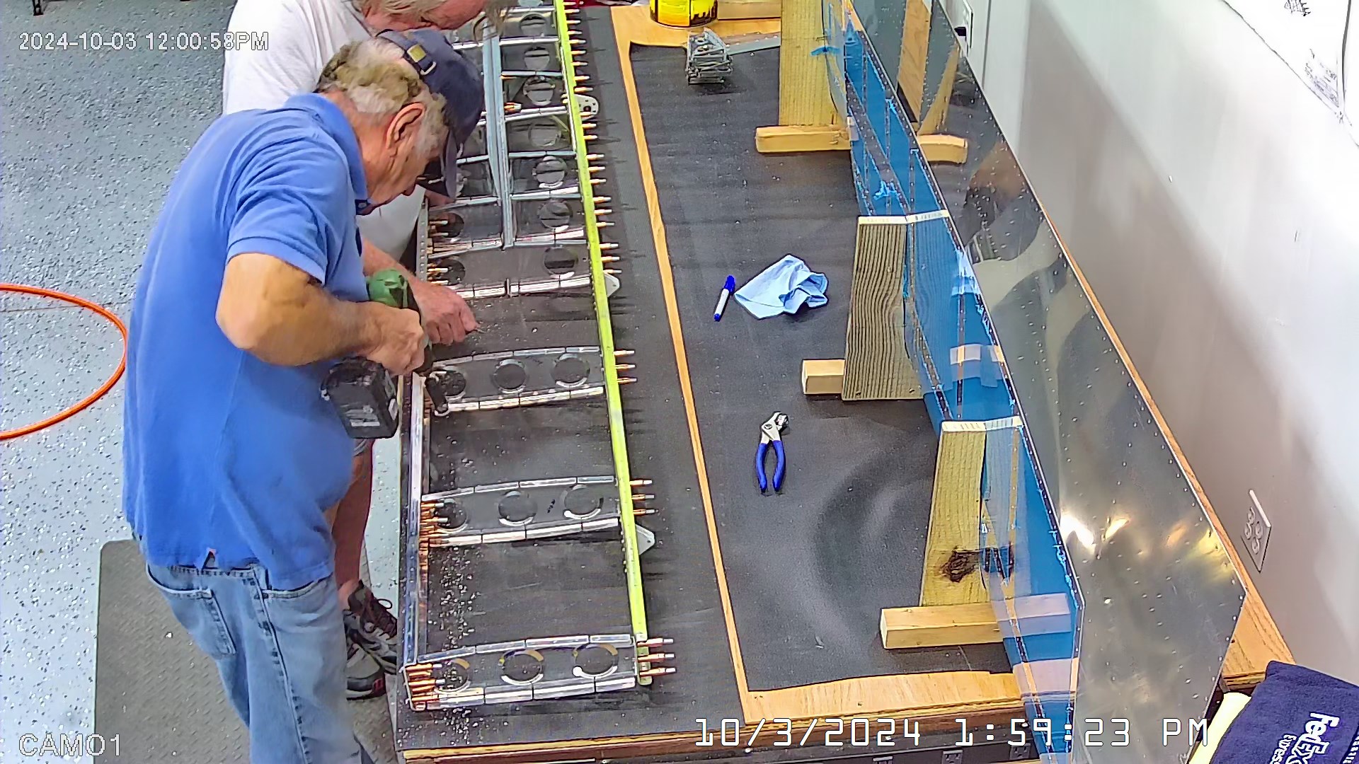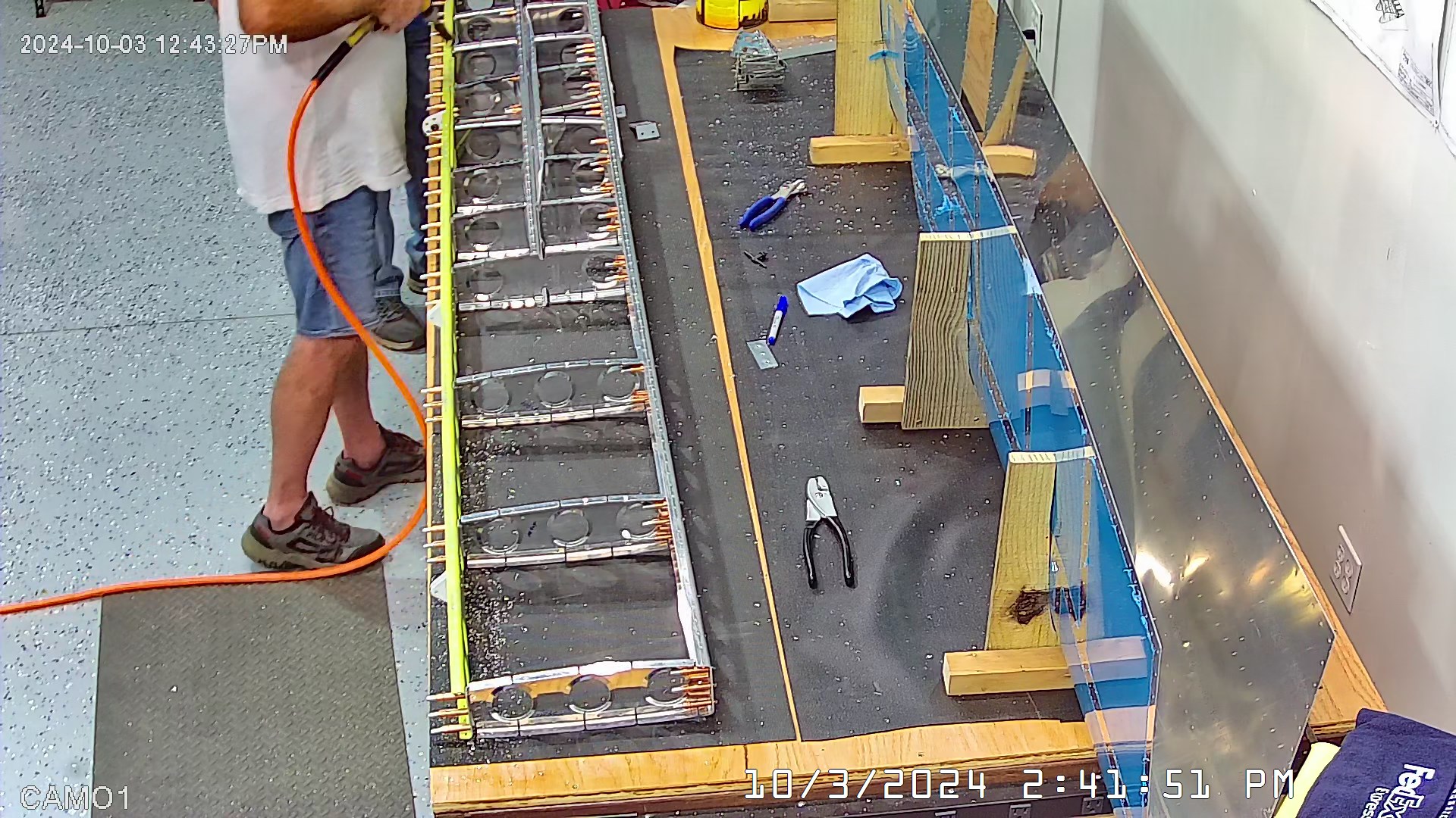 Once we had finished the countersinking we moved over to the C-Frame bench to dimple the skins, which we completed. Unfortunately the camera on the bench was not recording but I do have some overhead from another camera which I posted.