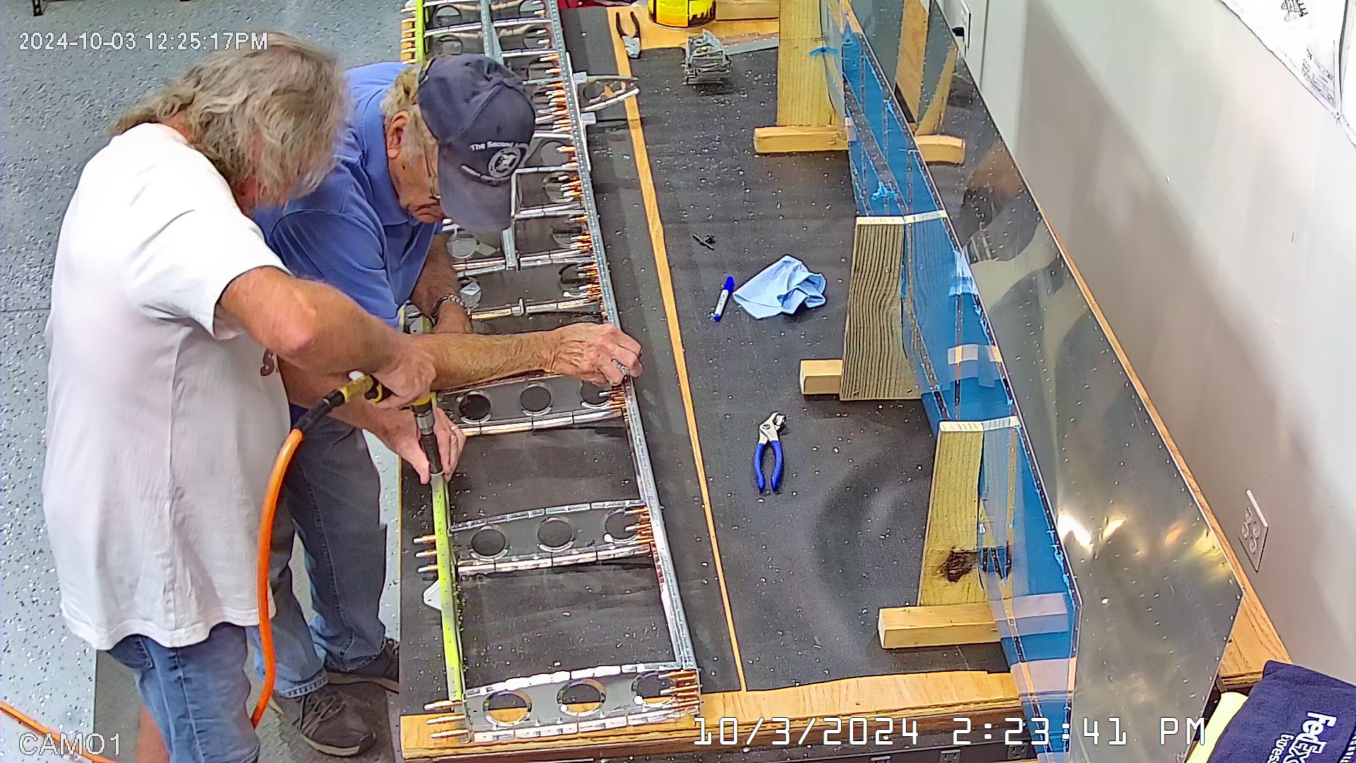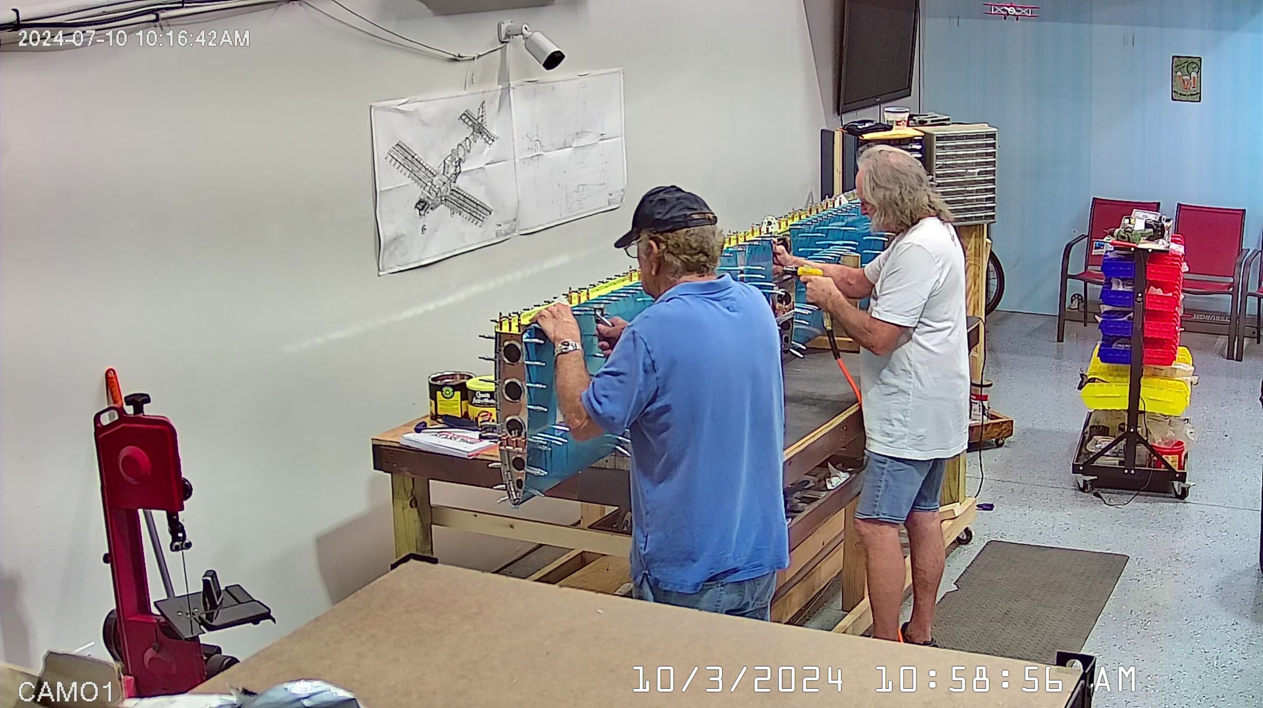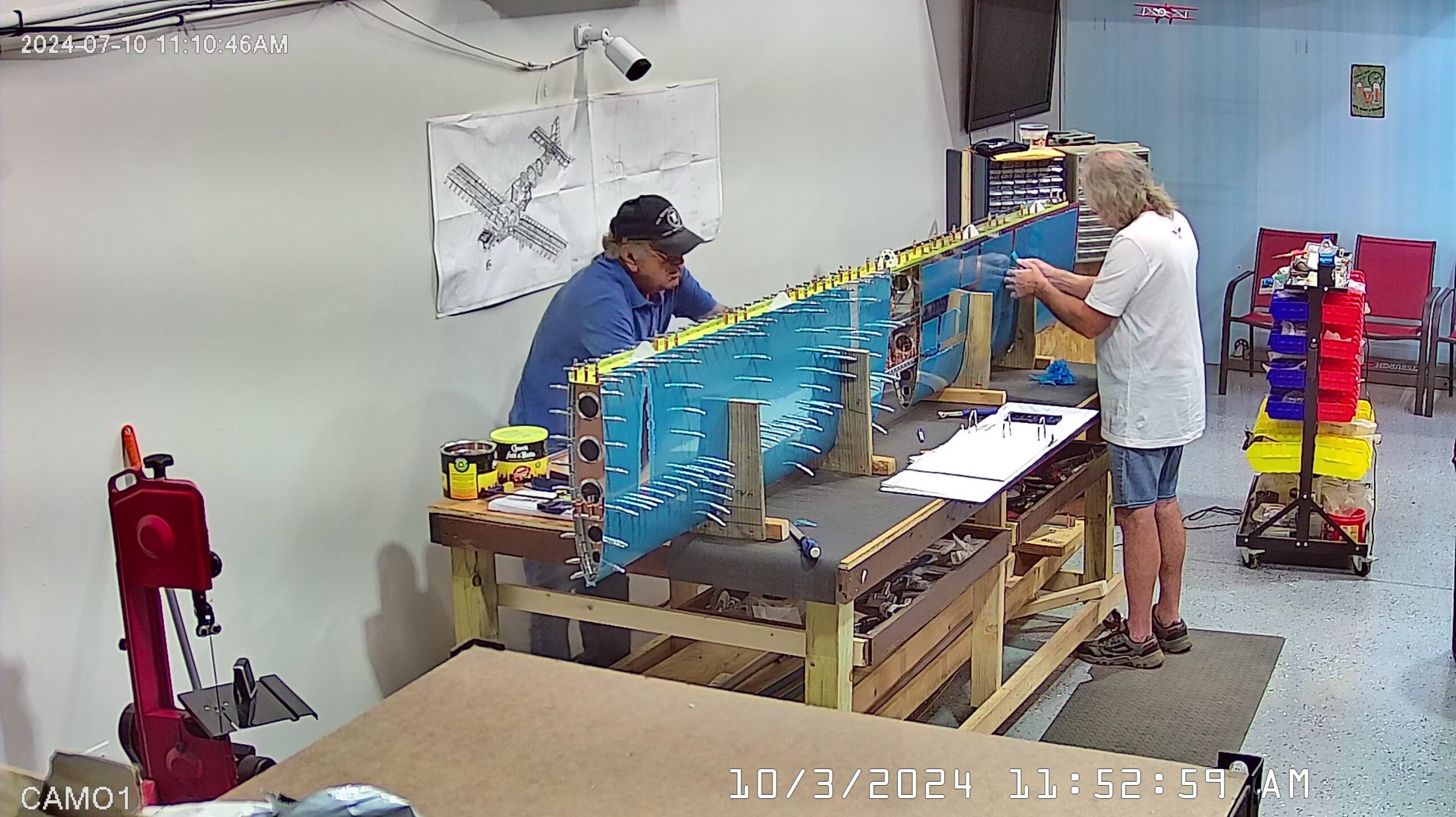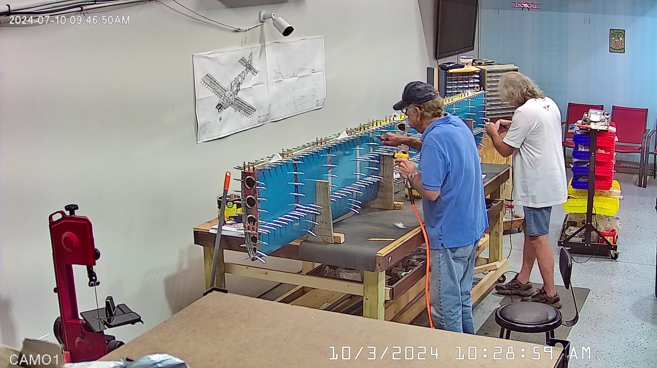 Once we had finished the countersinking we moved over to the C-Frame bench to dimple the skins, which we completed. Unfortunately the camera on the bench was not recording but I do have some overhead from another camera which I posted.
