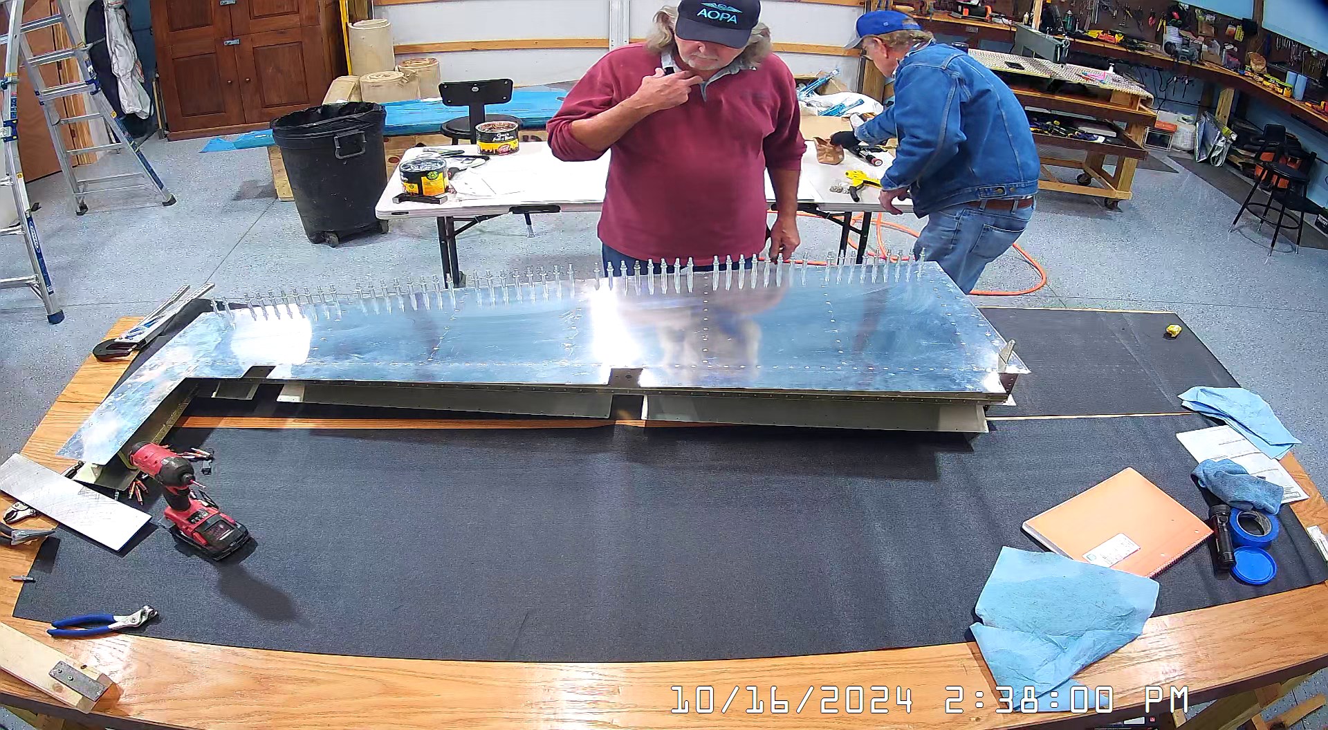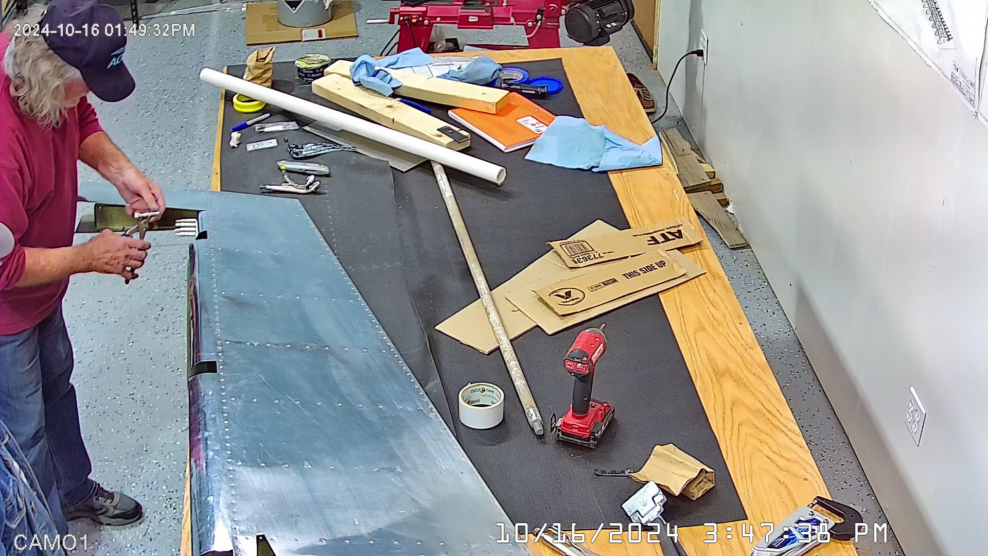 It then came time to roll and rivet the leading edge per step 2. I did not have a 1.25″ pipe so used a 1.25″ PVC water pipe which has a larger outer diameter. I note that the manual says to roll the edges and then to make a slight bend in the skin edge of the skin that will be on top of the other skin.