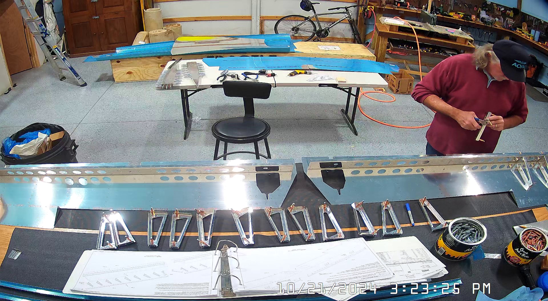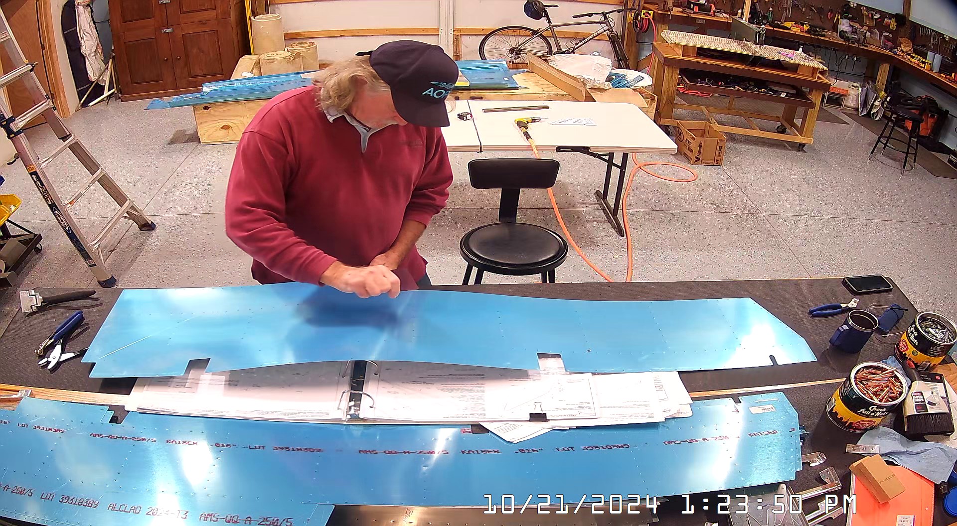 I started with the completion of steps 4 through 6. As mentioned in my previous post, because the fluting by Vans in the E-904 was so severe I had to flatten a lot of it to get the rib to line up with the skin and then create flutes in the E-903. Various suggestions of using string and bench top surfaces no doubt all work. I used a combination of bench top and cleco assembly to get things lined up.