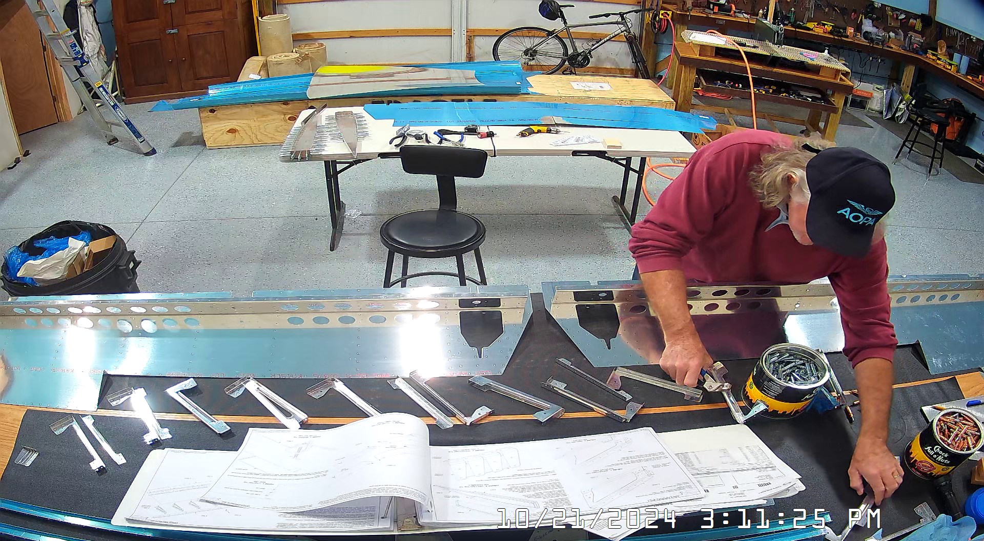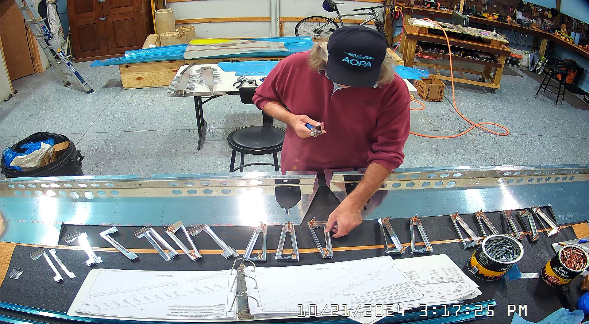 Page 9-4 starts with clecoing the hinge reinforcement plates, E-910, to the front spars E-1002 and final drilling the 1/8th holes. There is a lot of emphasis throughout the manual about marking things so you can reassemble in the same place. I am conscientious about doing this but I wonder sometimes if it is really necessary given that all of these parts are already match drilled and many final sized even. I have also found that, unless you have a lot of identical parts, during the build process you quickly get familiar with what goes where so often marking isn’t necessary.