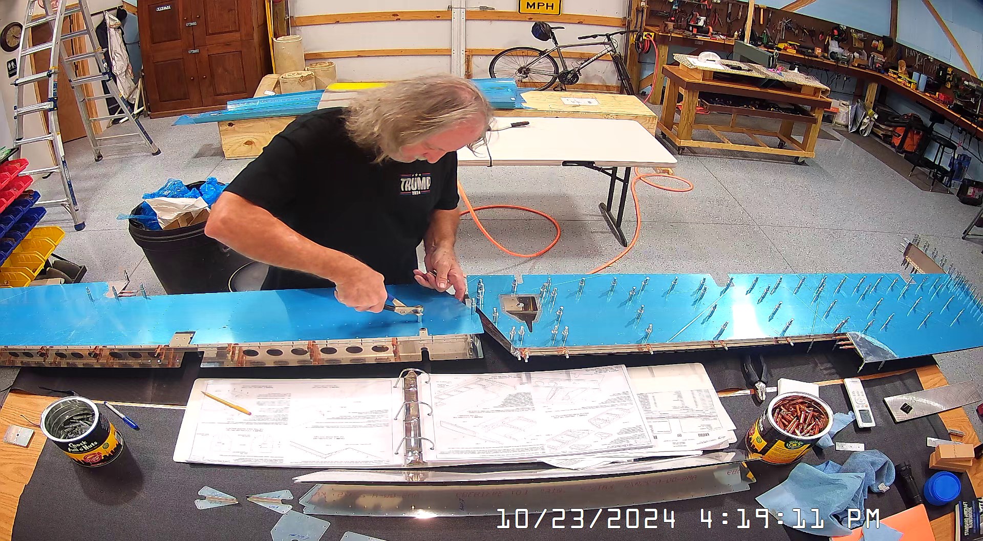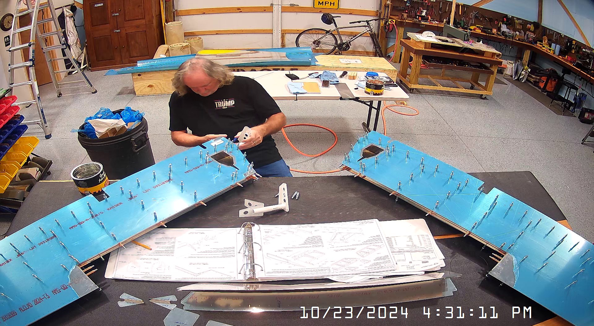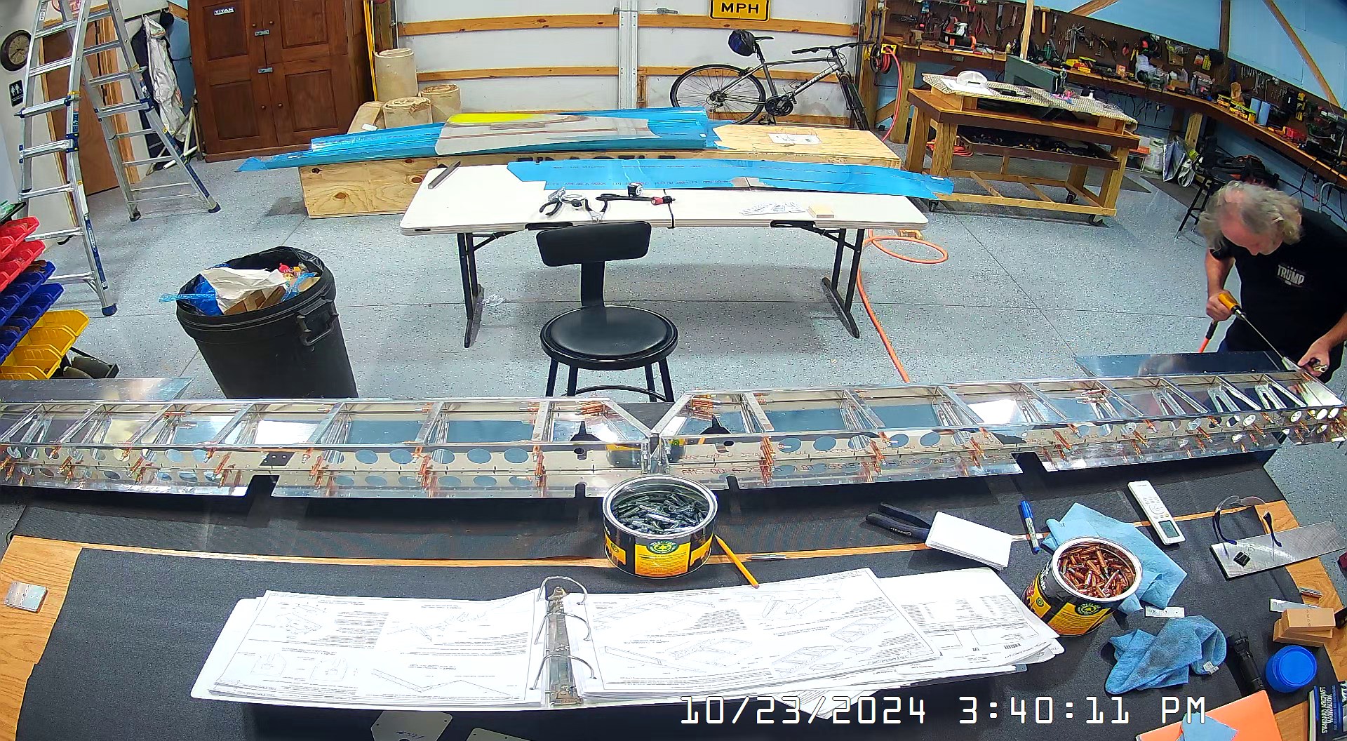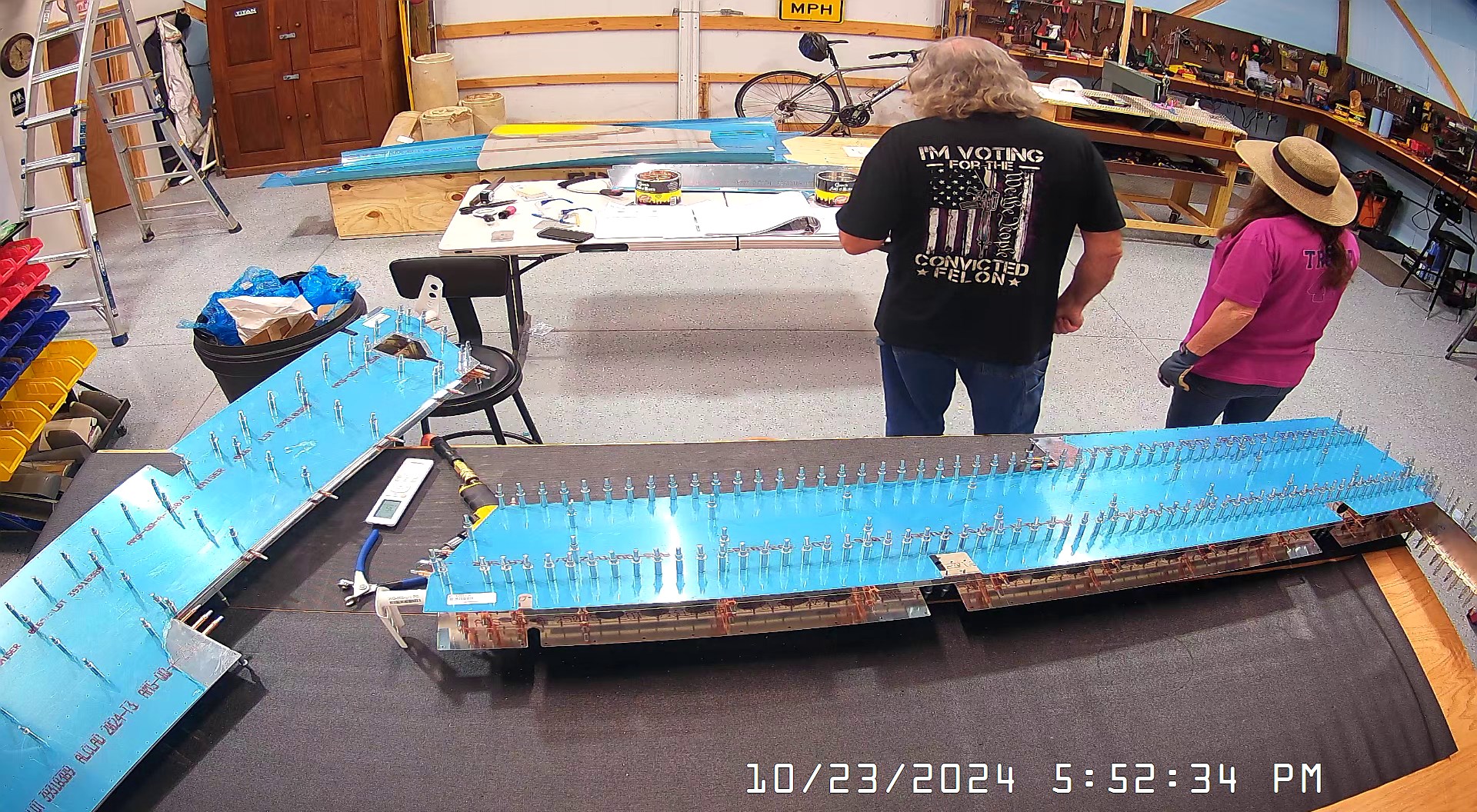 Today I completed steps 7 and 8 on page 9-6 and also steps 1 through 3 on page 9-7. Clecoing all these parts together uses way more than 350 clecos as recommended in the tools required section. As a consequence, you need to move clecos around to observe the instruction to “cleco all holes” when final drilling all the E-1007 and E-1002 spar holes through the skin. Particularly if you have clecos in the trailing edge.