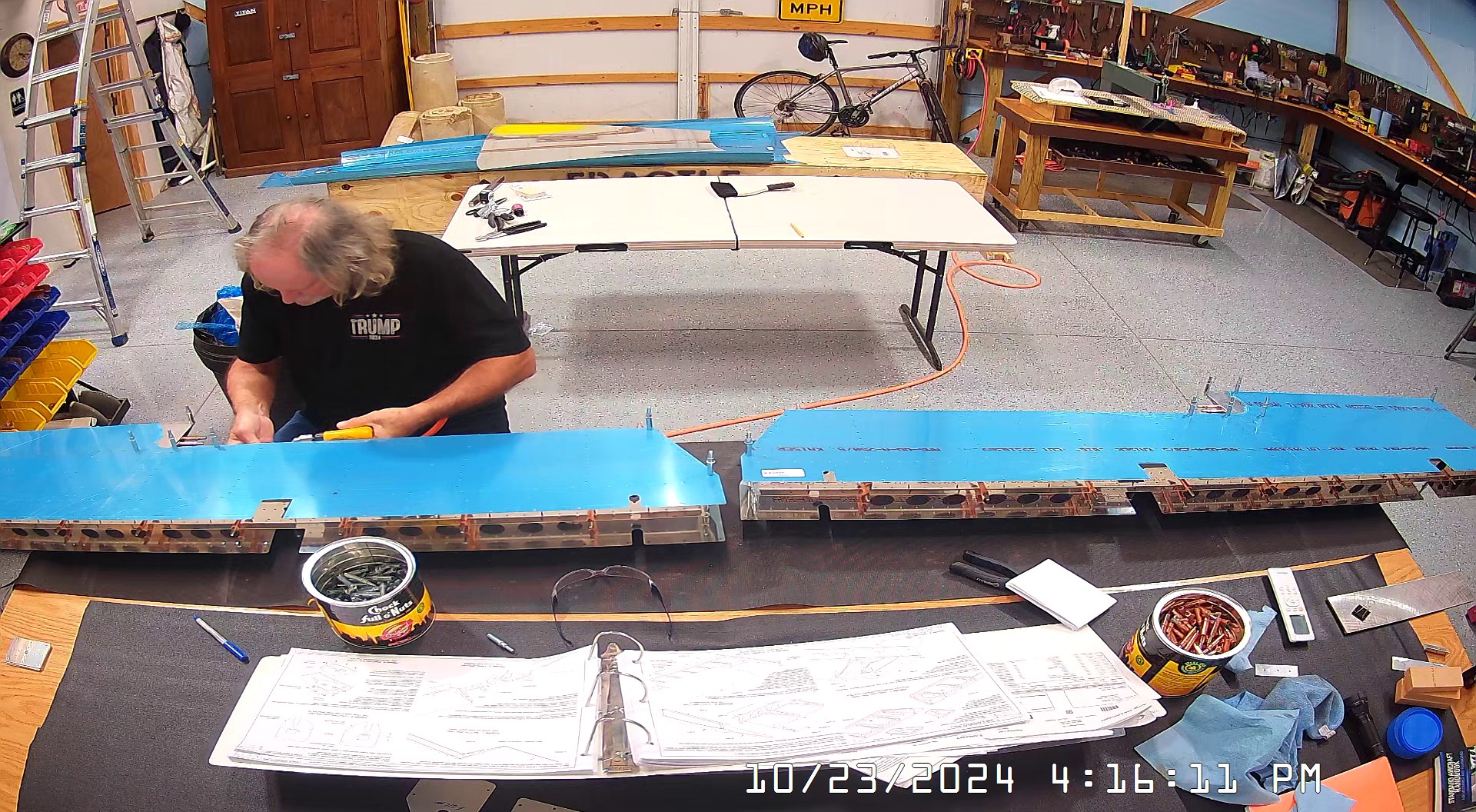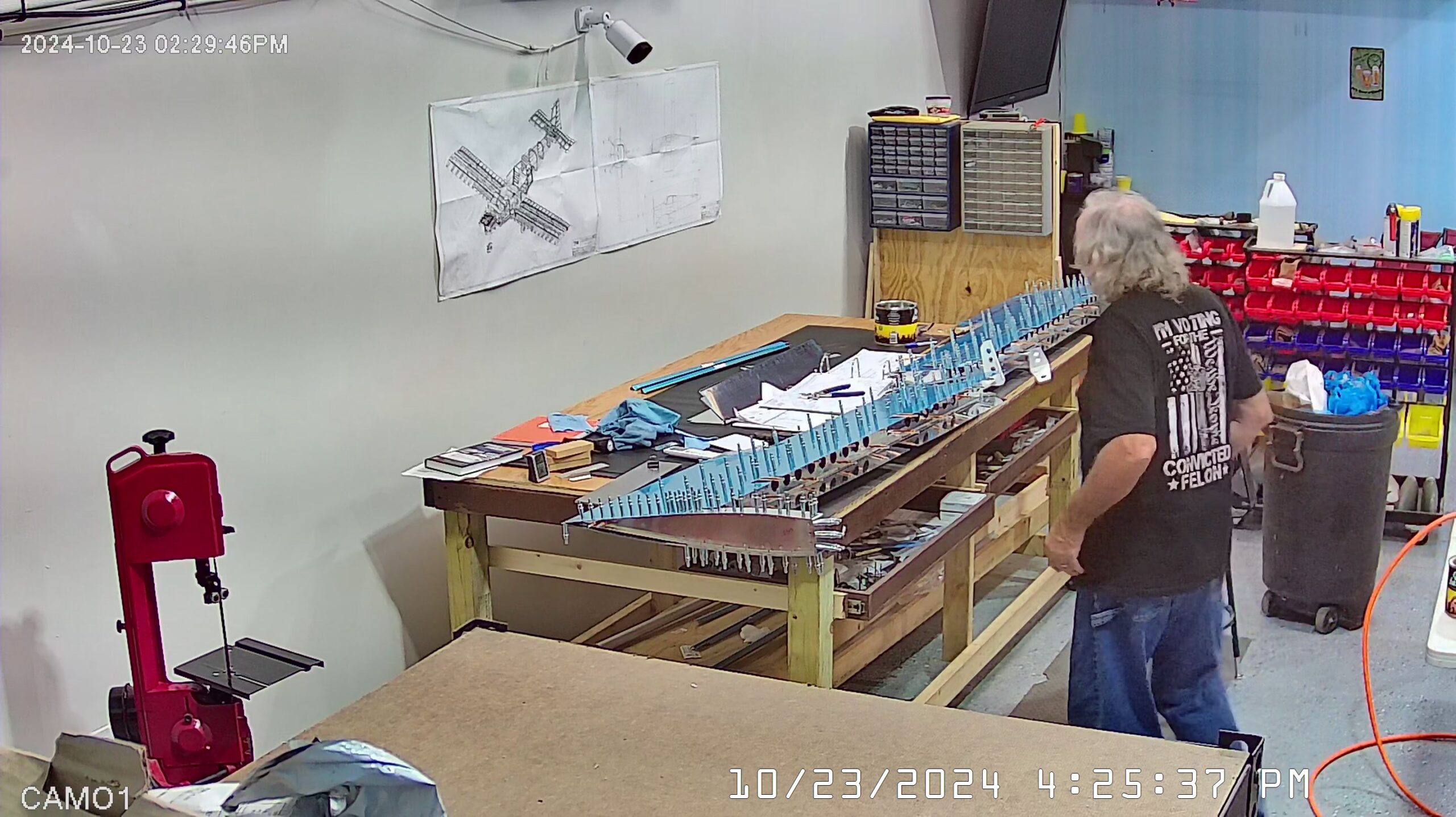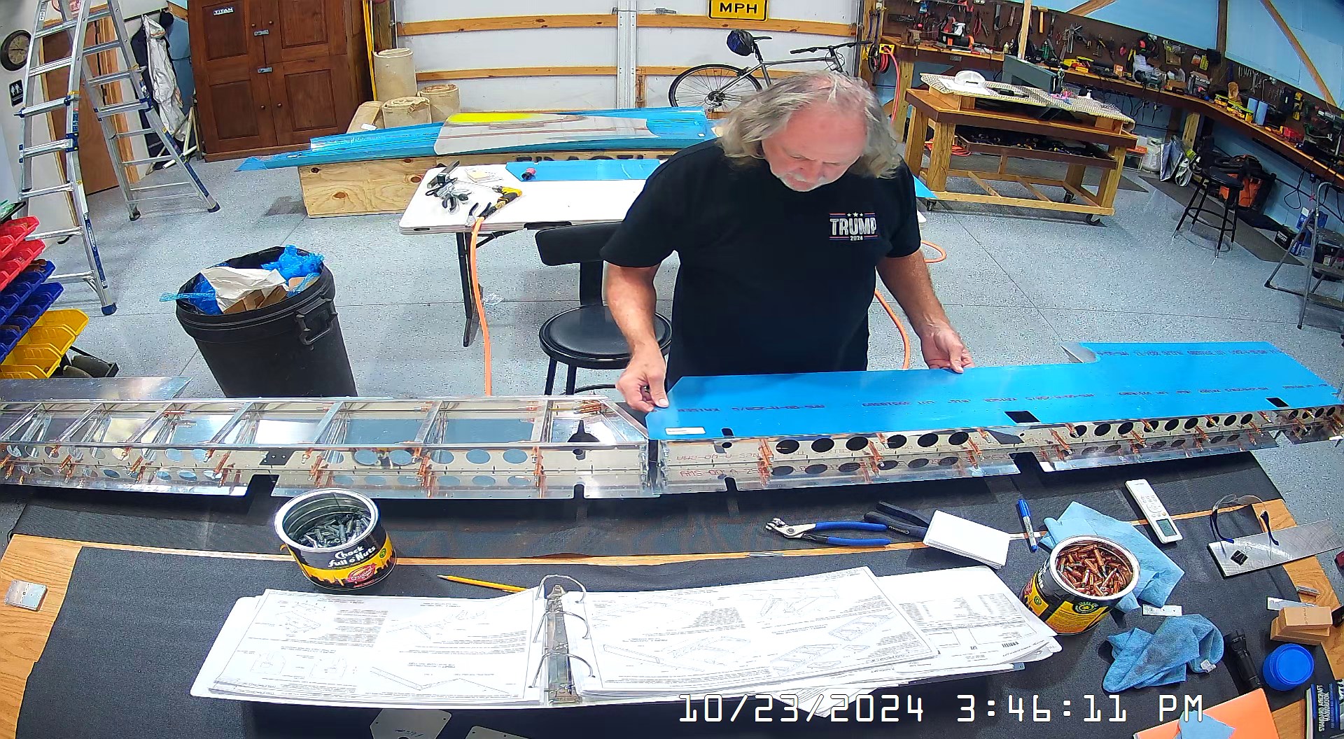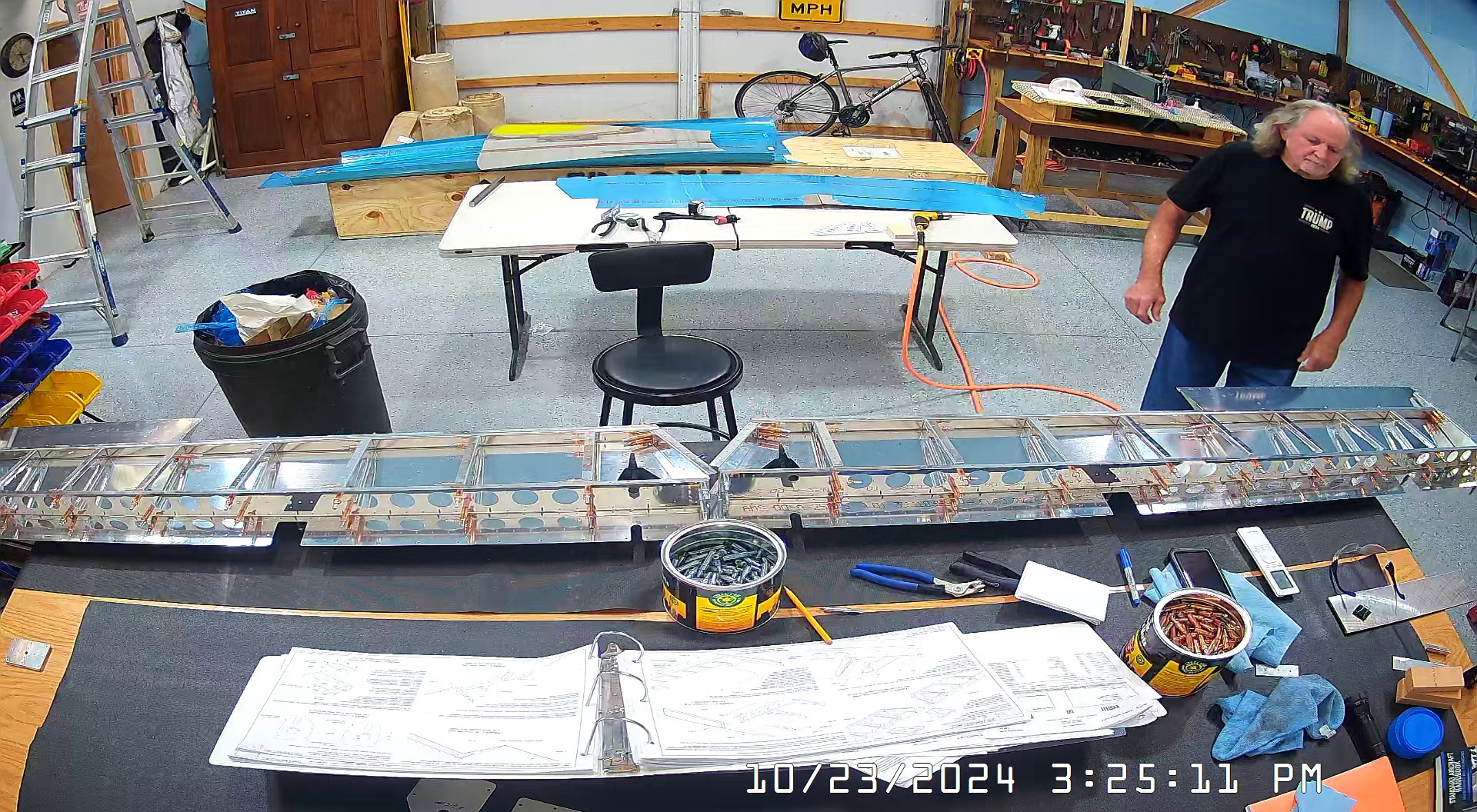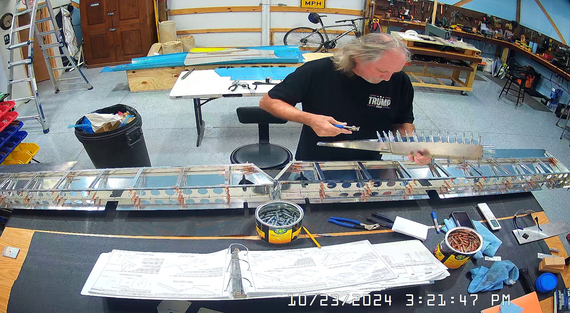 Today I completed steps 7 and 8 on page 9-6 and also steps 1 through 3 on page 9-7. Clecoing all these parts together uses way more than 350 clecos as recommended in the tools required section. As a consequence, you need to move clecos around to observe the instruction to “cleco all holes” when final drilling all the E-1007 and E-1002 spar holes through the skin. Particularly if you have clecos in the trailing edge.