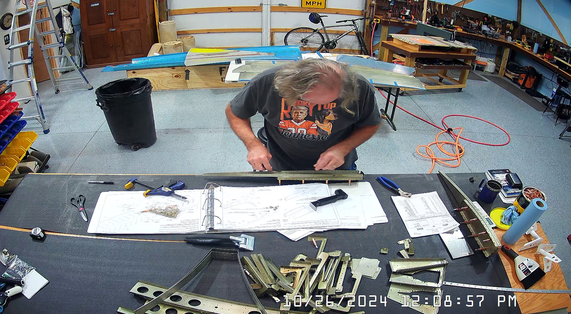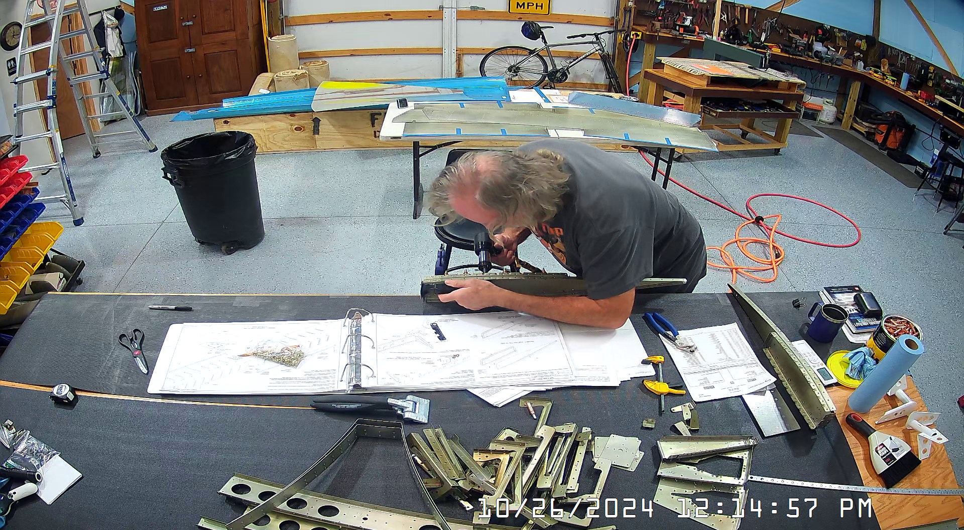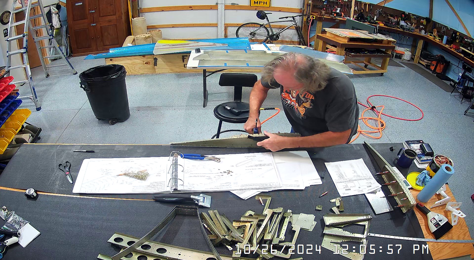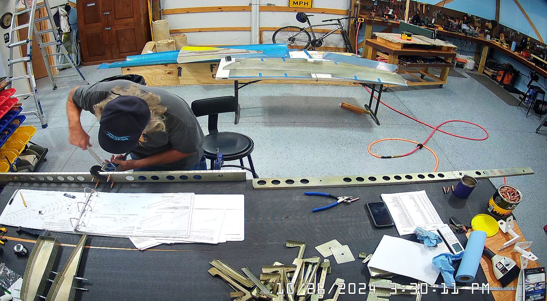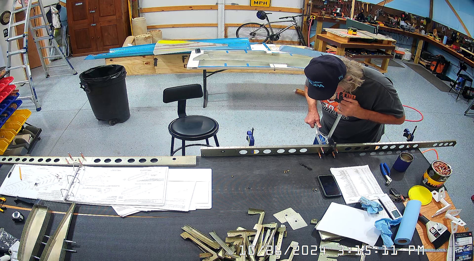These snapshots are for the assembly of the E-910 reinforcement plates to the E-1002 front spar in step 4 and inserting the snap bushings. I did not get to complete the riveting of the E-905 root ribs but that comes next.