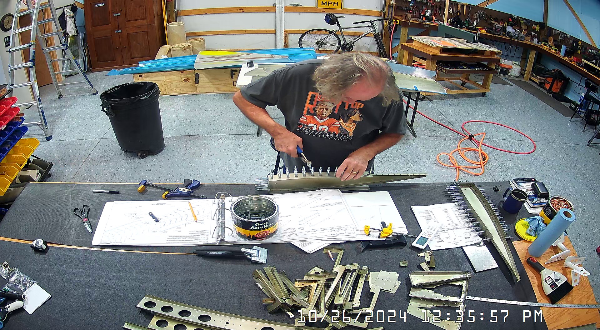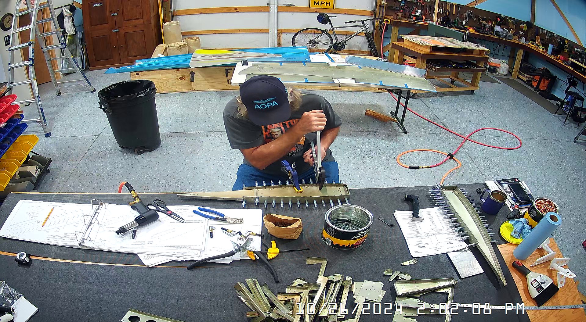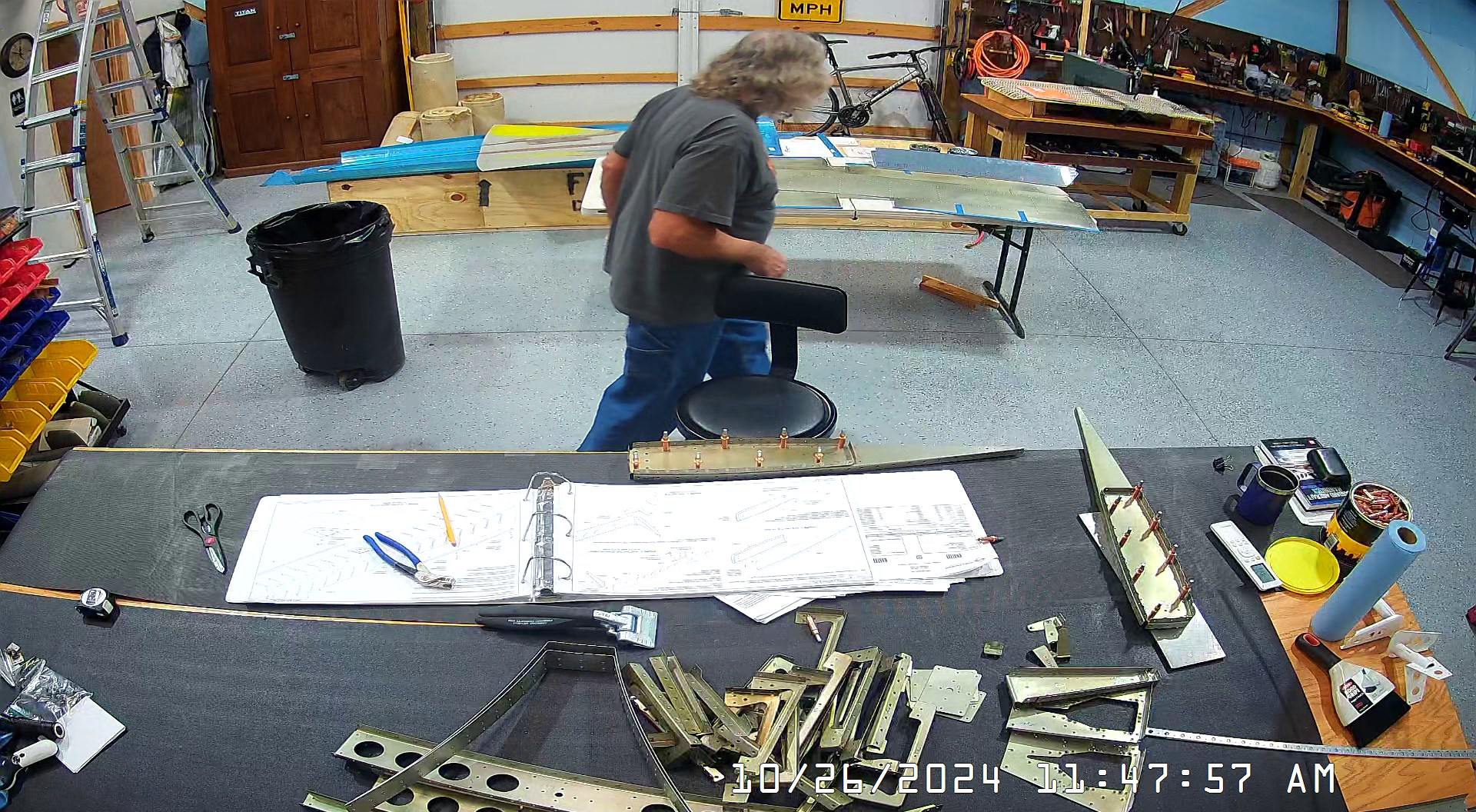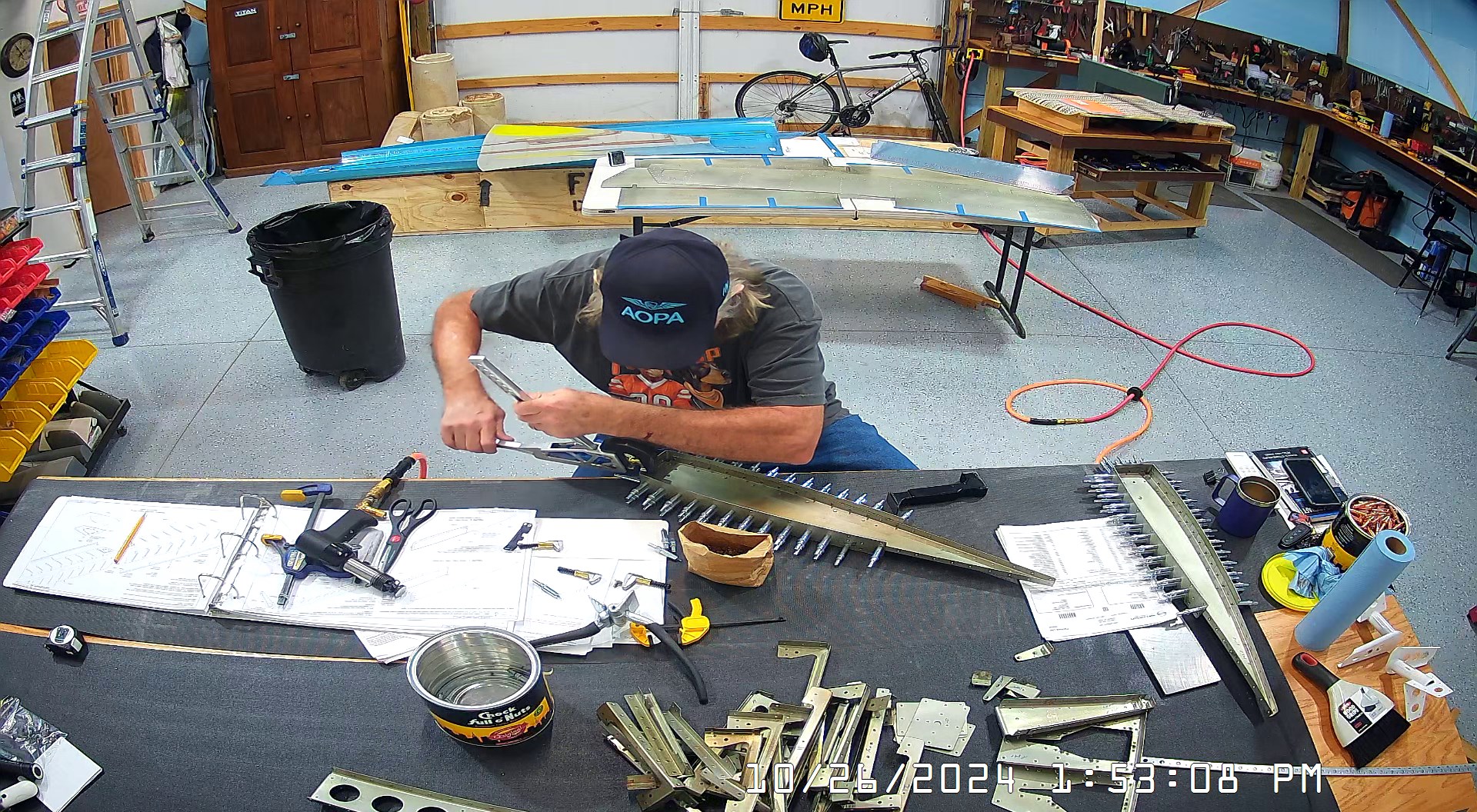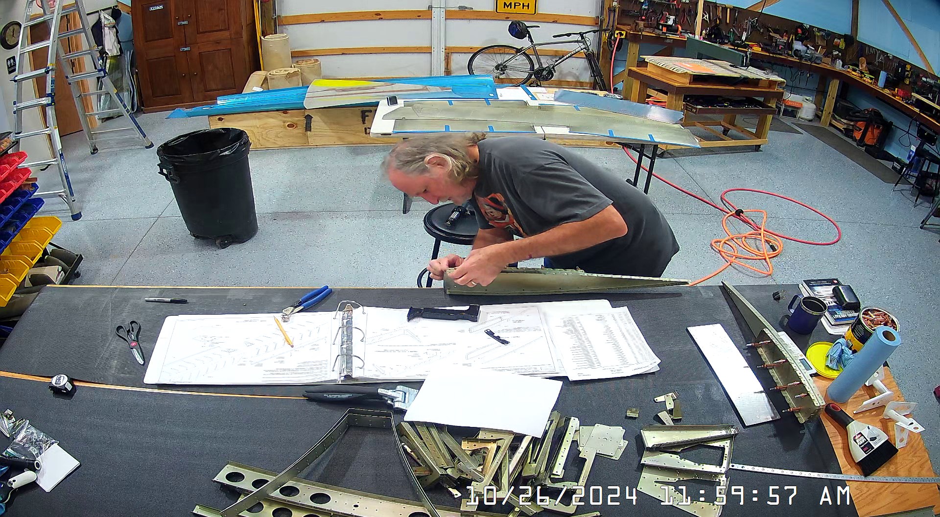 These snapshots are for the assembly of the E-910 reinforcement plates to the E-1002 front spar in step 4 and inserting the snap bushings. I did not get to complete the riveting of the E-905 root ribs but that comes next.