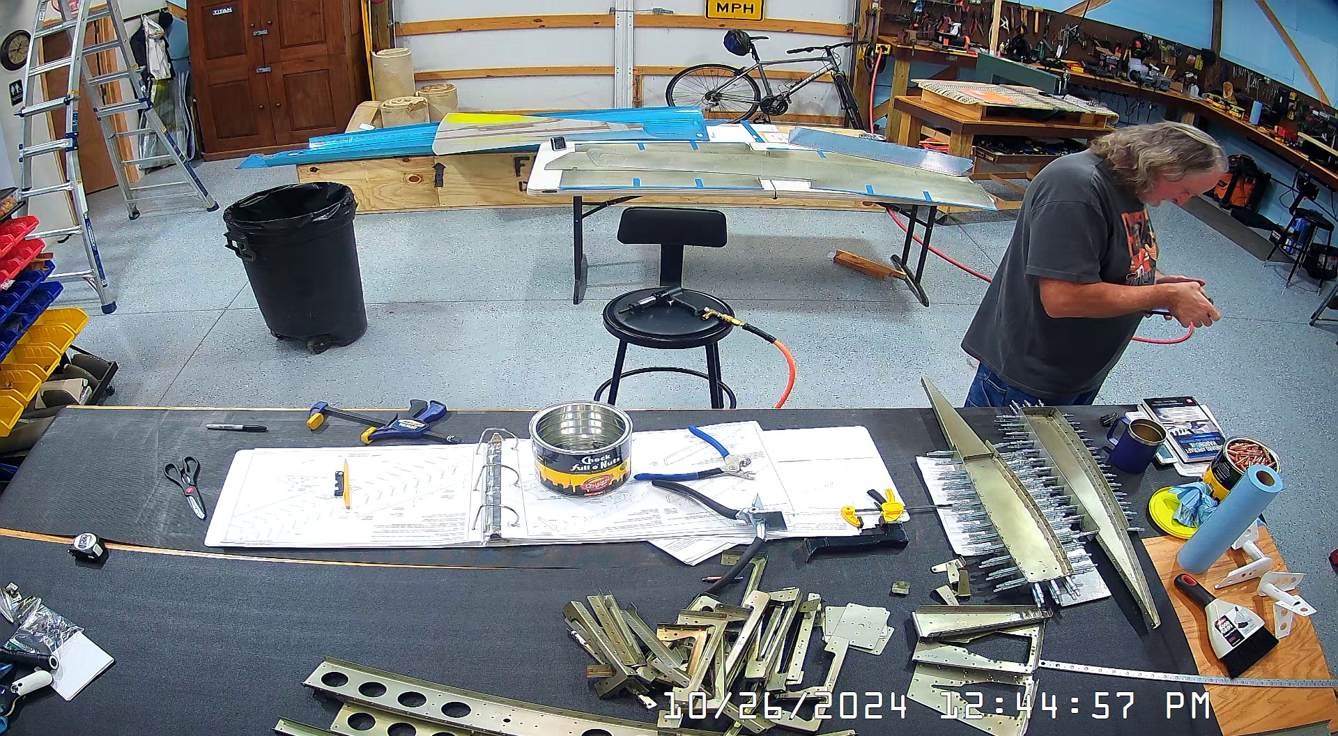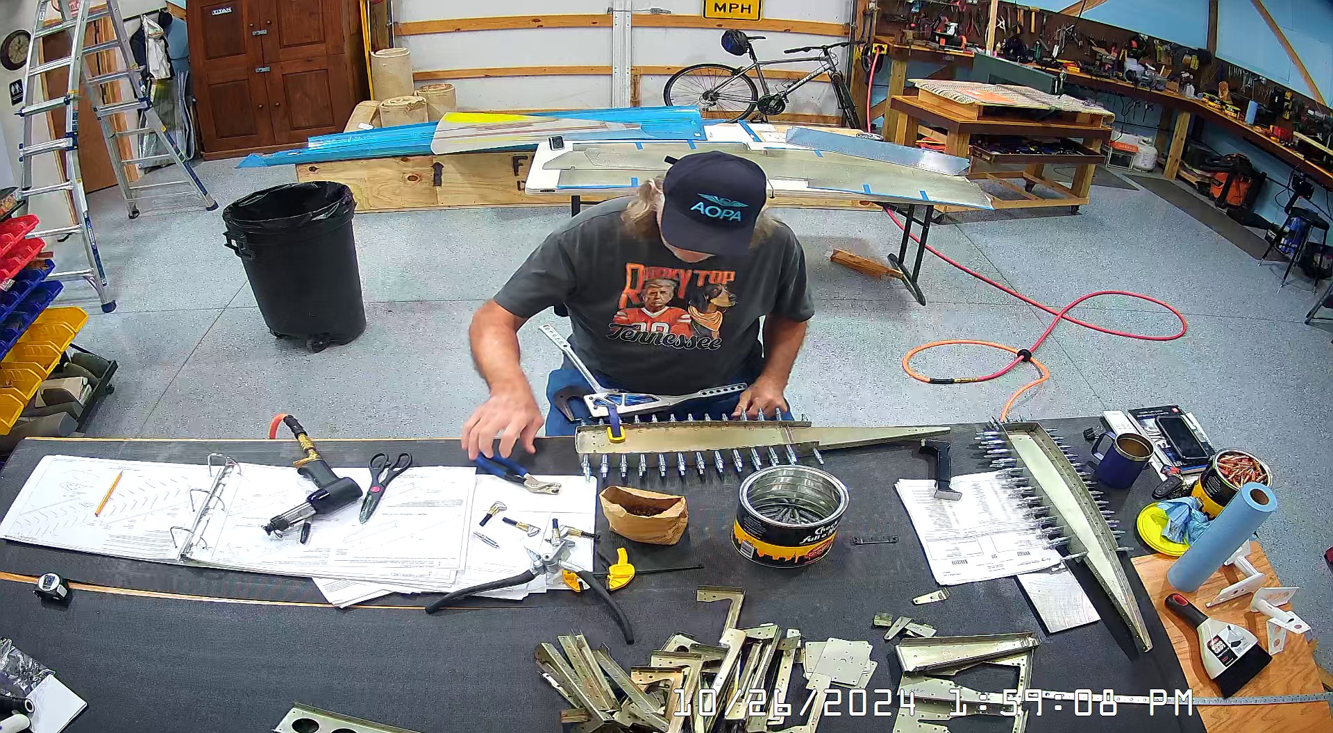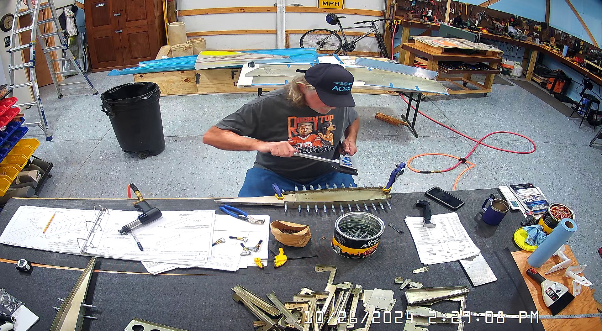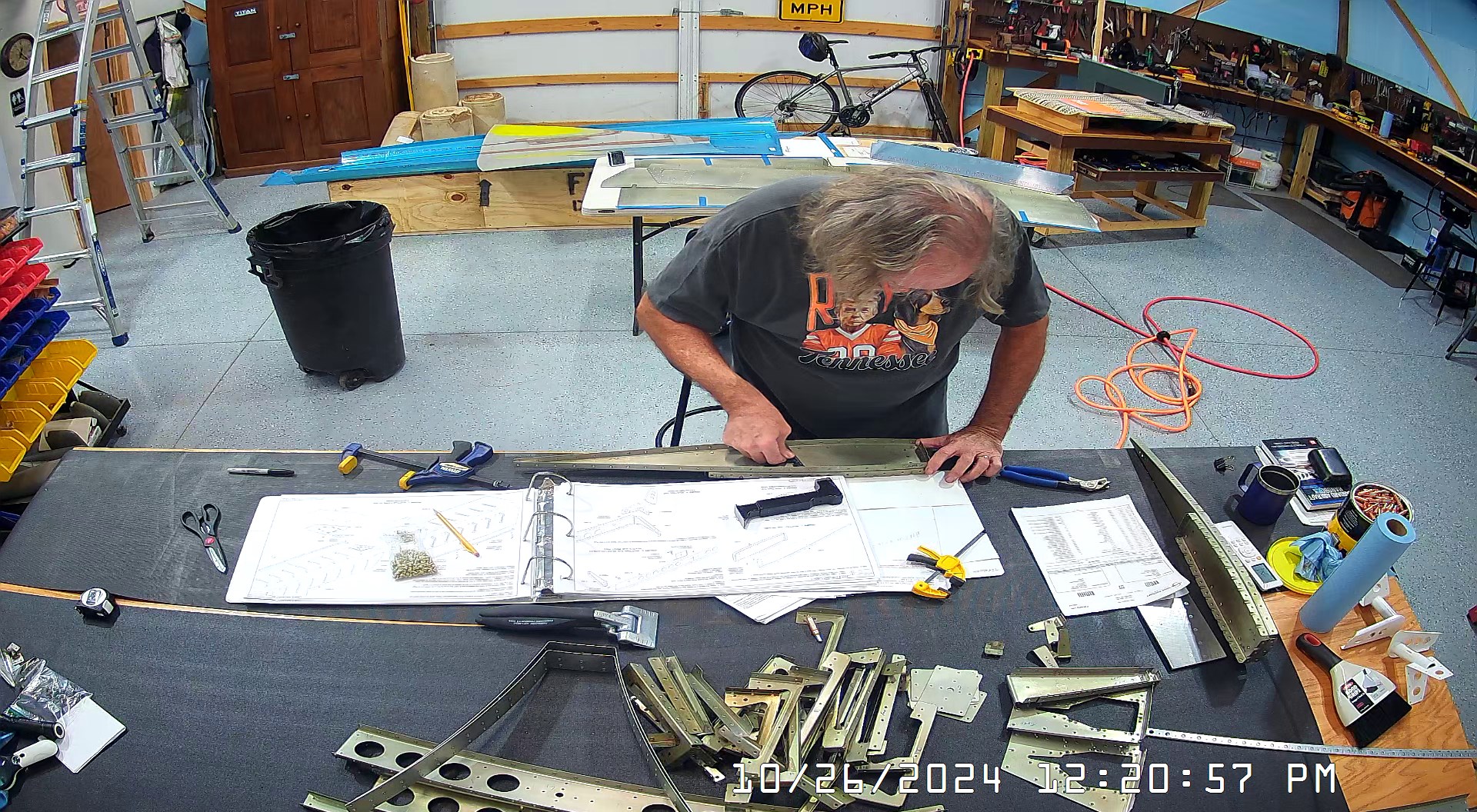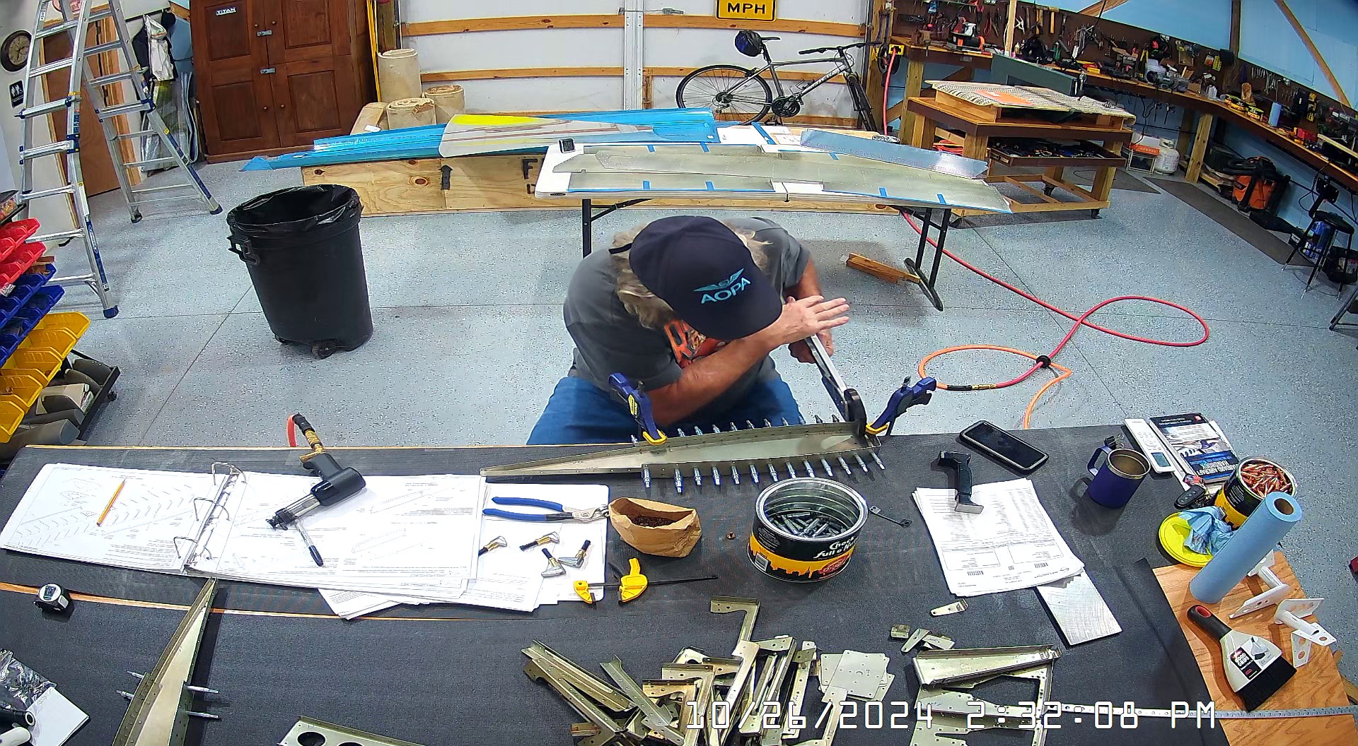 These snapshots are for the assembly of the E-910 reinforcement plates to the E-1002 front spar in step 4 and inserting the snap bushings. I did not get to complete the riveting of the E-905 root ribs but that comes next.