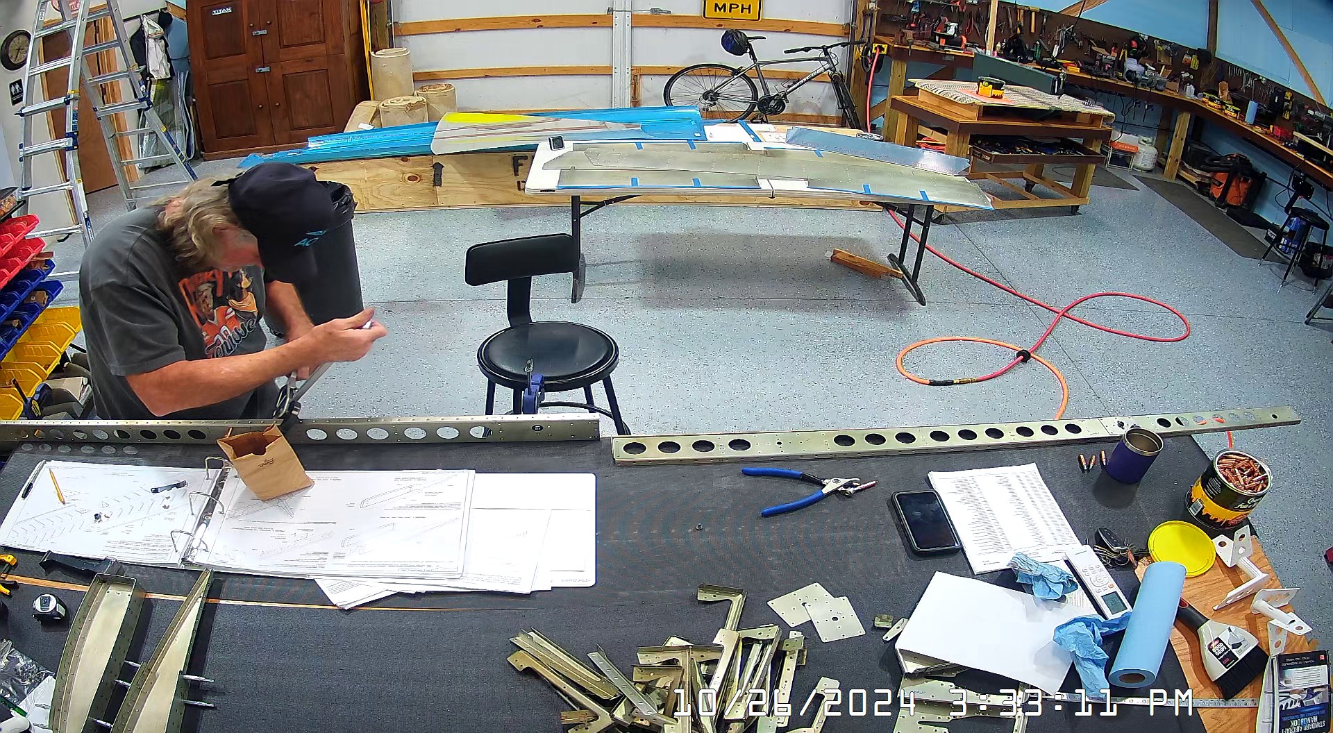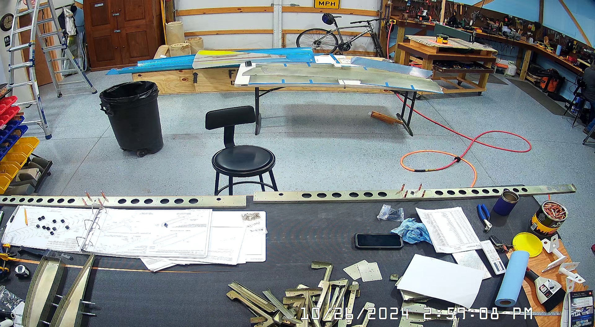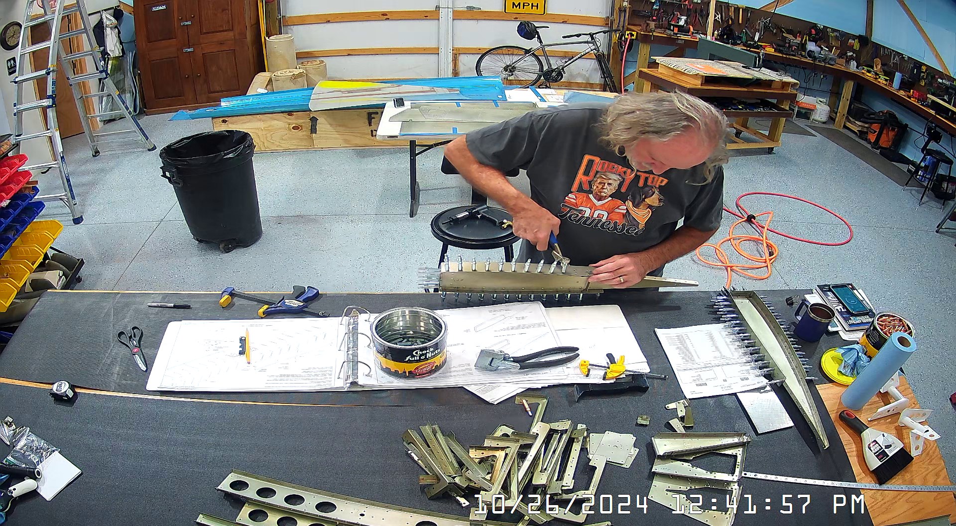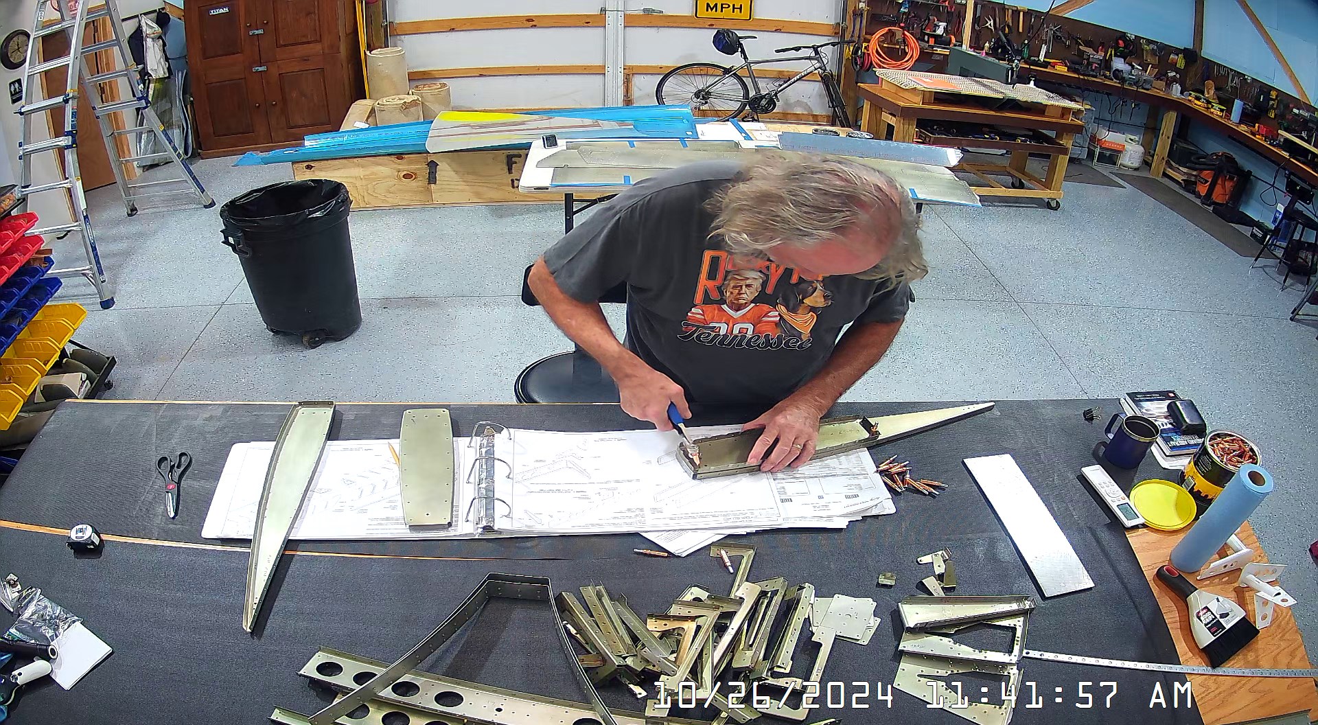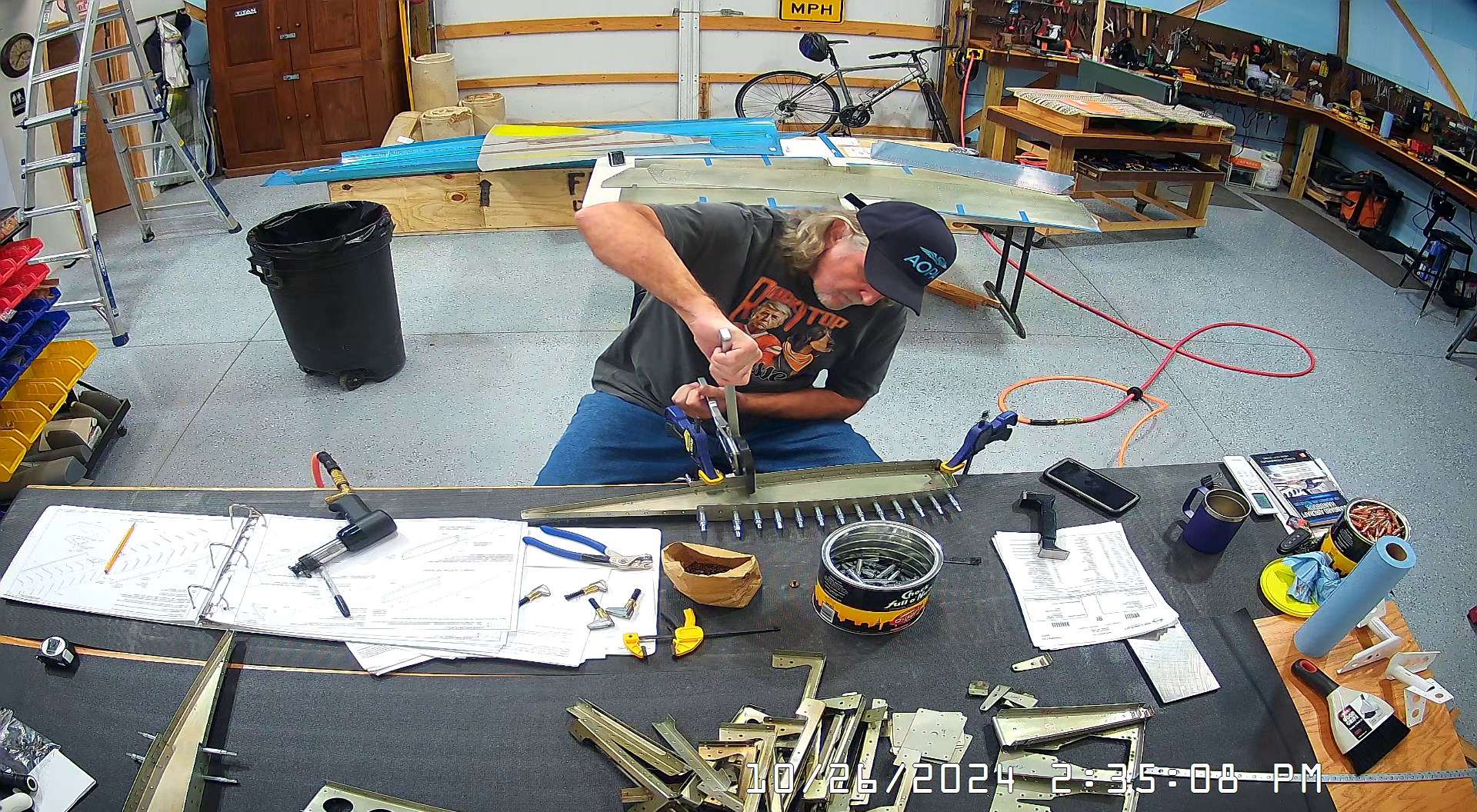 These snapshots are for the assembly of the E-910 reinforcement plates to the E-1002 front spar in step 4 and inserting the snap bushings. I did not get to complete the riveting of the E-905 root ribs but that comes next.
