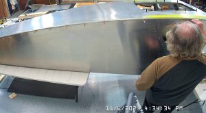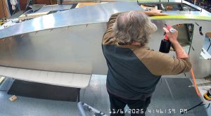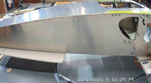 At this point the IPL file indicates that the next step is to rivet the side skins to the top longerons. The longerons go between the side skin and any internal vertical L angles or others.