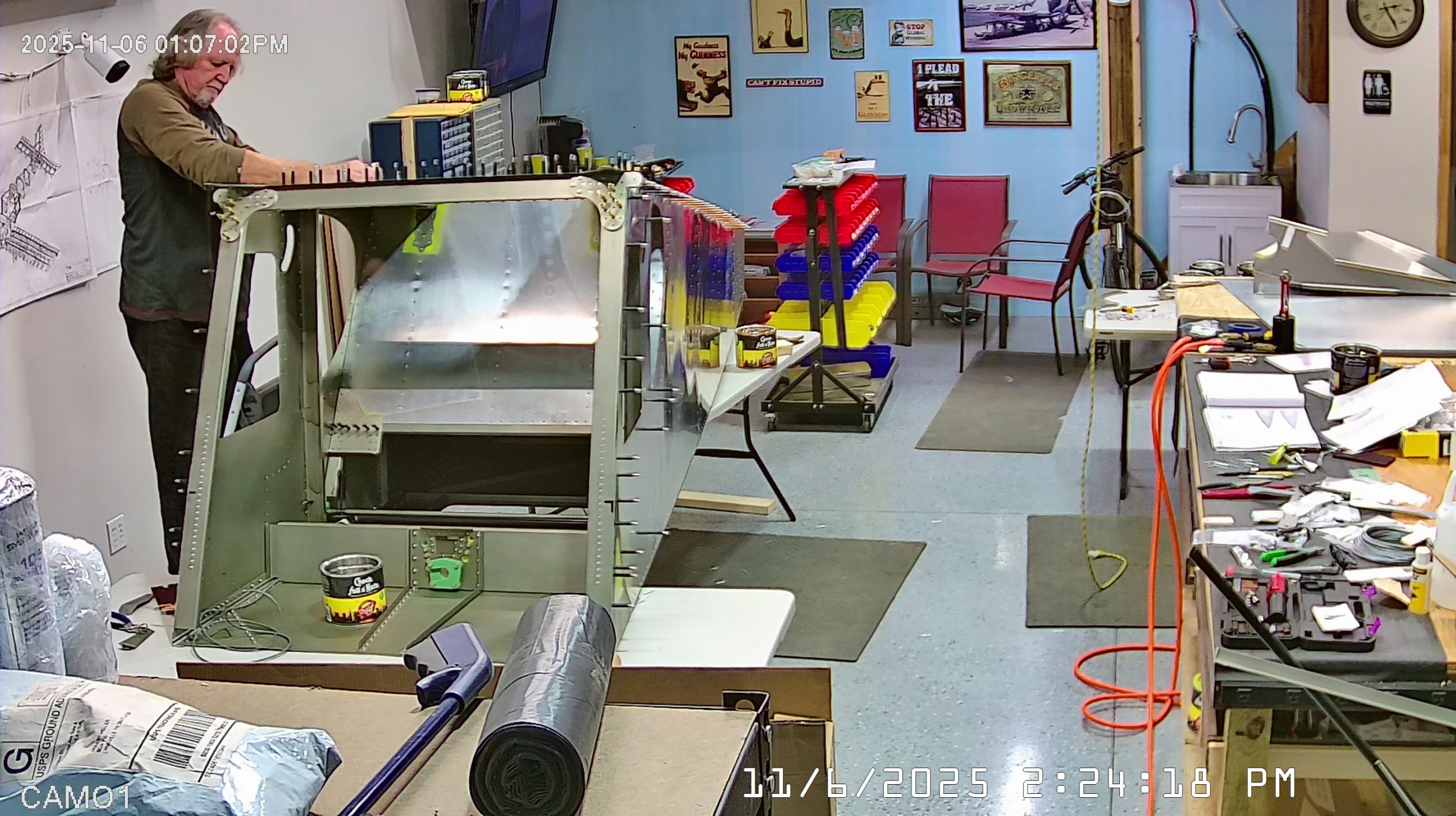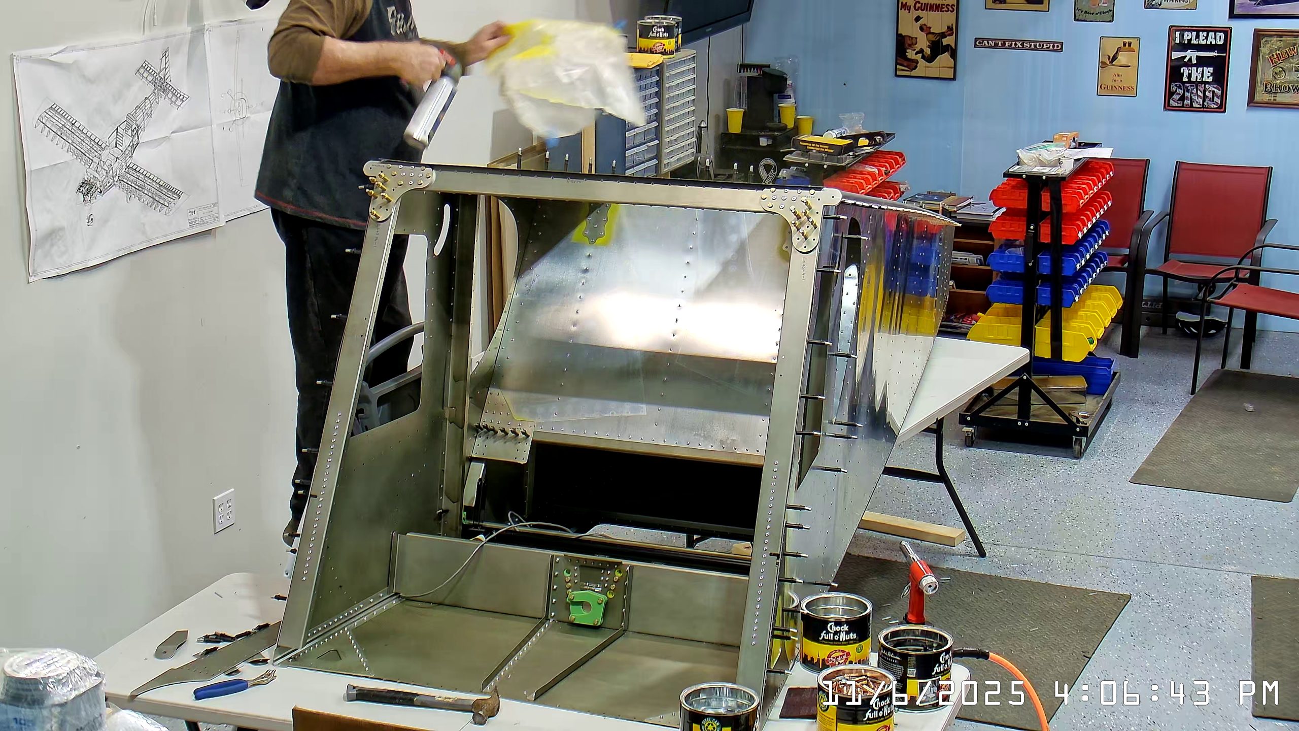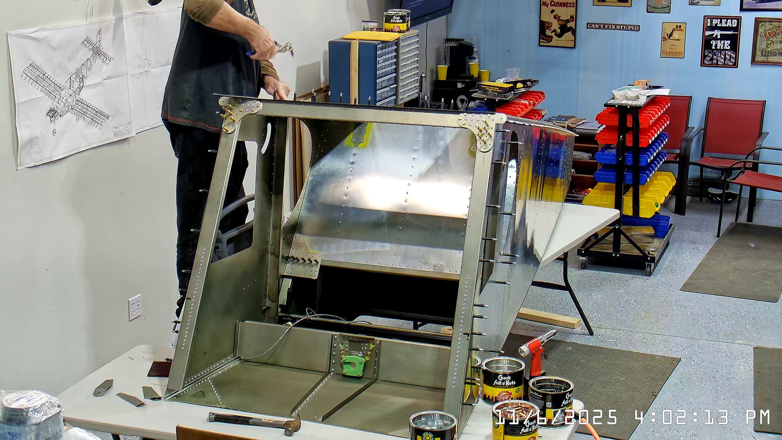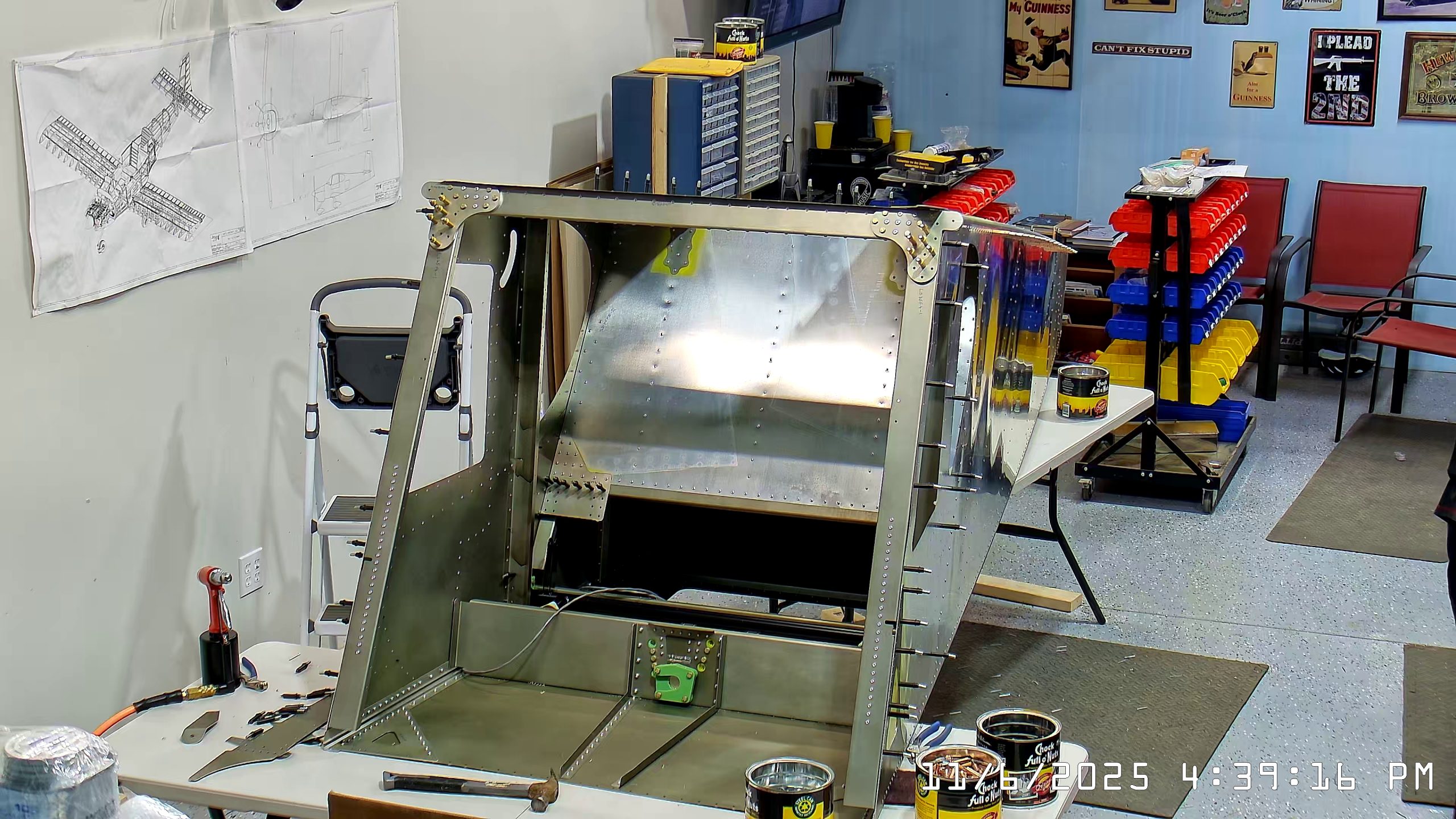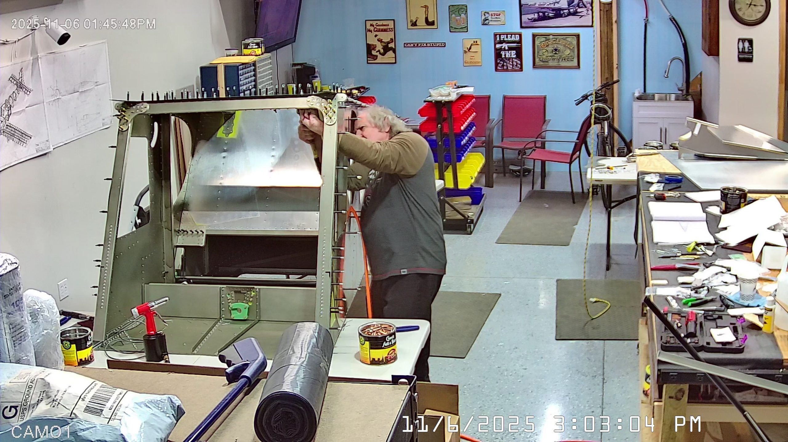 At this point the IPL file indicates that the next step is to rivet the side skins to the top longerons. The longerons go between the side skin and any internal vertical L angles or others.