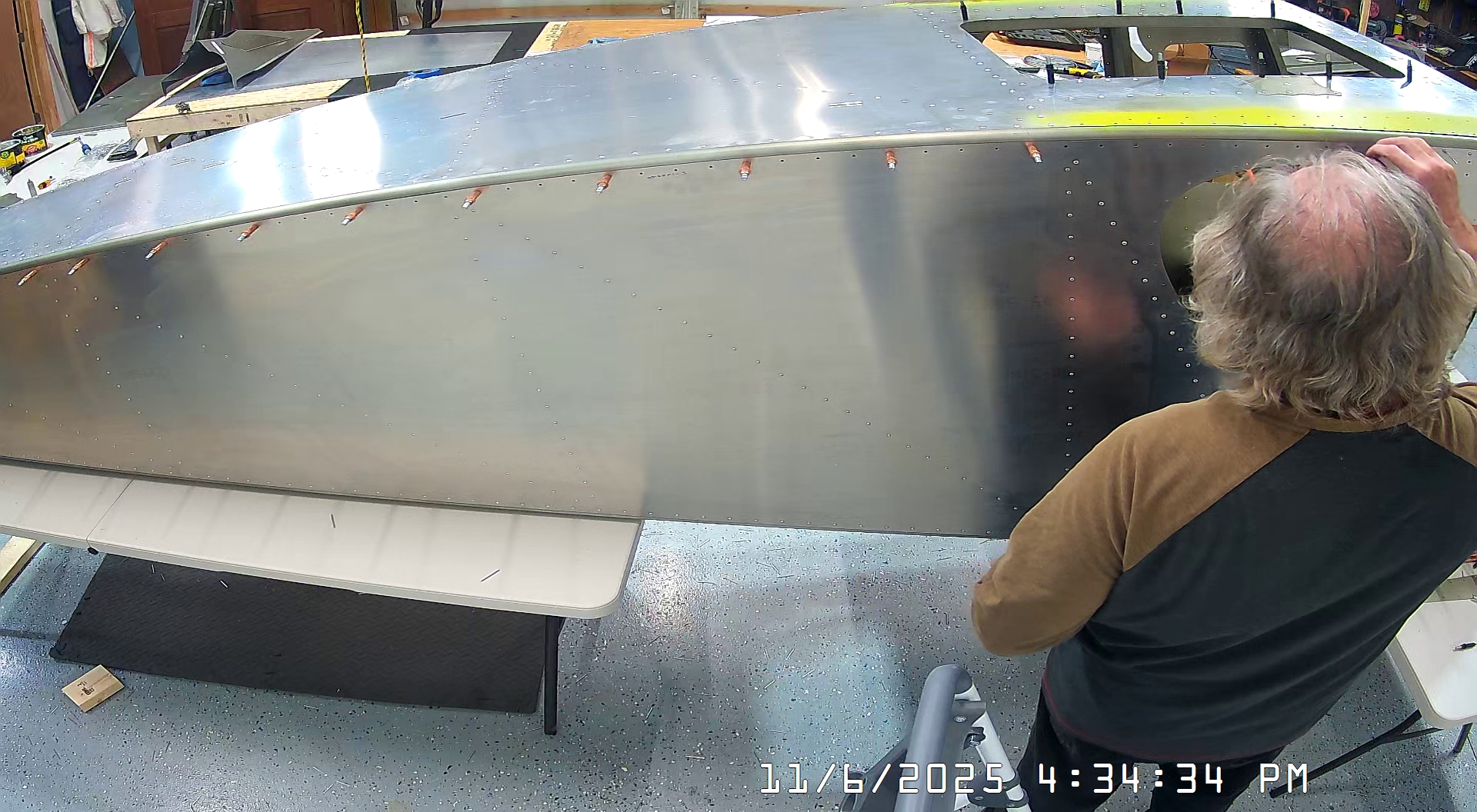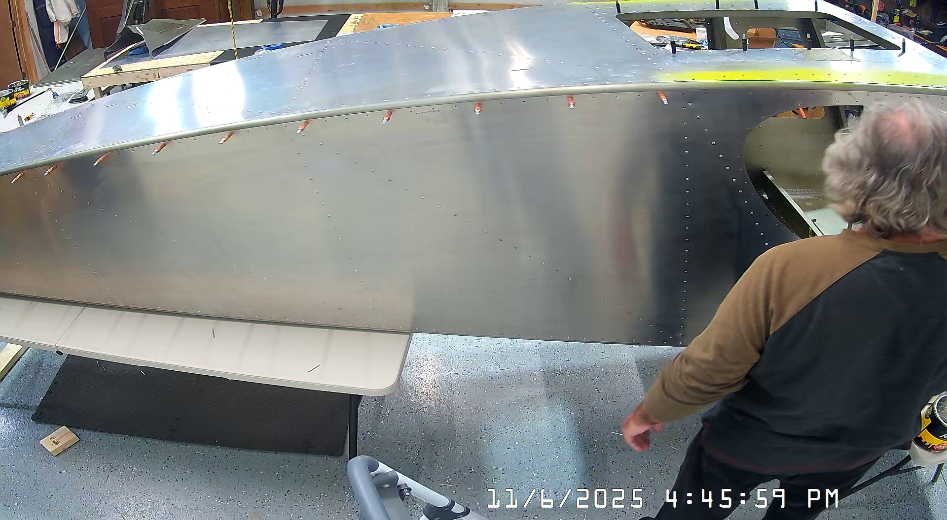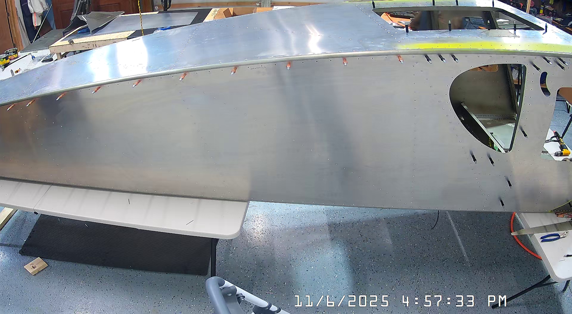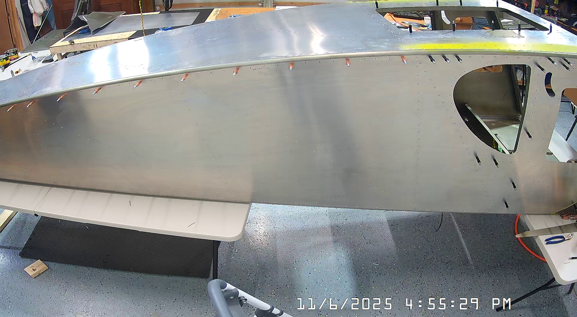 At this point everything was nicely aligned so I could just go ahead and rivet the top skin to the harness mount channels.