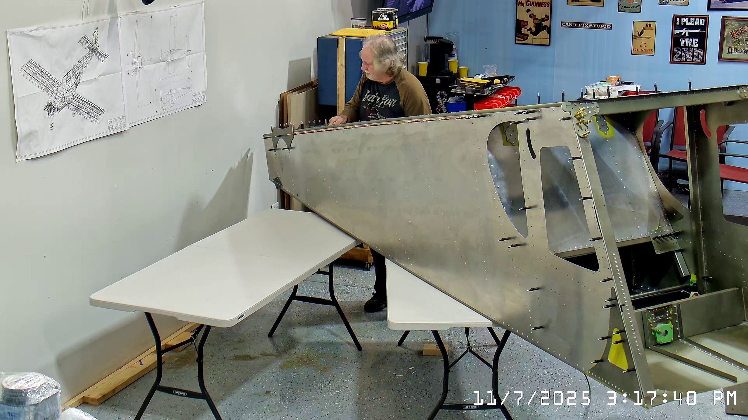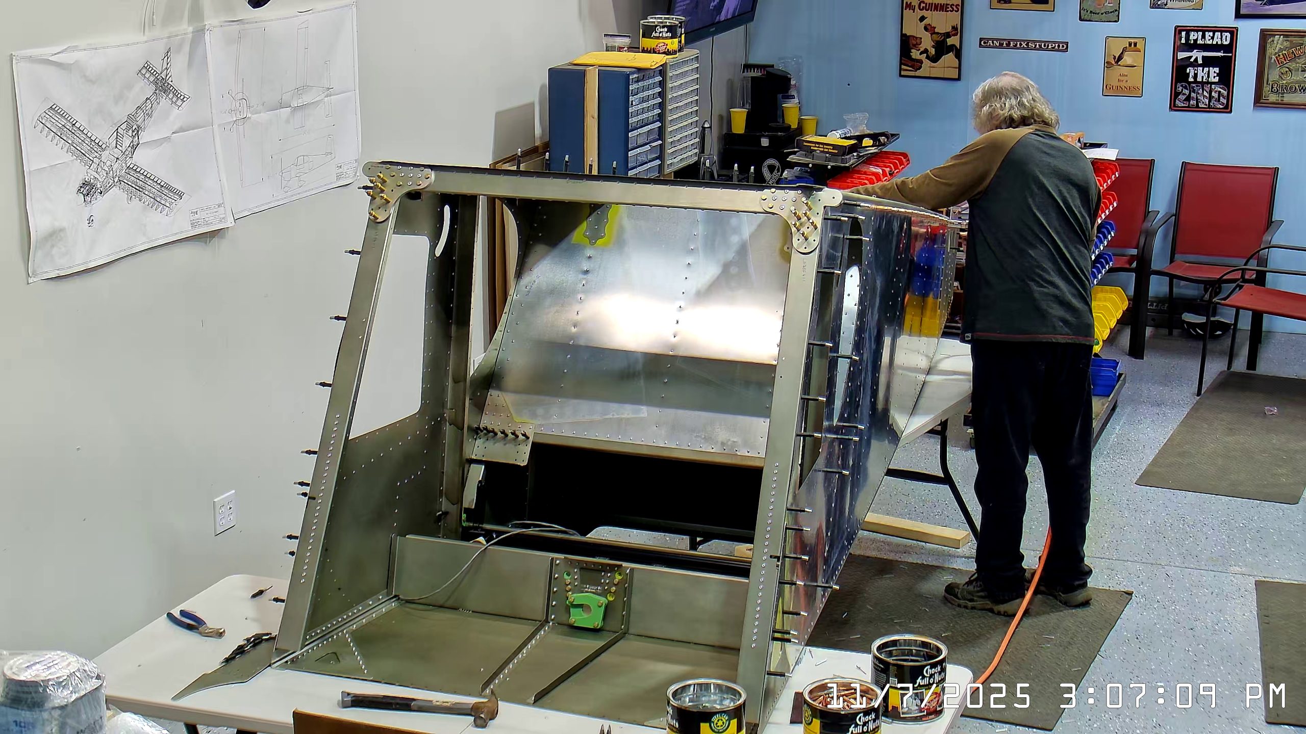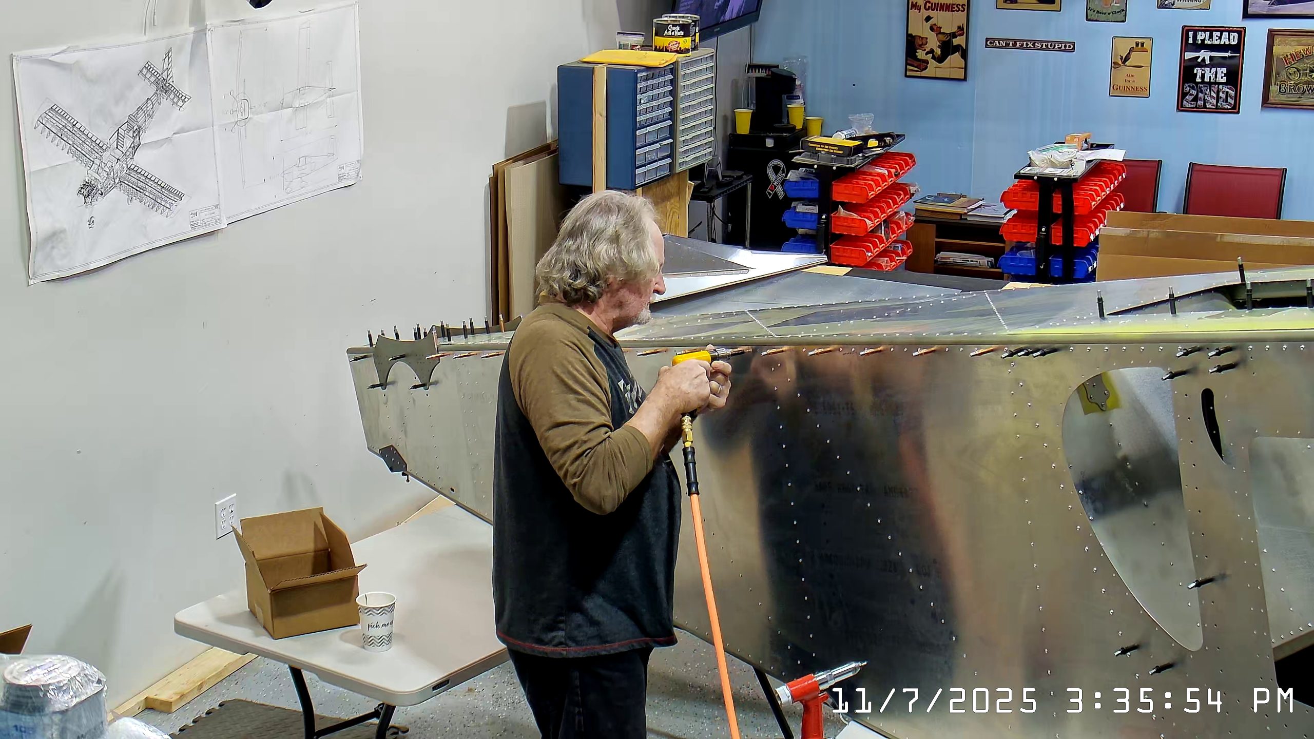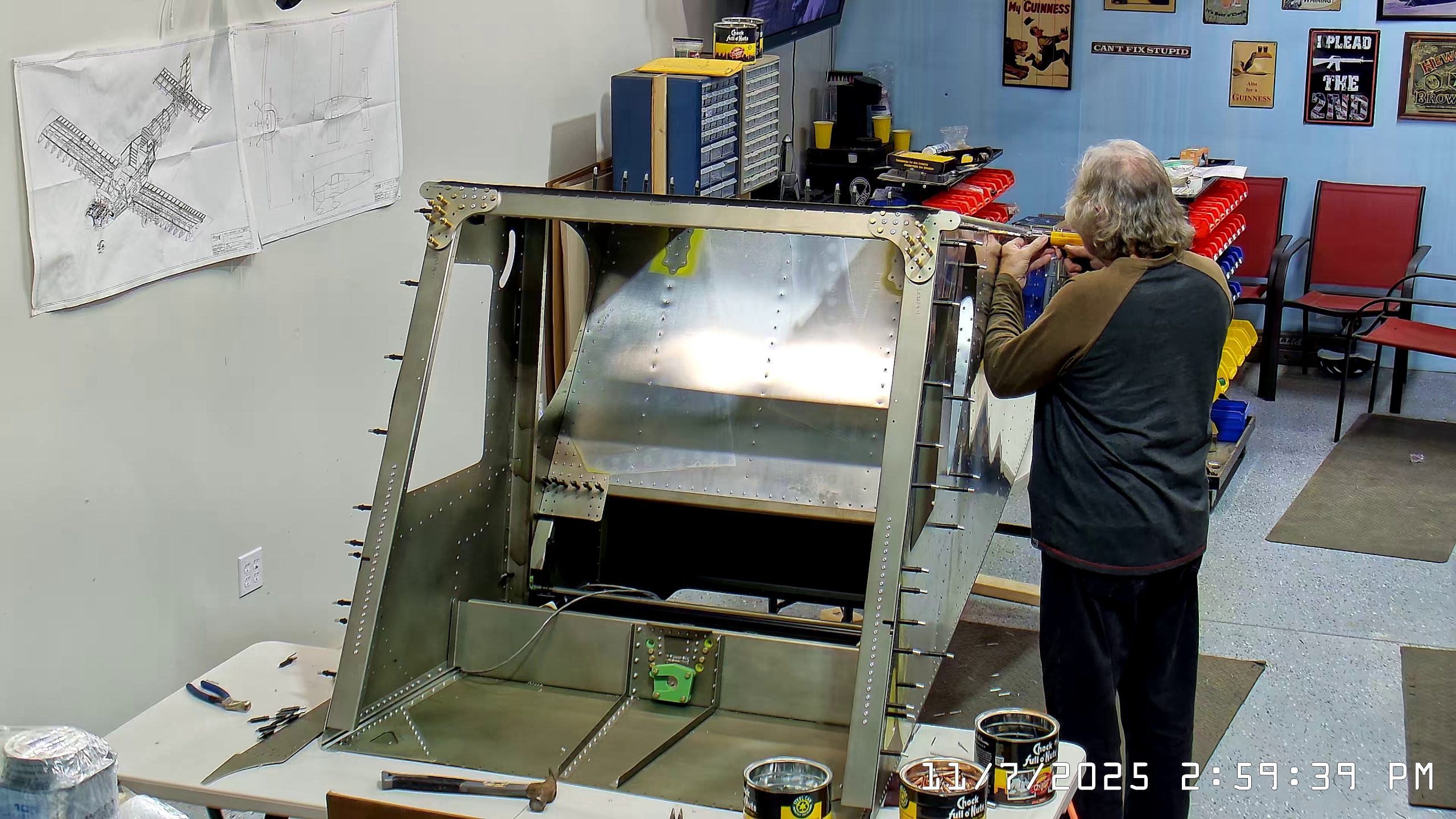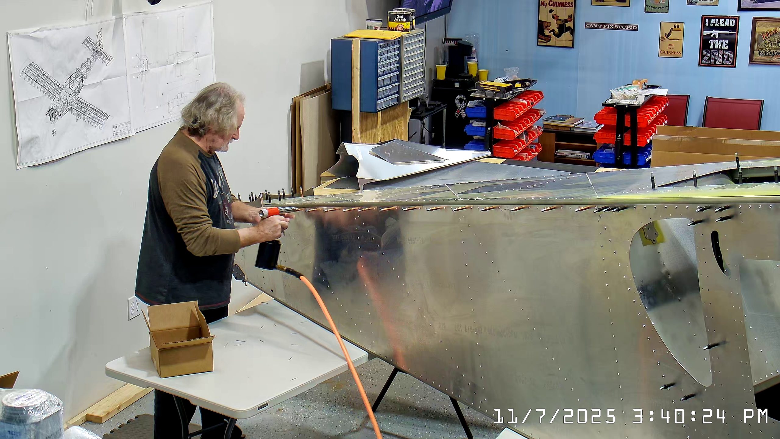 Installing A4 rivets to hold side skins to 750 SD top skin longerons