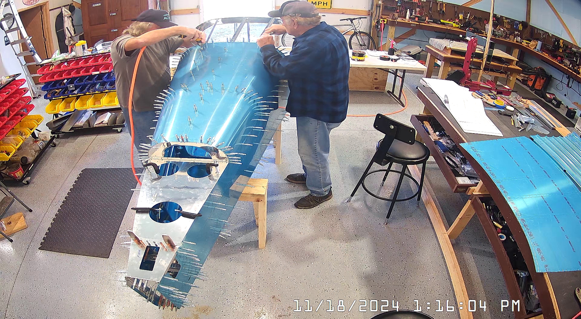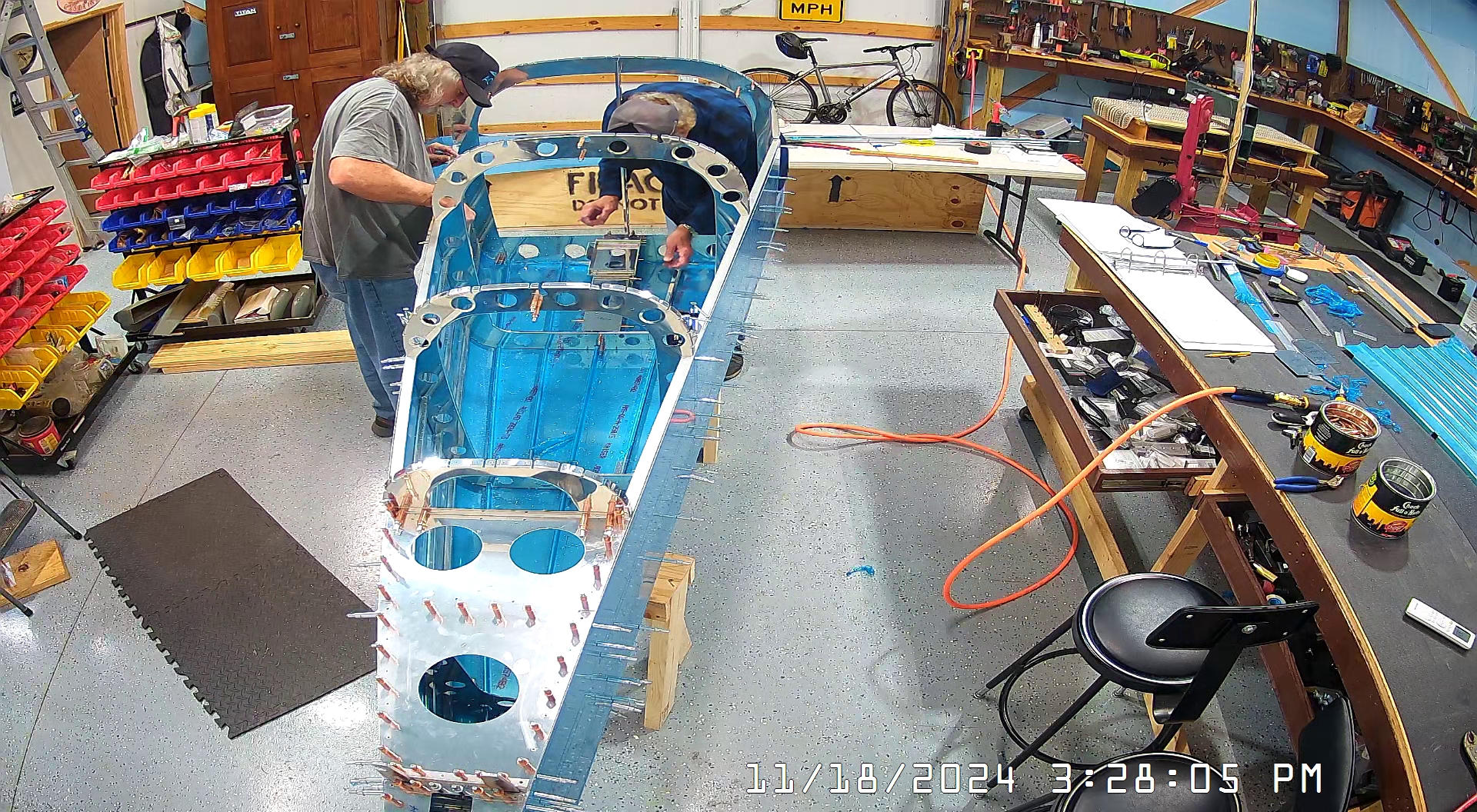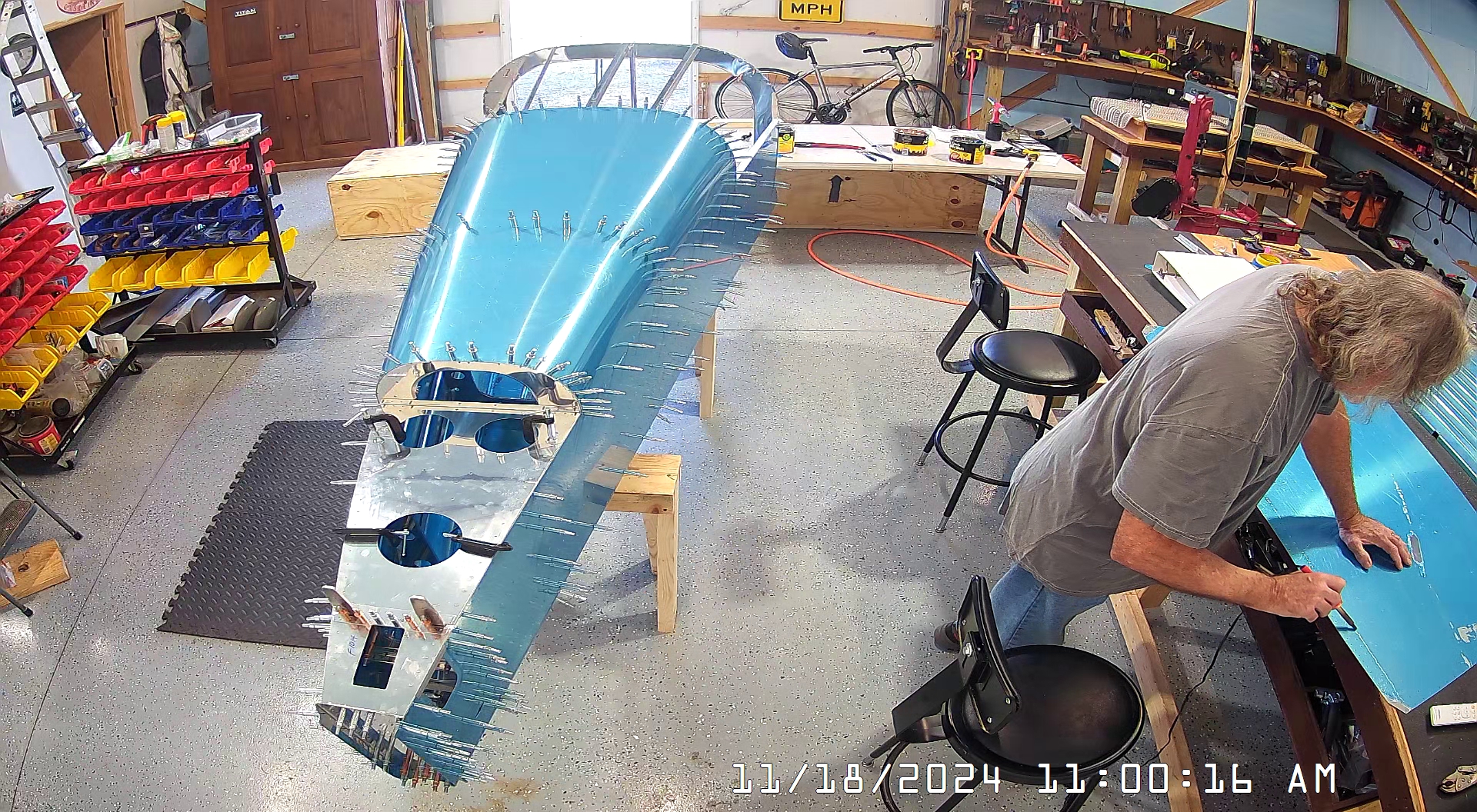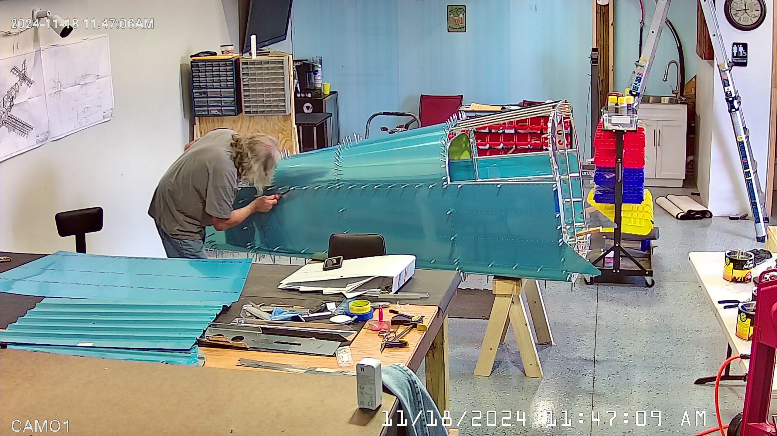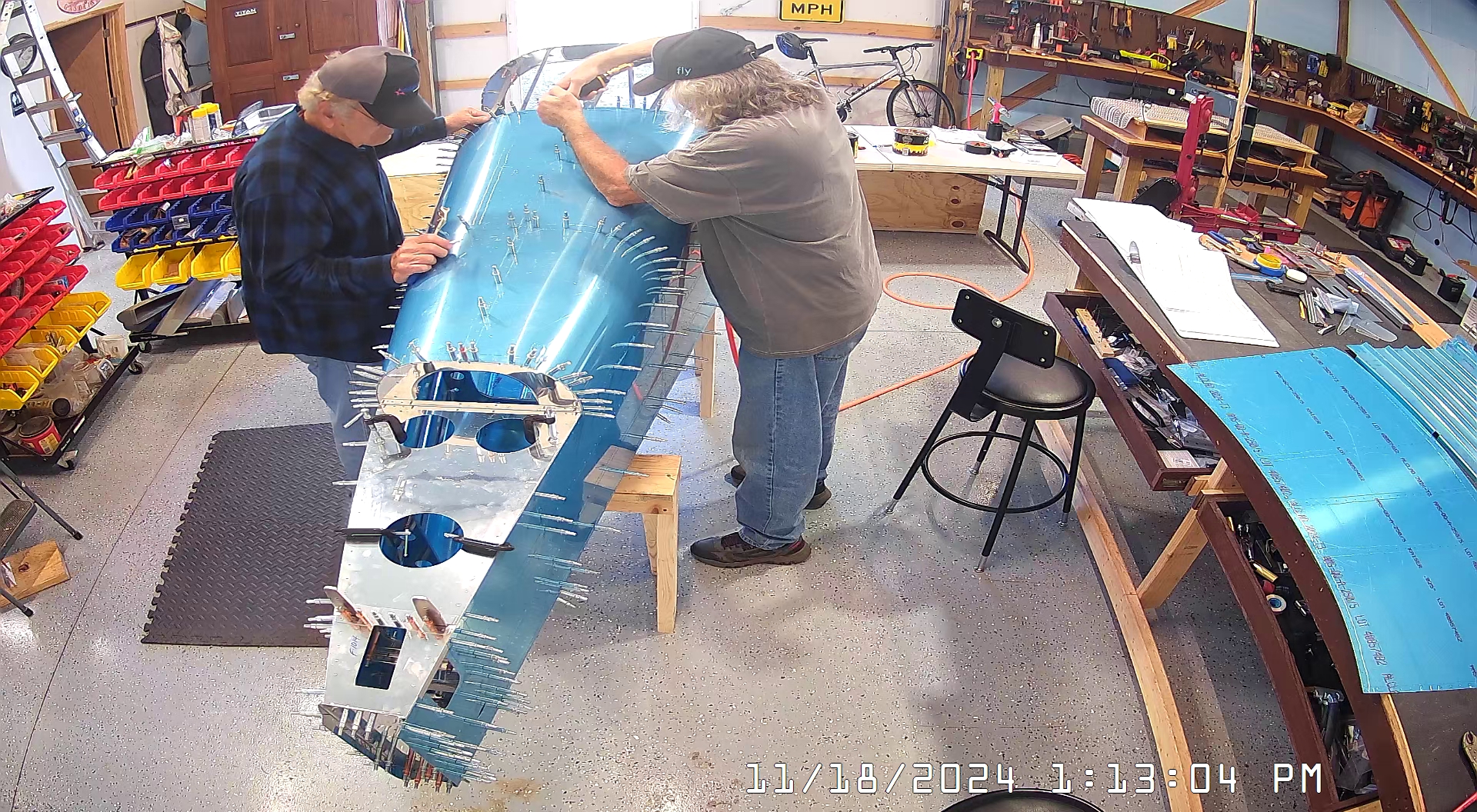 EJ, my trusty assistant showed up as I was nearing finishing but we had to go back a step to match drill the stiffeners in F-1047 A and B. I could not do that on my own as I couldn’t hold the stiffeners in the correct place while at the same time drilling the end cross through the skin holes. This is outlined in the assembly manual as Page 10-12, steps 6 through 9. You have to be careful here to not miss the tab holes in the bulkheads.