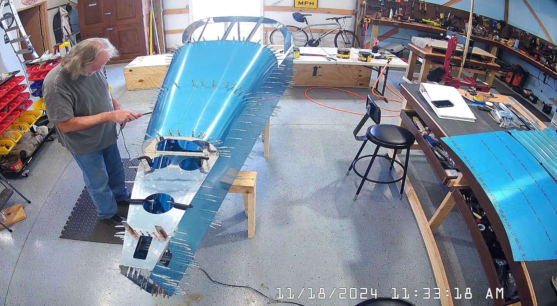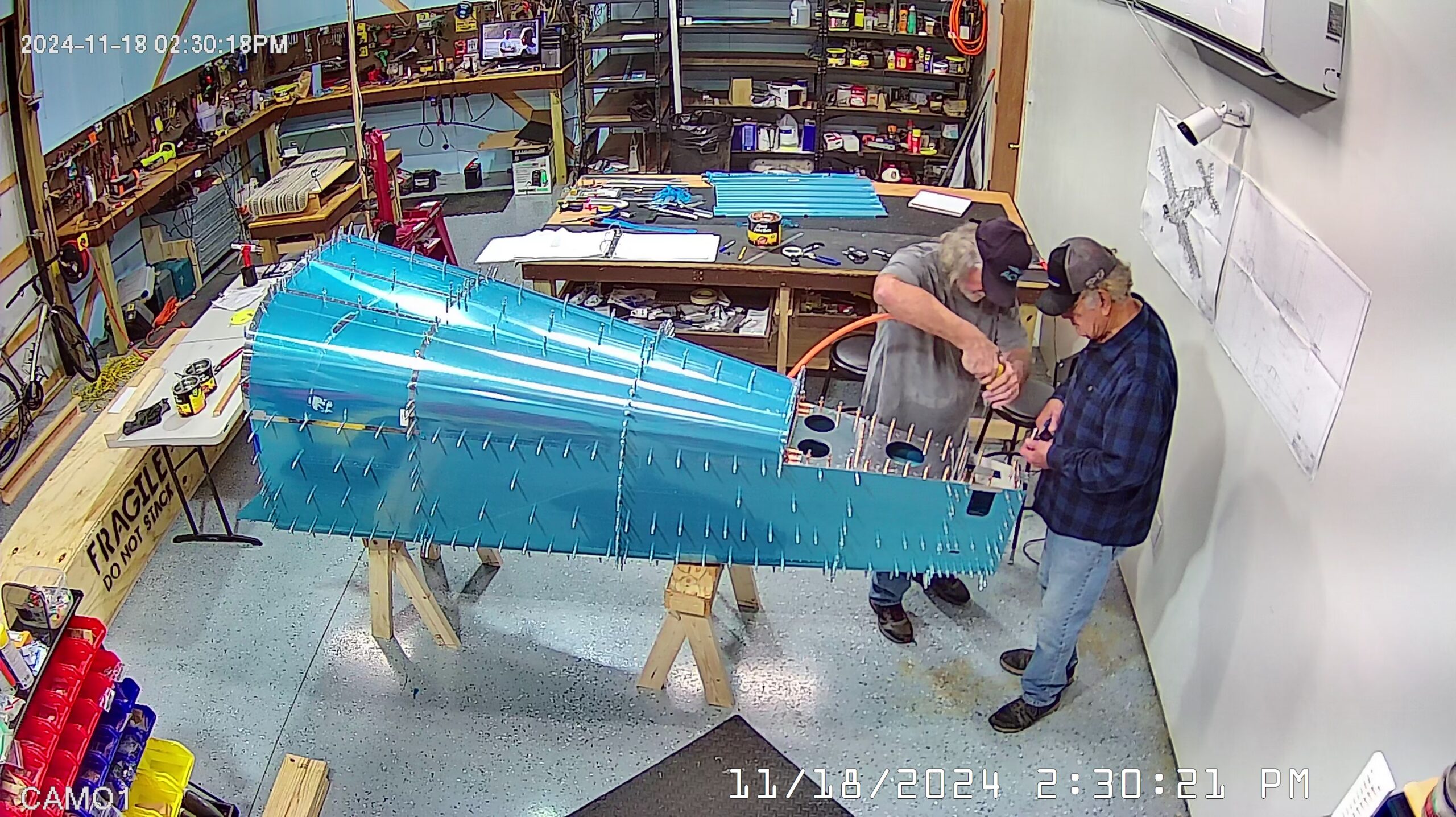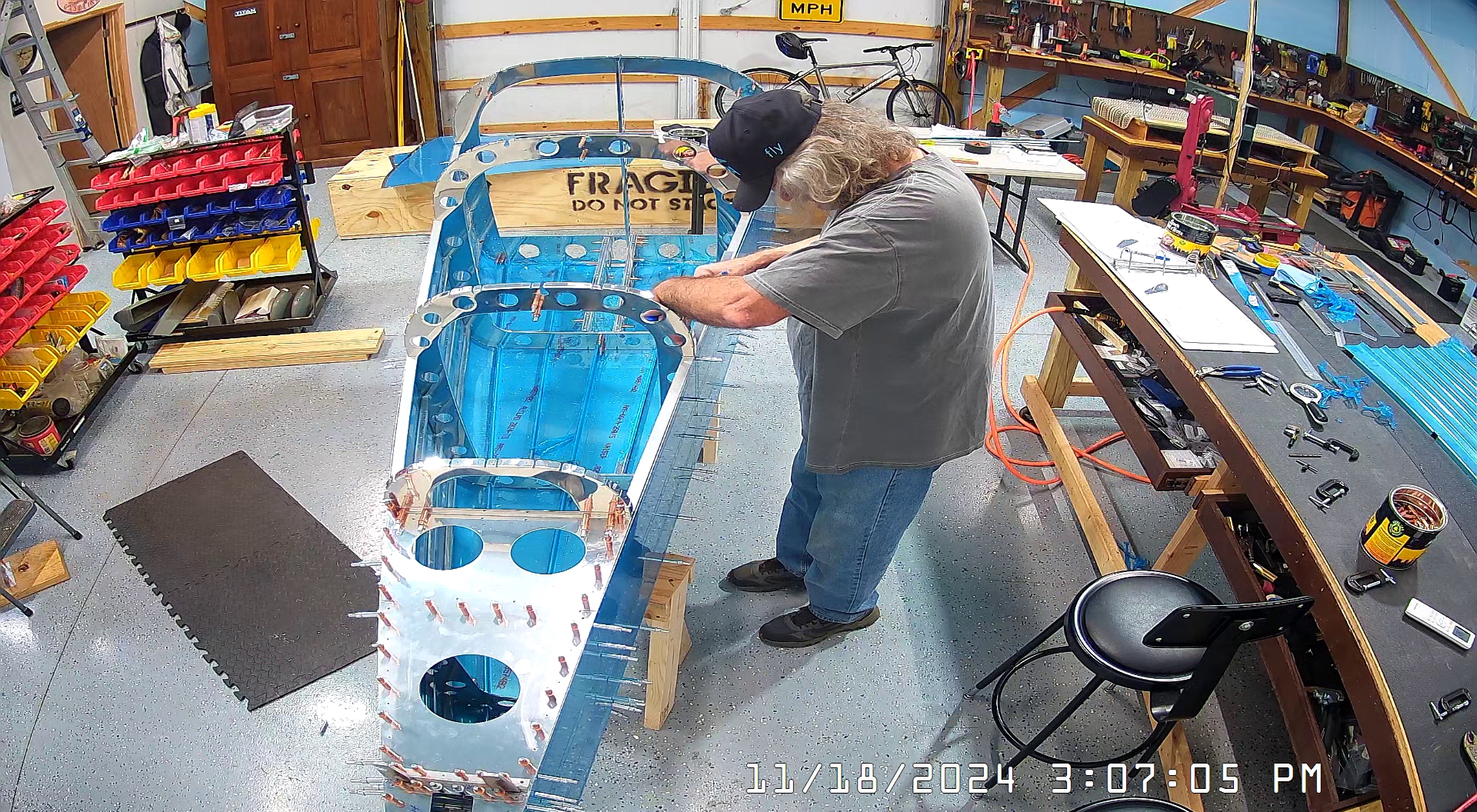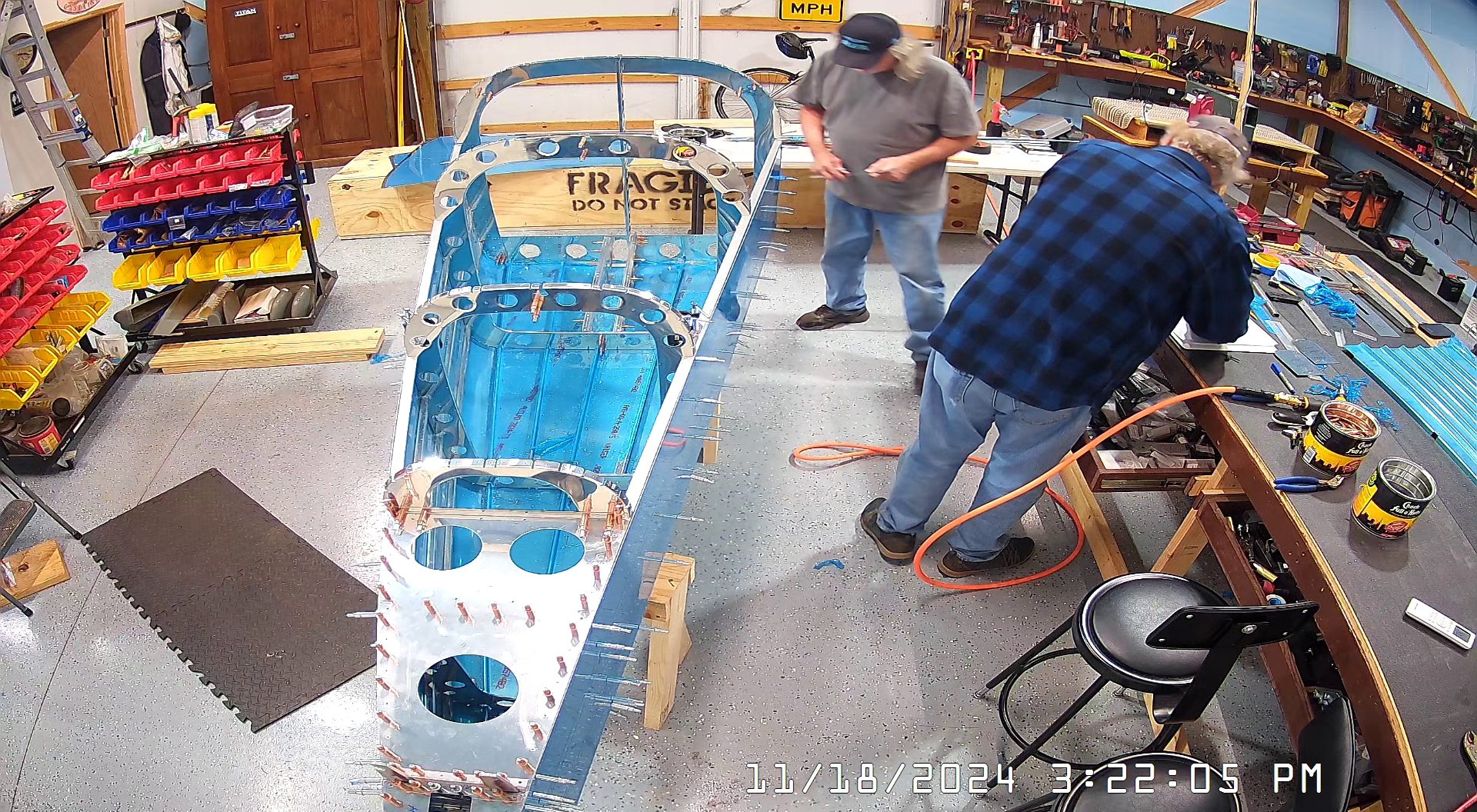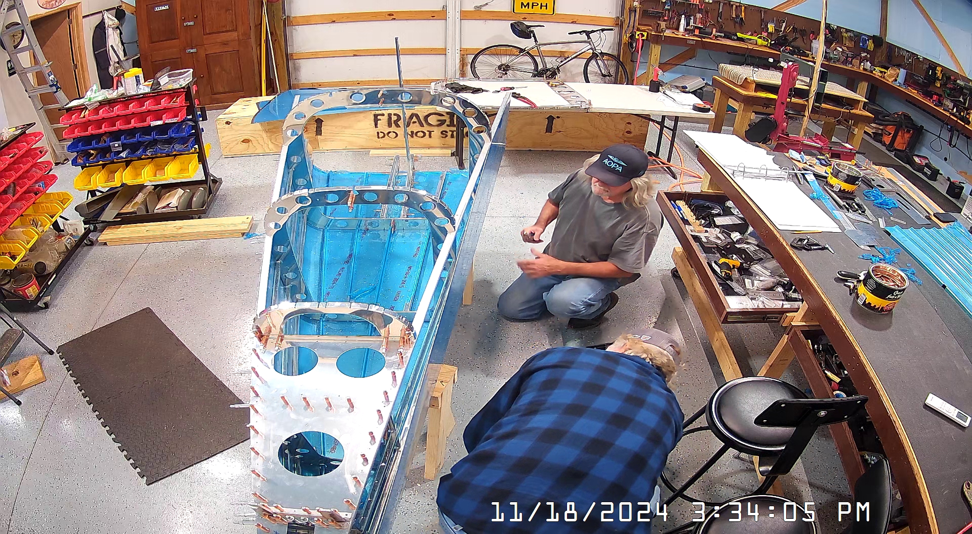EJ, my trusty assistant showed up as I was nearing finishing but we had to go back a step to match drill the stiffeners in F-1047 A and B. I could not do that on my own as I couldn’t hold the stiffeners in the correct place while at the same time drilling the end cross through the skin holes. This is outlined in the assembly manual as Page 10-12, steps 6 through 9. You have to be careful here to not miss the tab holes in the bulkheads.