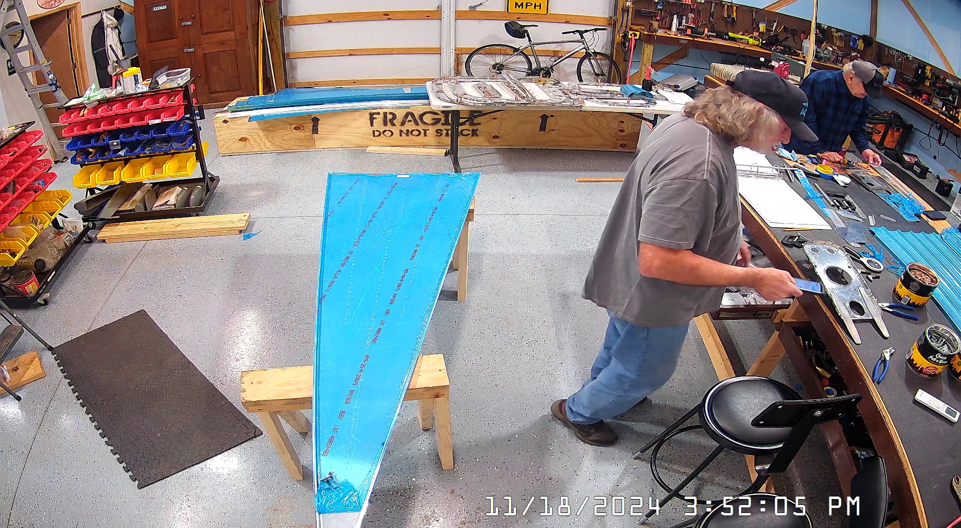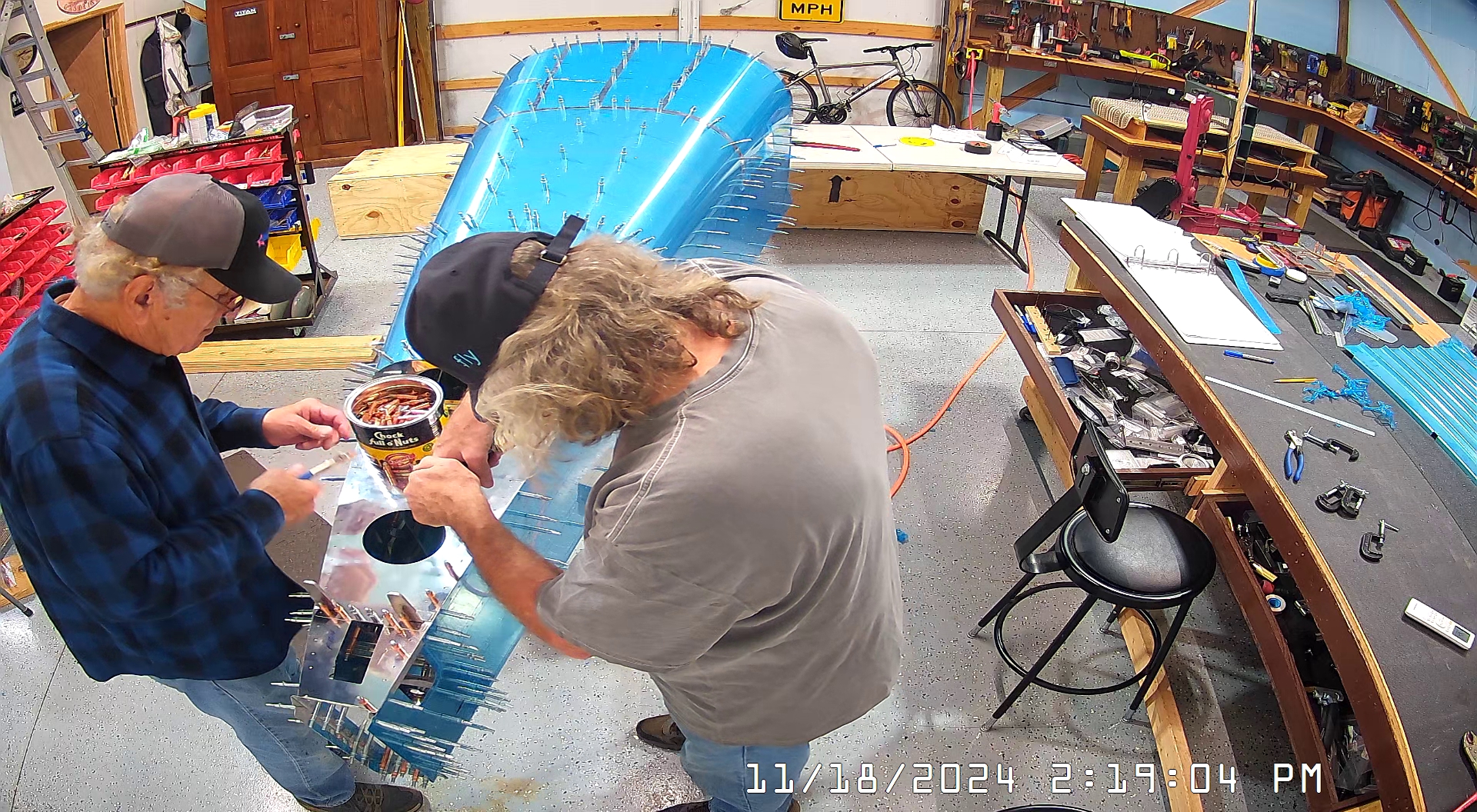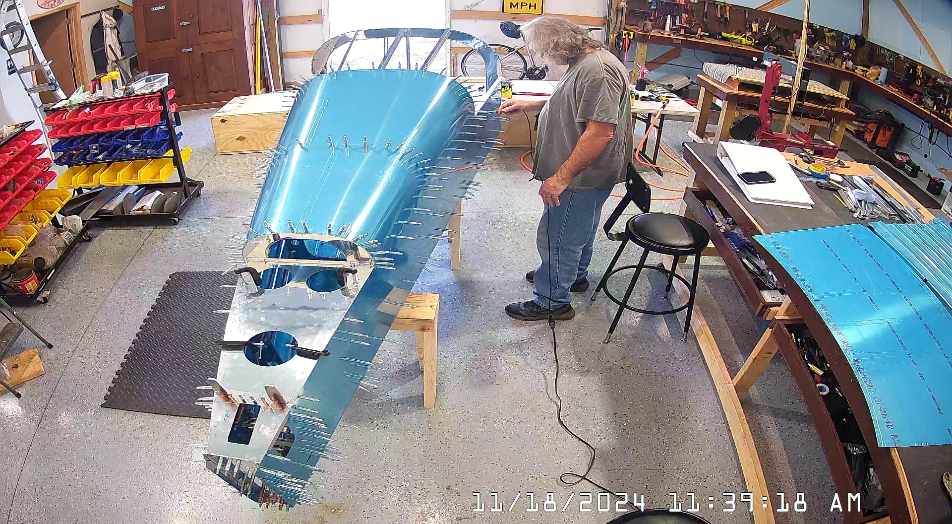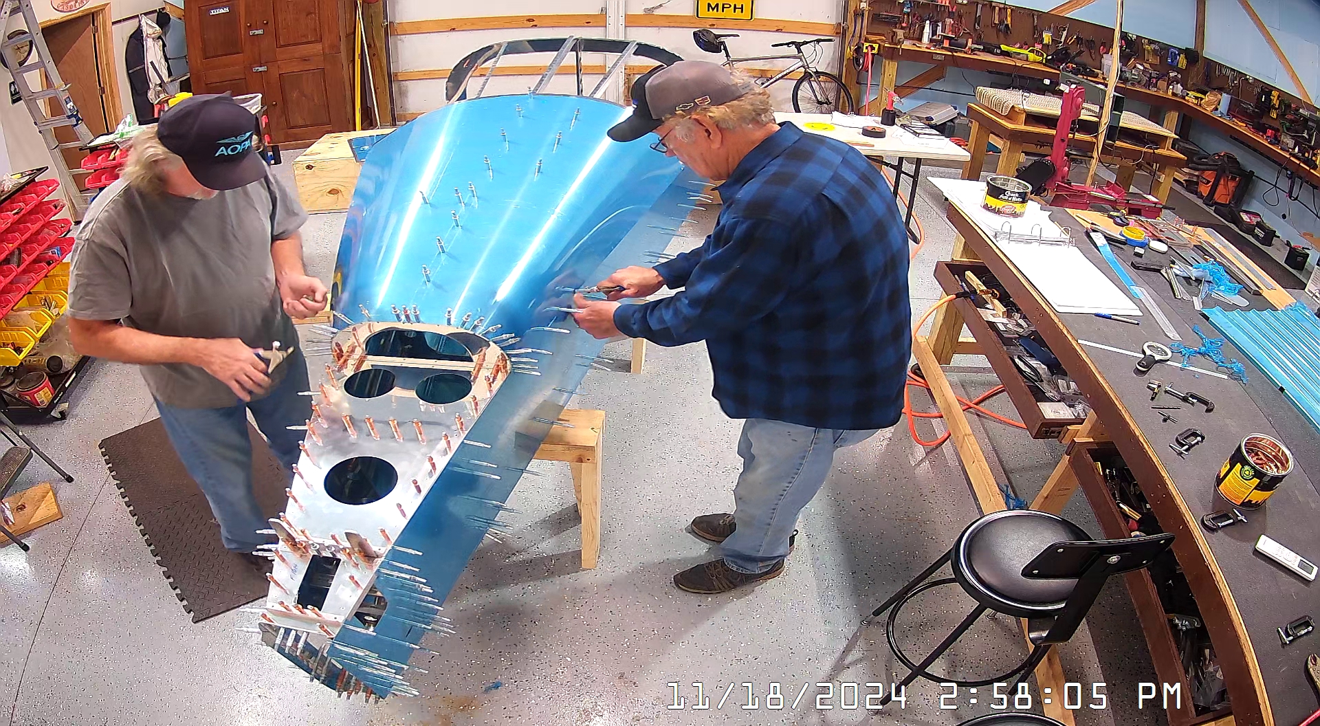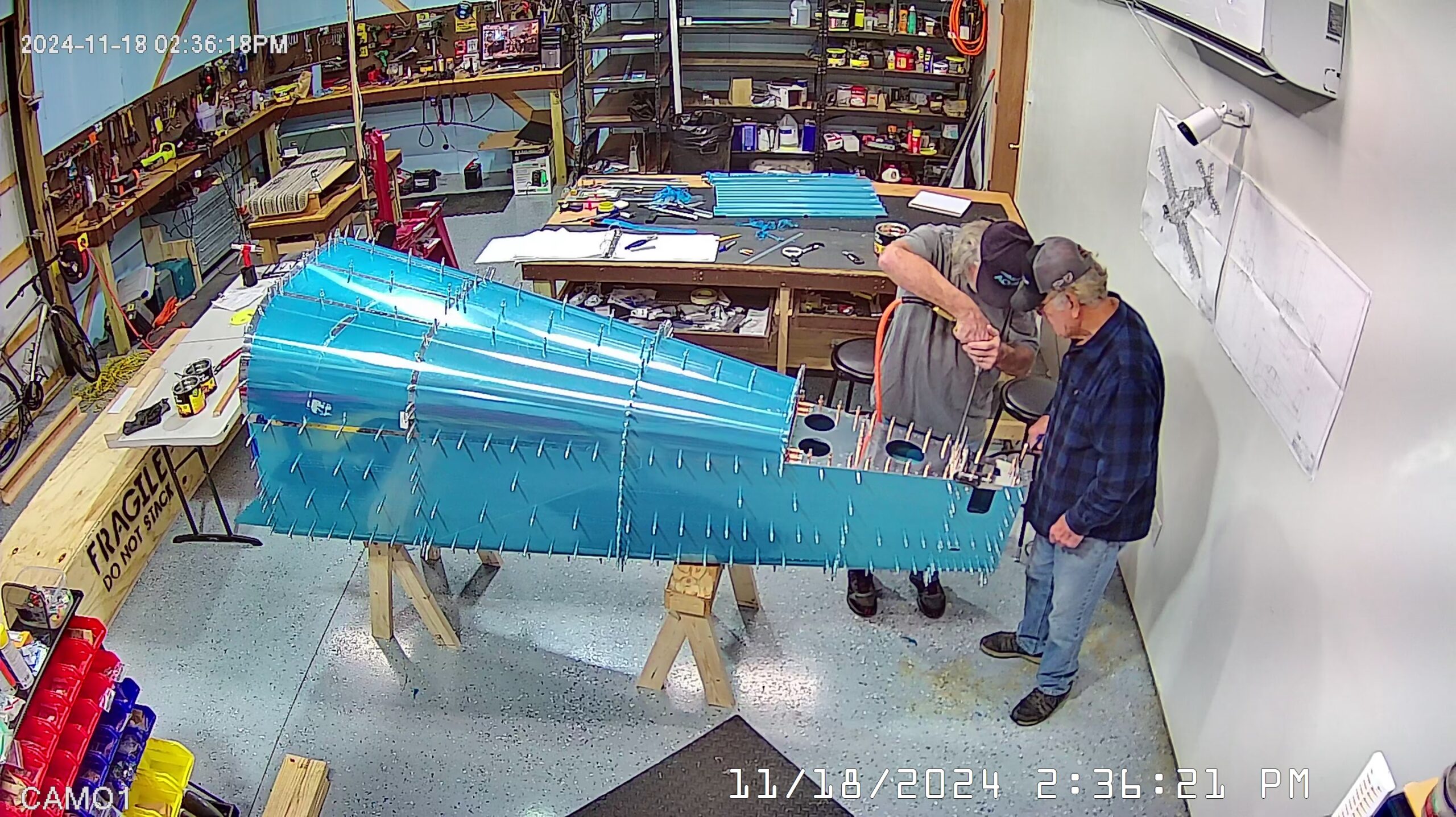 EJ, my trusty assistant showed up as I was nearing finishing but we had to go back a step to match drill the stiffeners in F-1047 A and B. I could not do that on my own as I couldn’t hold the stiffeners in the correct place while at the same time drilling the end cross through the skin holes. This is outlined in the assembly manual as Page 10-12, steps 6 through 9. You have to be careful here to not miss the tab holes in the bulkheads.