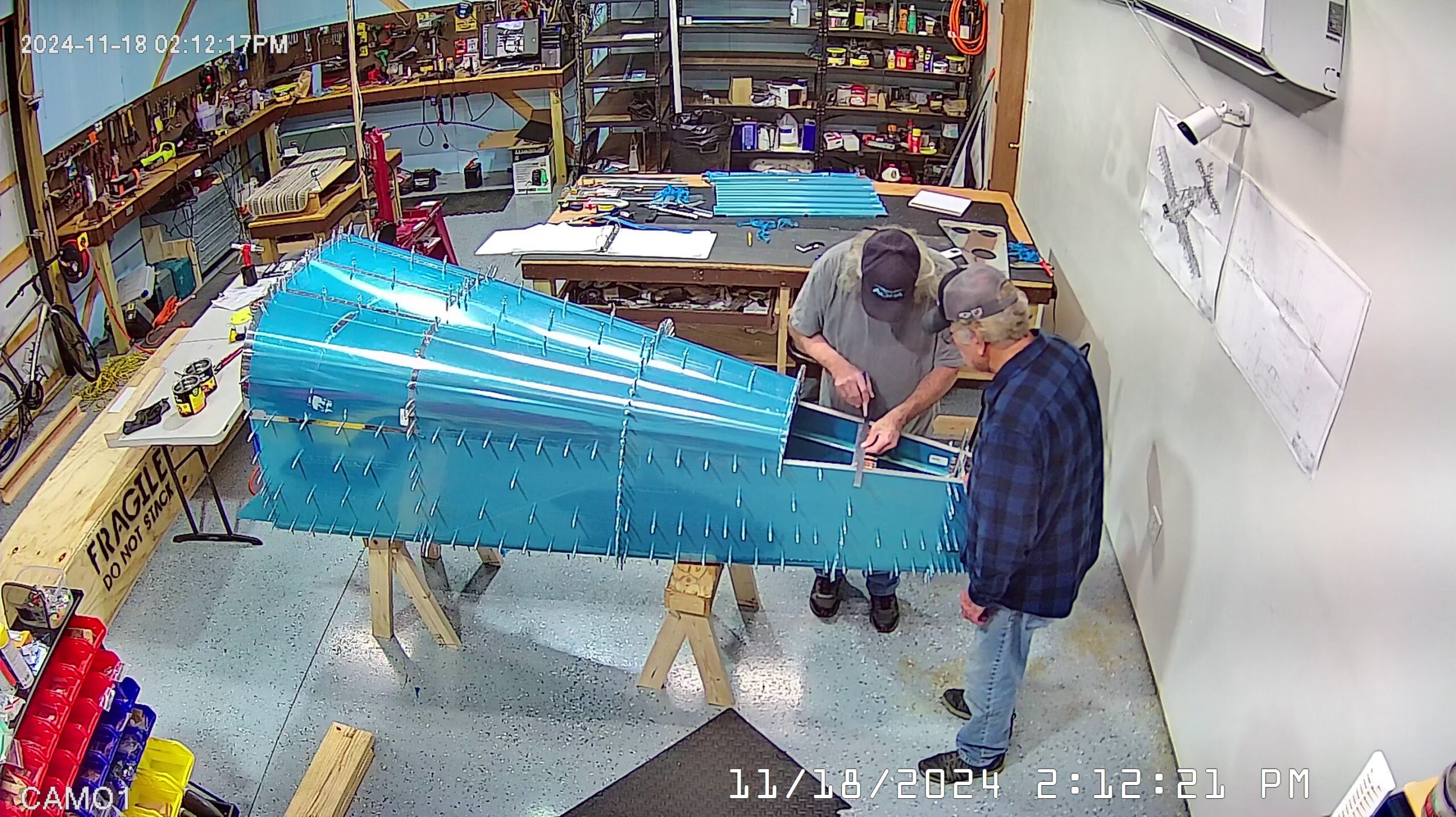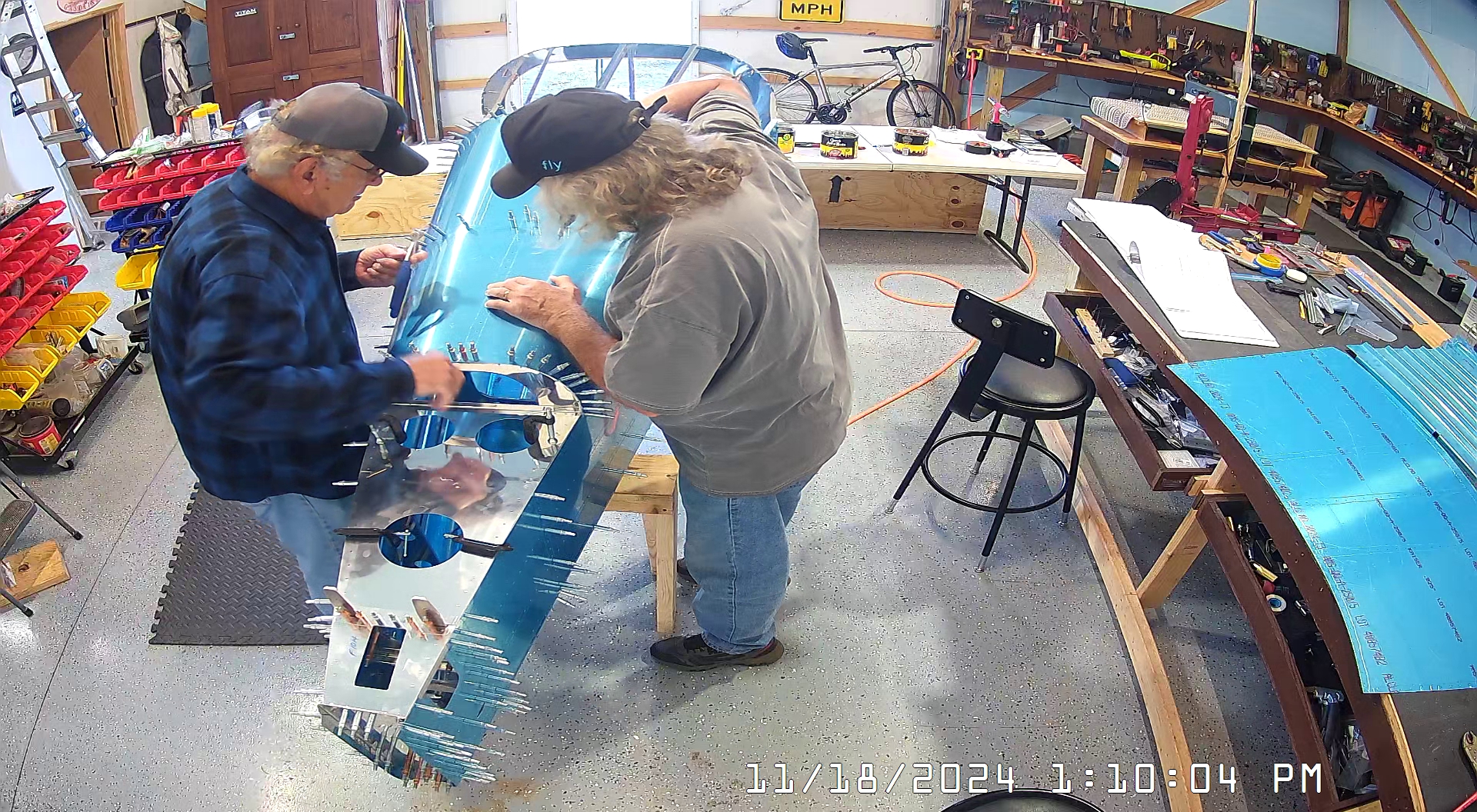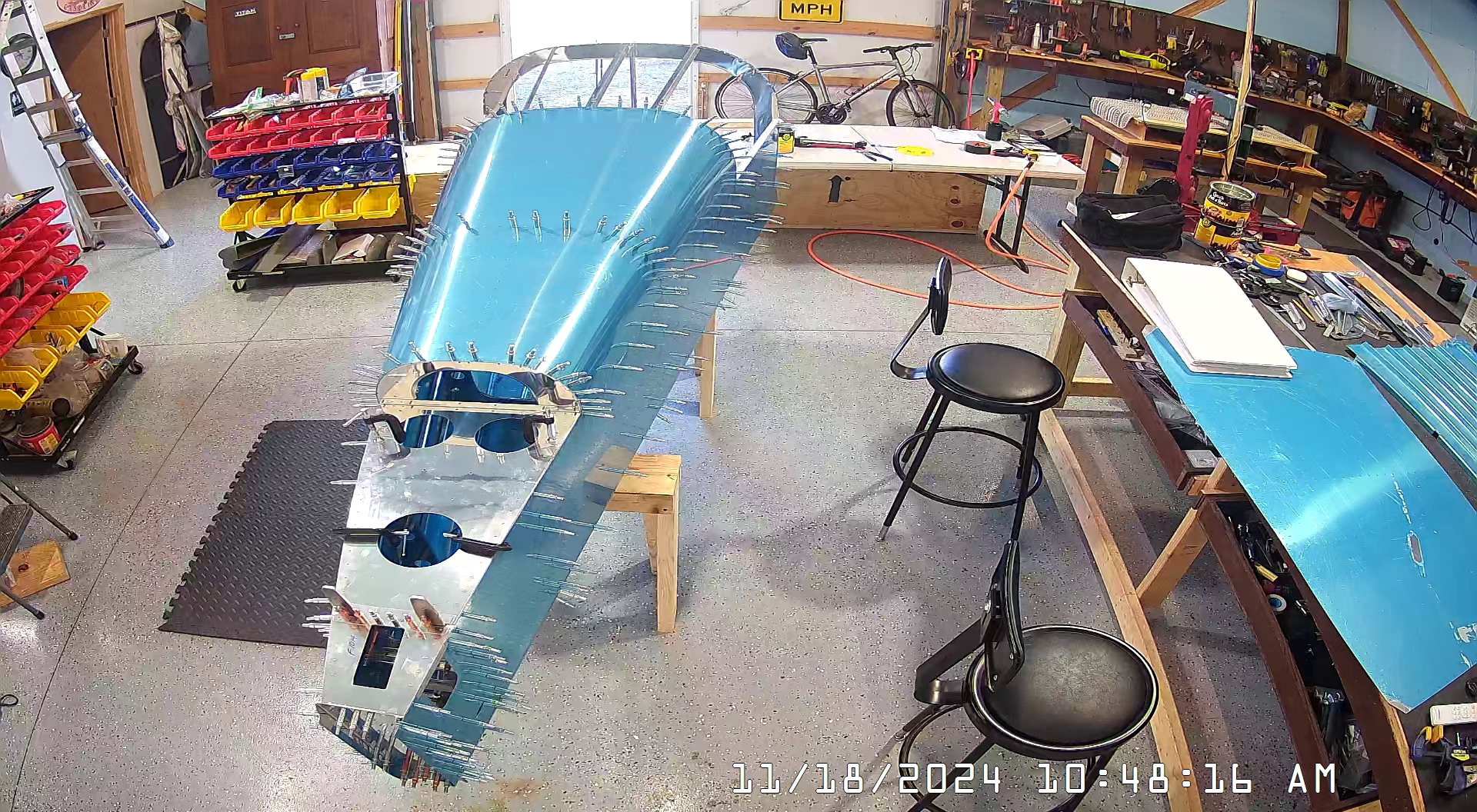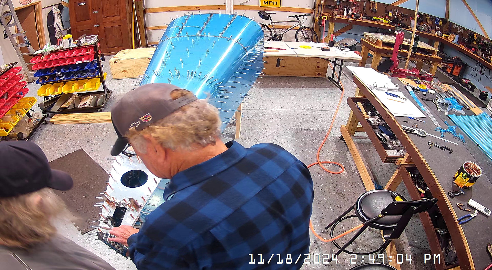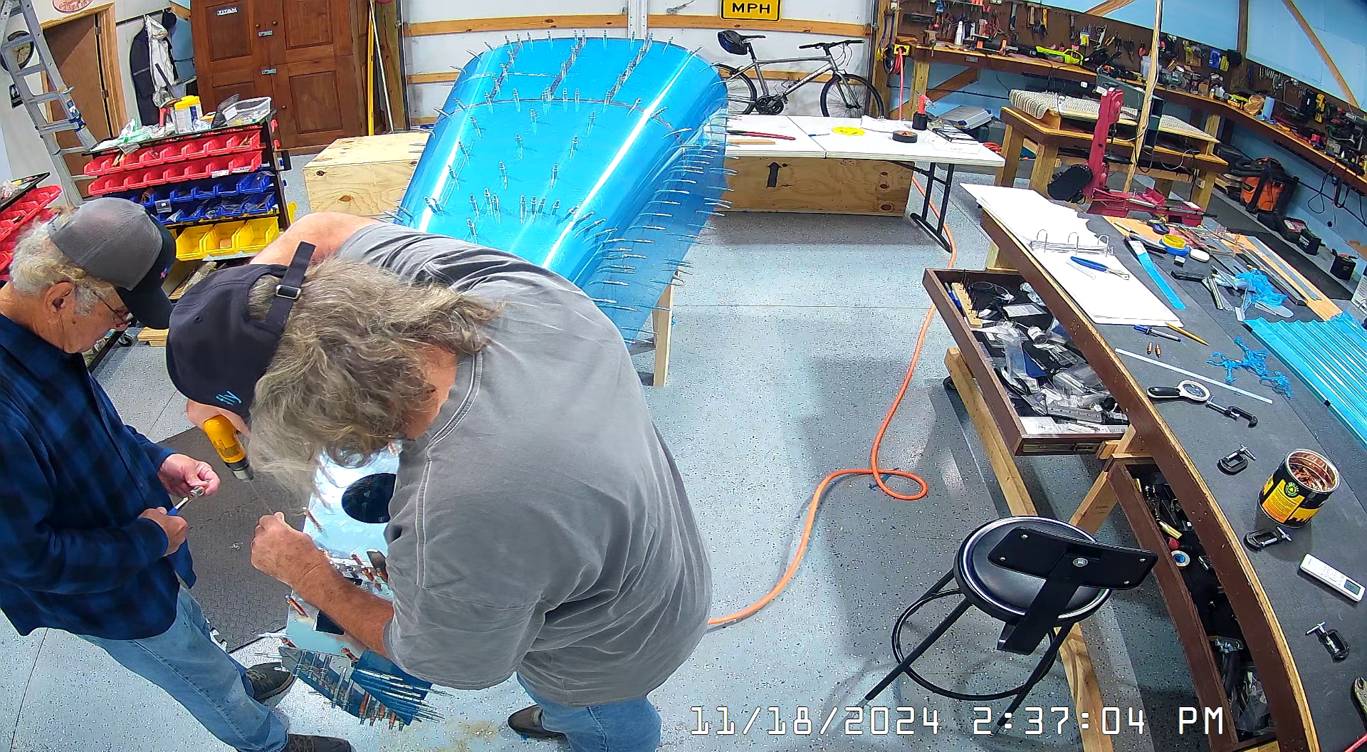 EJ, my trusty assistant showed up as I was nearing finishing but we had to go back a step to match drill the stiffeners in F-1047 A and B. I could not do that on my own as I couldn’t hold the stiffeners in the correct place while at the same time drilling the end cross through the skin holes. This is outlined in the assembly manual as Page 10-12, steps 6 through 9. You have to be careful here to not miss the tab holes in the bulkheads.