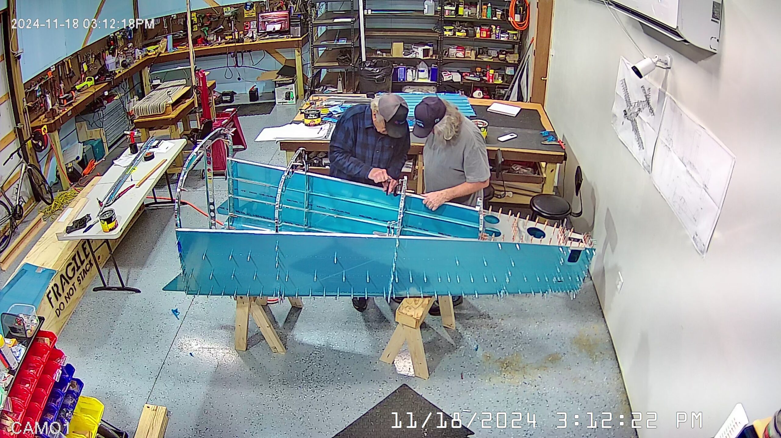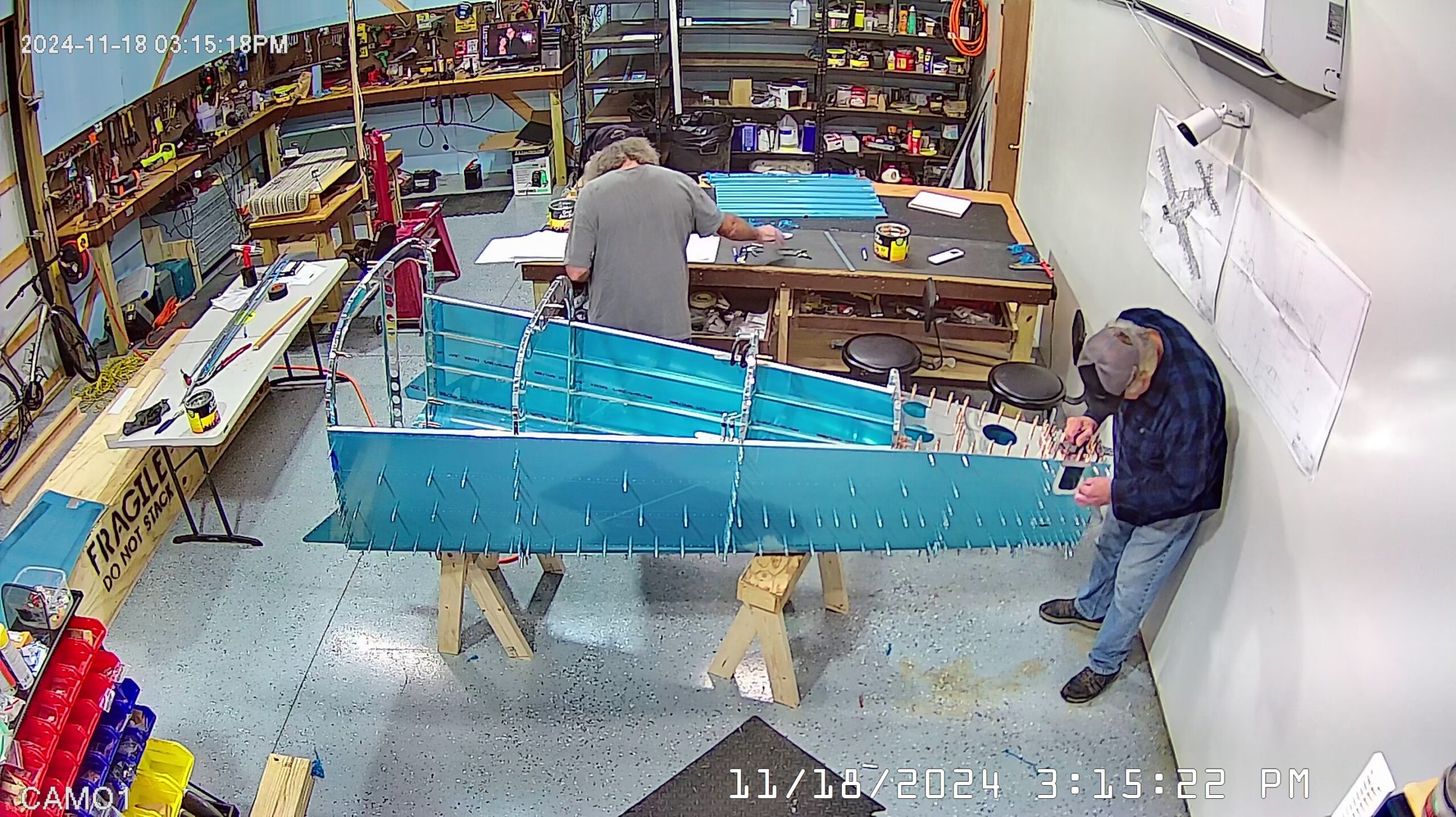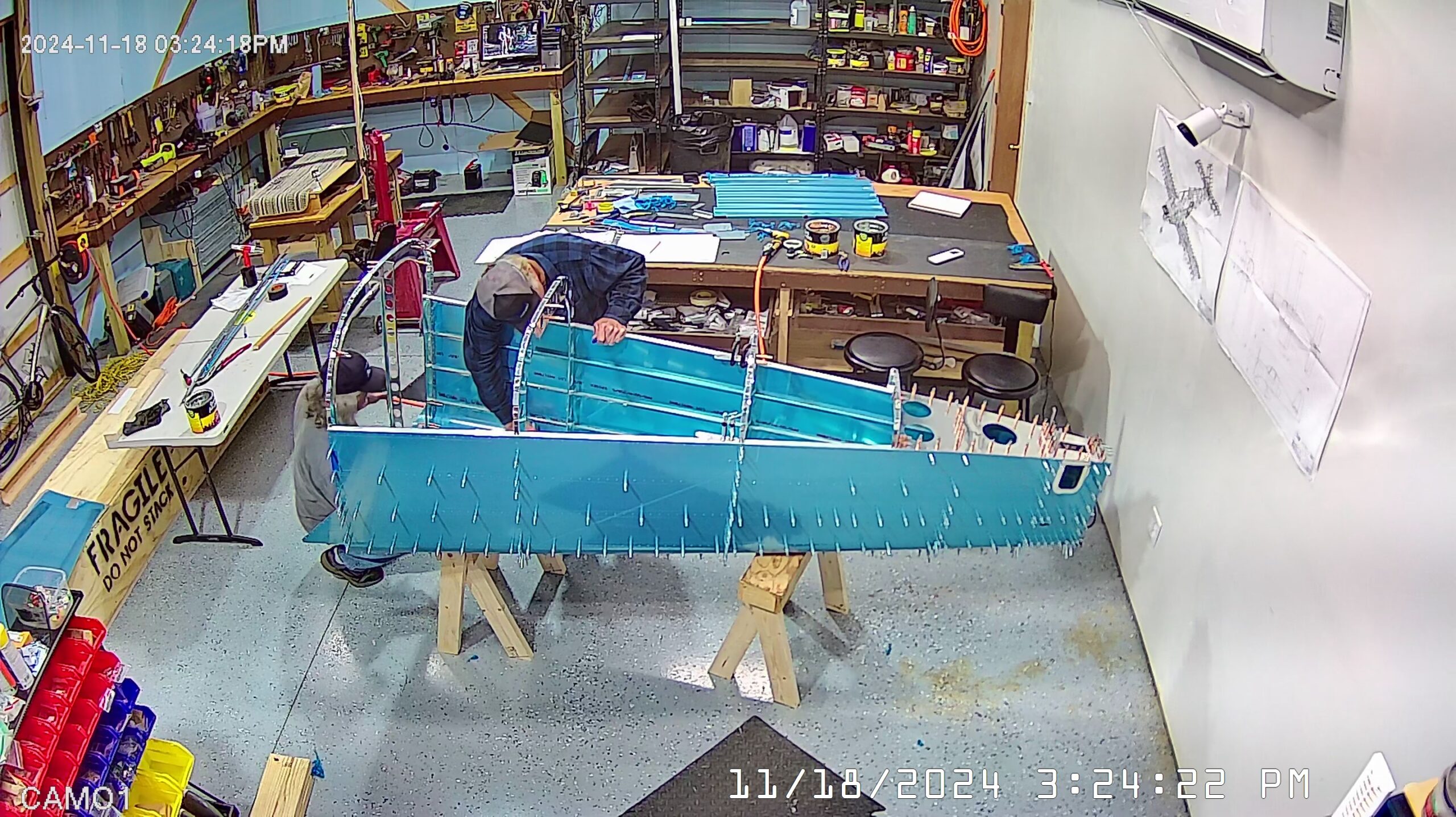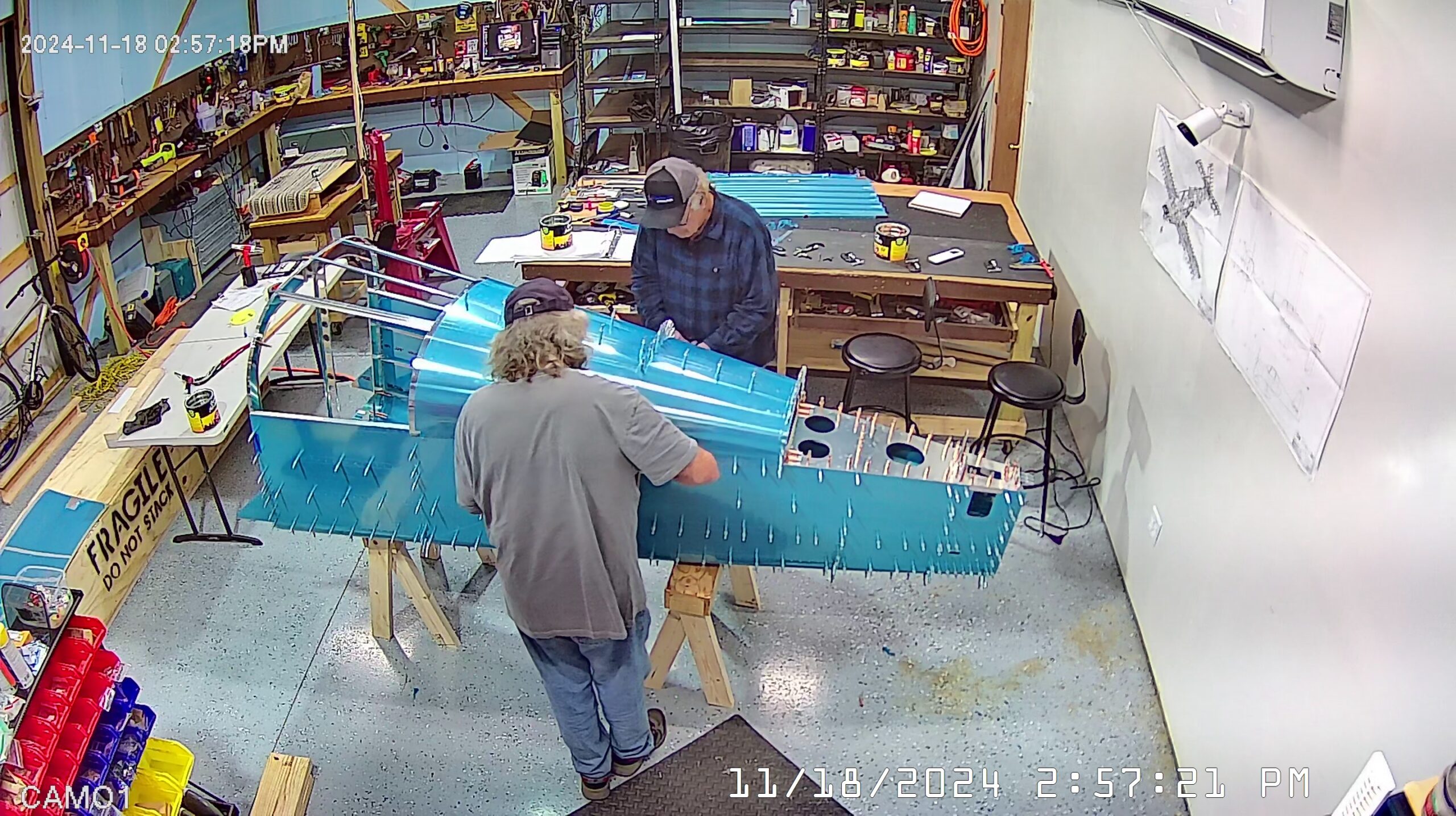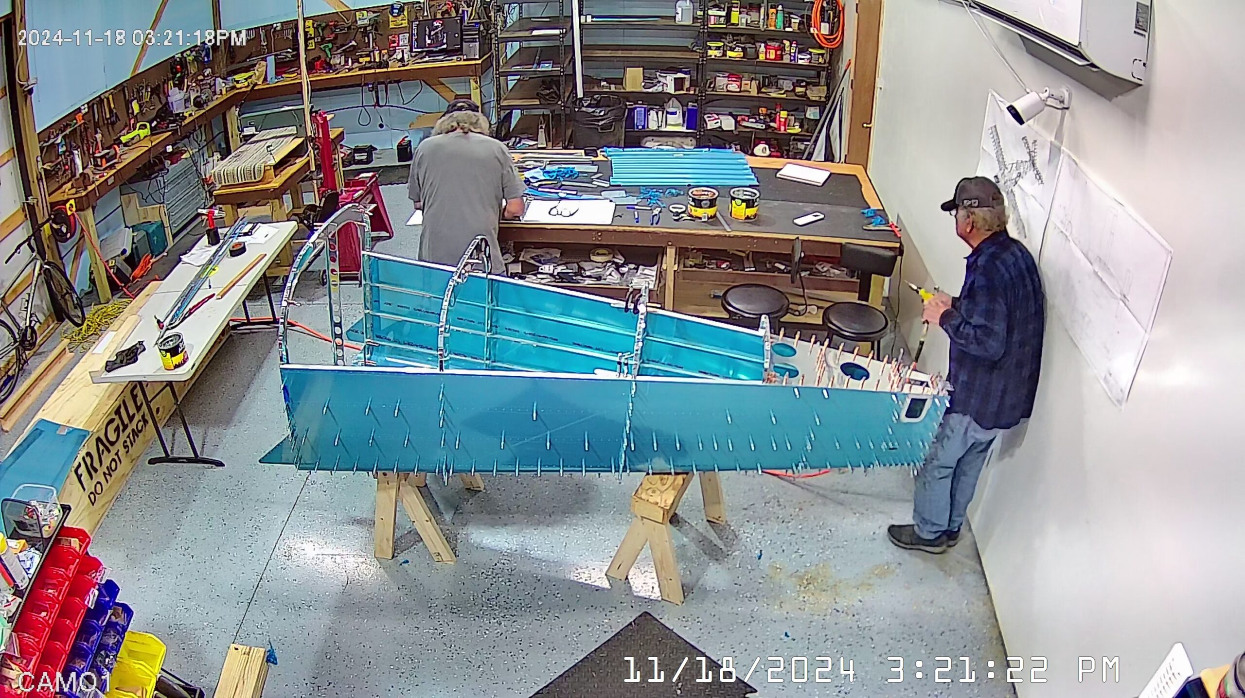 EJ, my trusty assistant showed up as I was nearing finishing but we had to go back a step to match drill the stiffeners in F-1047 A and B. I could not do that on my own as I couldn’t hold the stiffeners in the correct place while at the same time drilling the end cross through the skin holes. This is outlined in the assembly manual as Page 10-12, steps 6 through 9. You have to be careful here to not miss the tab holes in the bulkheads.