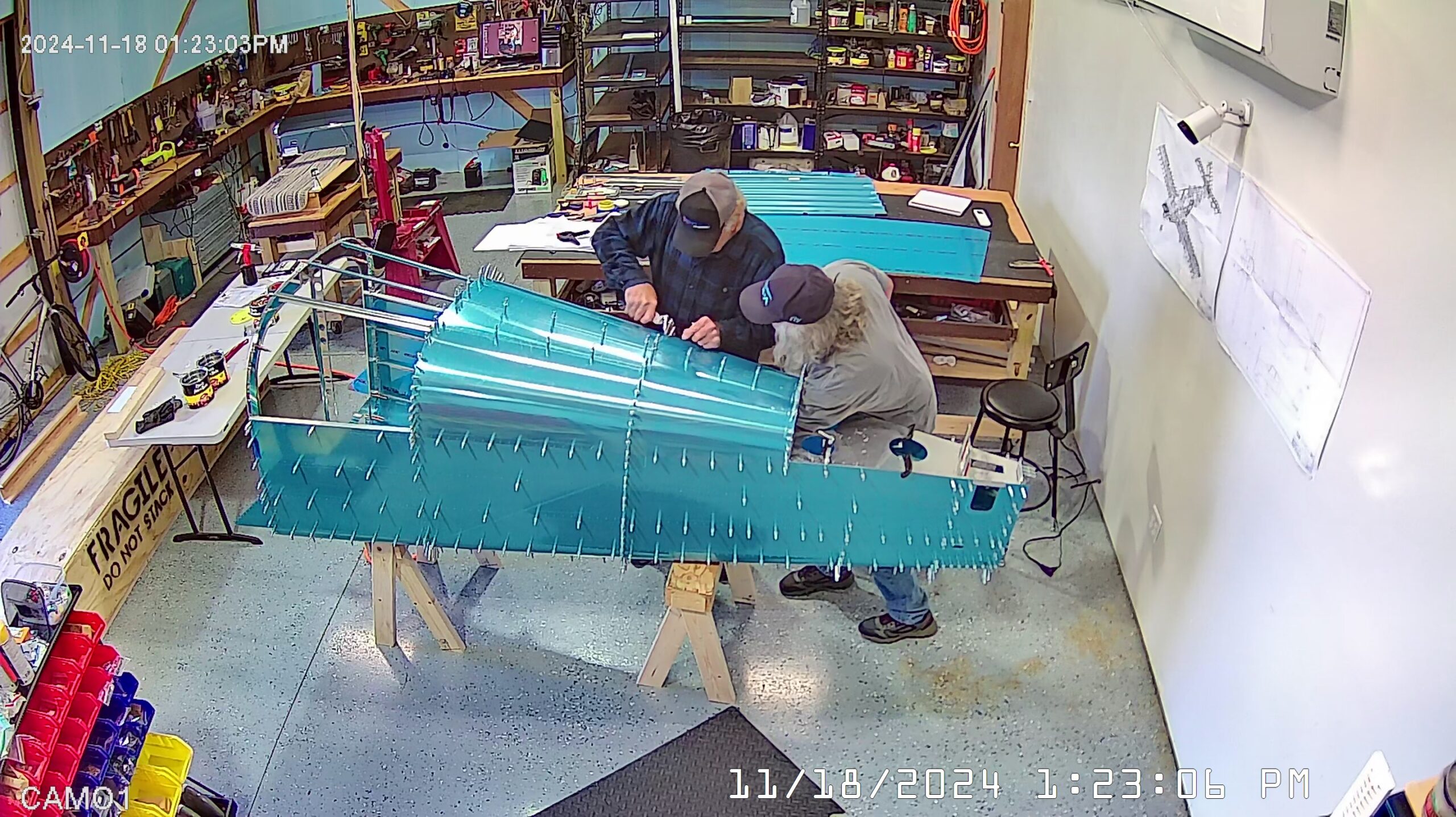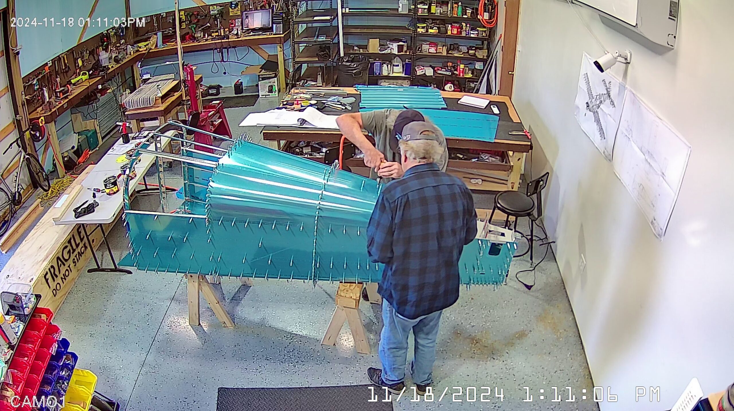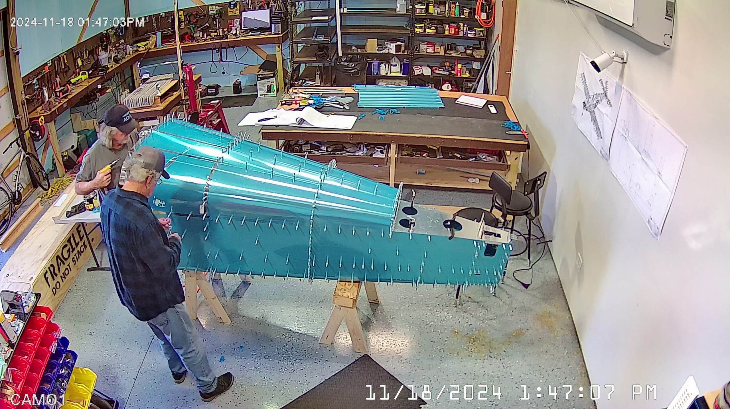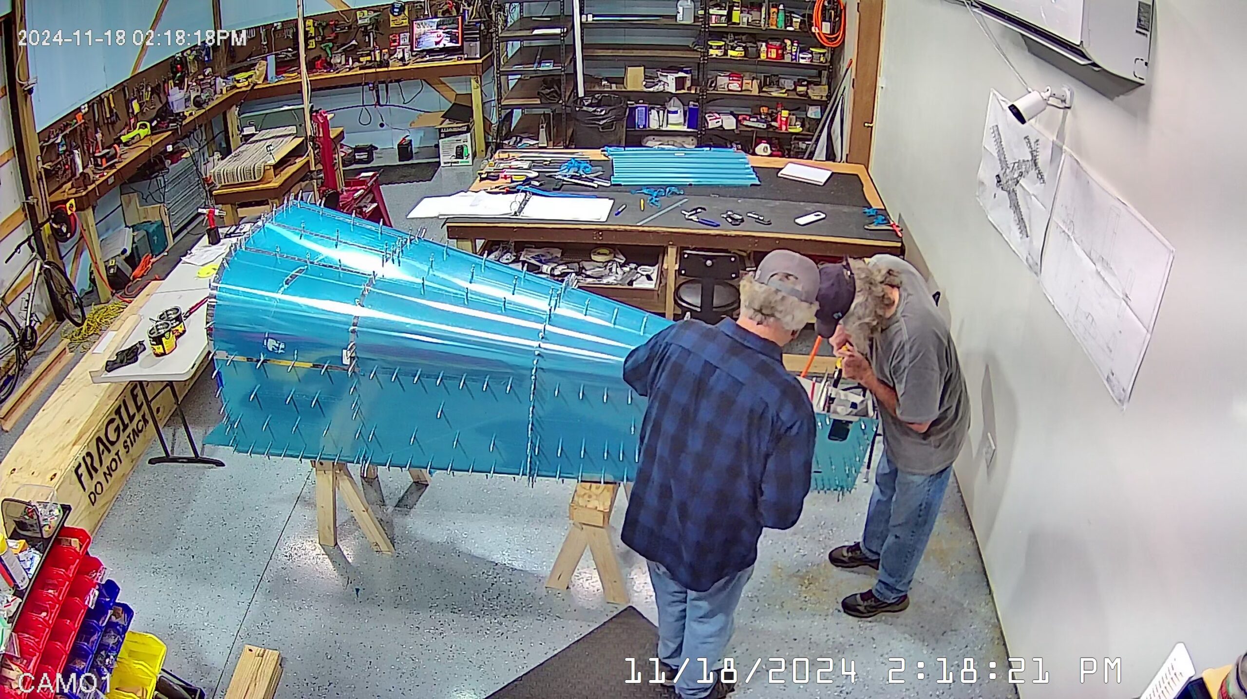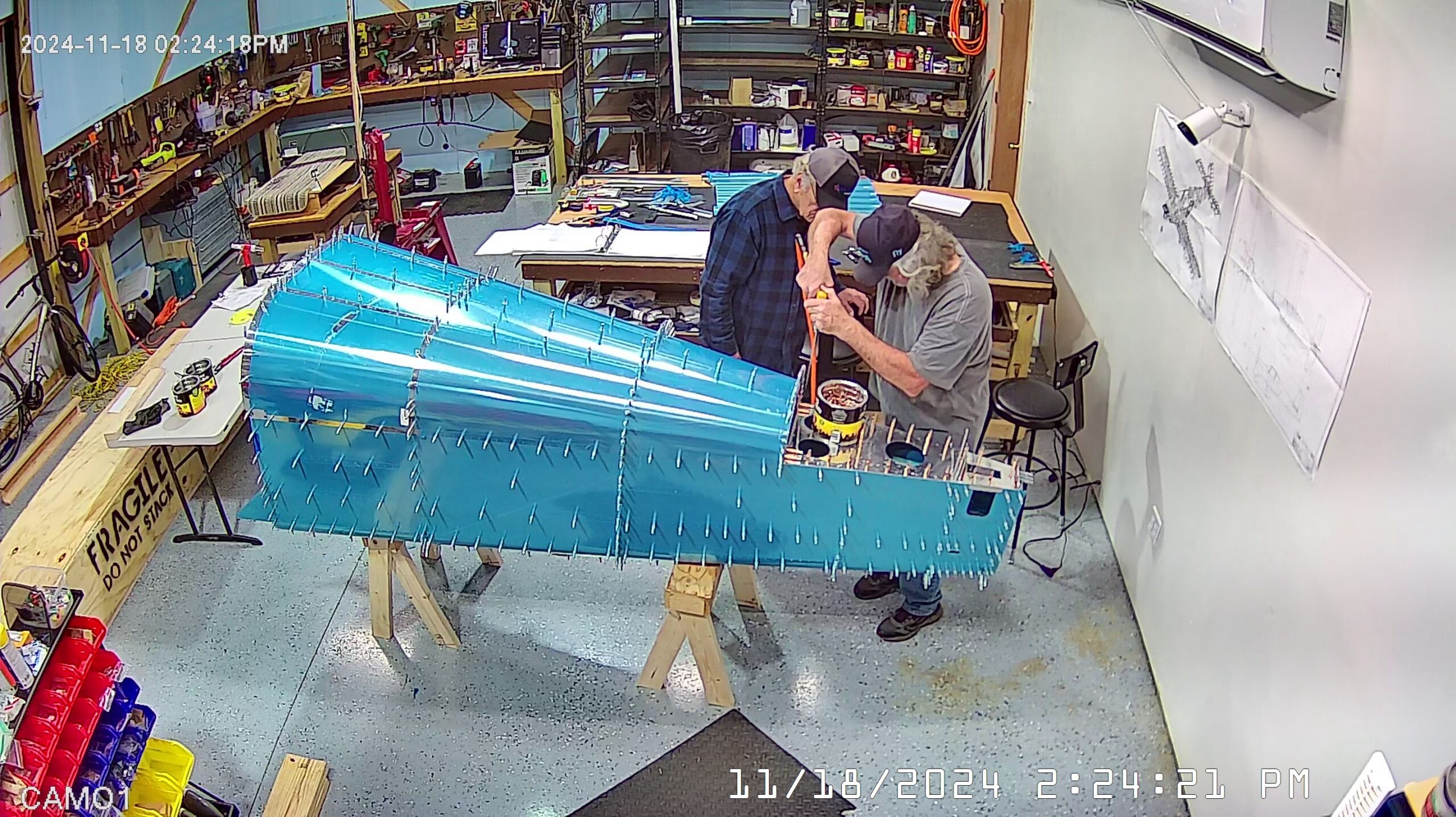 EJ, my trusty assistant showed up as I was nearing finishing but we had to go back a step to match drill the stiffeners in F-1047 A and B. I could not do that on my own as I couldn’t hold the stiffeners in the correct place while at the same time drilling the end cross through the skin holes. This is outlined in the assembly manual as Page 10-12, steps 6 through 9. You have to be careful here to not miss the tab holes in the bulkheads.