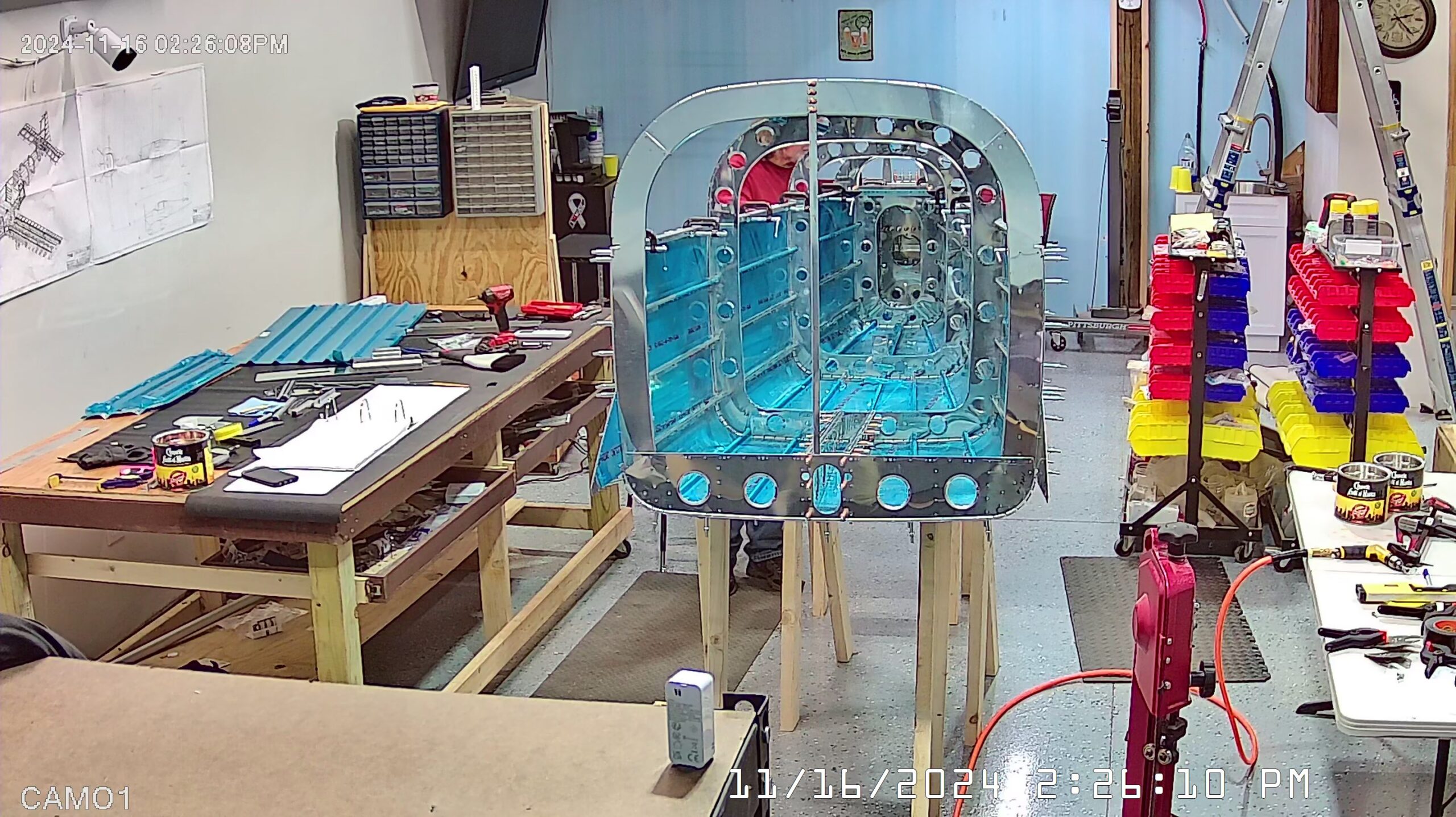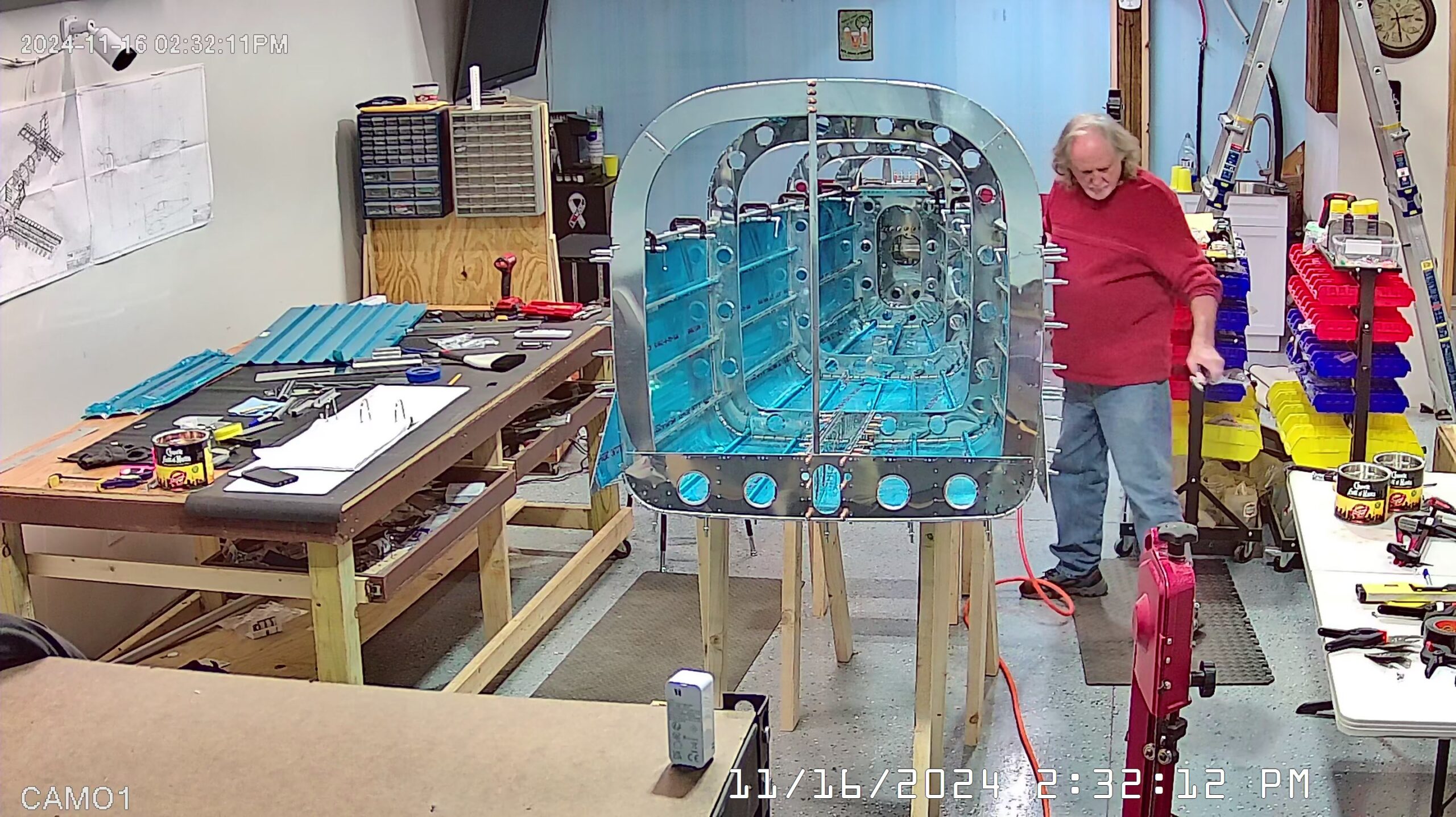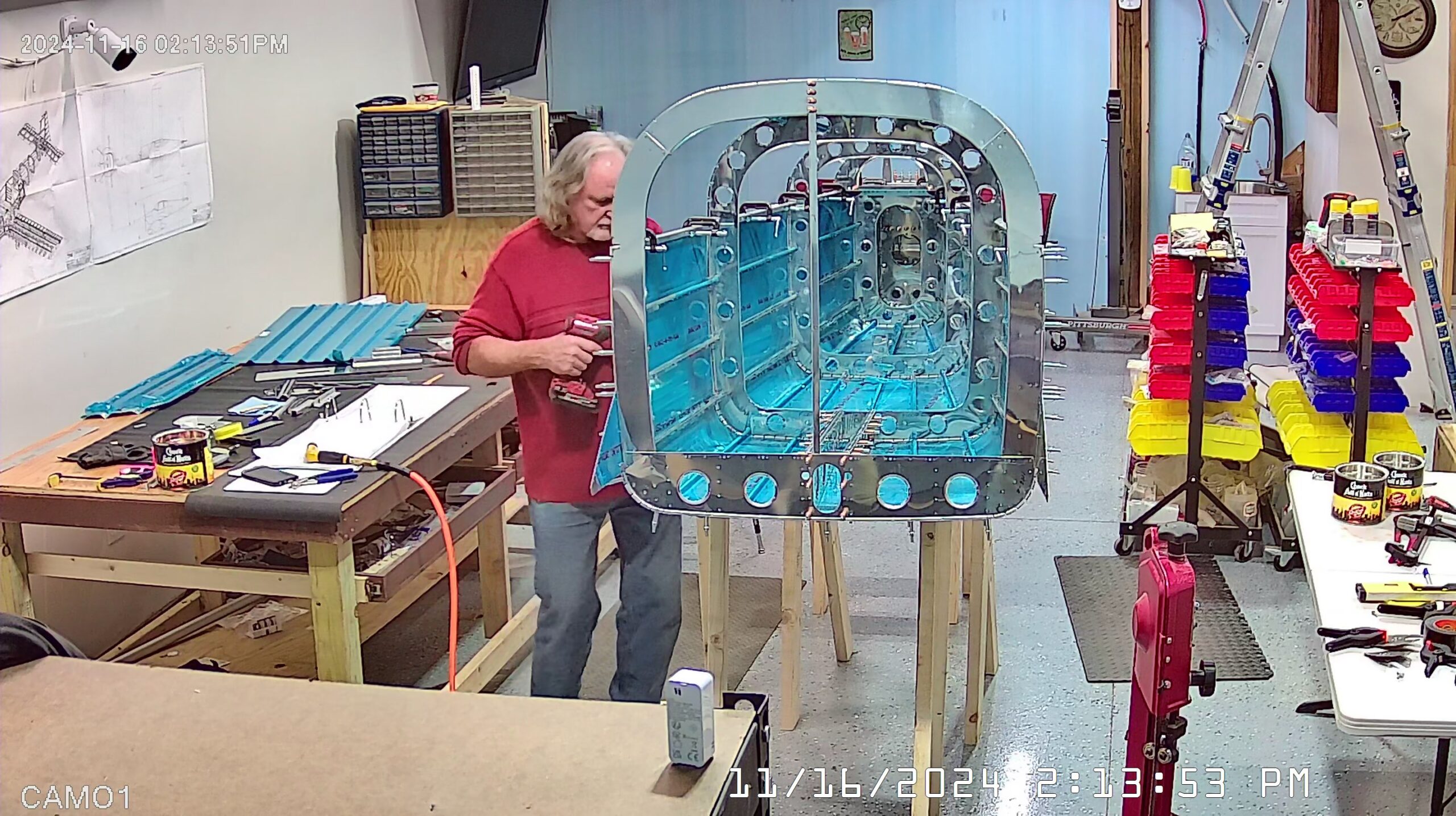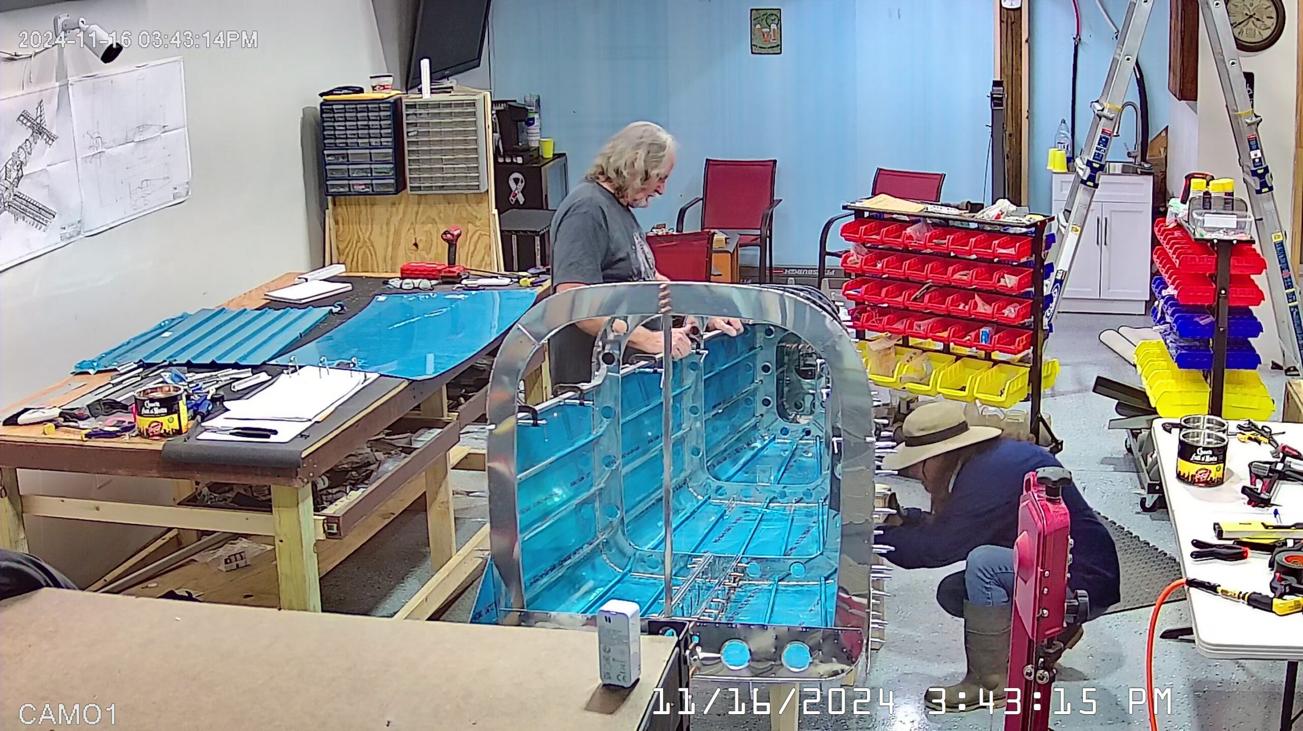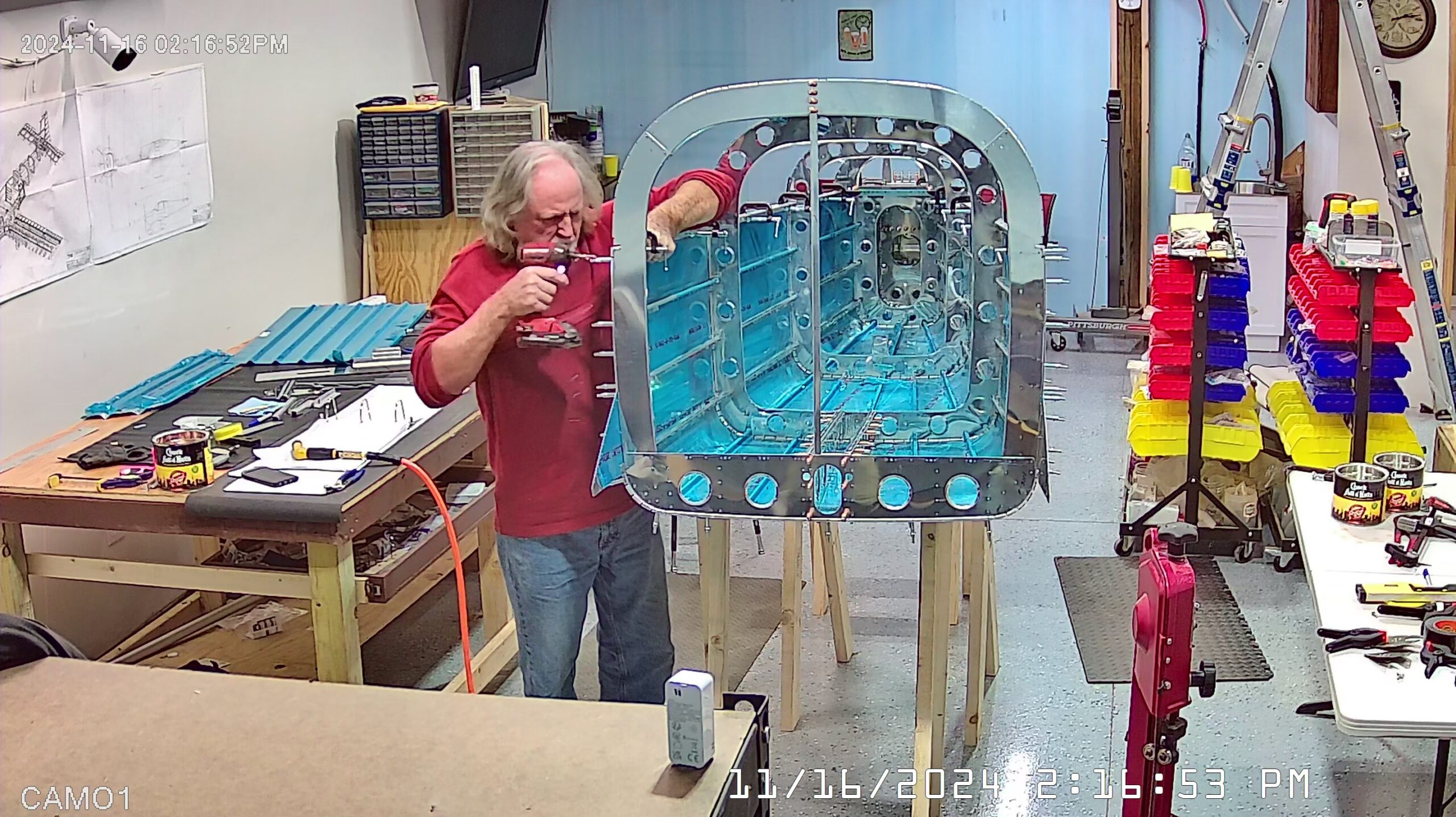 It’s hard to see the match drilling of the F-1032 longerons because of the location of the cameras, but I will move things around a bit for the next work session so that snapshots are more meaningful.