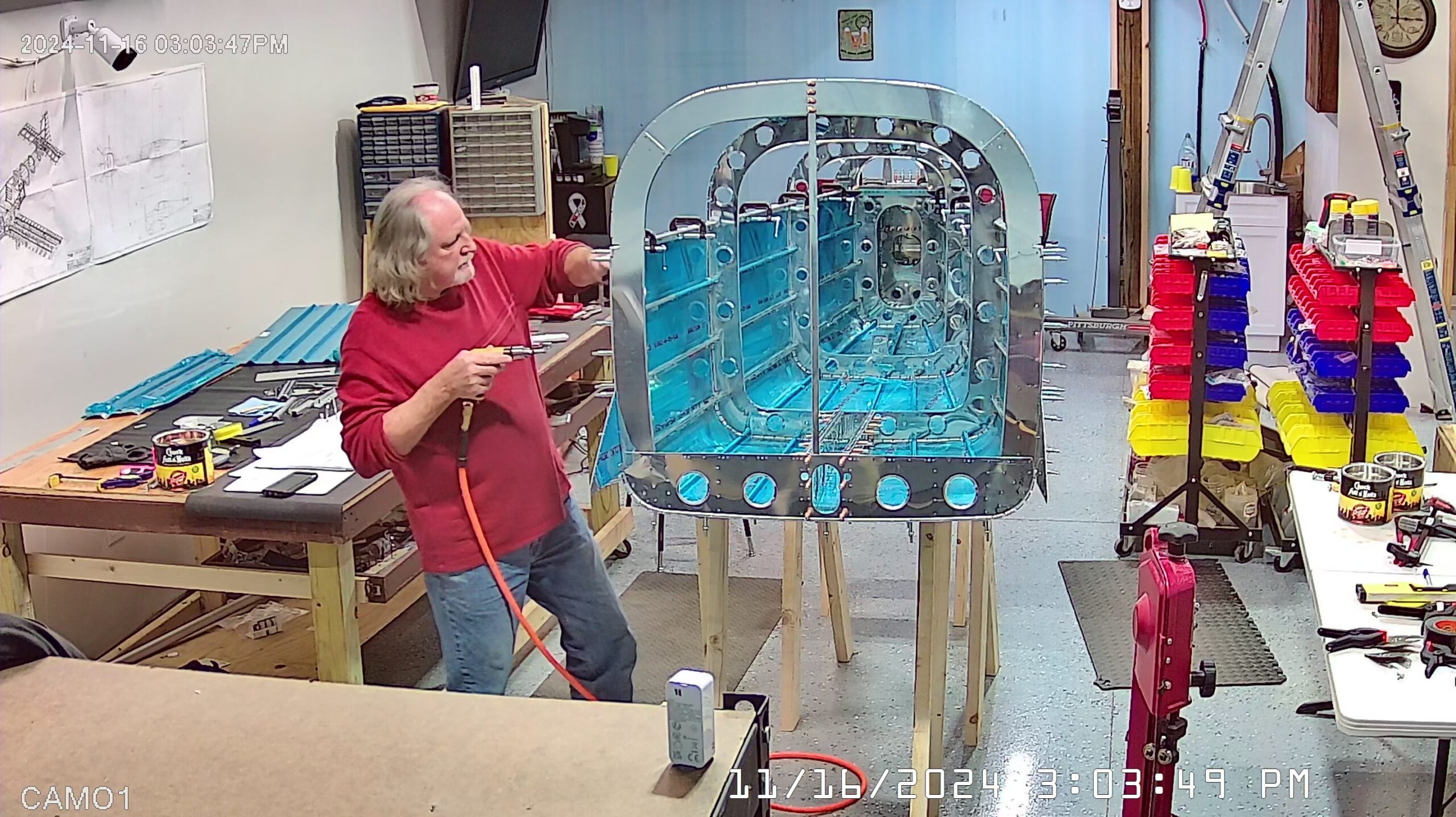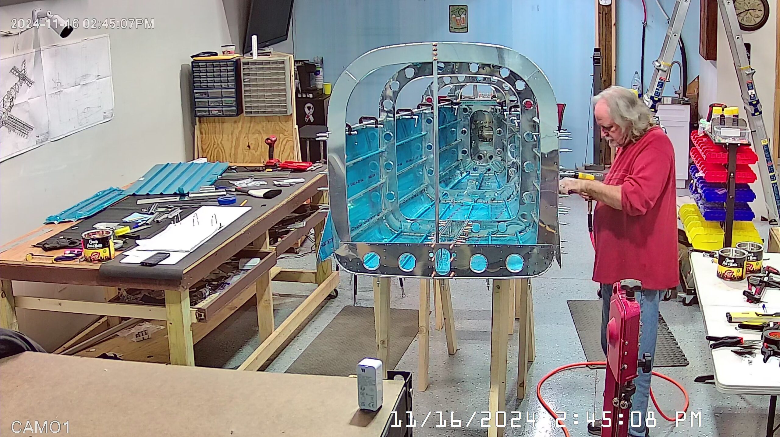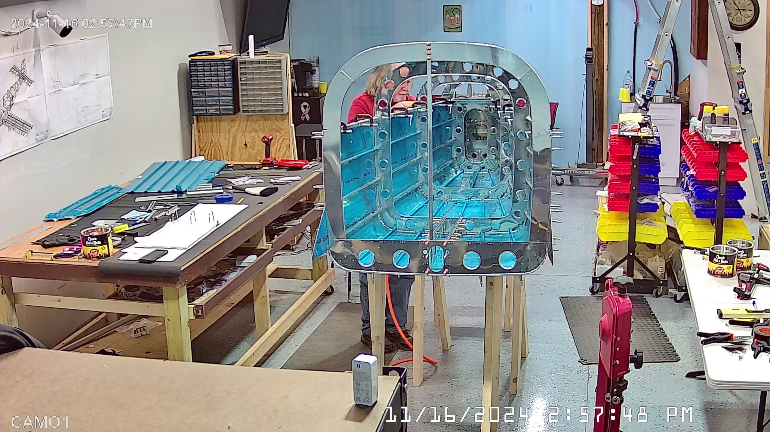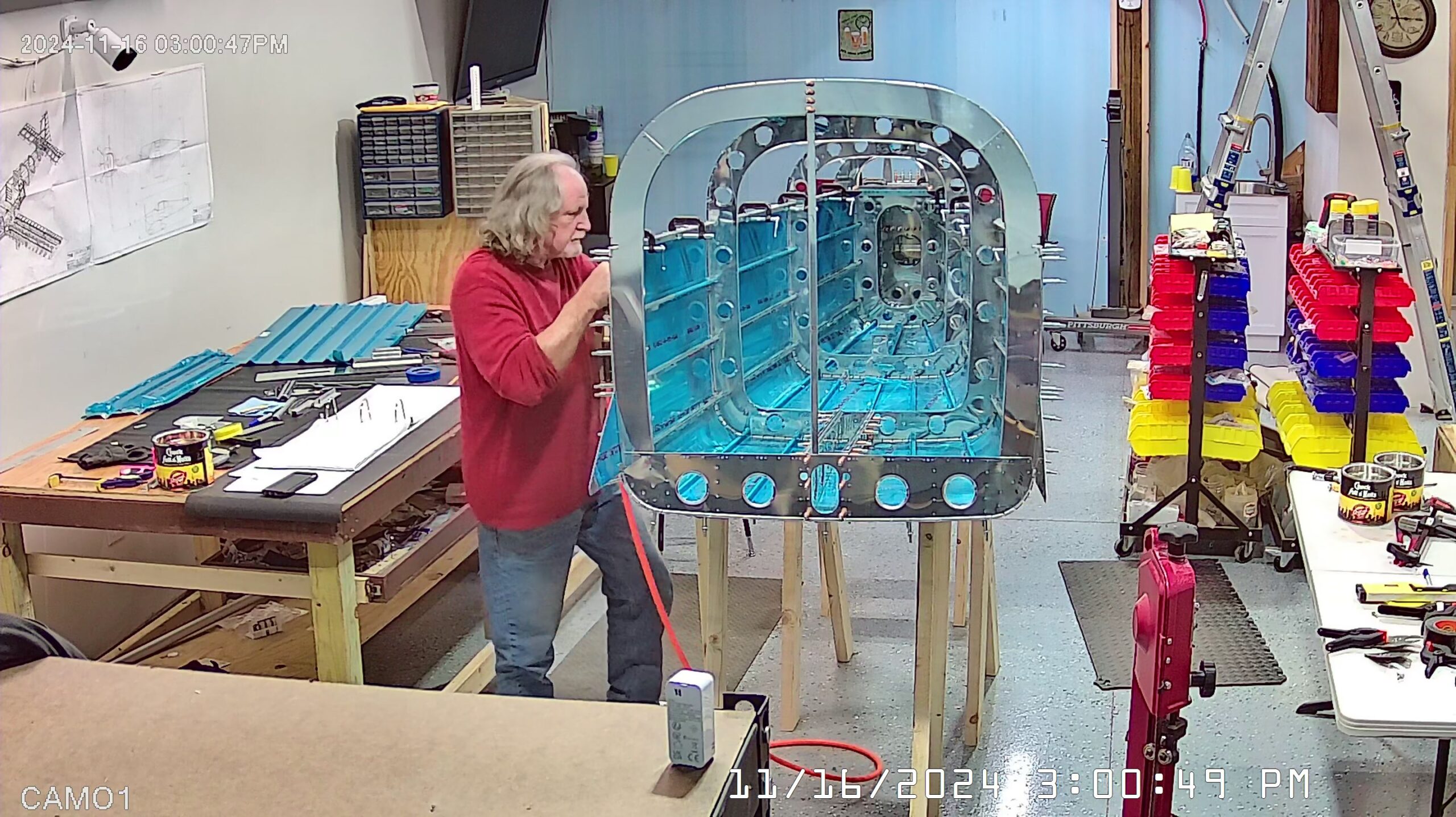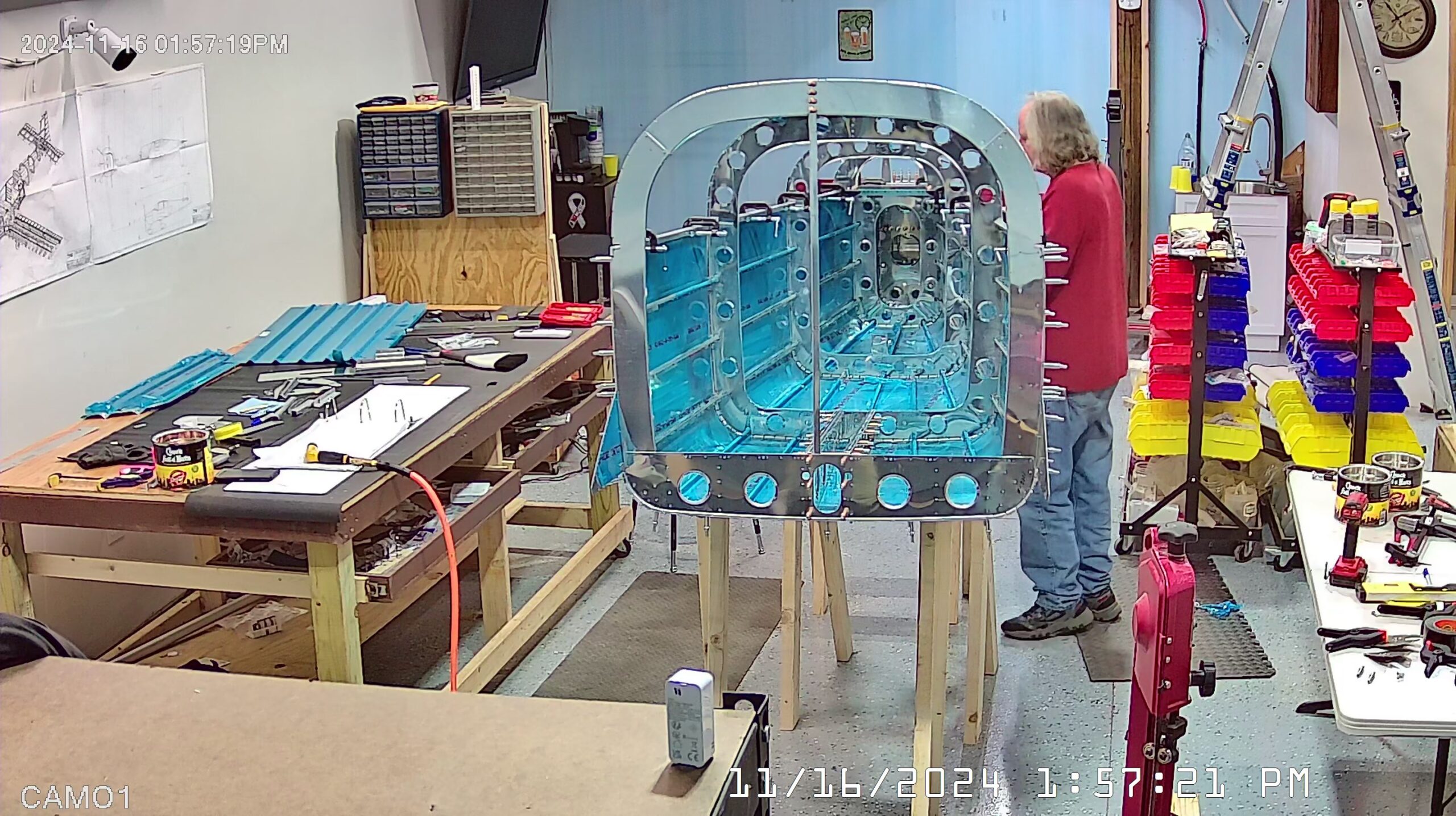 It’s hard to see the match drilling of the F-1032 longerons because of the location of the cameras, but I will move things around a bit for the next work session so that snapshots are more meaningful.