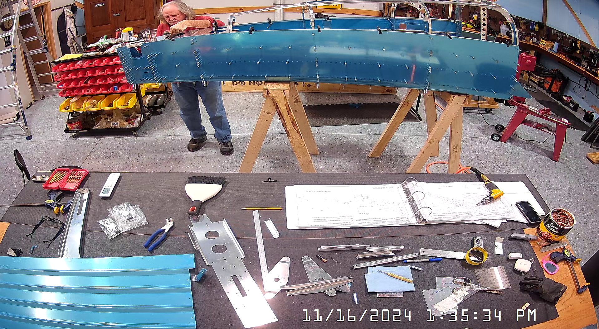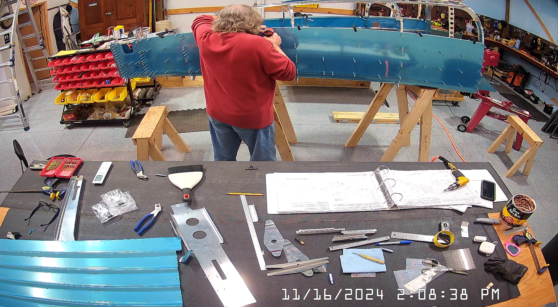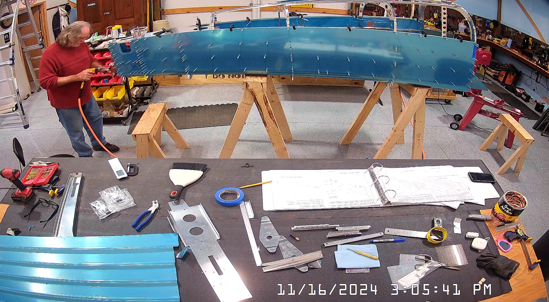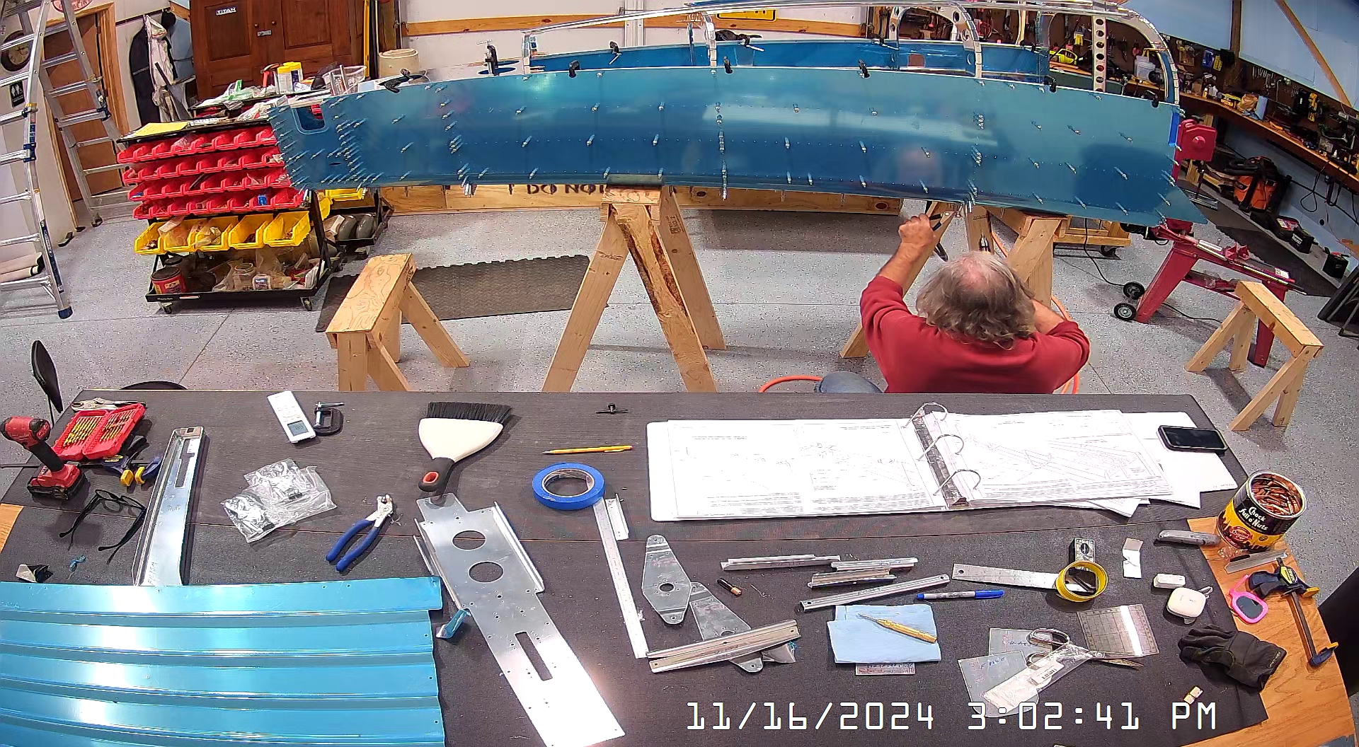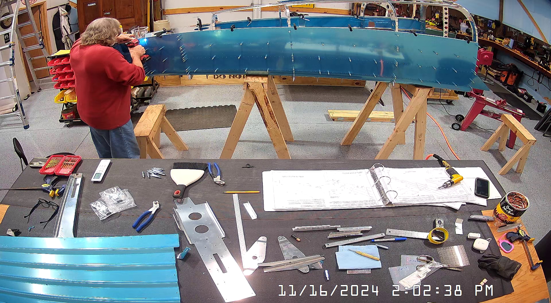 It’s hard to see the match drilling of the F-1032 longerons because of the location of the cameras, but I will move things around a bit for the next work session so that snapshots are more meaningful.