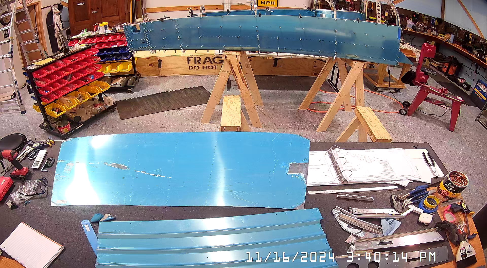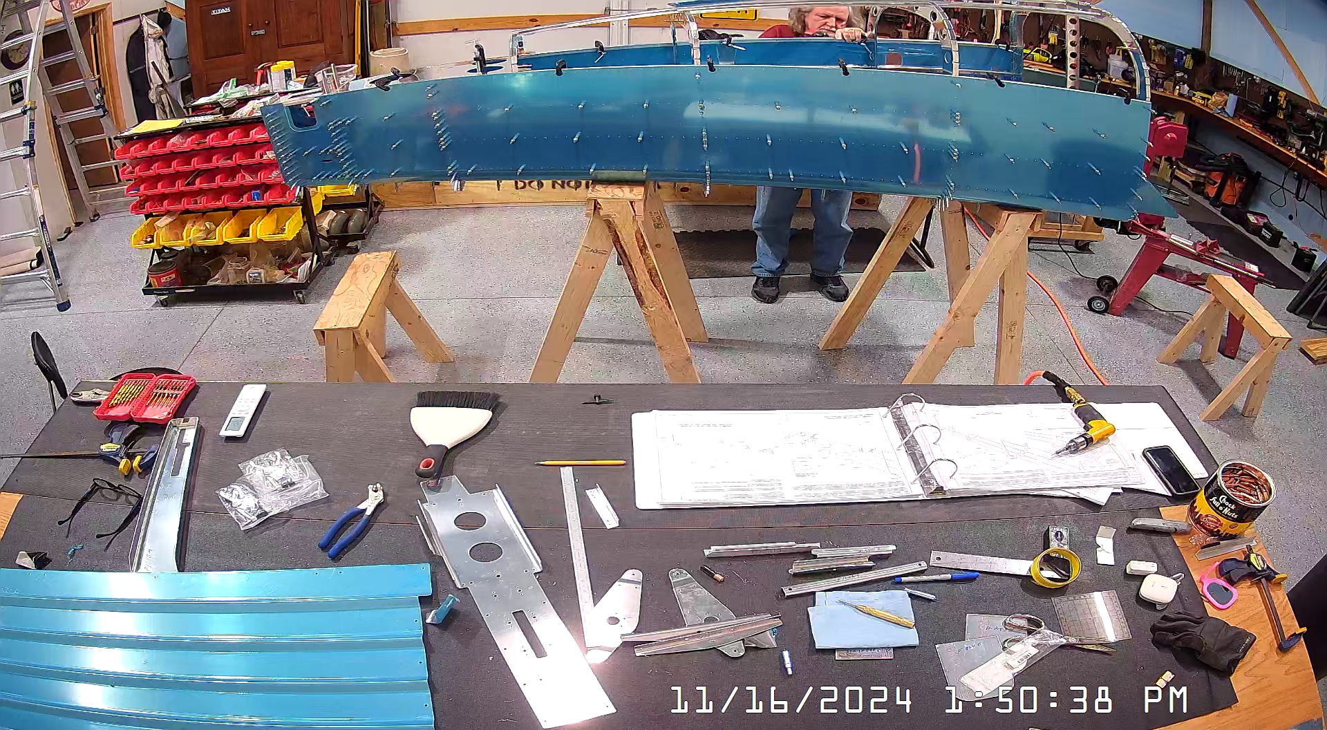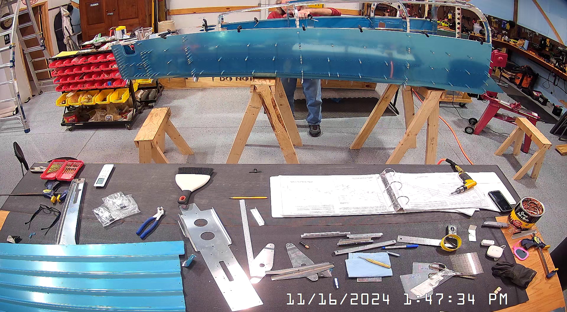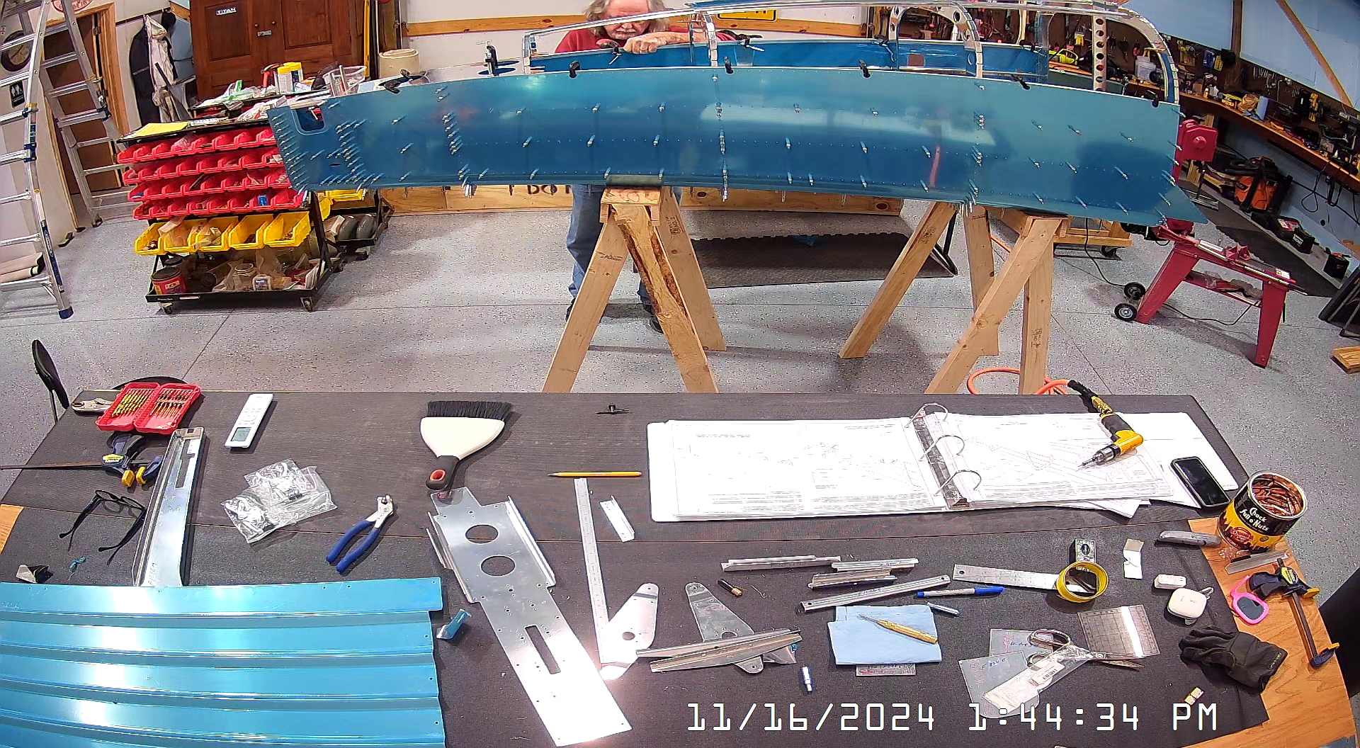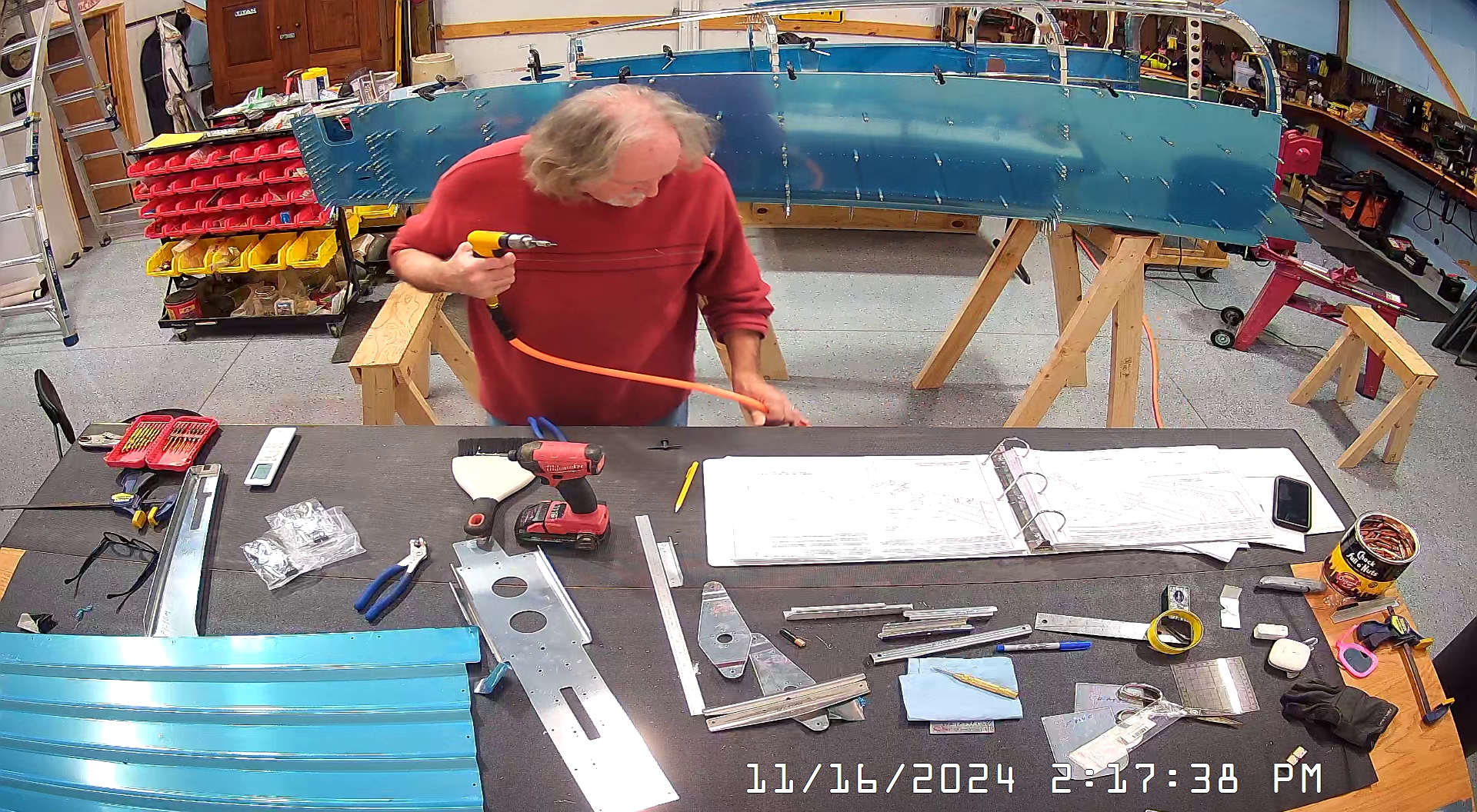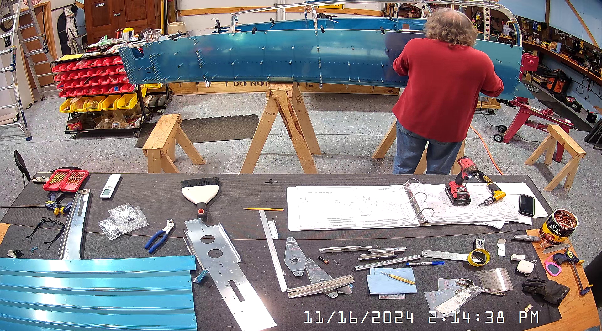 It’s hard to see the match drilling of the F-1032 longerons because of the location of the cameras, but I will move things around a bit for the next work session so that snapshots are more meaningful.