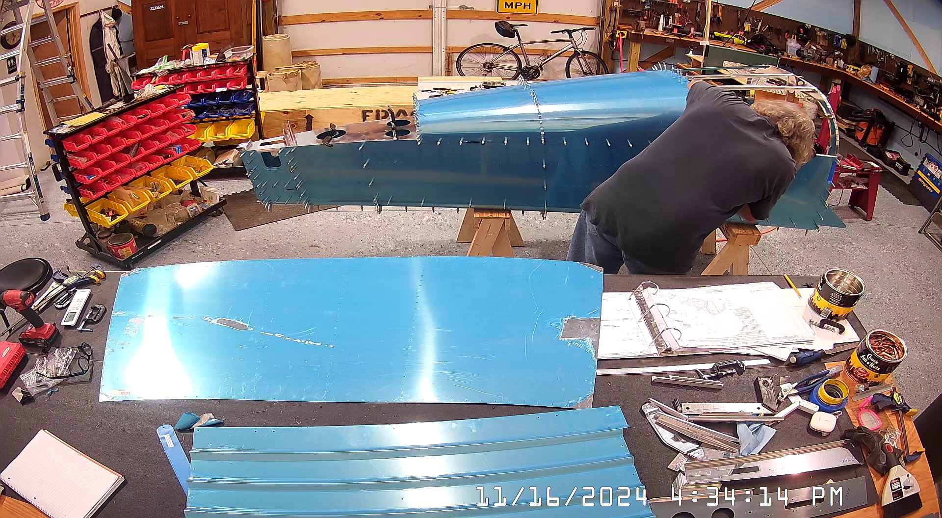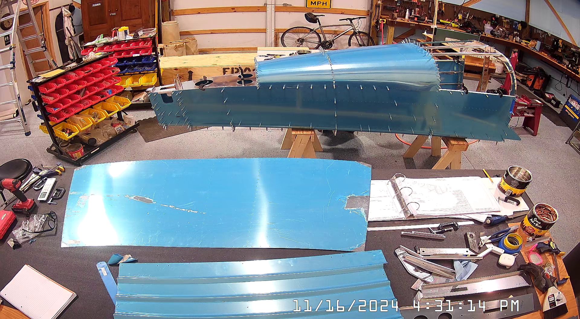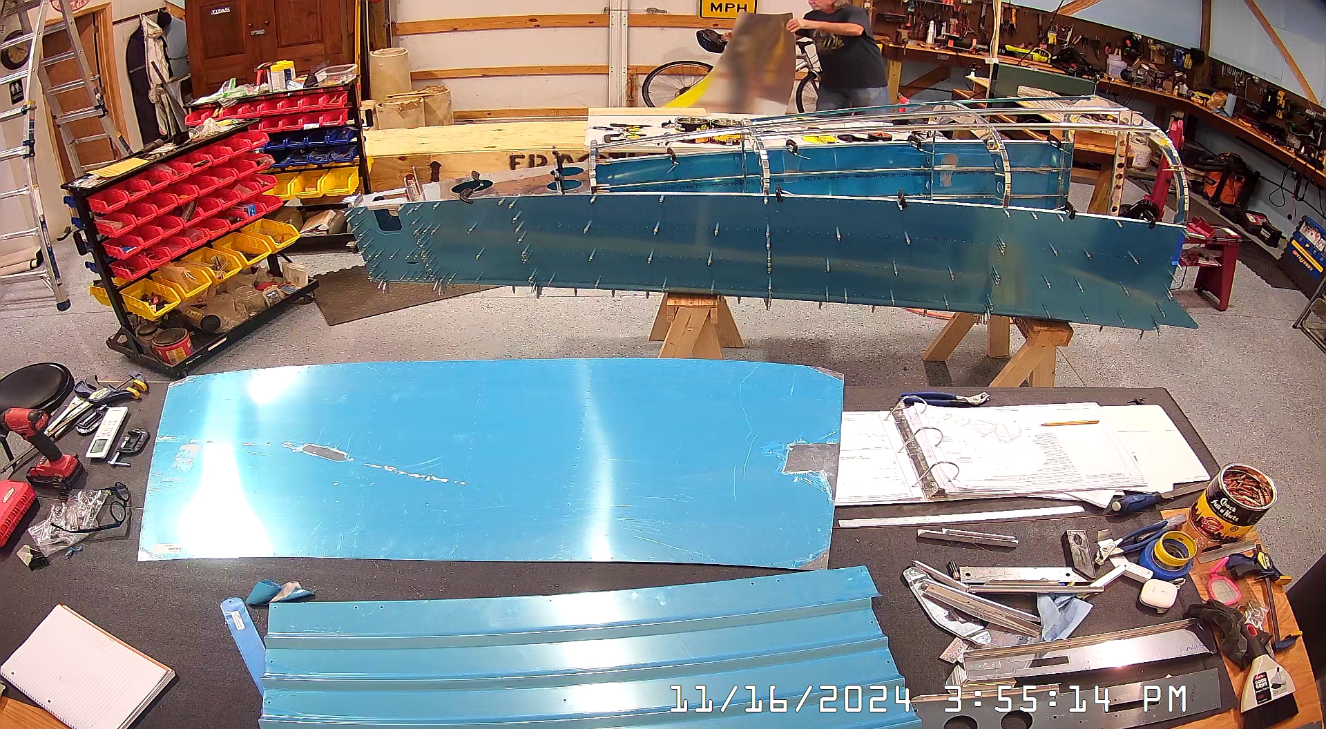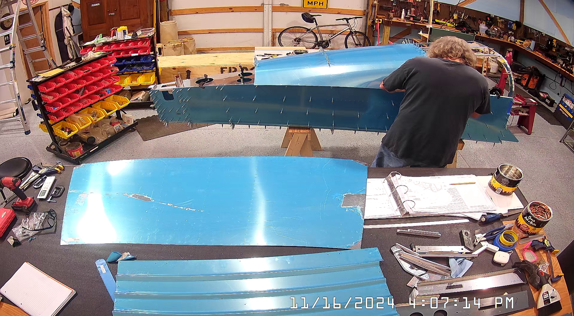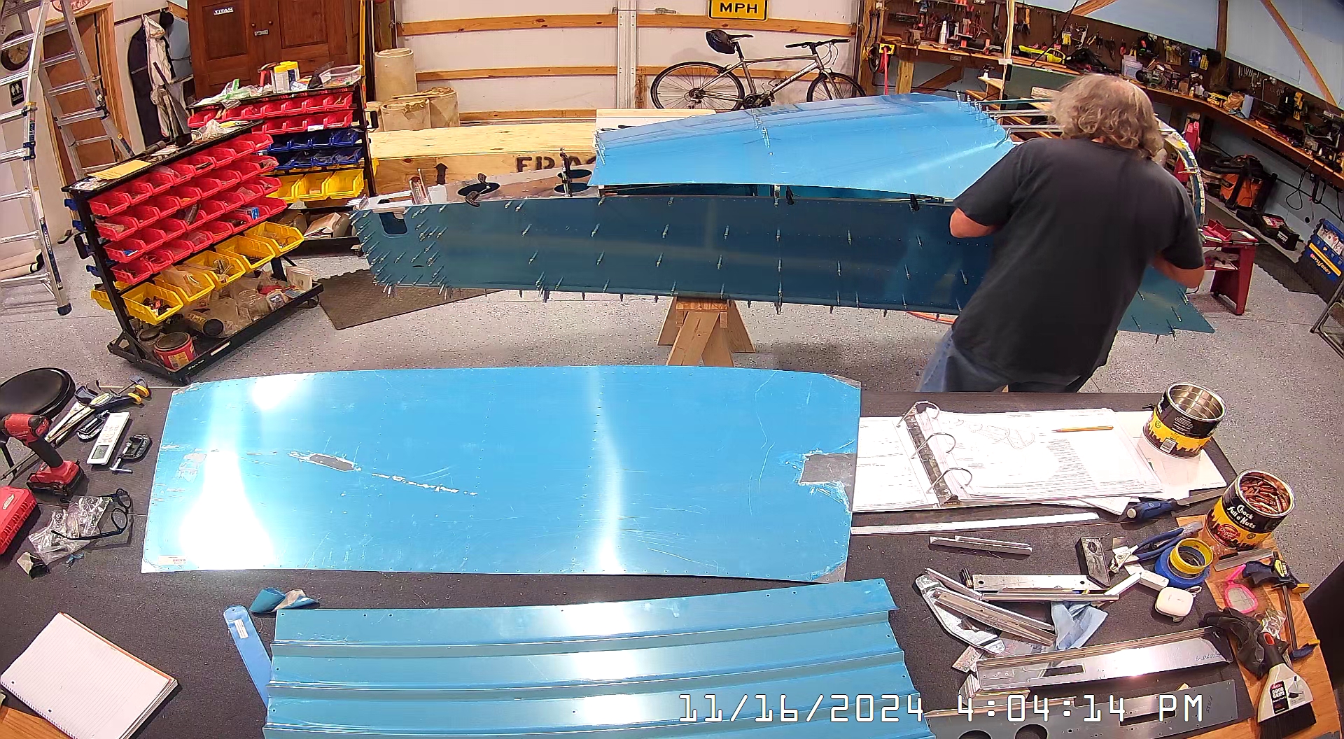 It’s hard to see the match drilling of the F-1032 longerons because of the location of the cameras, but I will move things around a bit for the next work session so that snapshots are more meaningful.