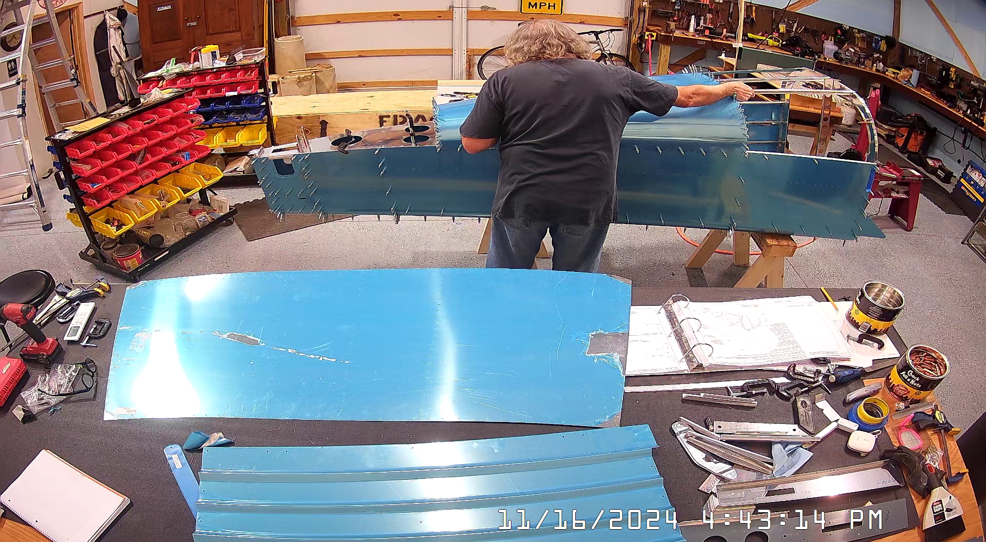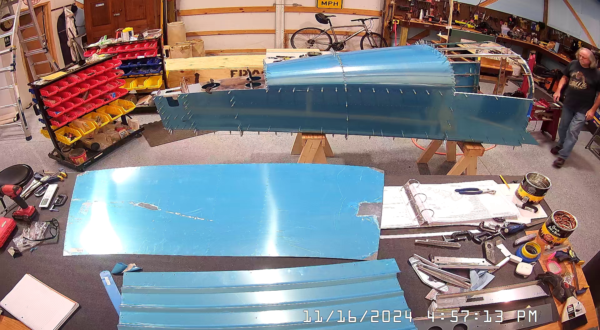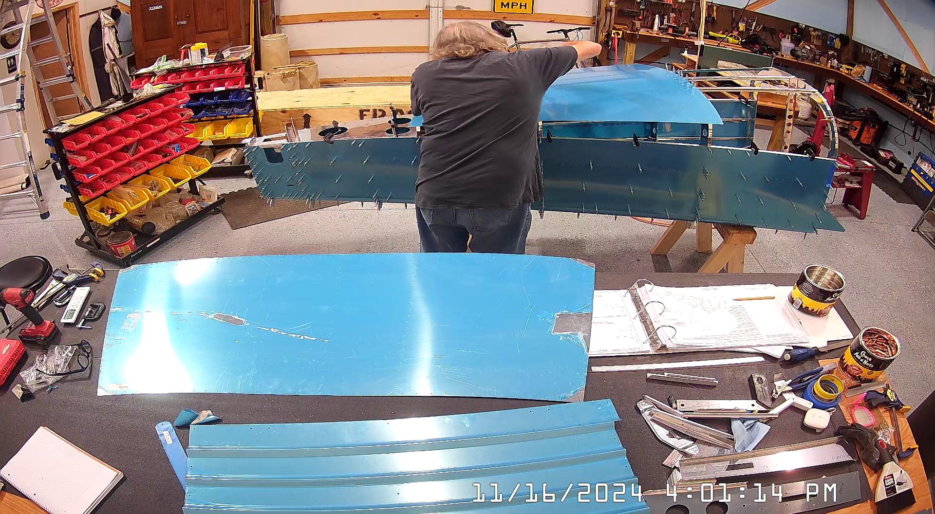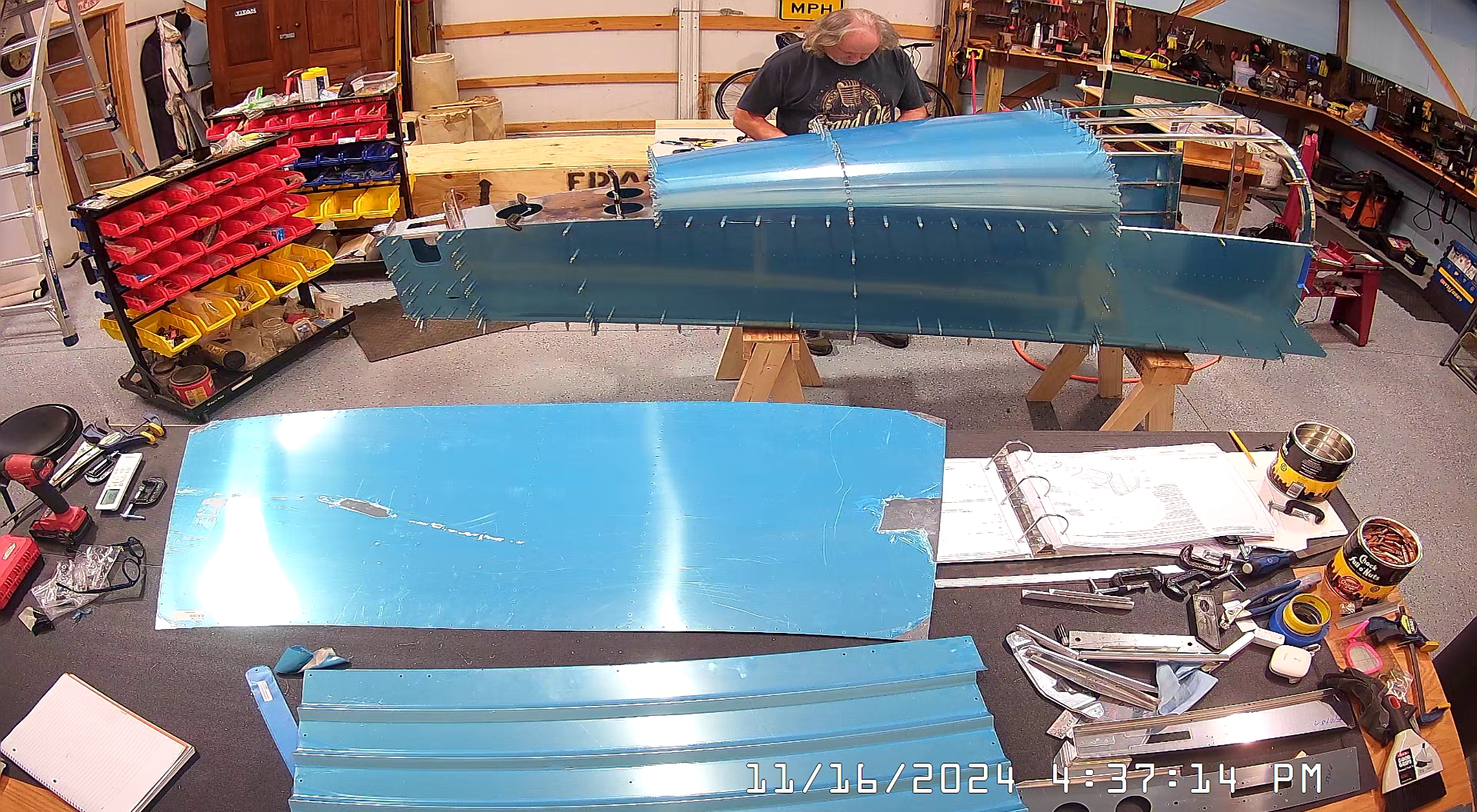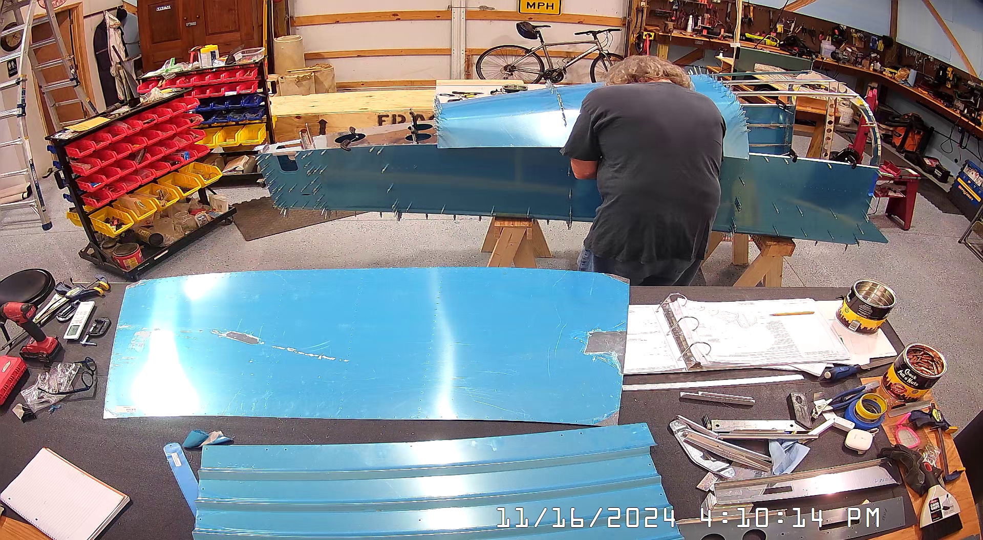 It’s hard to see the match drilling of the F-1032 longerons because of the location of the cameras, but I will move things around a bit for the next work session so that snapshots are more meaningful.