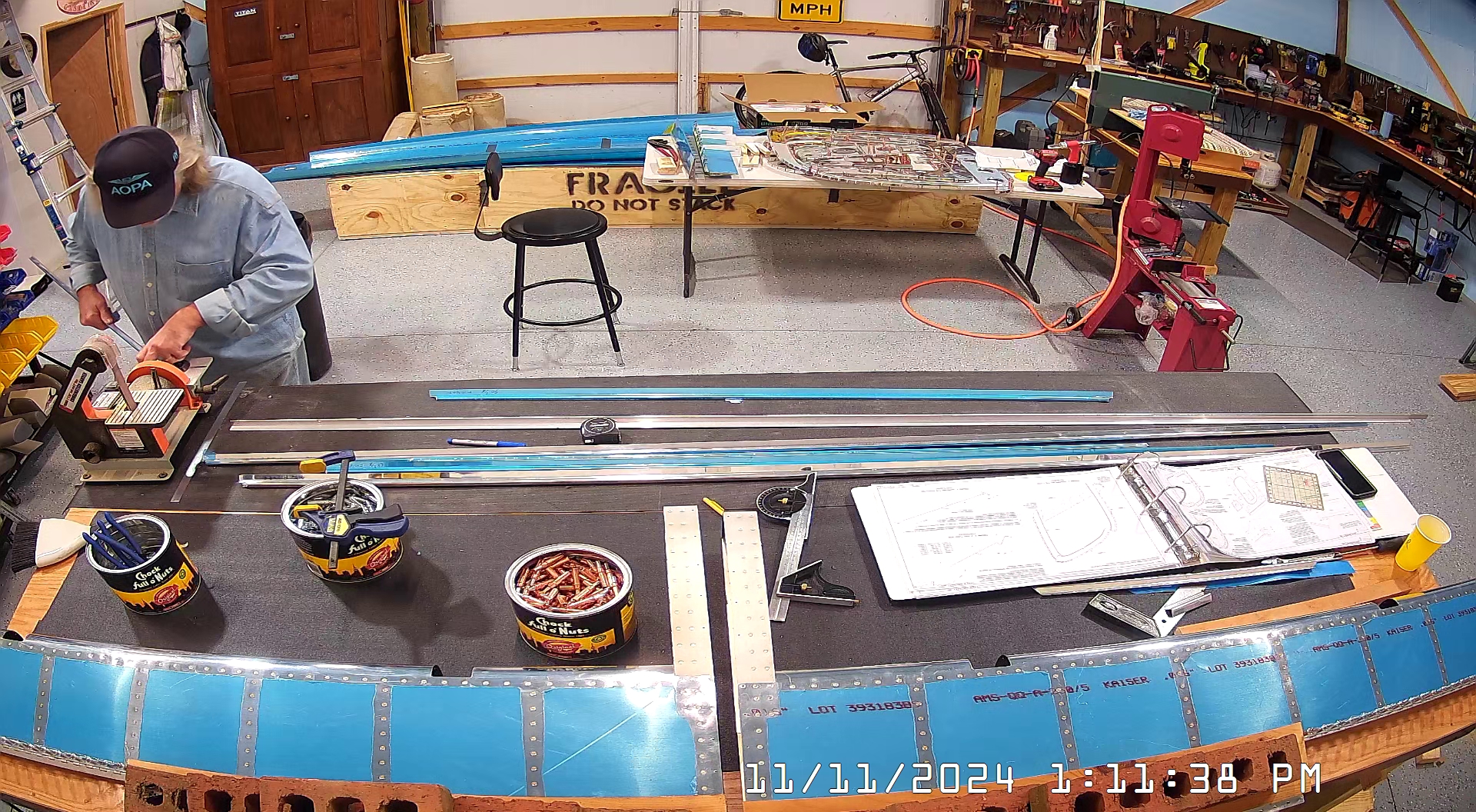 I wanted to review all of the F-1047(A-G) stiffeners, make sure the lengths were as specified, and then make sure the 45° angle was correct at each end. I used my table disk sander to finalize each piece as I have now made a habit of cutting proud and then sanding to the final length. This also helps with the deburring.