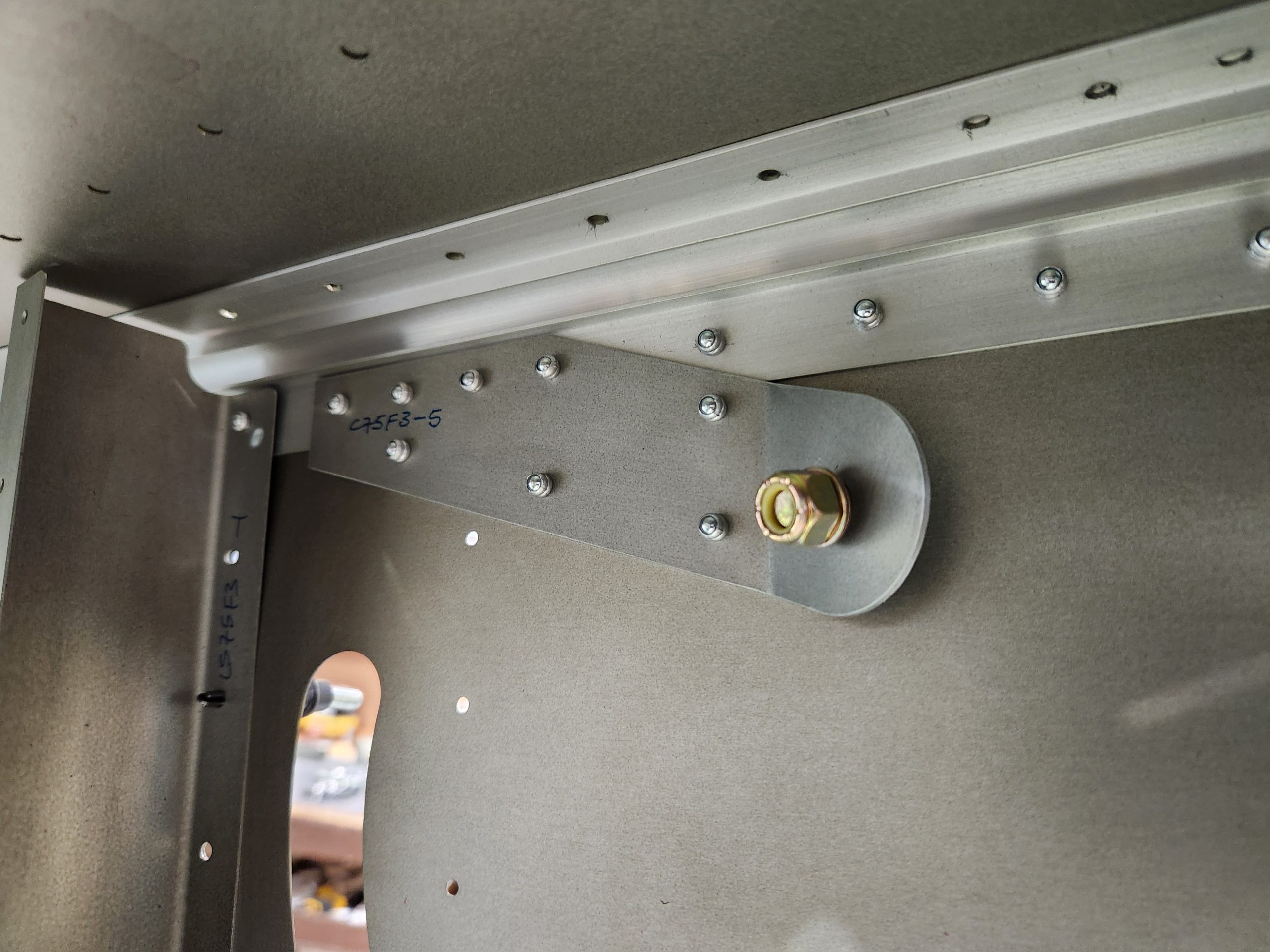 I had also previously received the additional AN5 bolts, washers and nuts that I needed for the shoulder harness brackets so was able to complete the attachment of those brackets per FR-08.