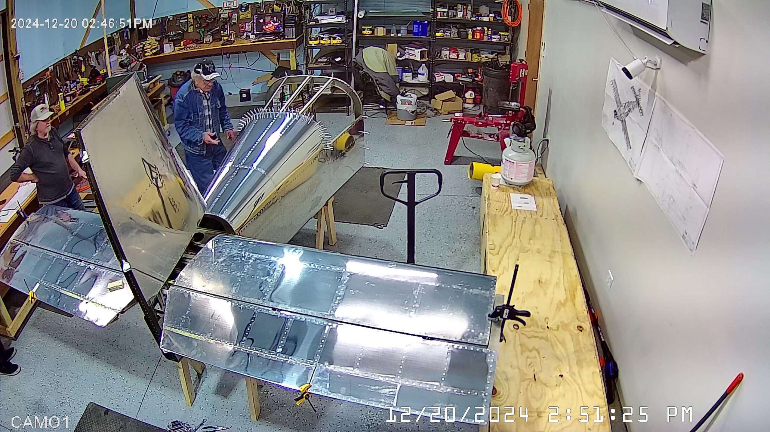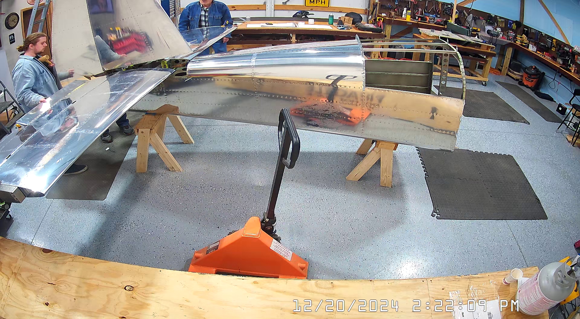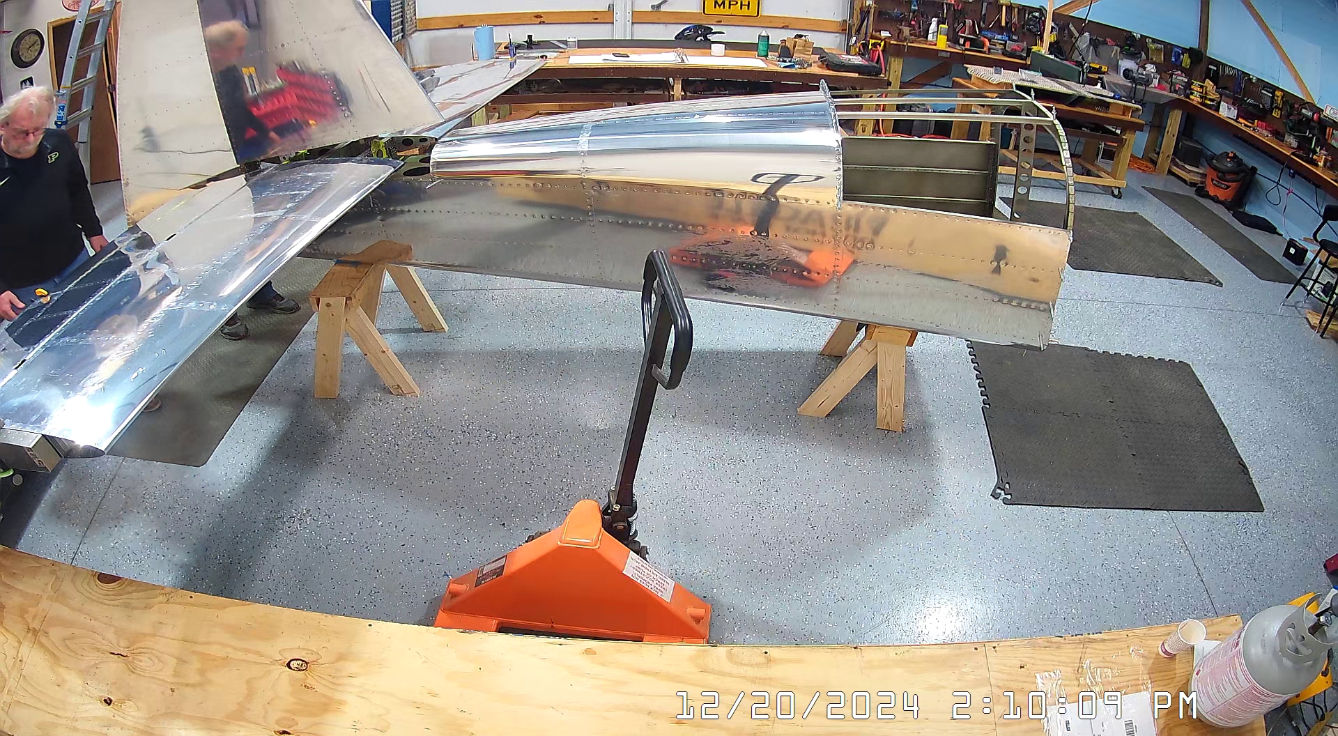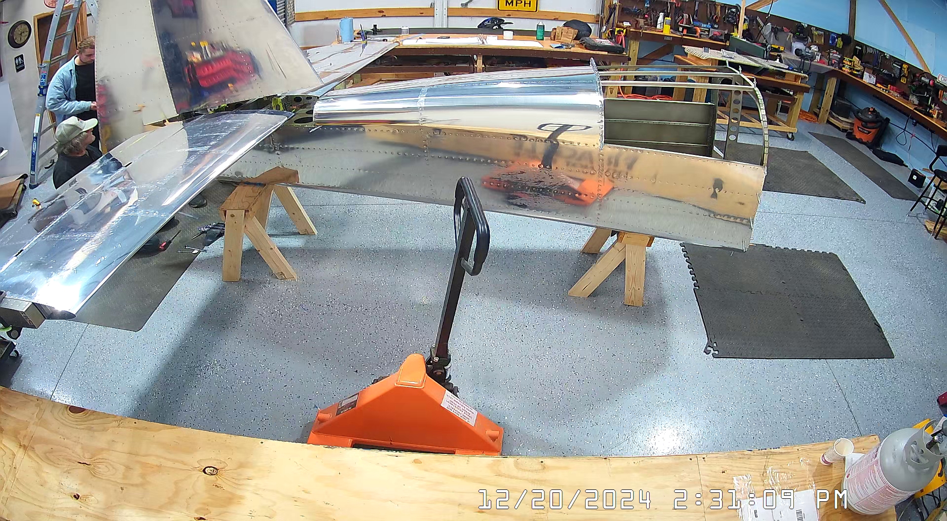 Today we actually began in the workshop pretty early, 7:30 a.m., because I had purchased a hoist / winch so that I could suspend the empennage from the roof of the workshop, once it is completed, so that it is not in the way of building the Zenith 750 SD. I had also rented a scissor lift to facilitate this so most of the morning was actually spent installing the hoist and then returning the scissor lift to United Rentals in Spring Hill.