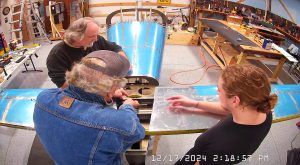 By now EJ and Ty had arrived and it was time to put the horizontal stabilizer back in place, permanently bolt it down, and attach the vertical stabilizer front attachment plate VS-1016 per step 4.
