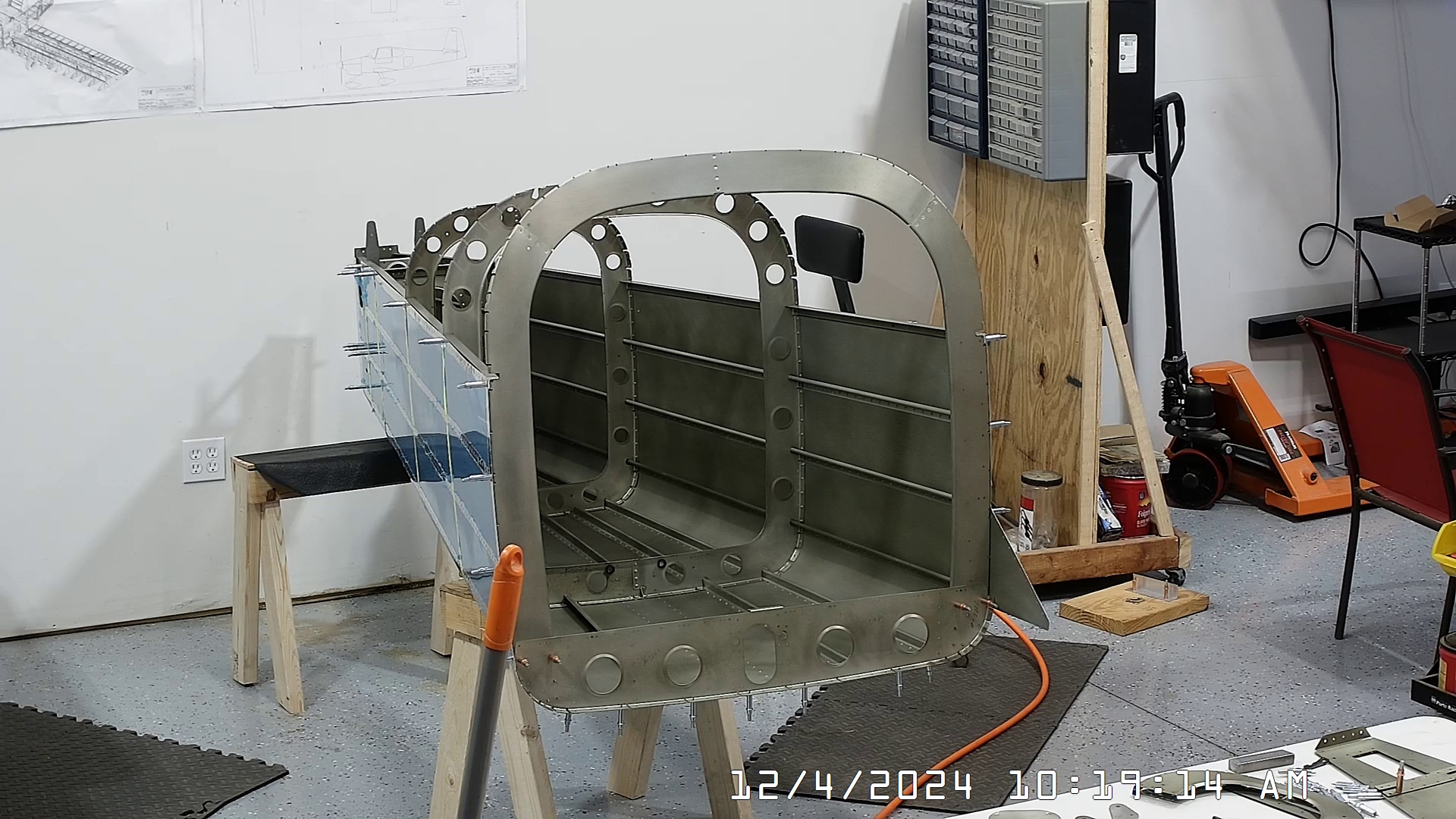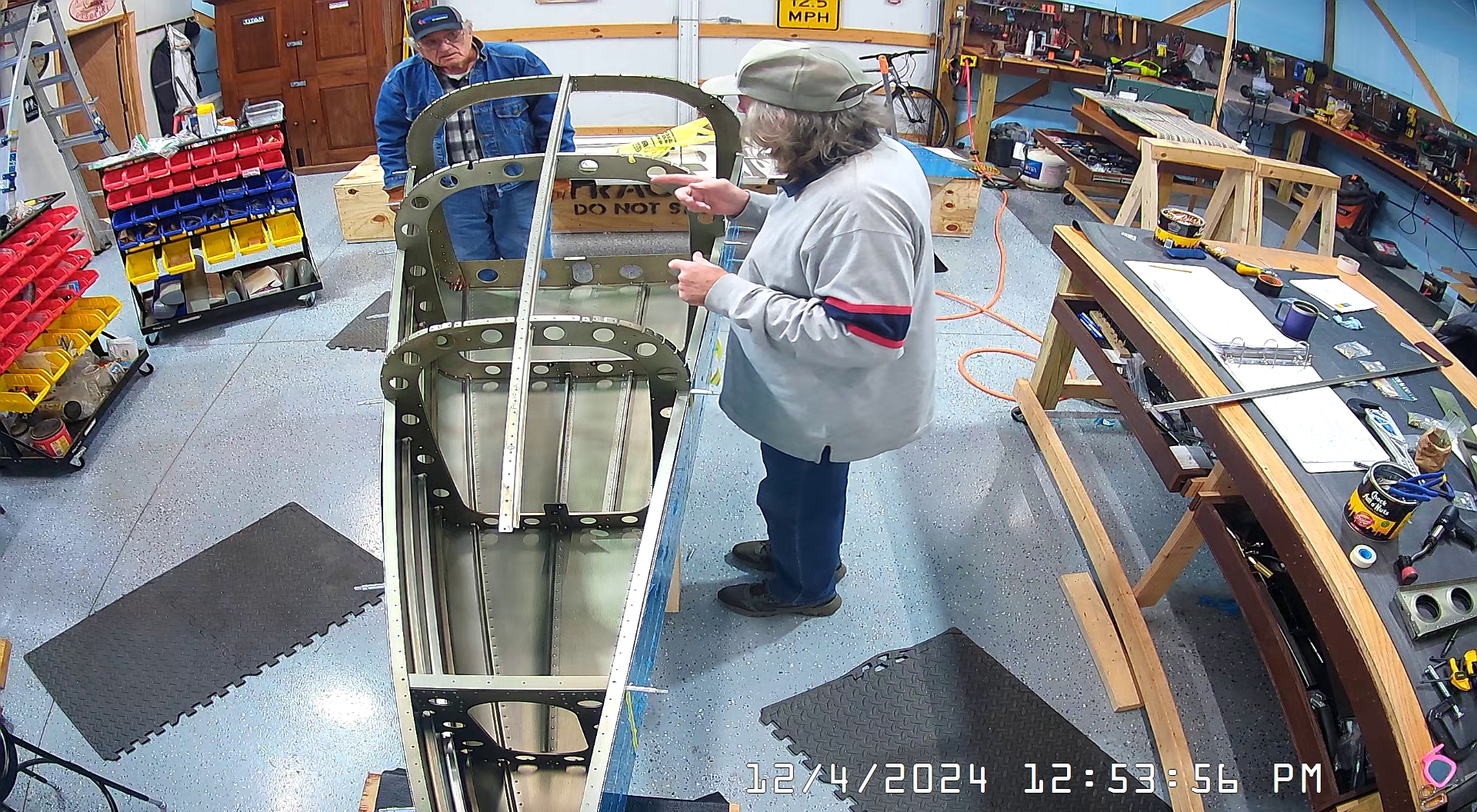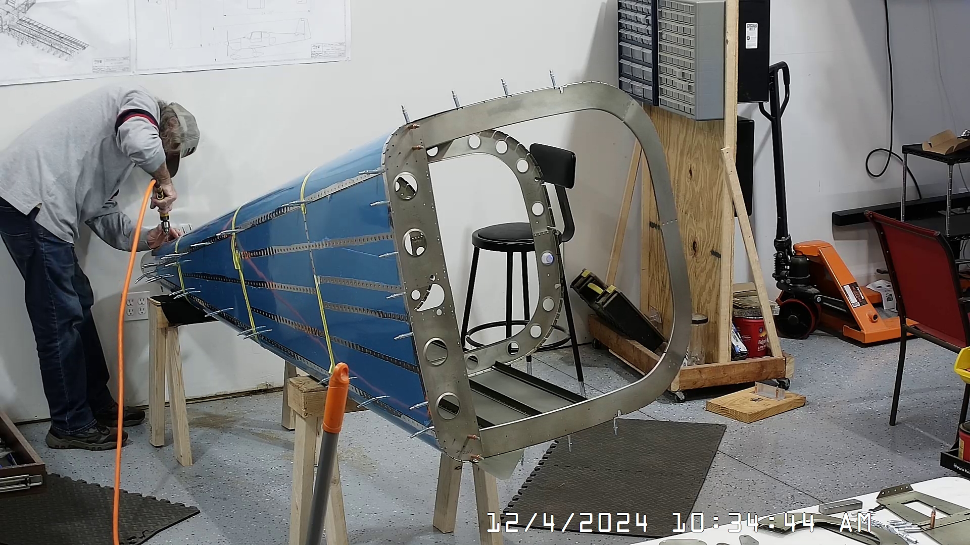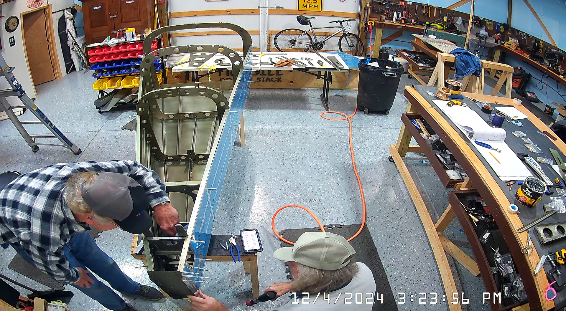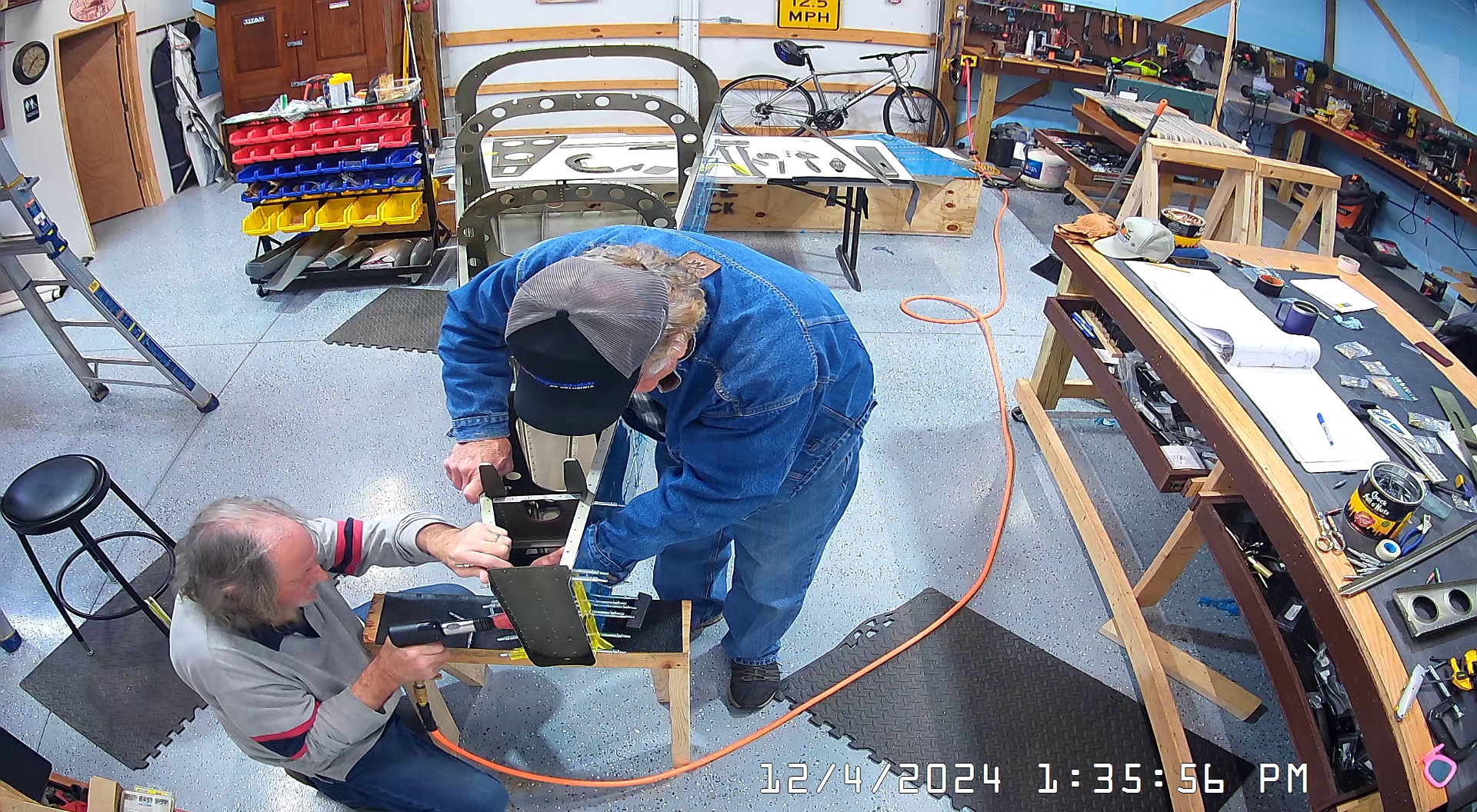 You will notice in some of the snapshots that we used the long bucking bar from Cleveland that is actually shaped for bucking inside spars at an angle. Using the end of the bar instead of the angled face pressed up against the rivet across the tailcone laid on its side made it a lot easier to buck.