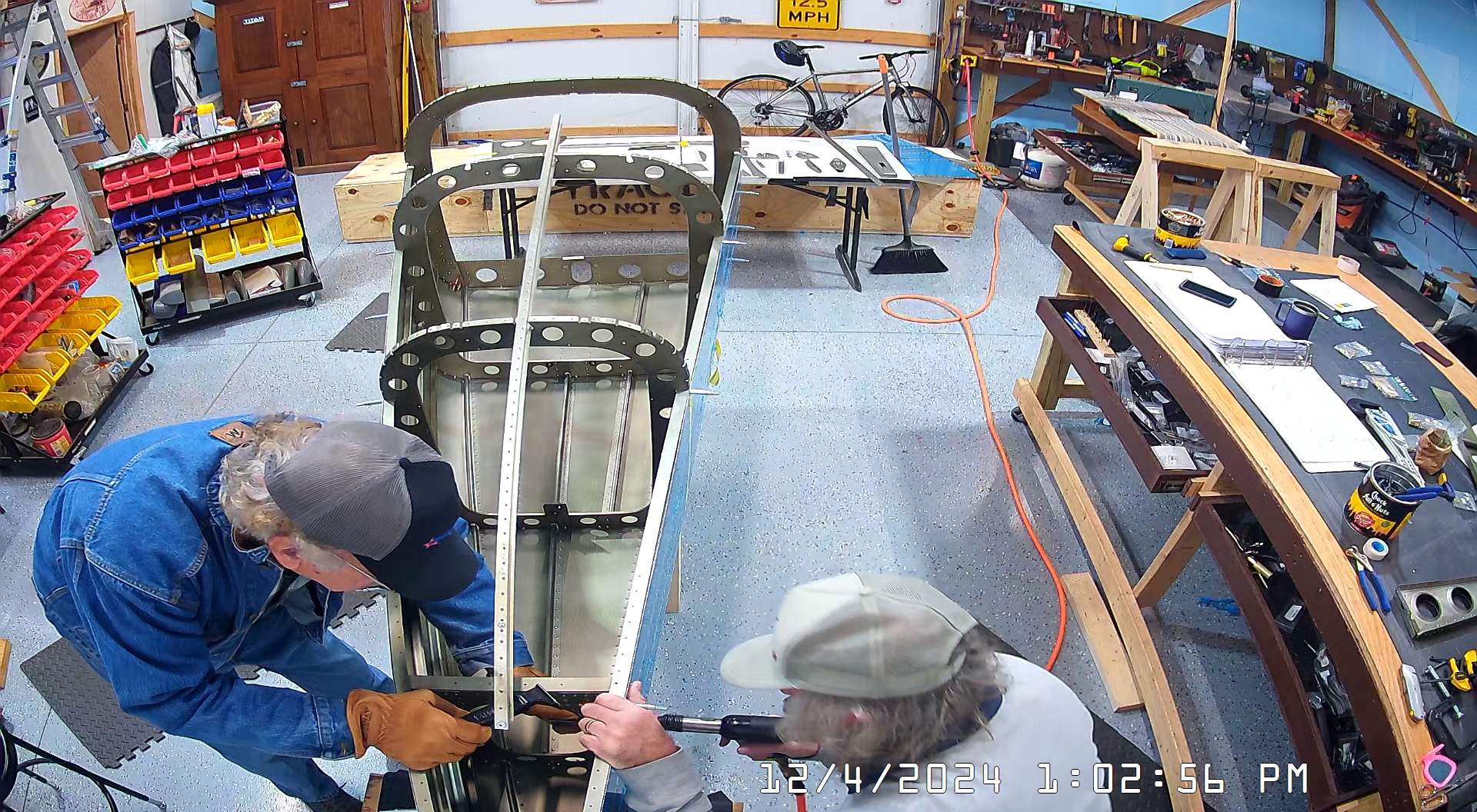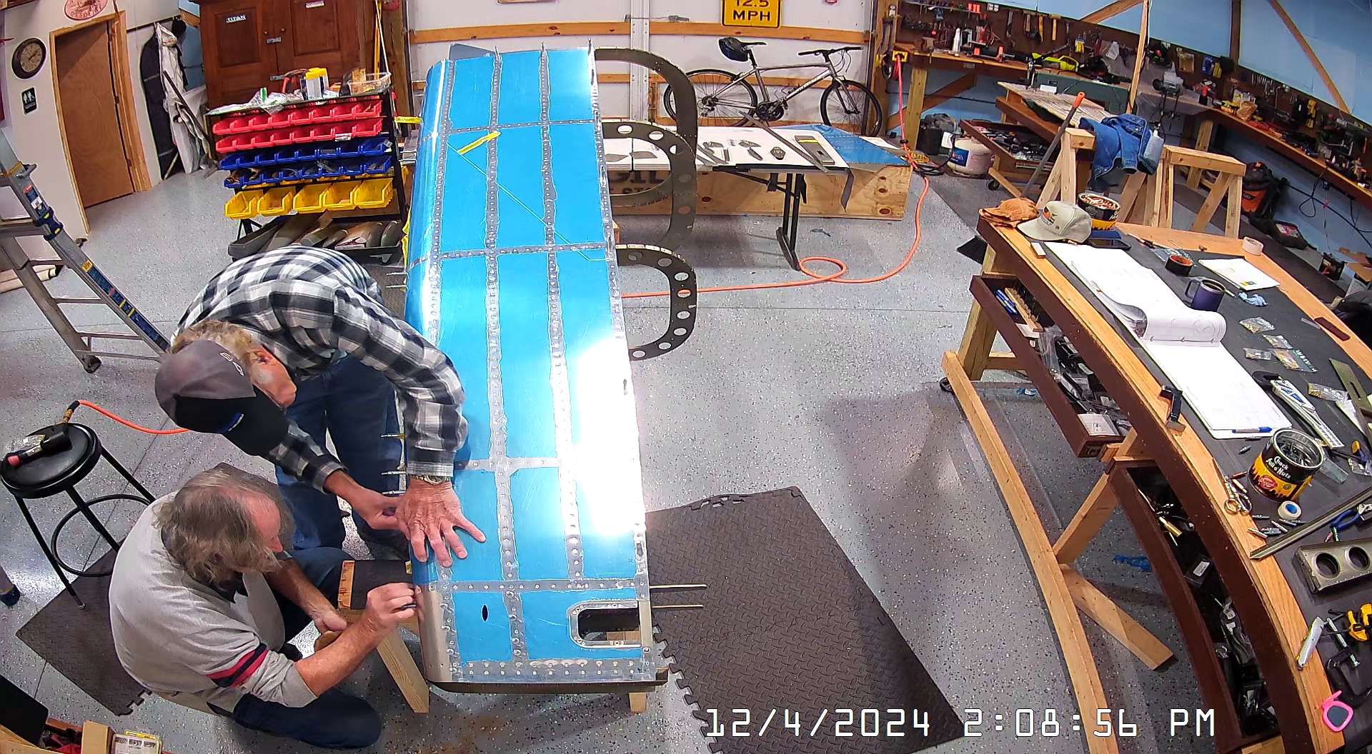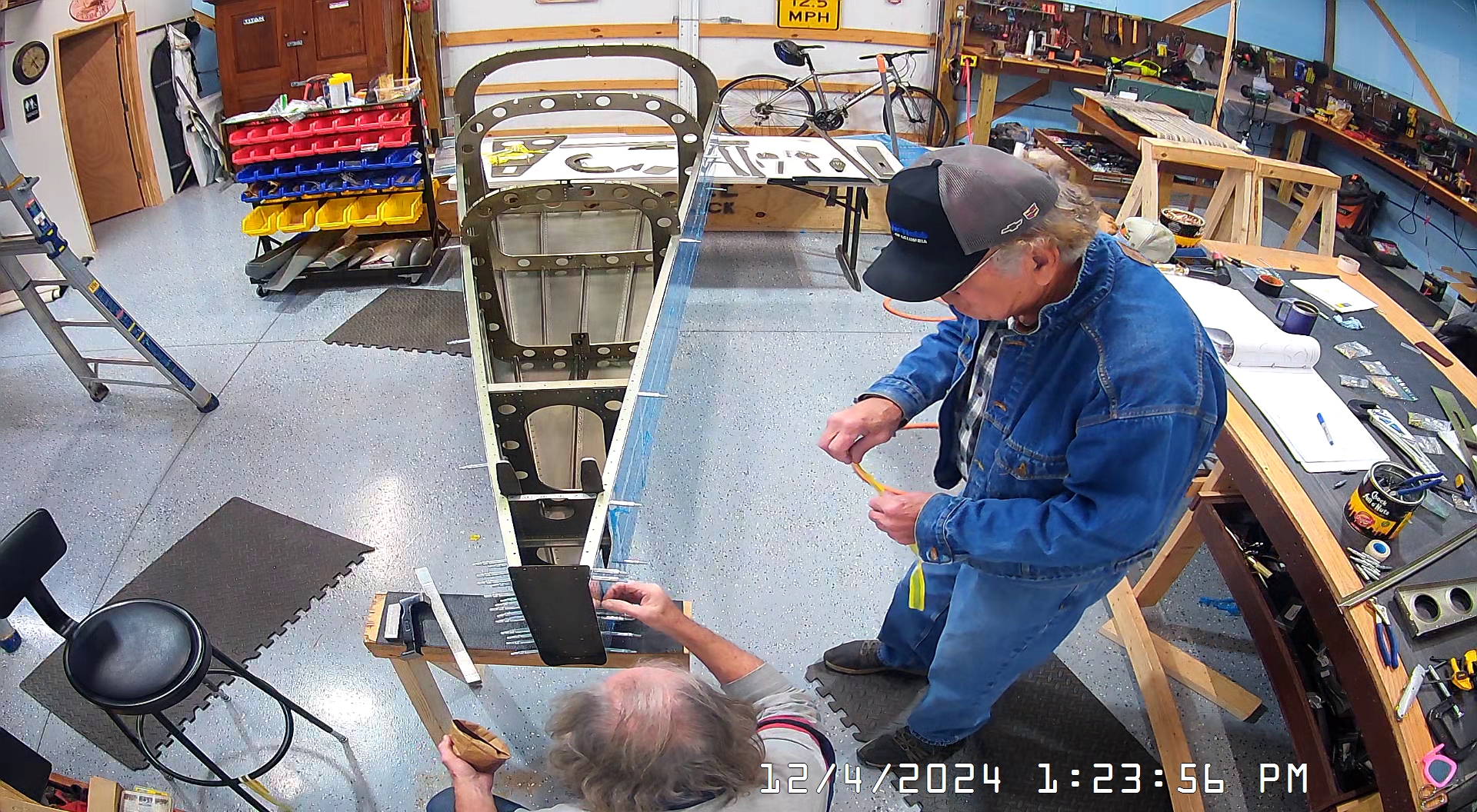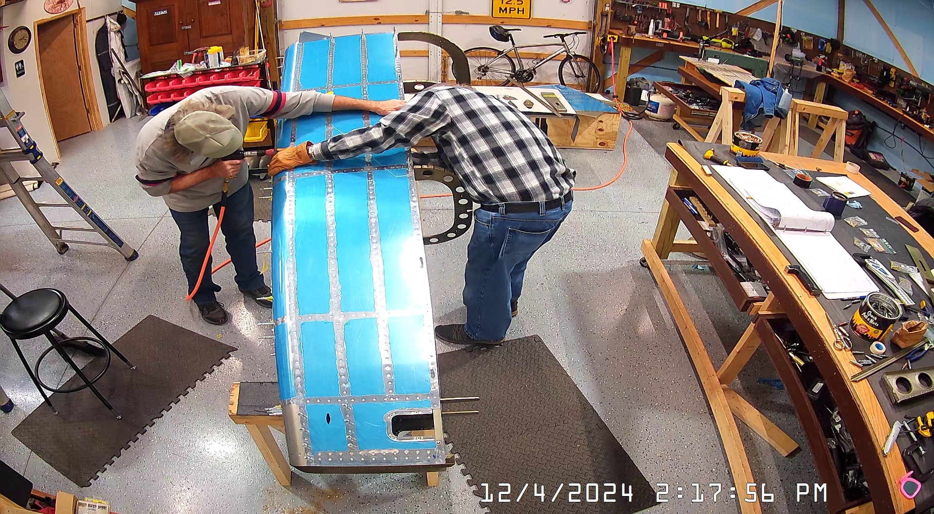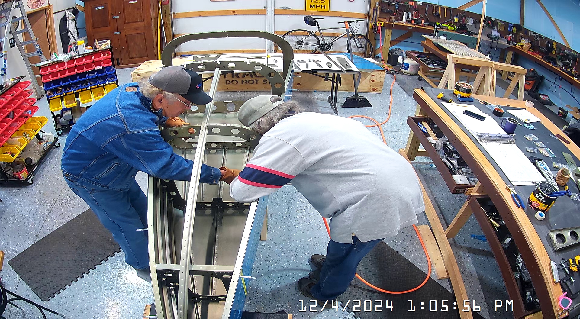 You will notice in some of the snapshots that we used the long bucking bar from Cleveland that is actually shaped for bucking inside spars at an angle. Using the end of the bar instead of the angled face pressed up against the rivet across the tailcone laid on its side made it a lot easier to buck.