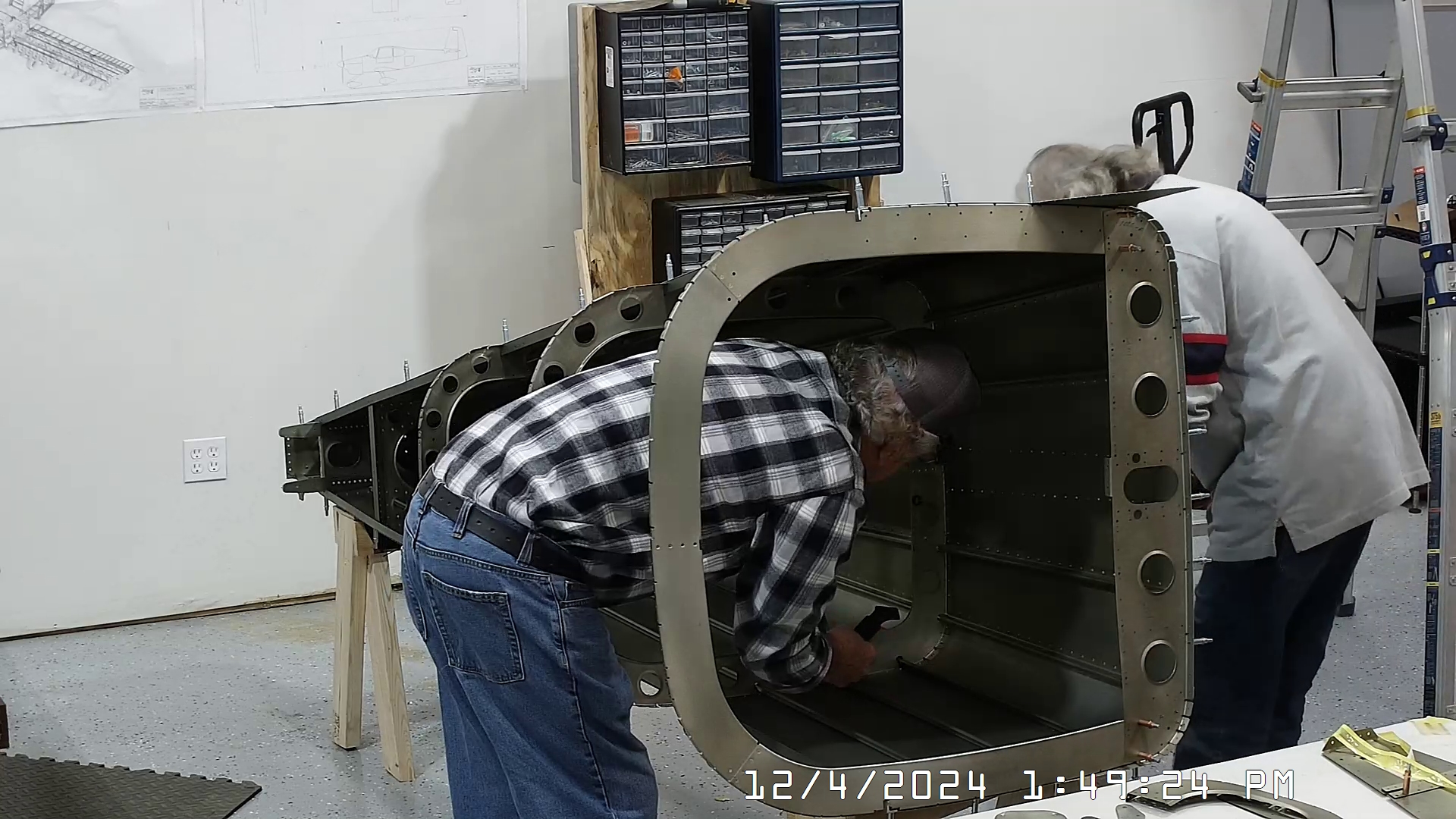 Continuing the assembly of the Vans RV-10 tailcone today consisted mainly of finishing the riveting of the side skins F-1073 and the bottom skin, putting some rivets in the F-1011, F-1055 left and right and the F-1012. This would be tough to do on your own without a bunch of screwups which is why I waited until EJ was available. It is practically impossible I think to rivet the bottom on your own.