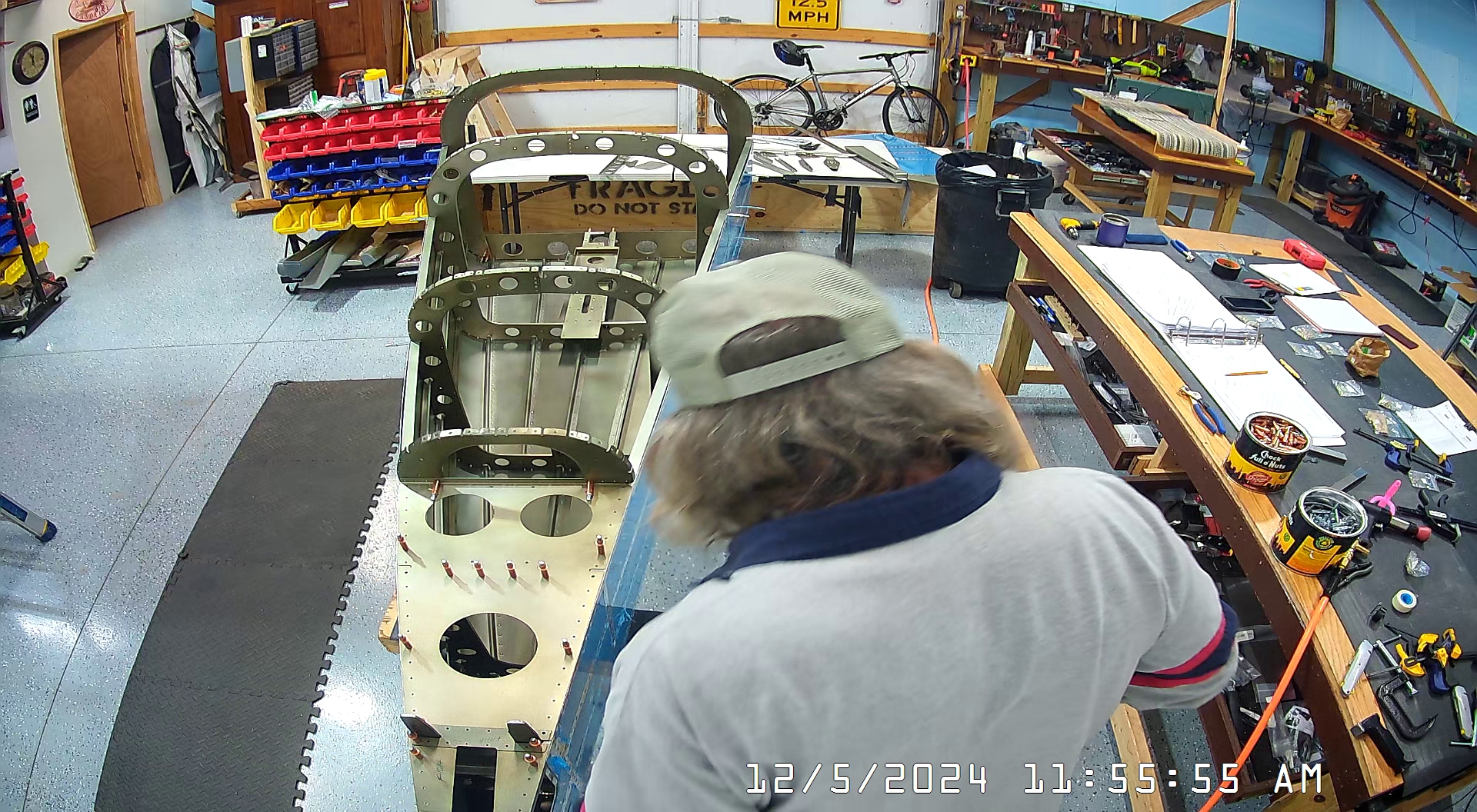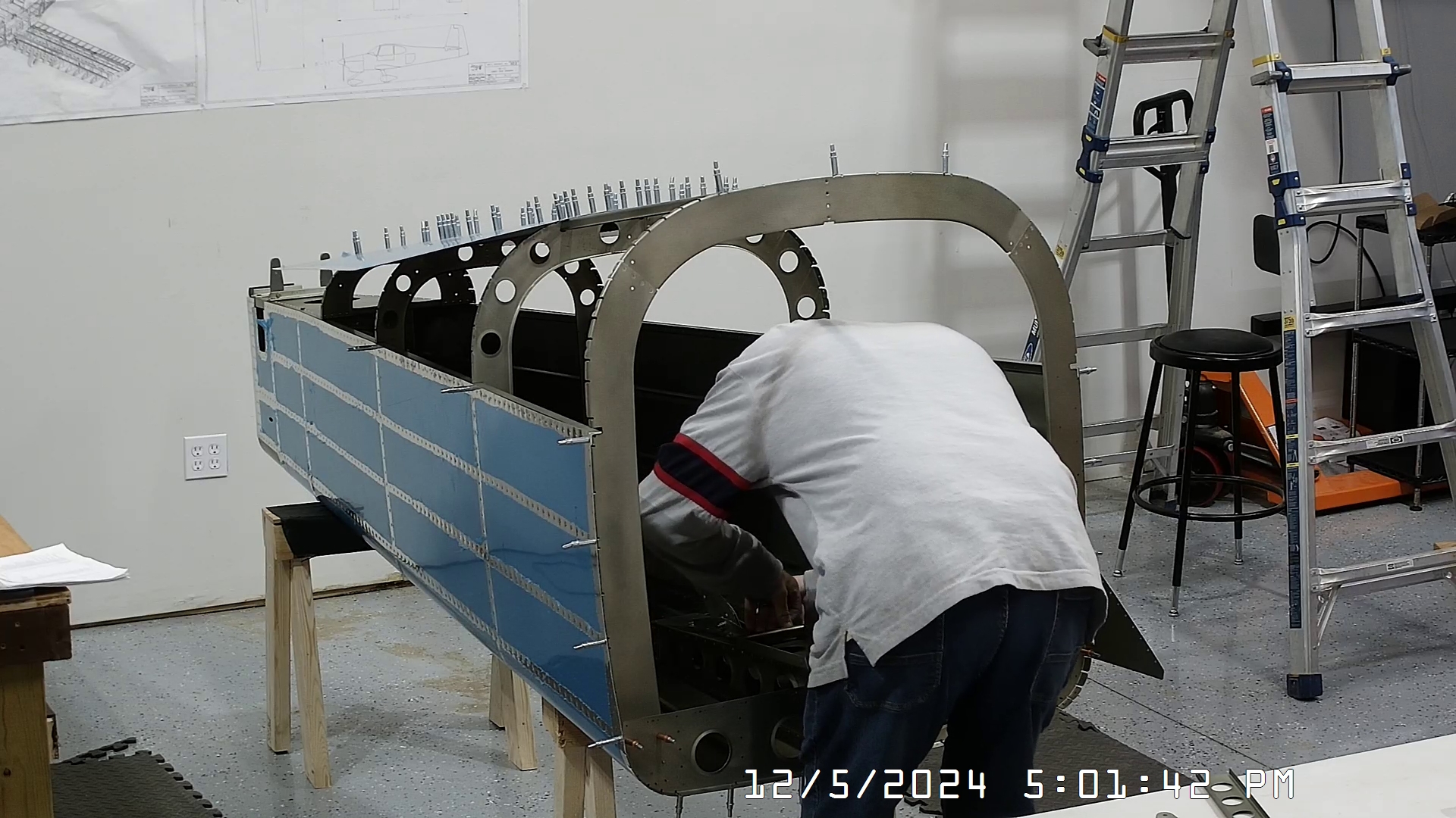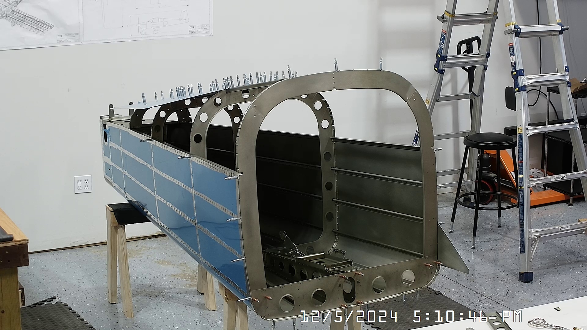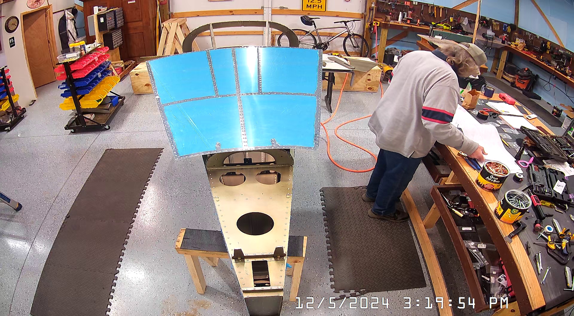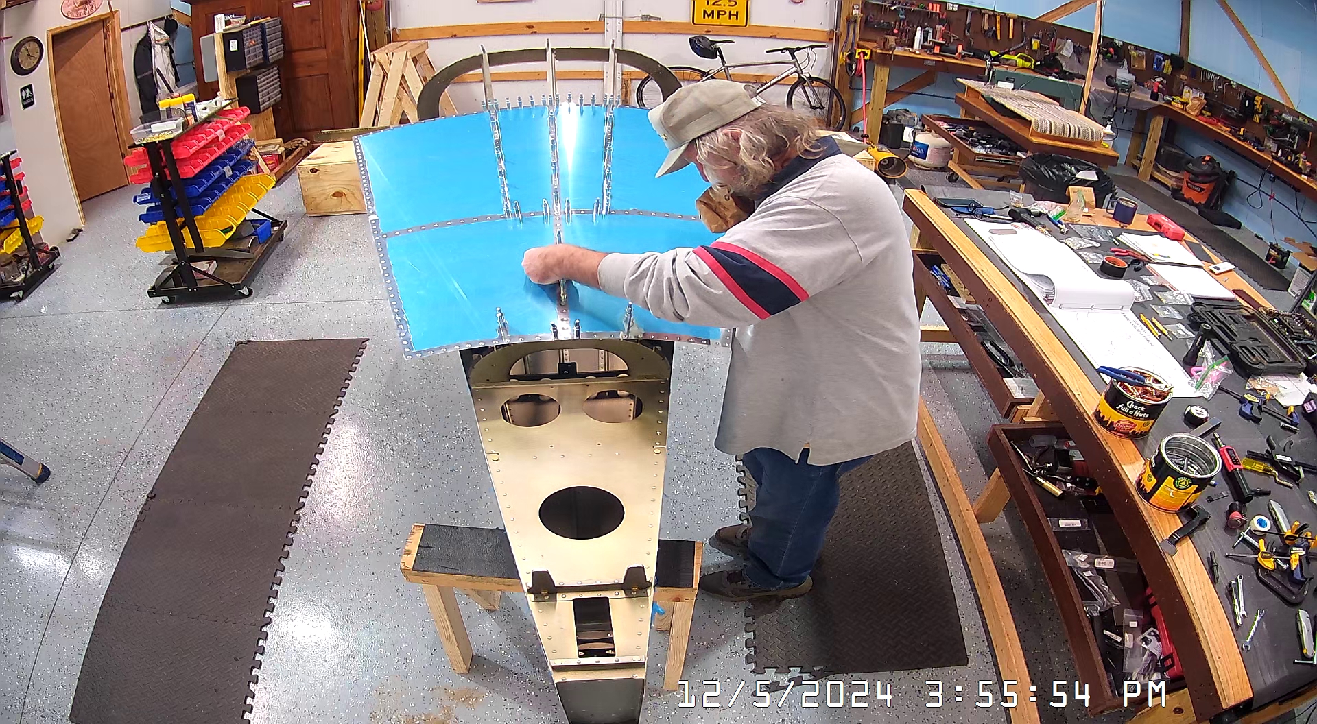 At the end of the day I placed the aft top skin on the frames with a couple of clecos and also had the bellcrank and battery mount installed per the instructions on page 10-23.