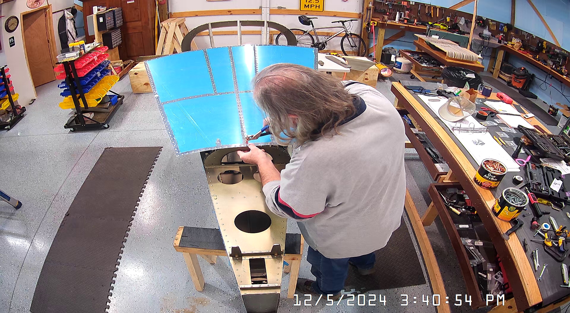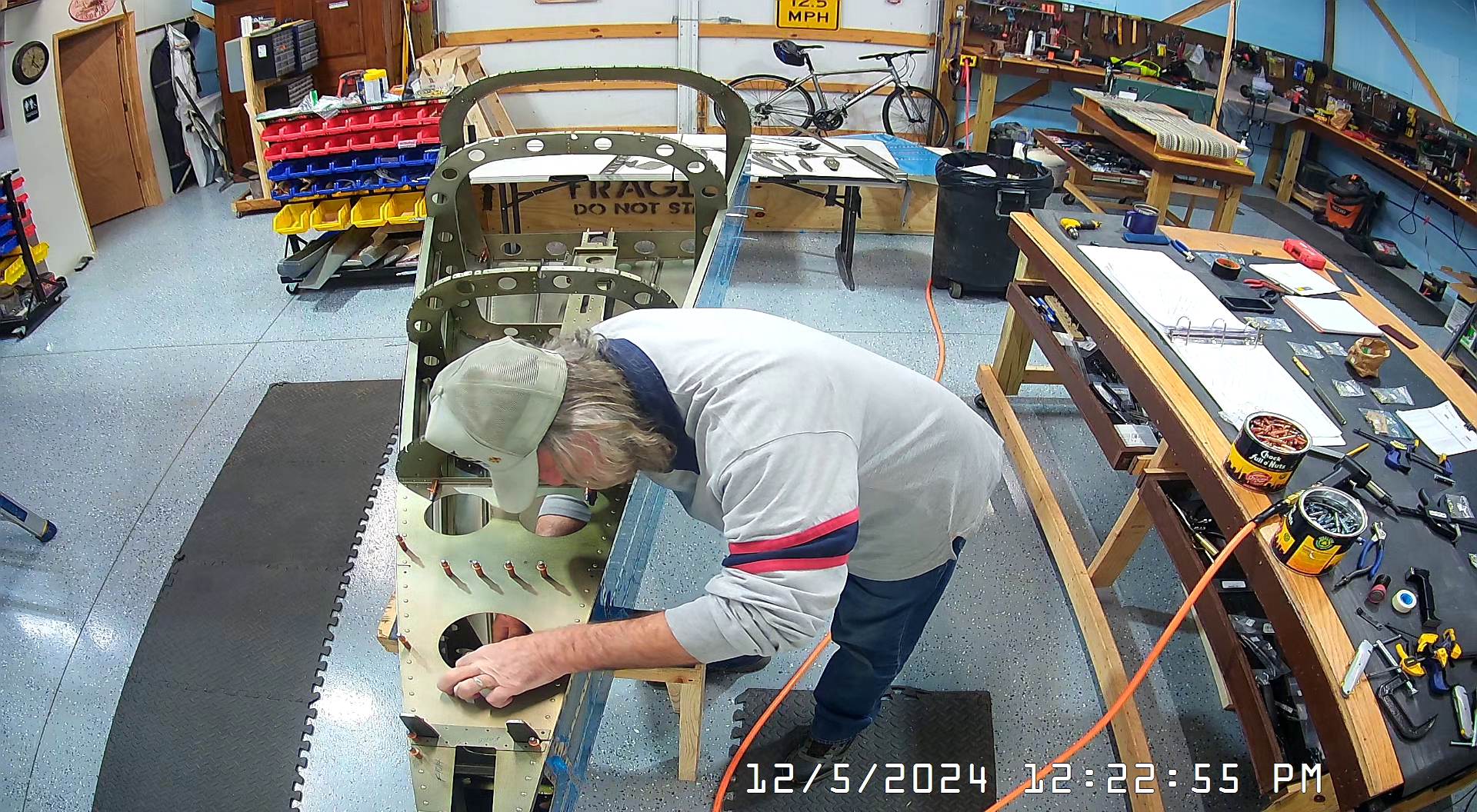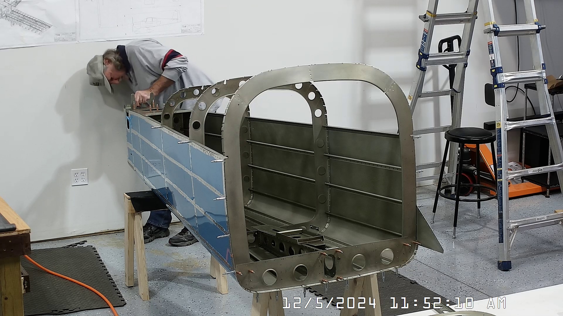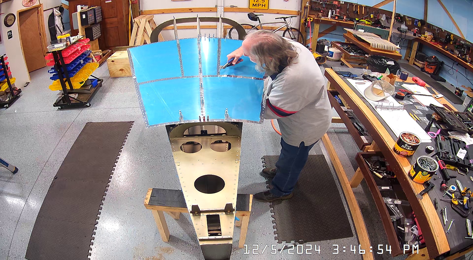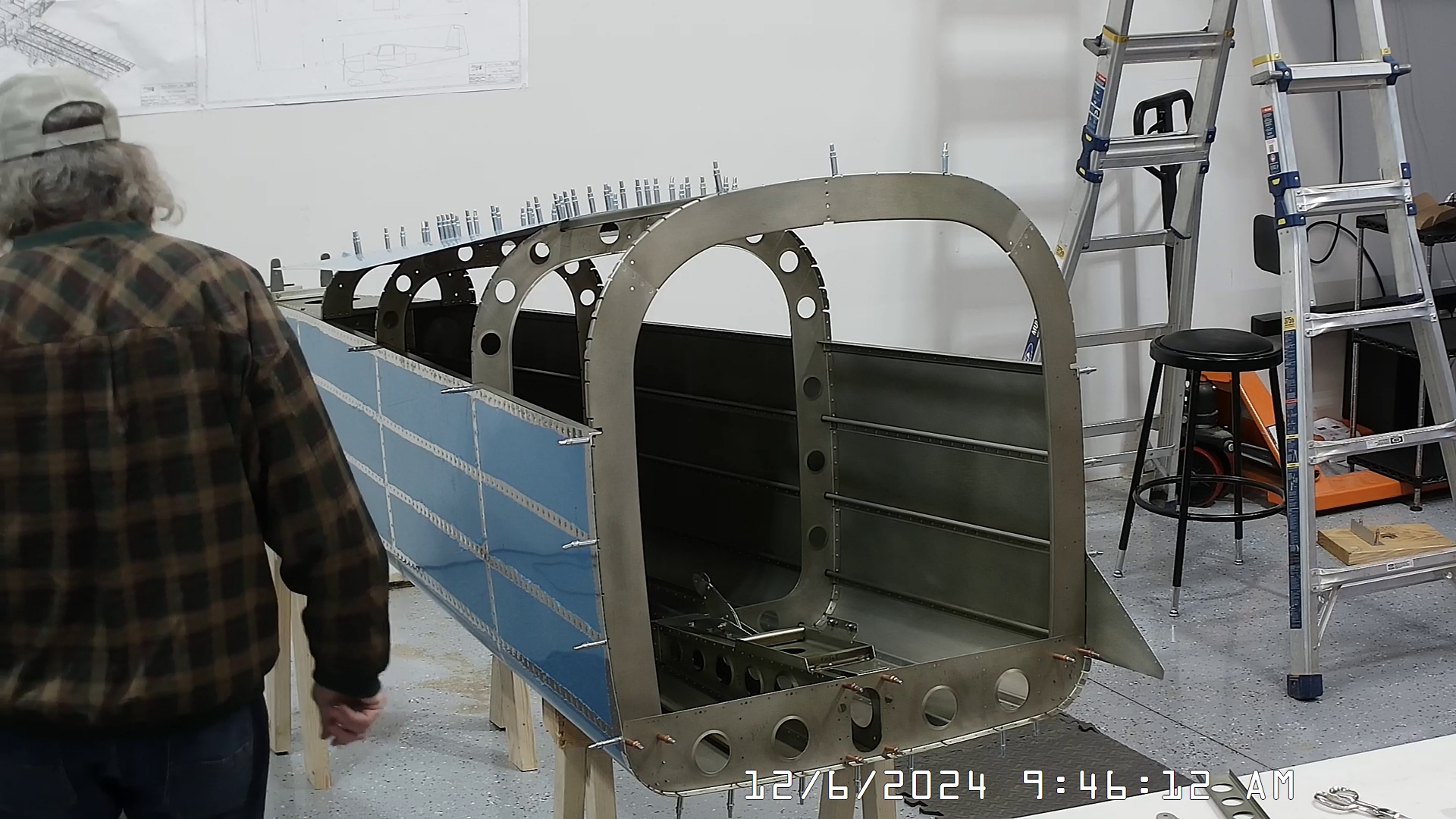 At the end of the day I placed the aft top skin on the frames with a couple of clecos and also had the bellcrank and battery mount installed per the instructions on page 10-23.