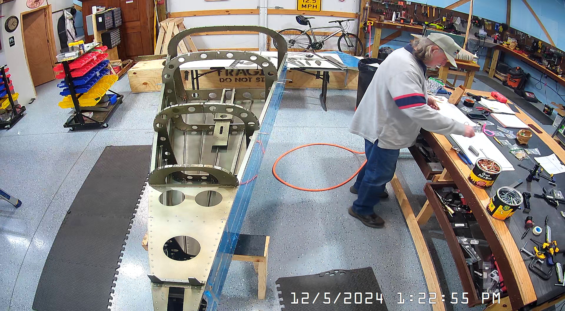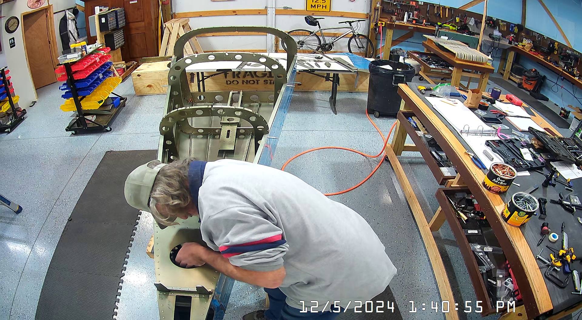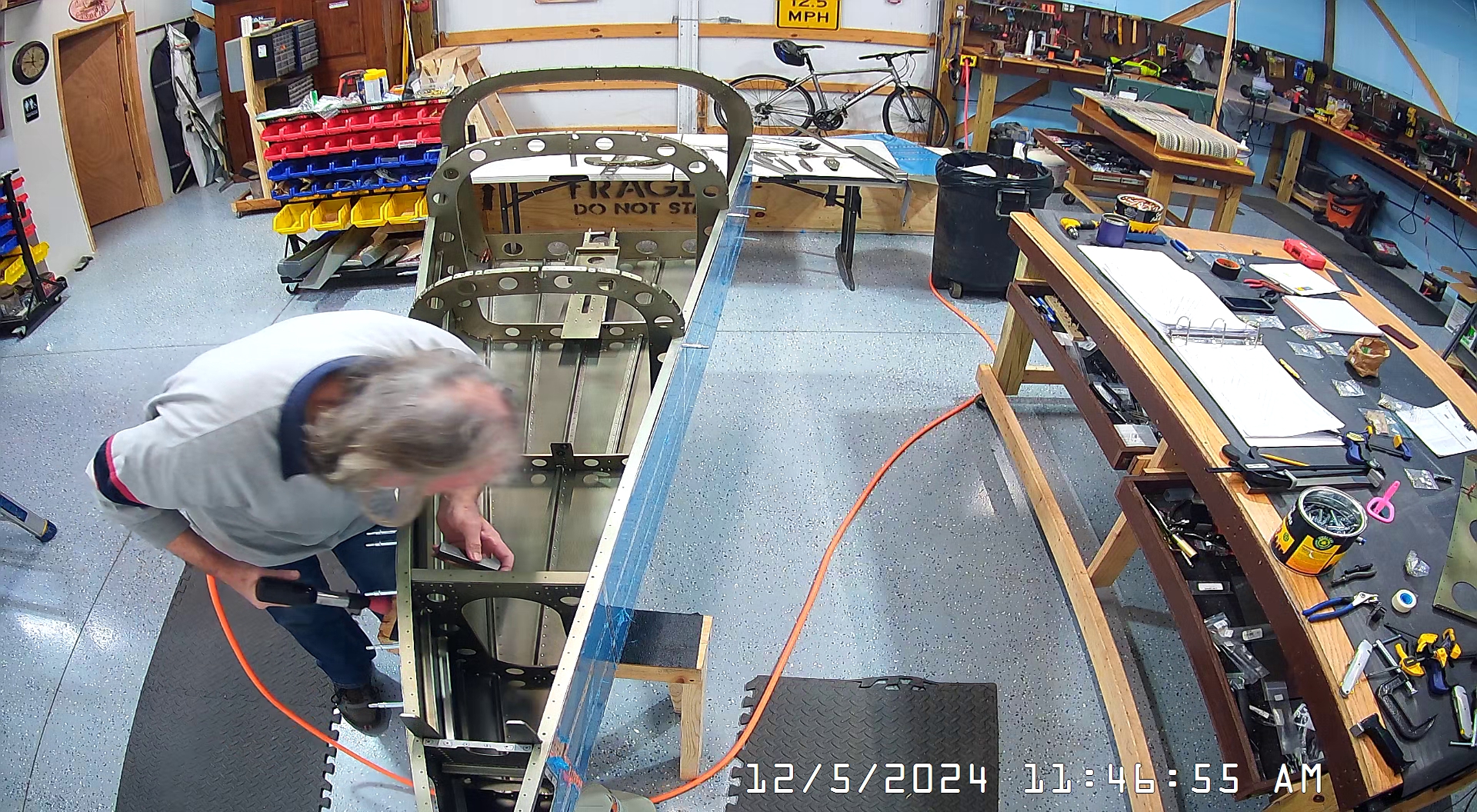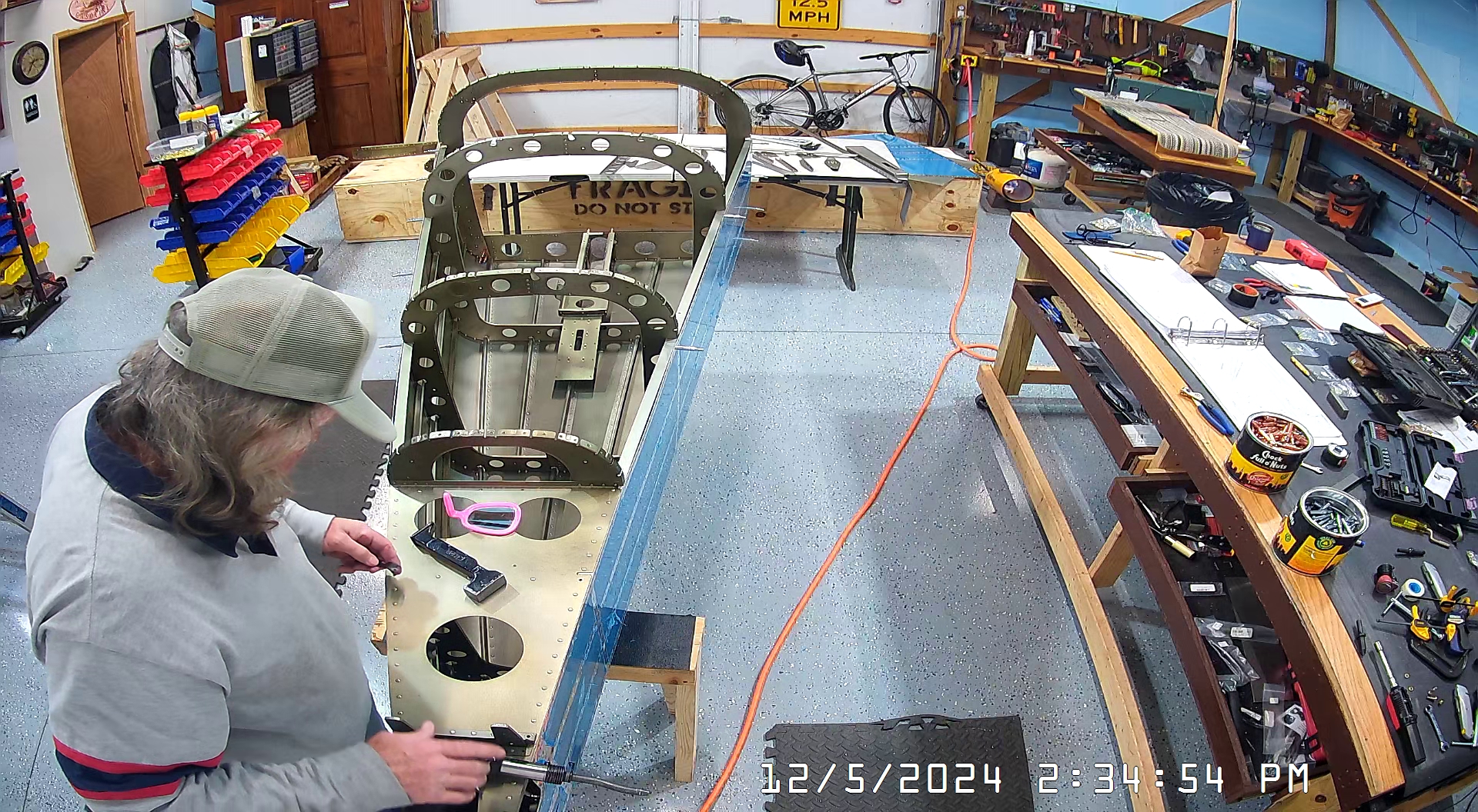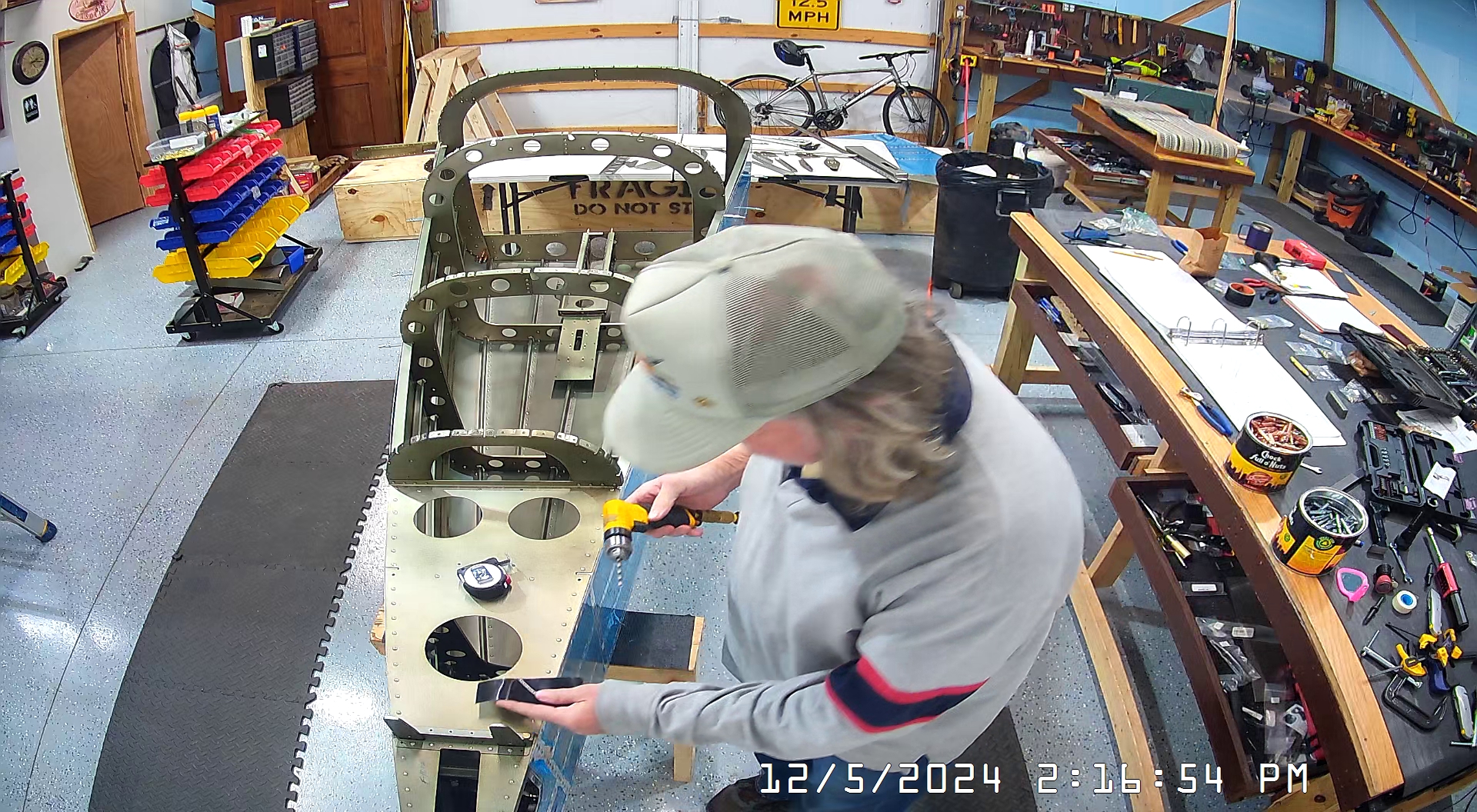 At the end of the day I placed the aft top skin on the frames with a couple of clecos and also had the bellcrank and battery mount installed per the instructions on page 10-23.