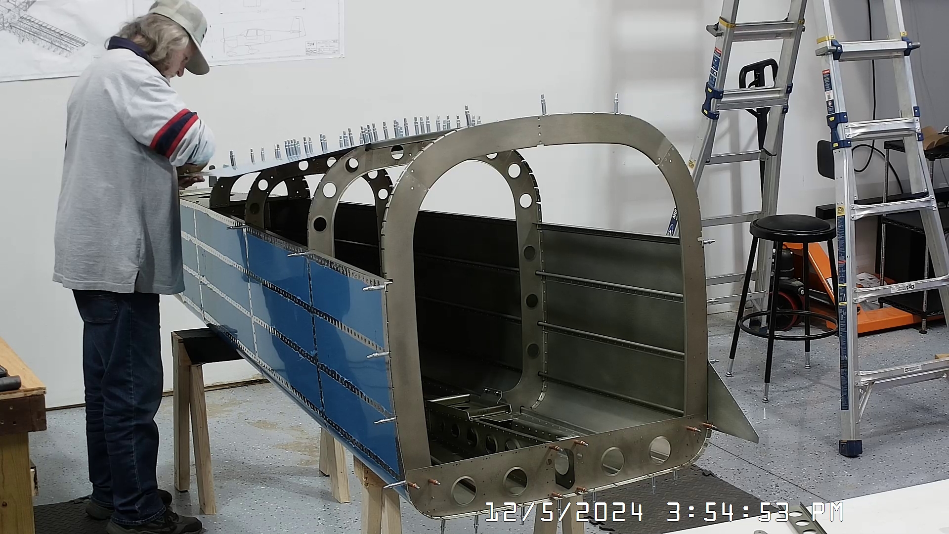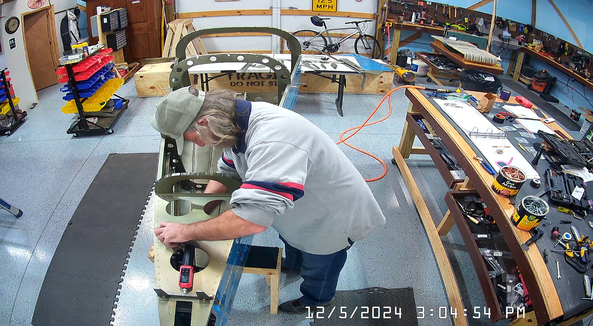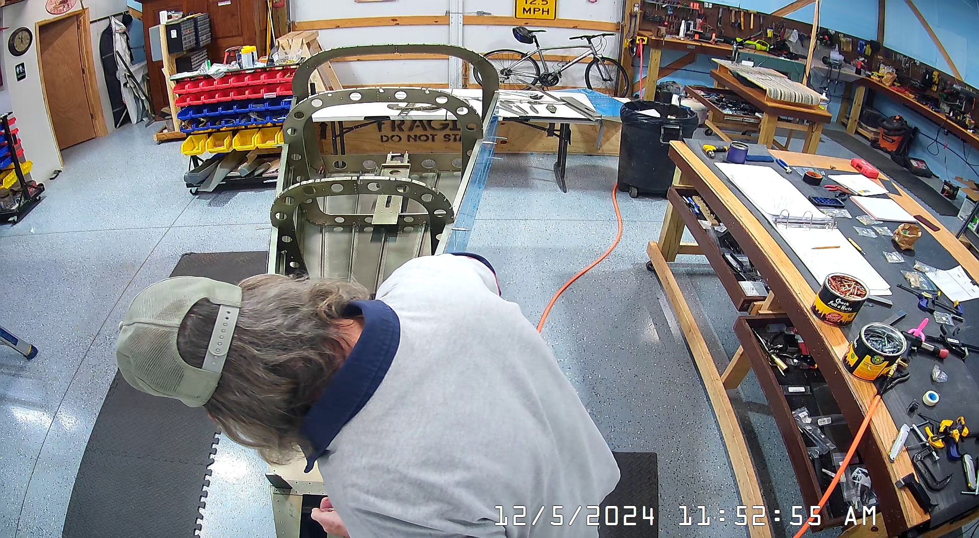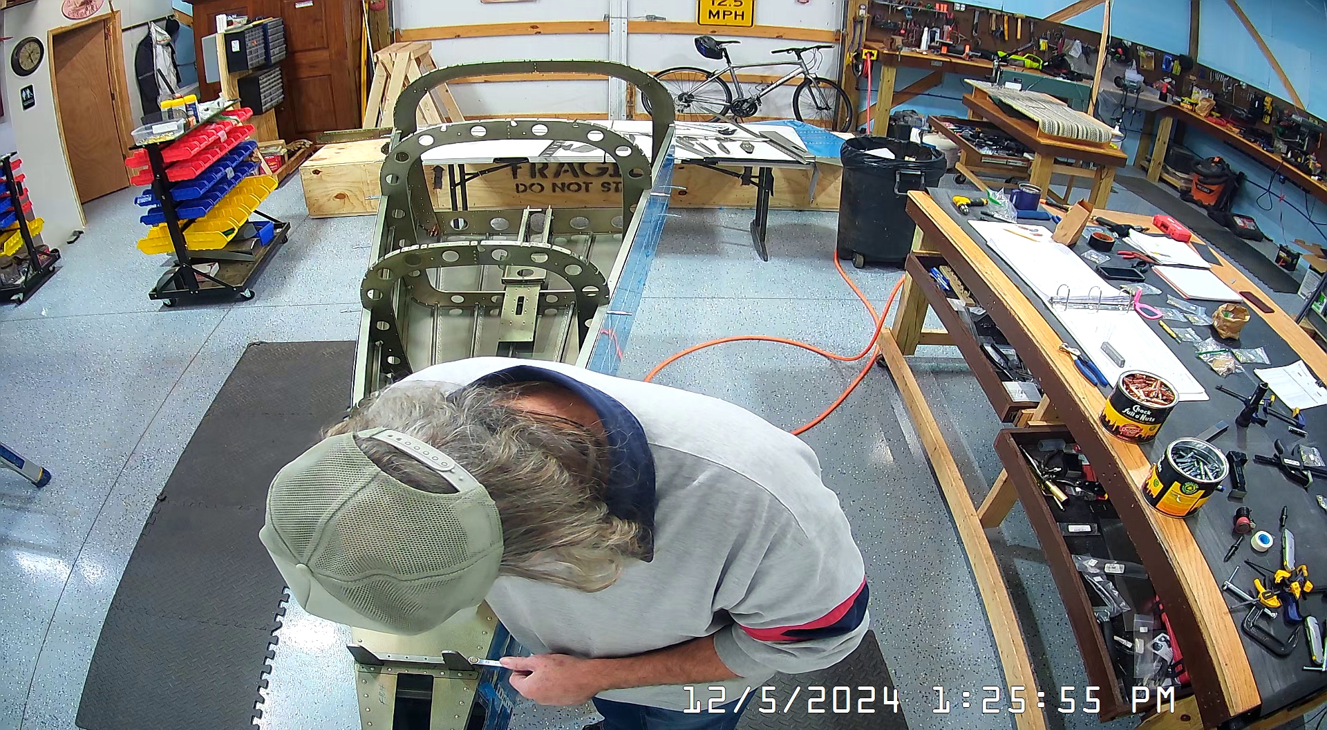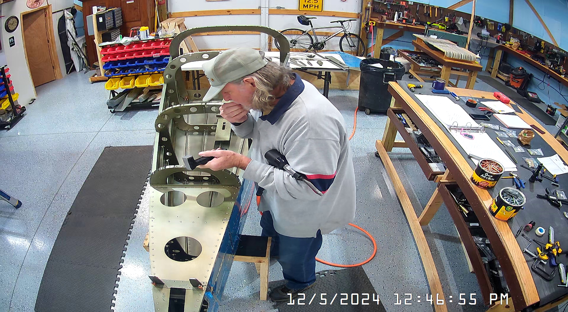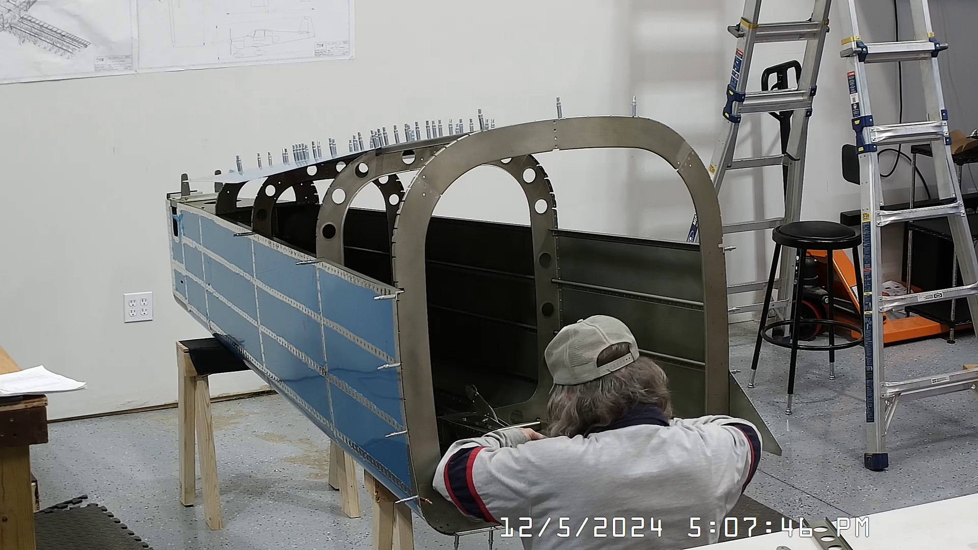 At the end of the day I placed the aft top skin on the frames with a couple of clecos and also had the bellcrank and battery mount installed per the instructions on page 10-23.